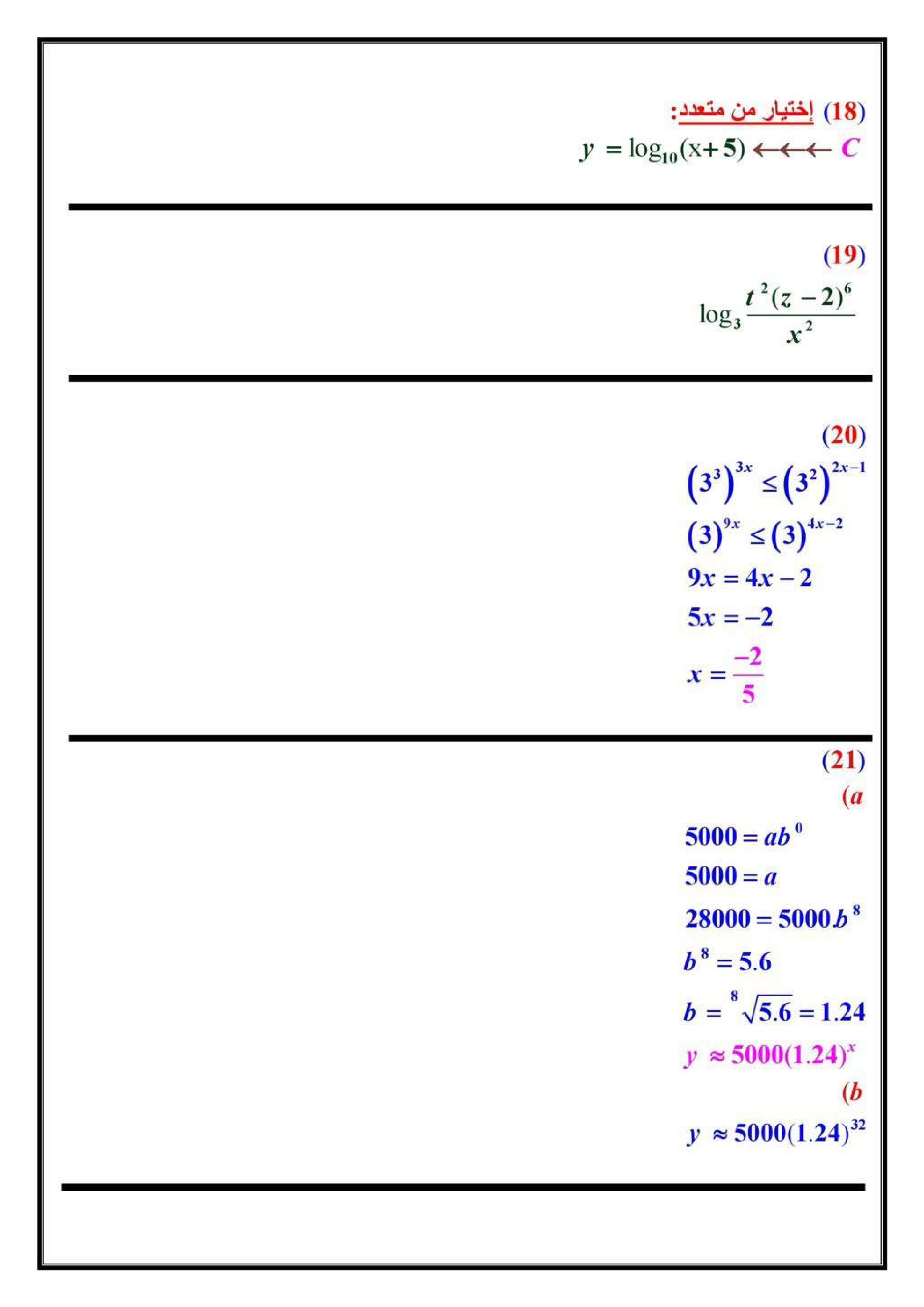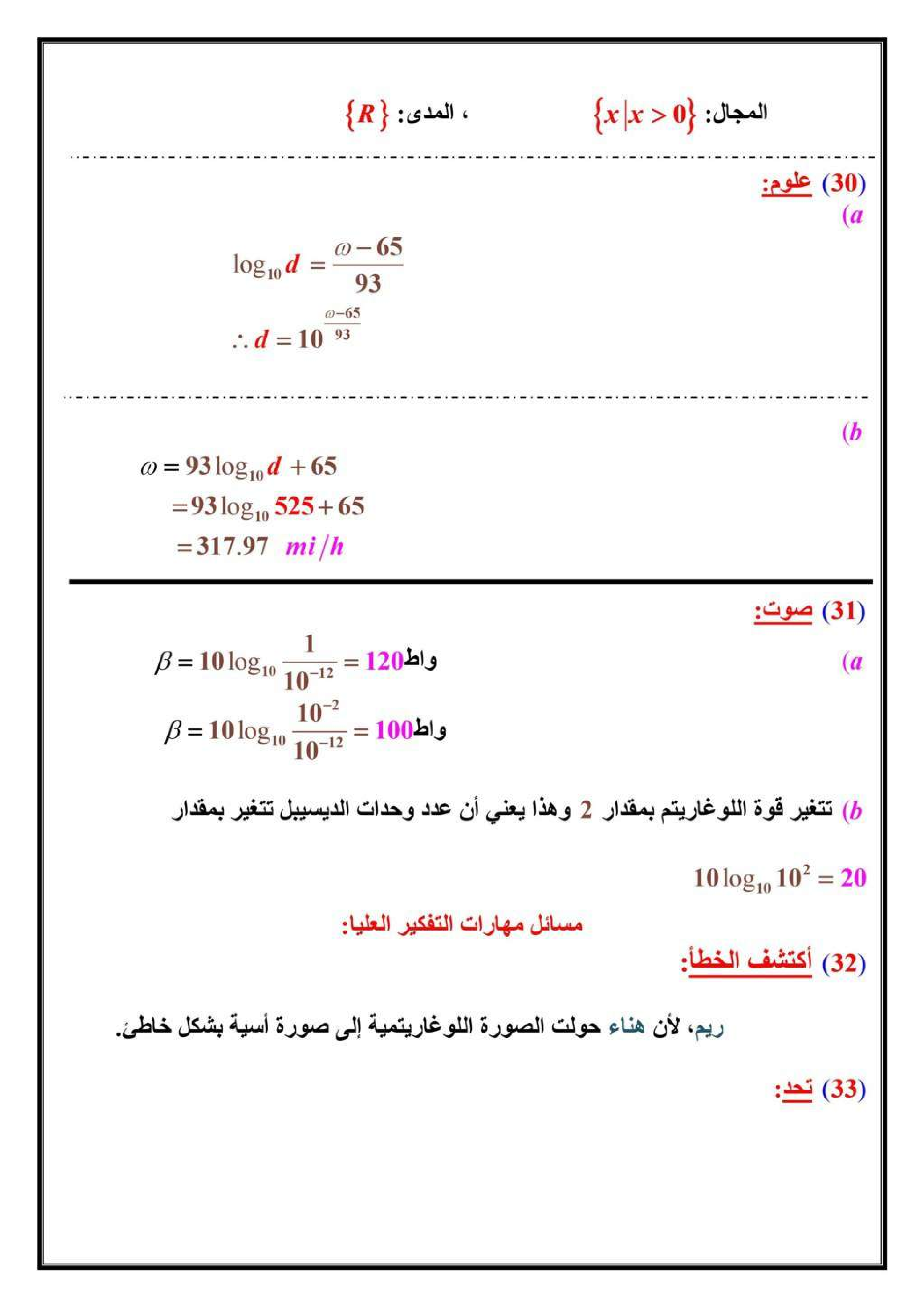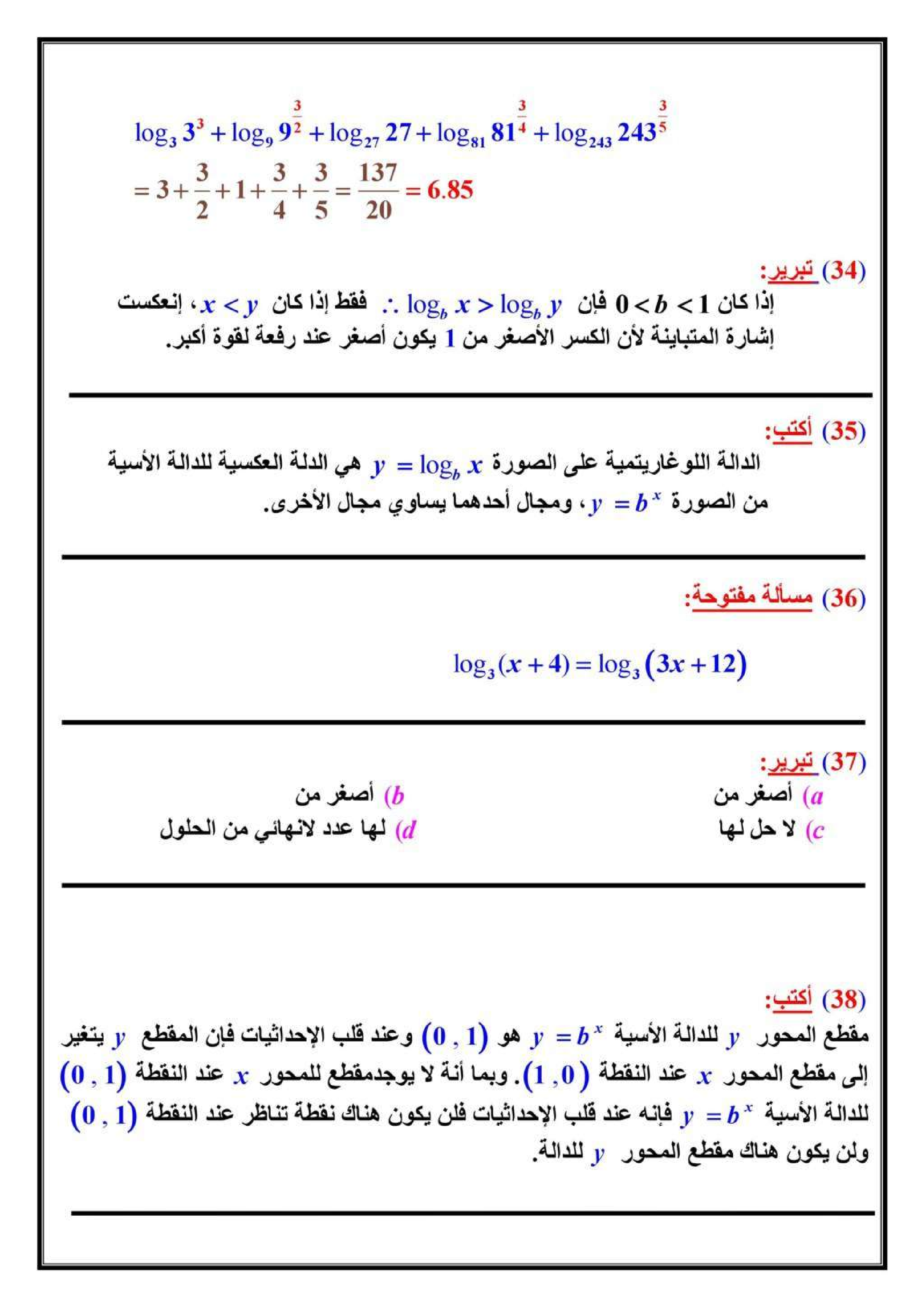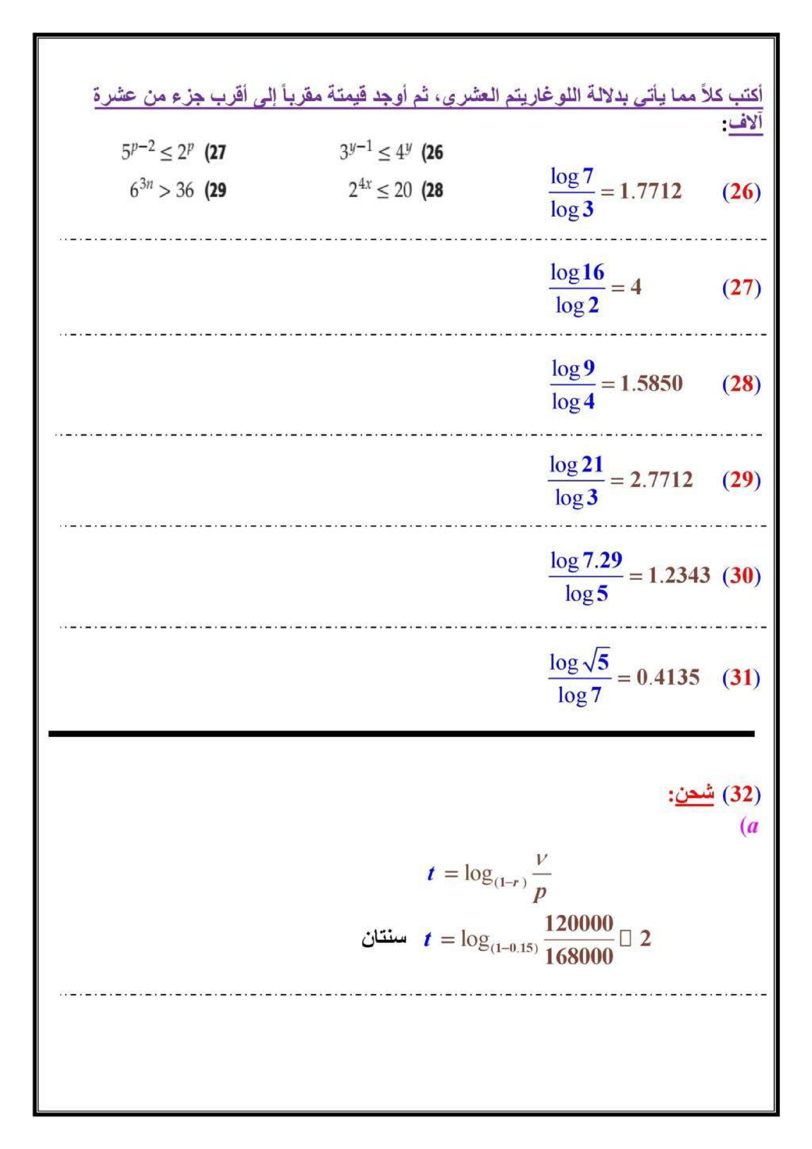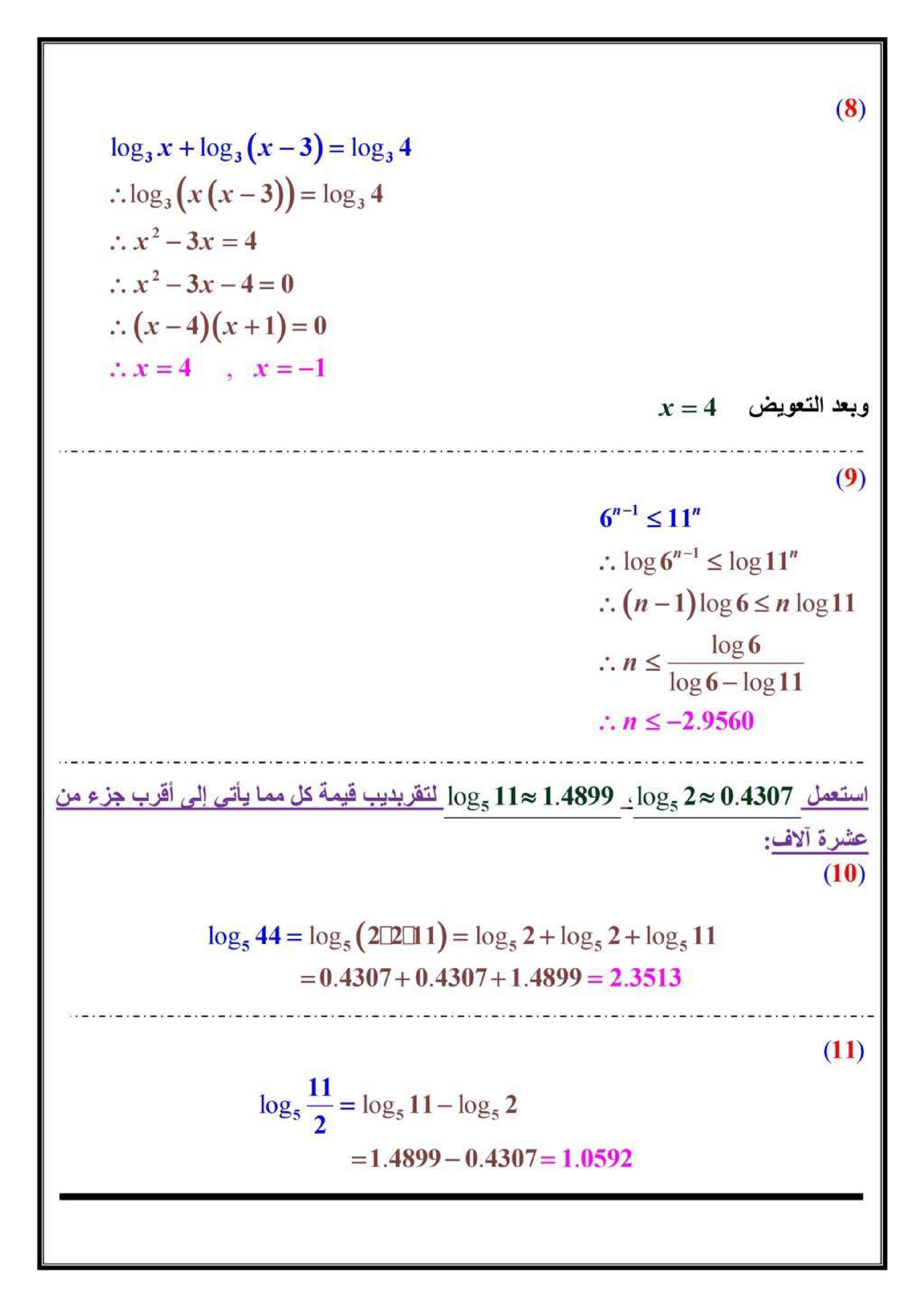 الفصل 2 - حل المعادلات والمتباينات اللوغاريتيمة