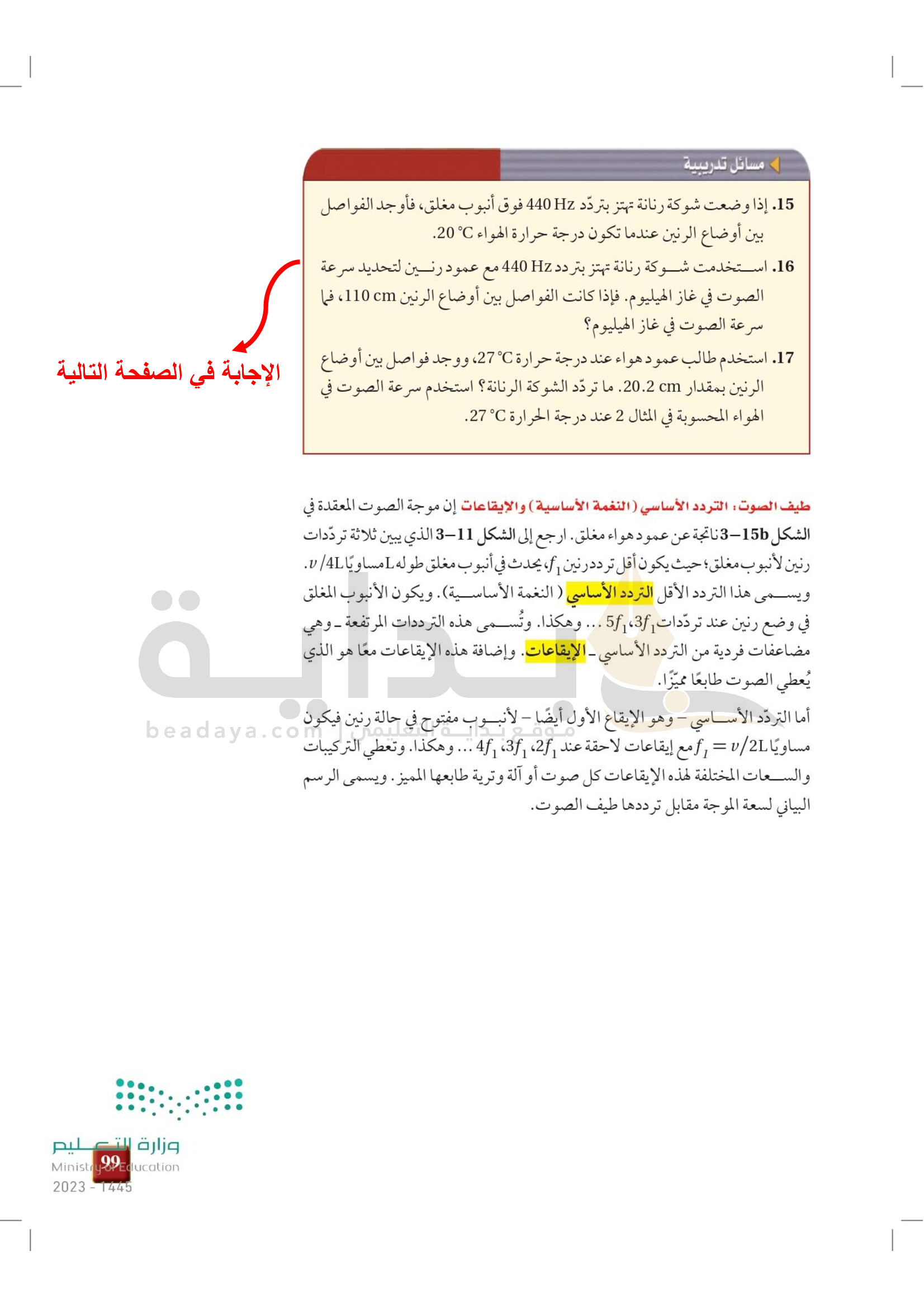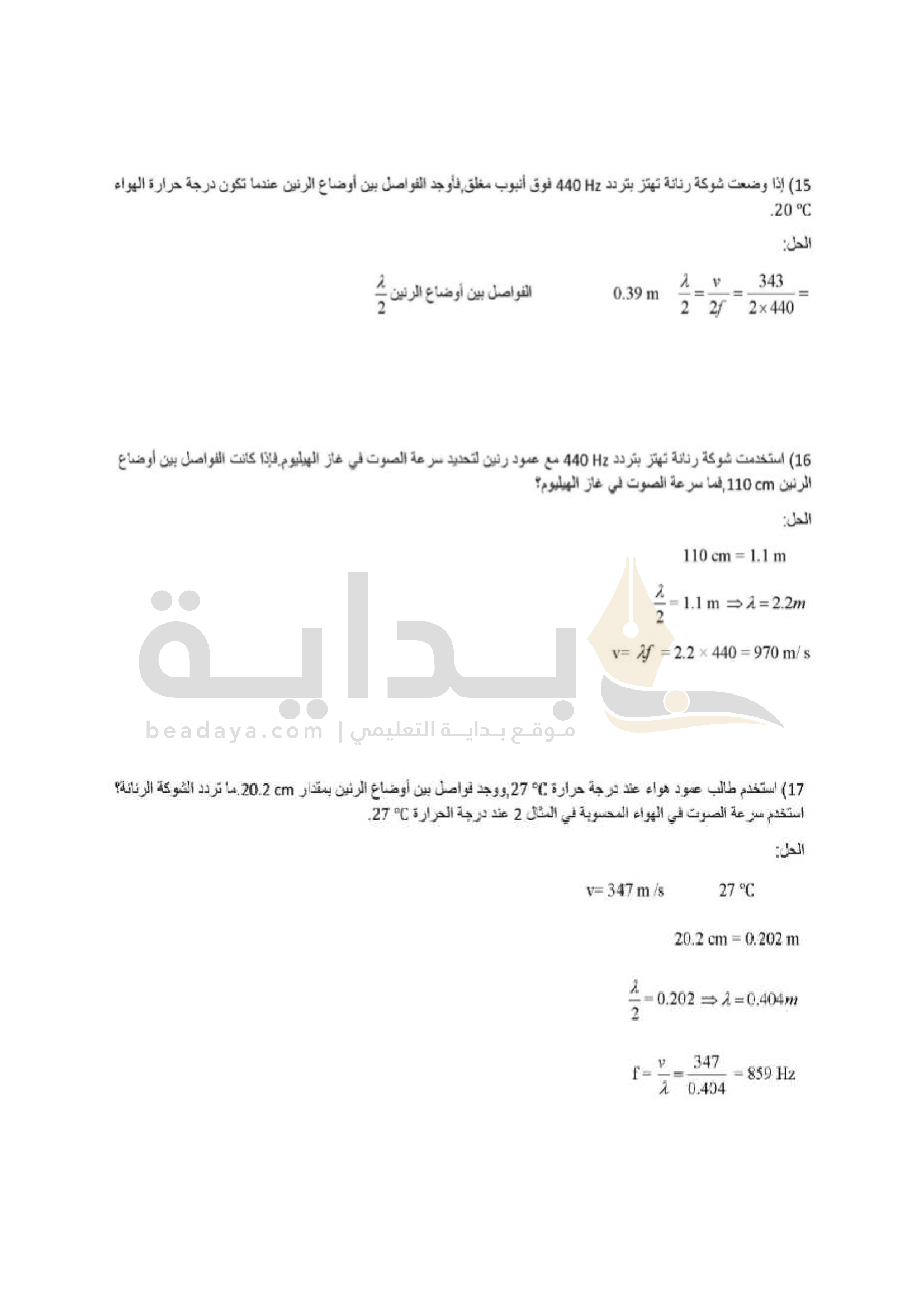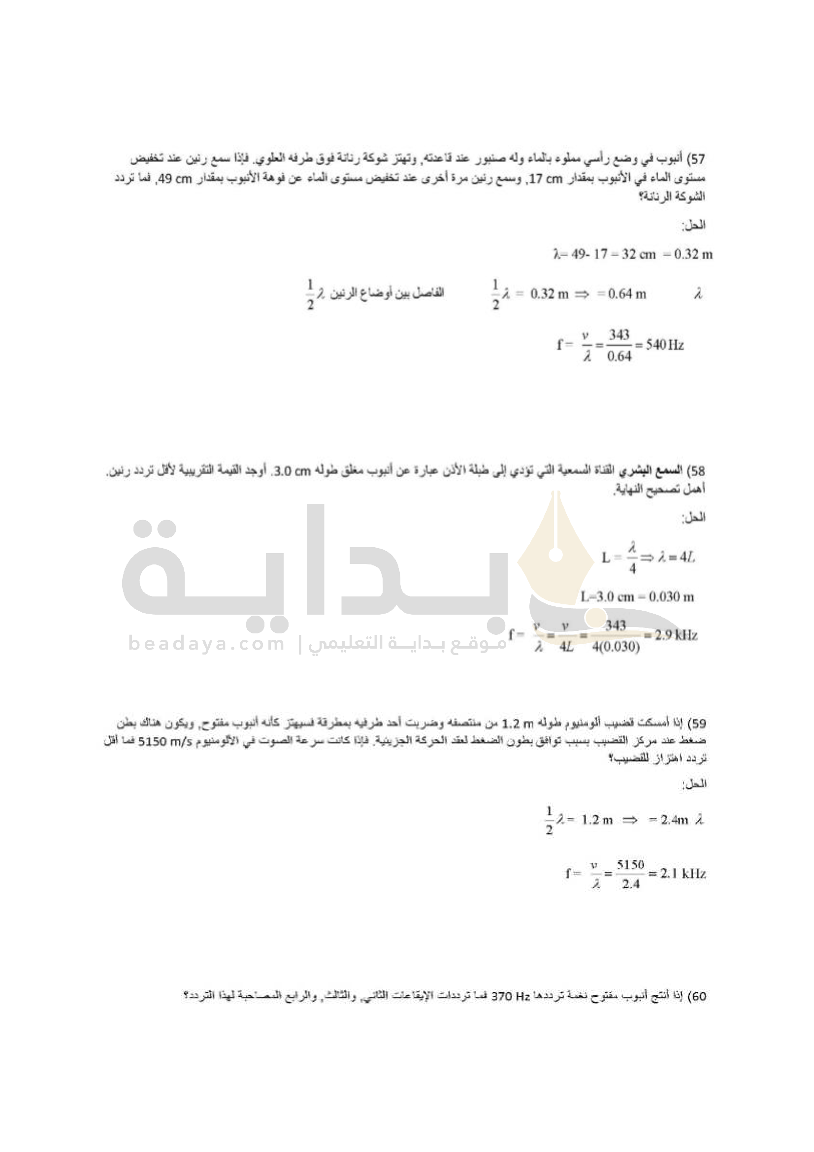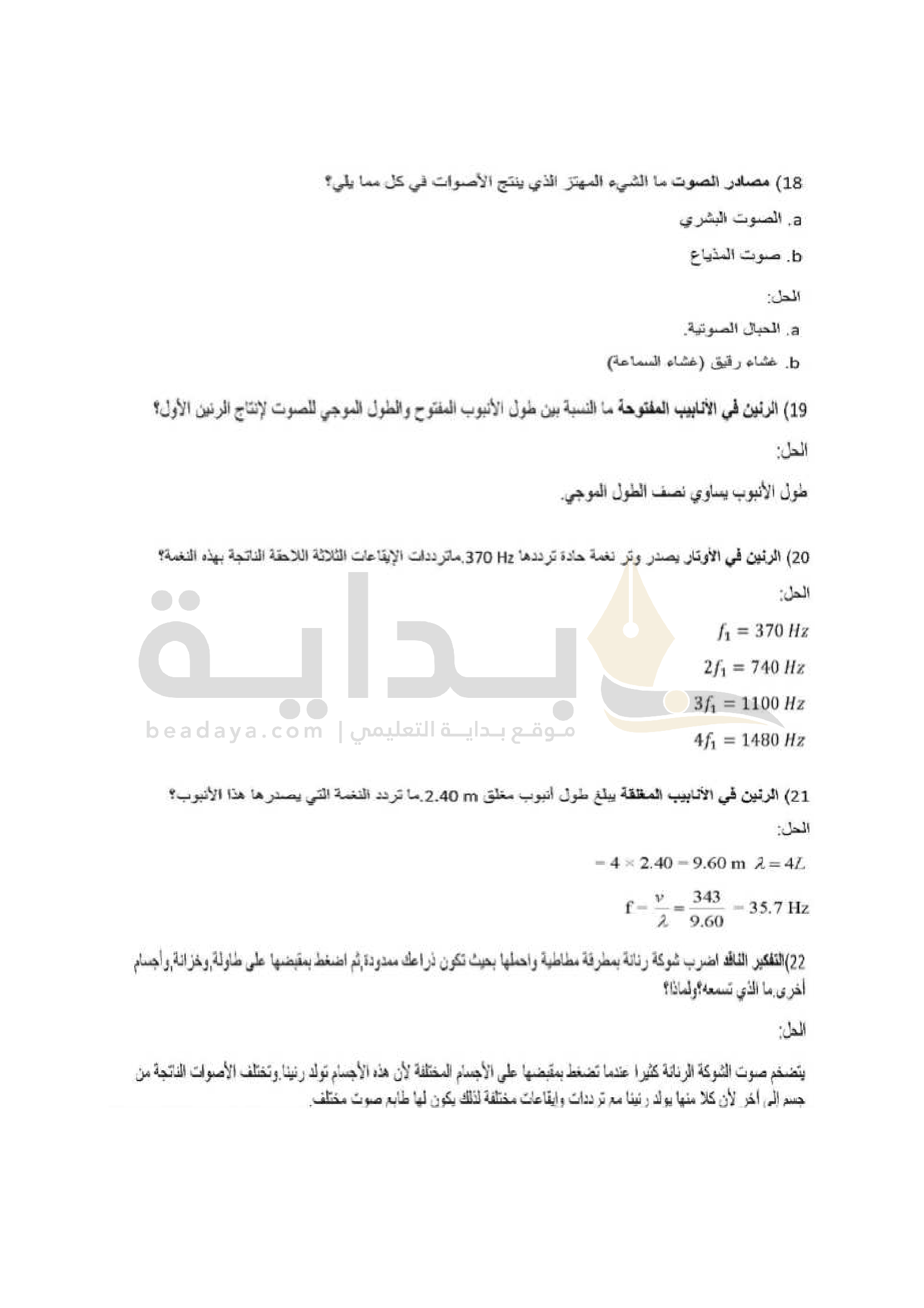 الفصل 3 - الرنين في الأعمدة الهوائية والأوتار