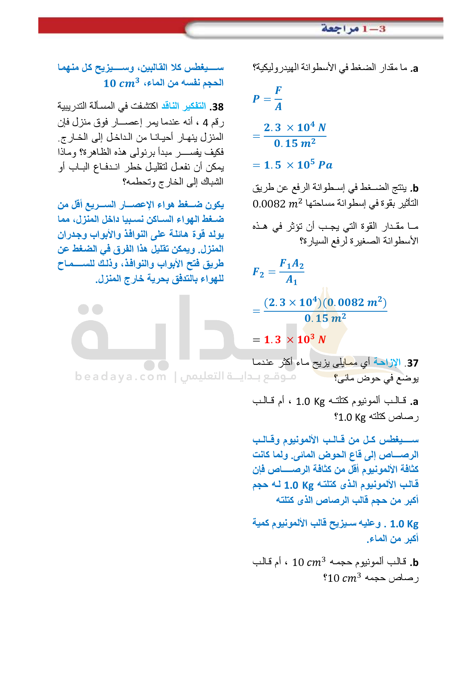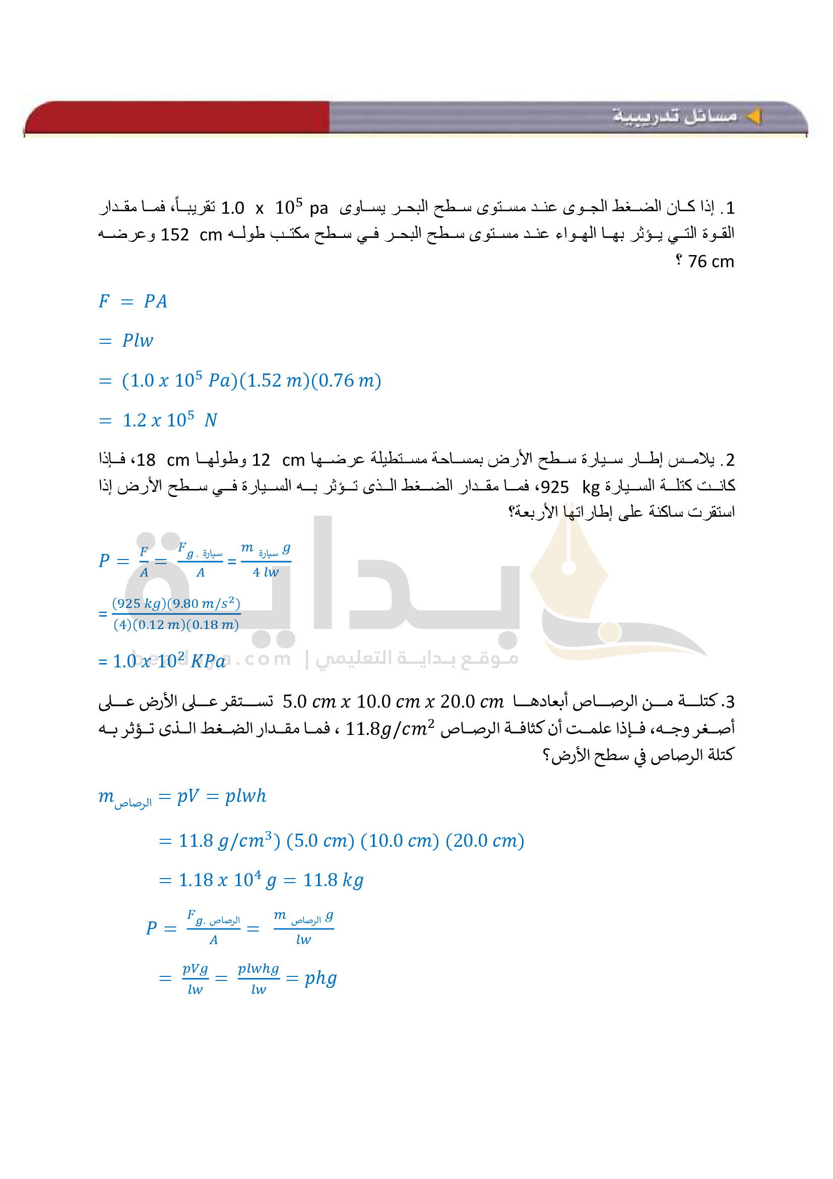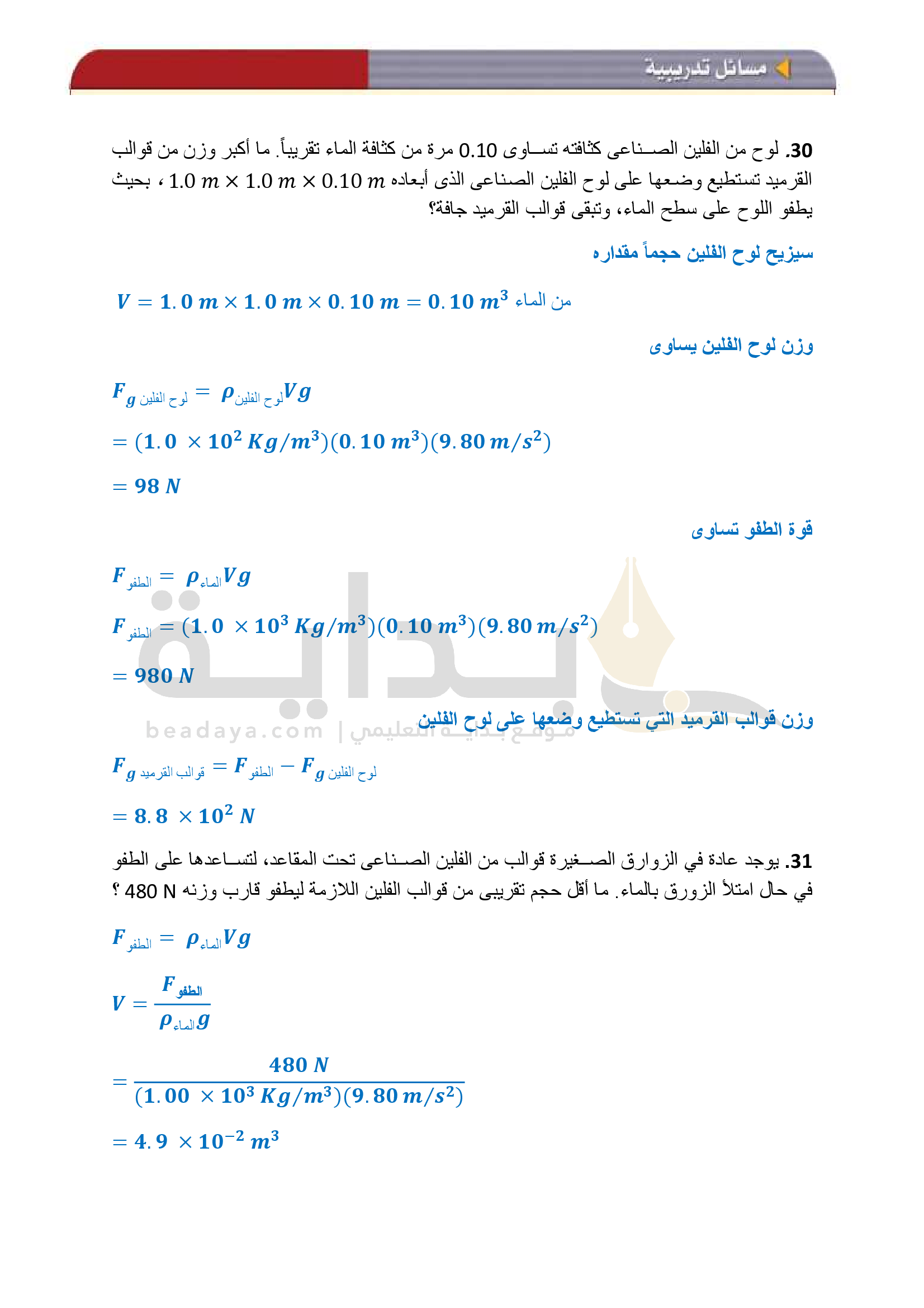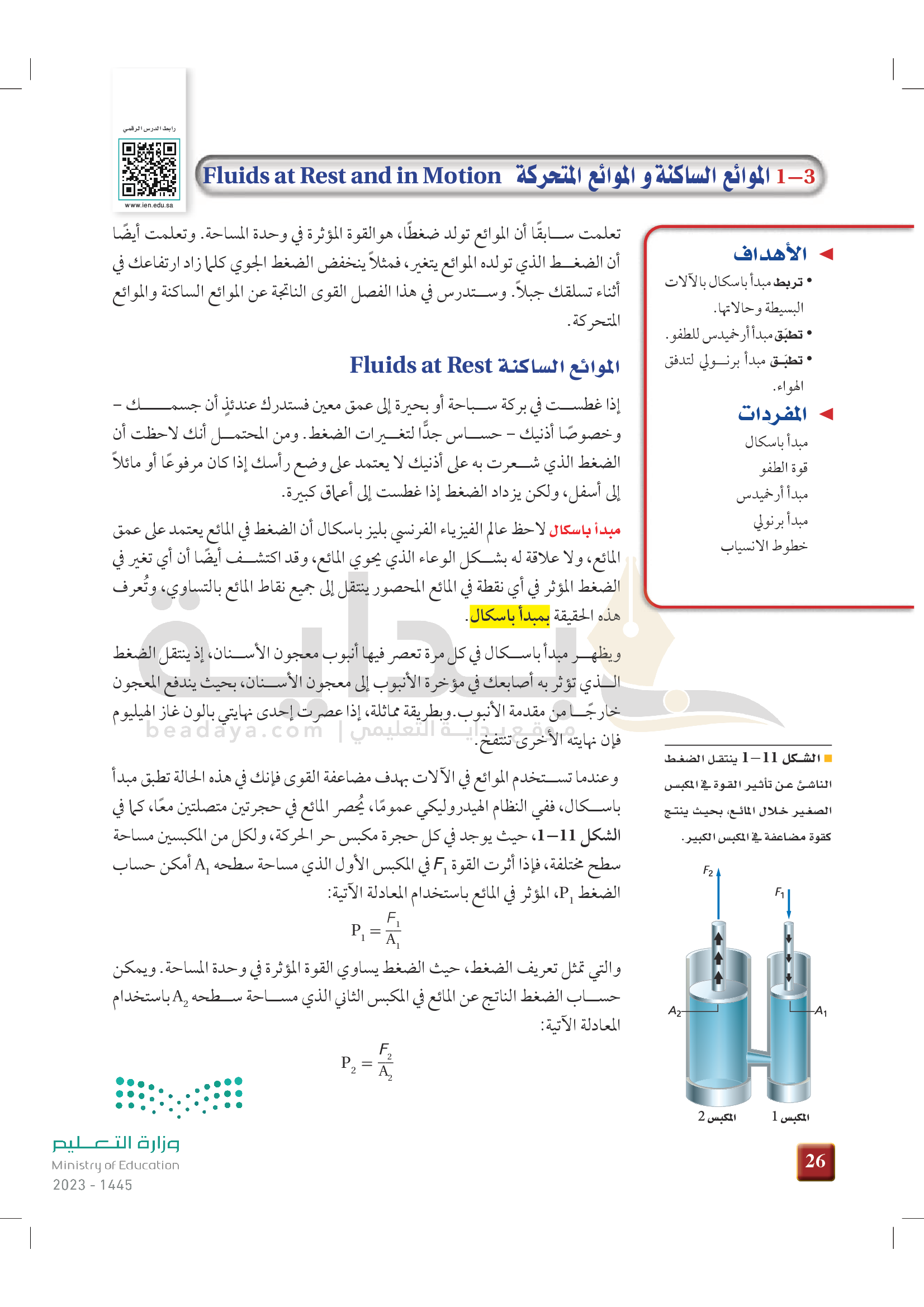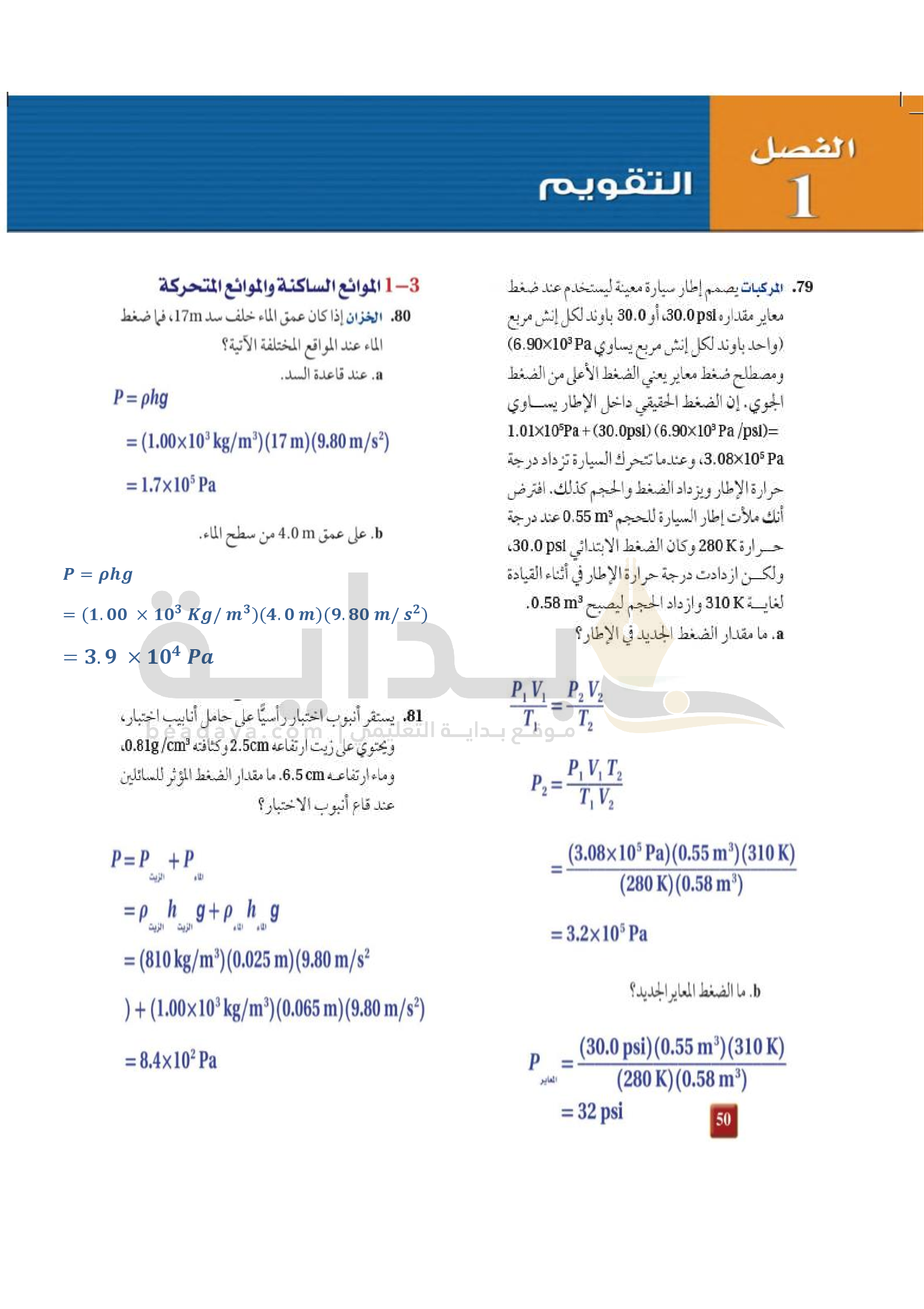 الفصل 1 - الموائع الساكنة والموائع المتحركة