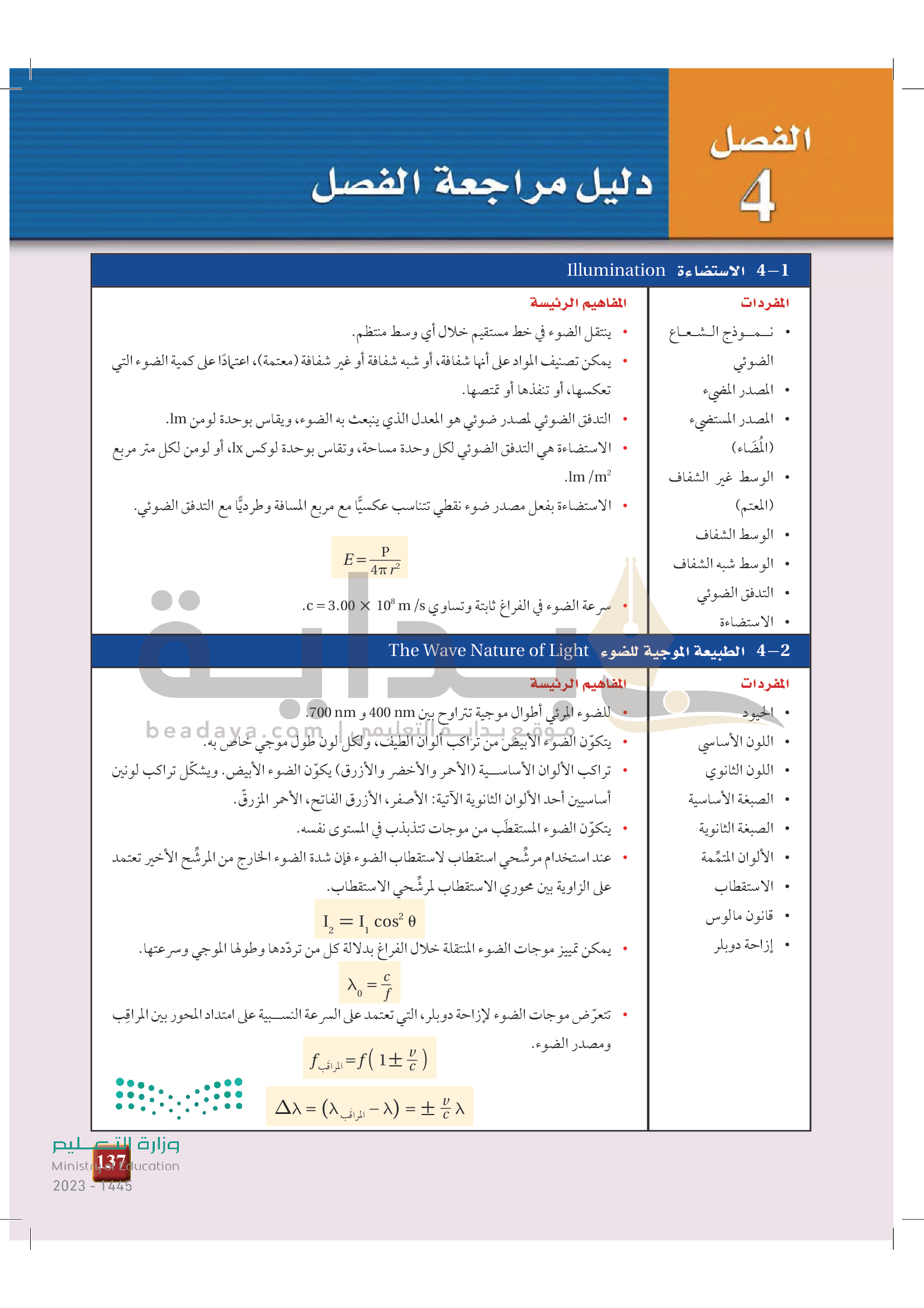 الفصل 4 - الطبيعة الموجية للضوء