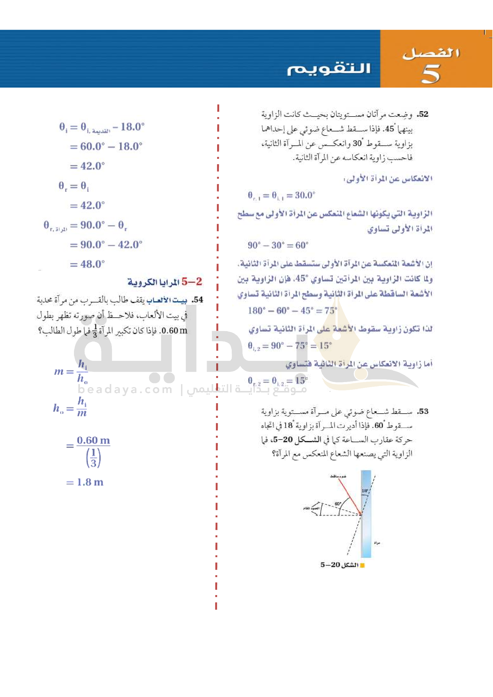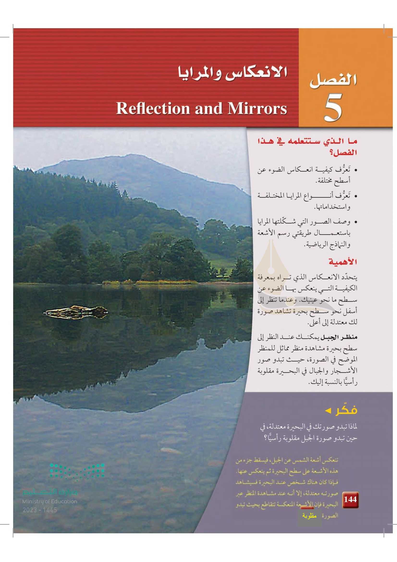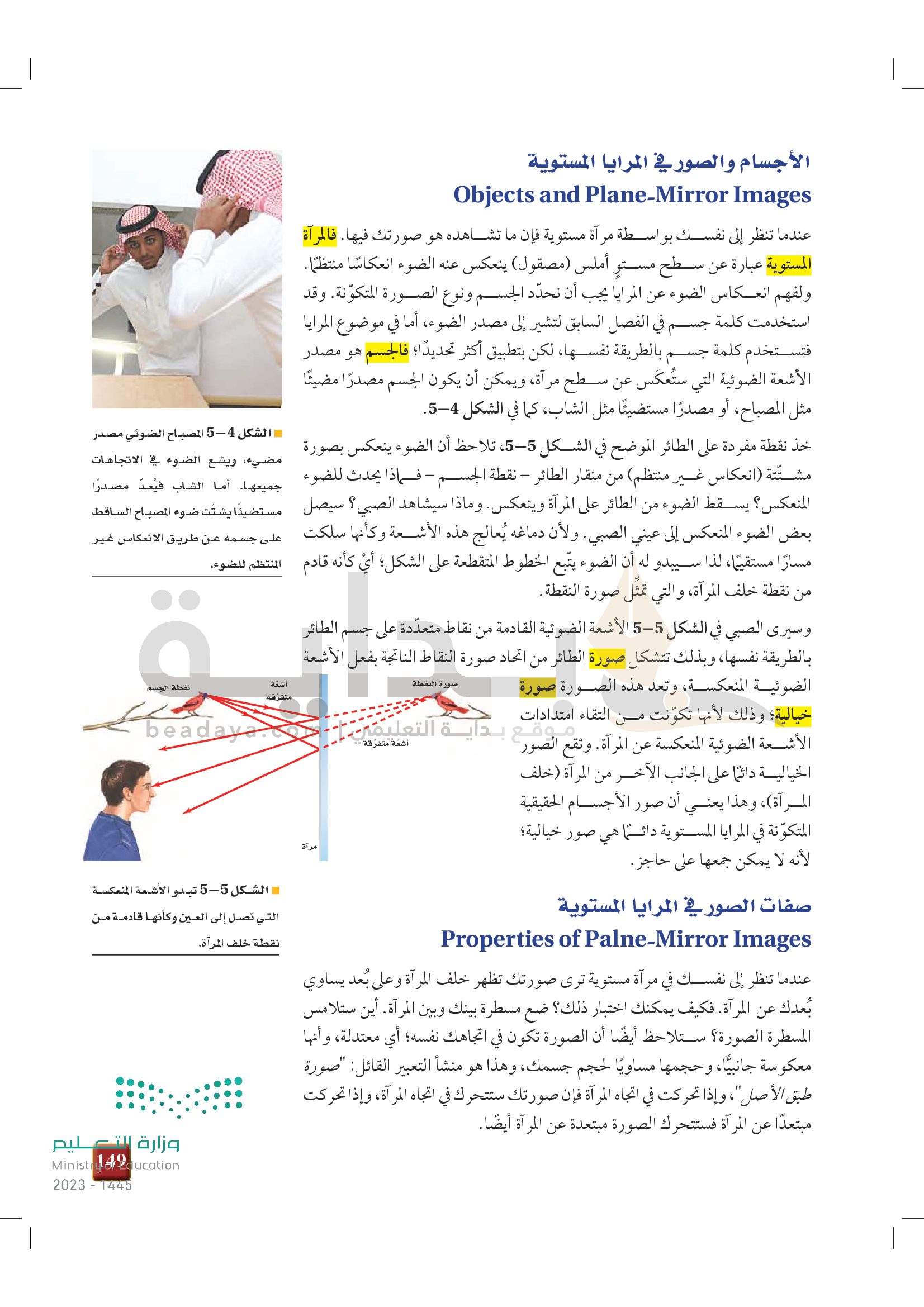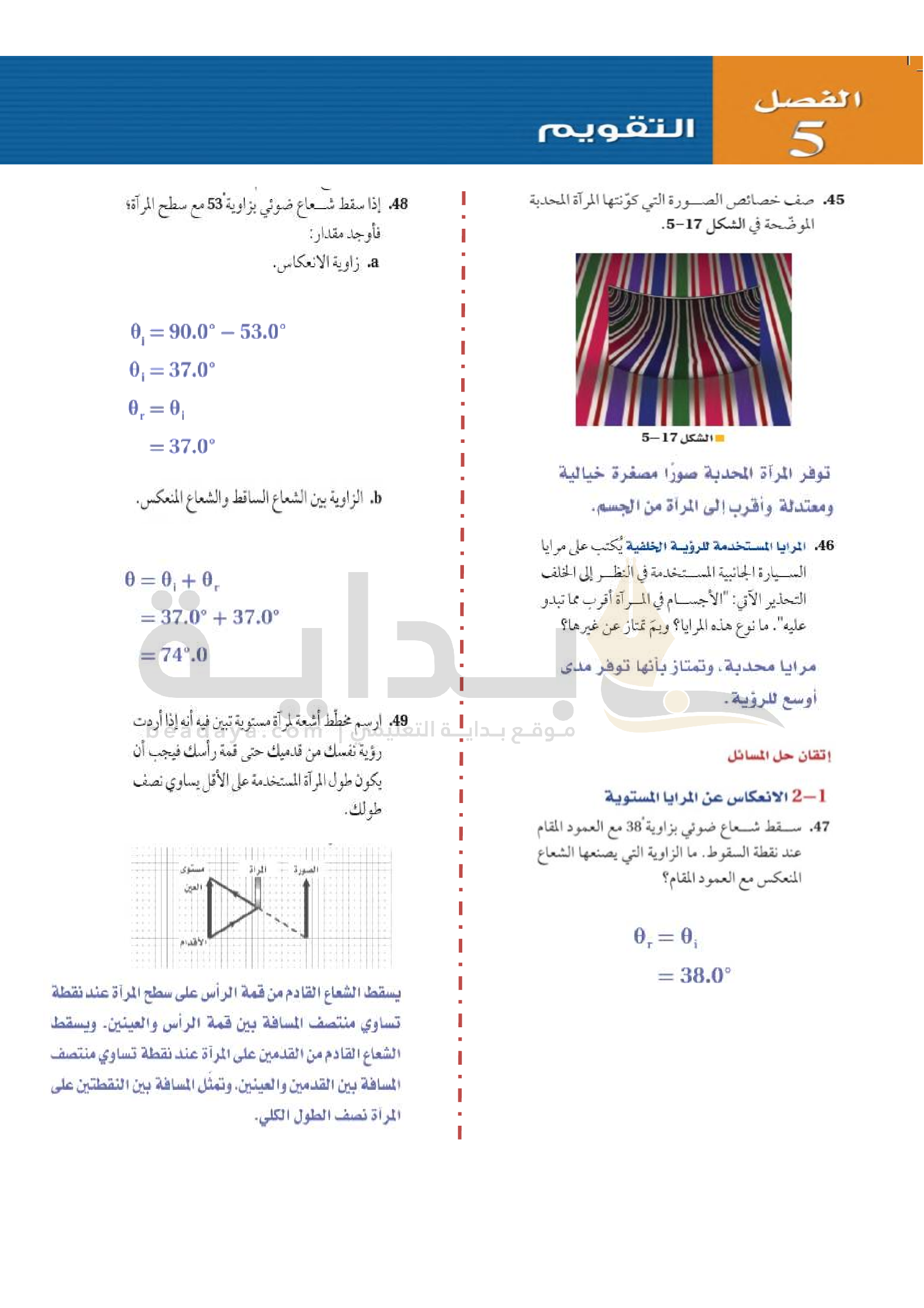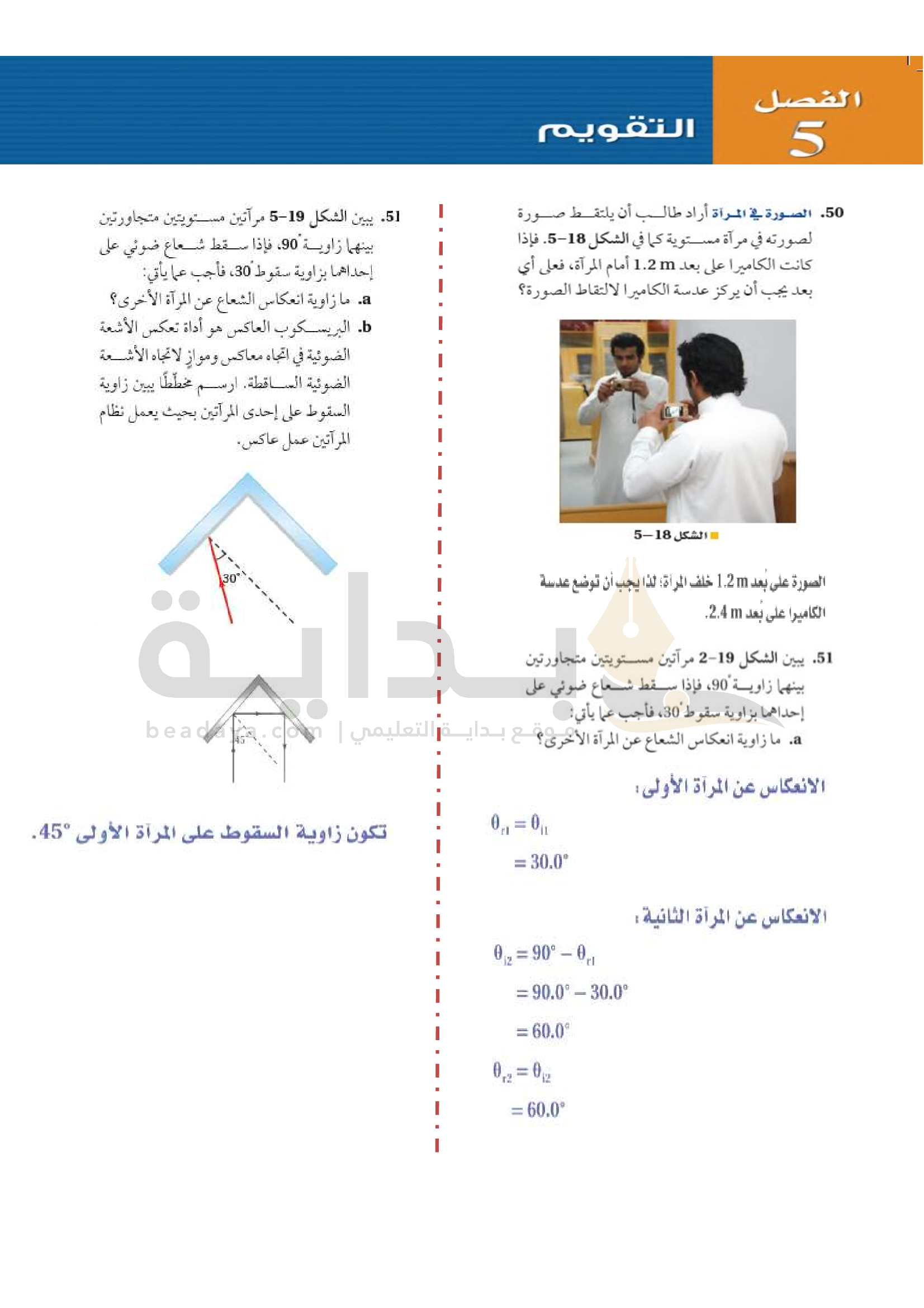 الفصل 5 - الانعكاس عن المرايا المستوية