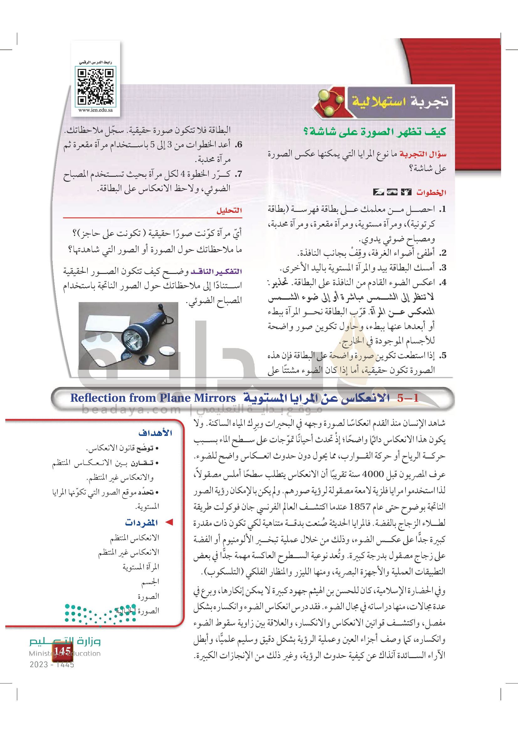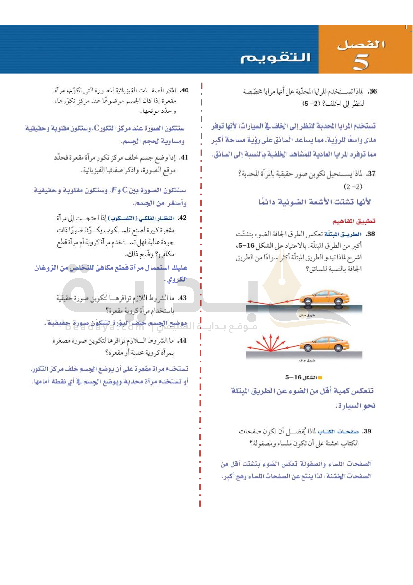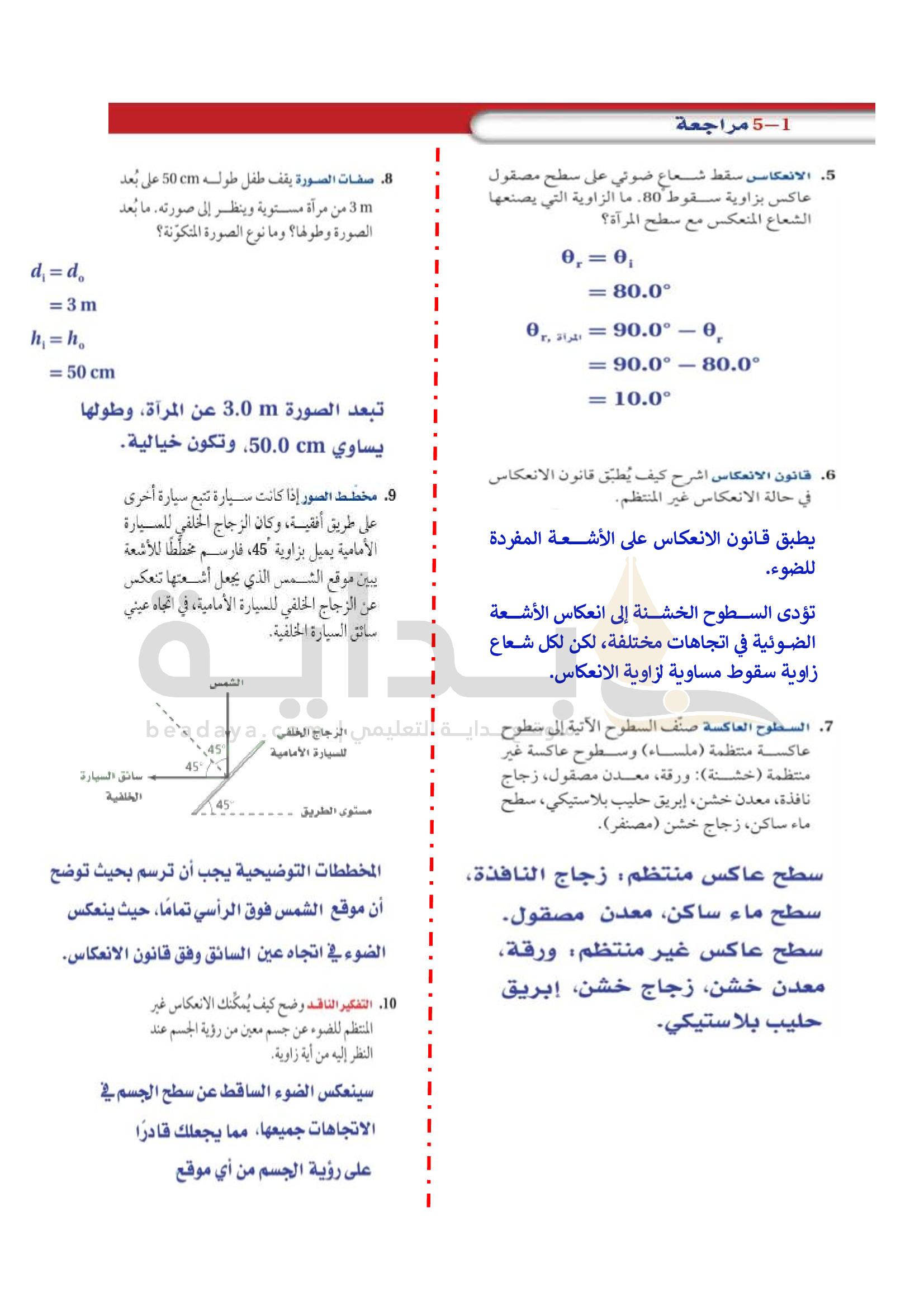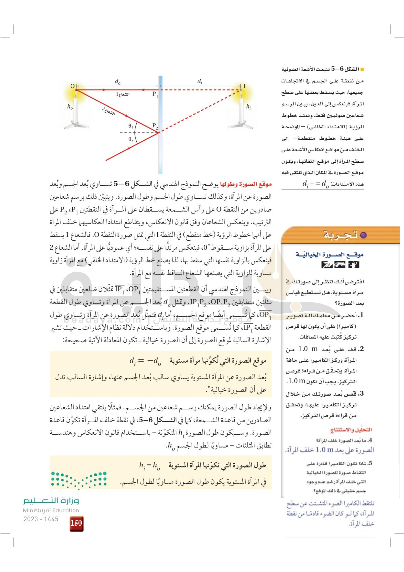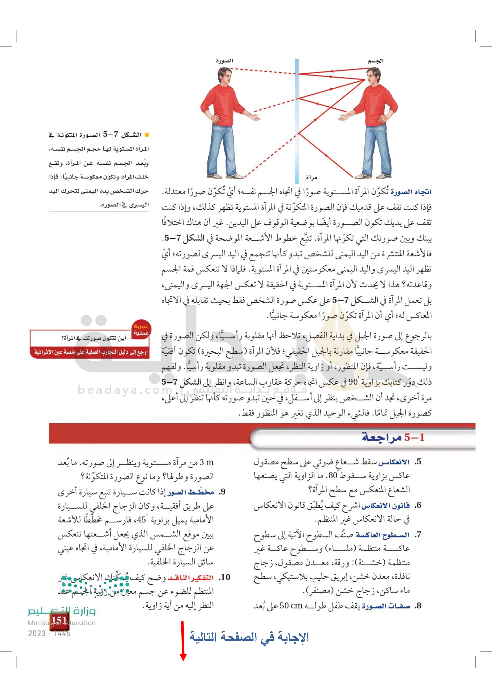 الفصل 5 - الانعكاس عن المرايا المستوية