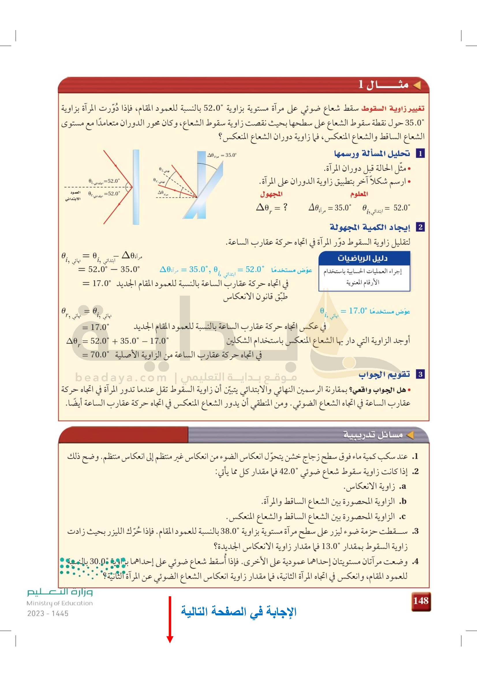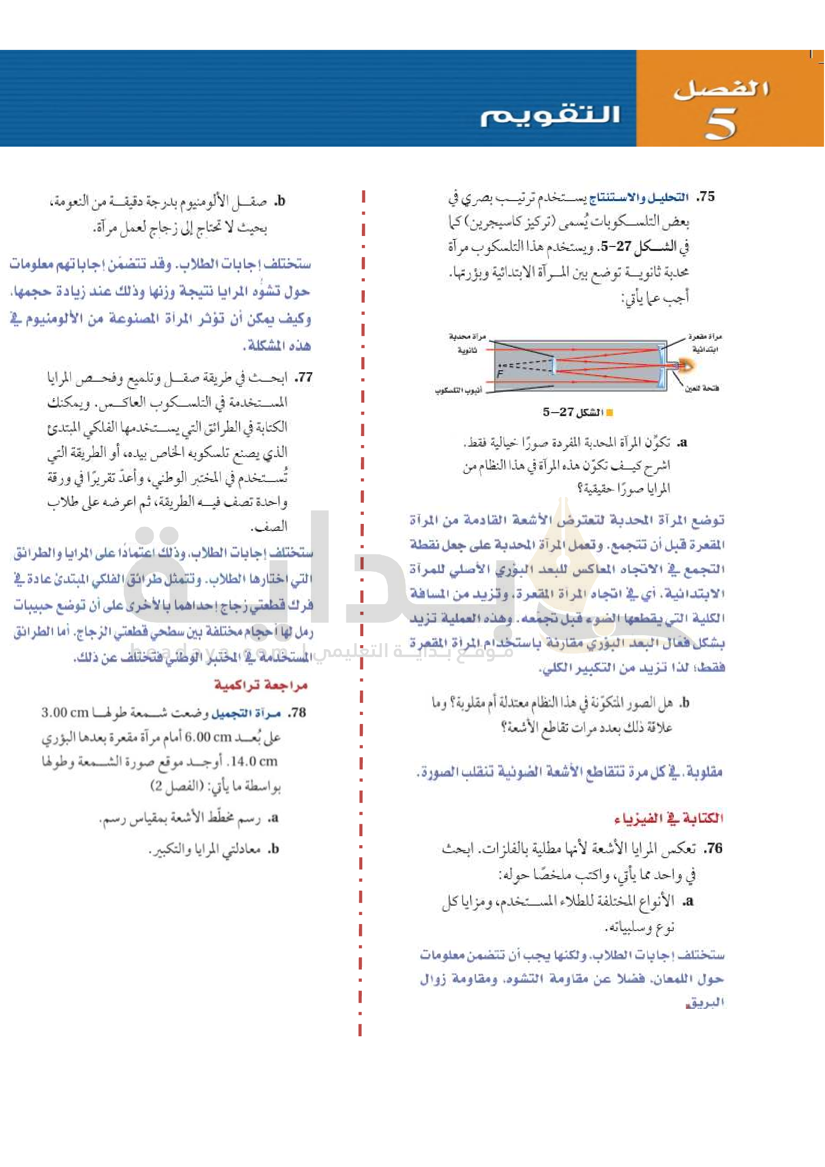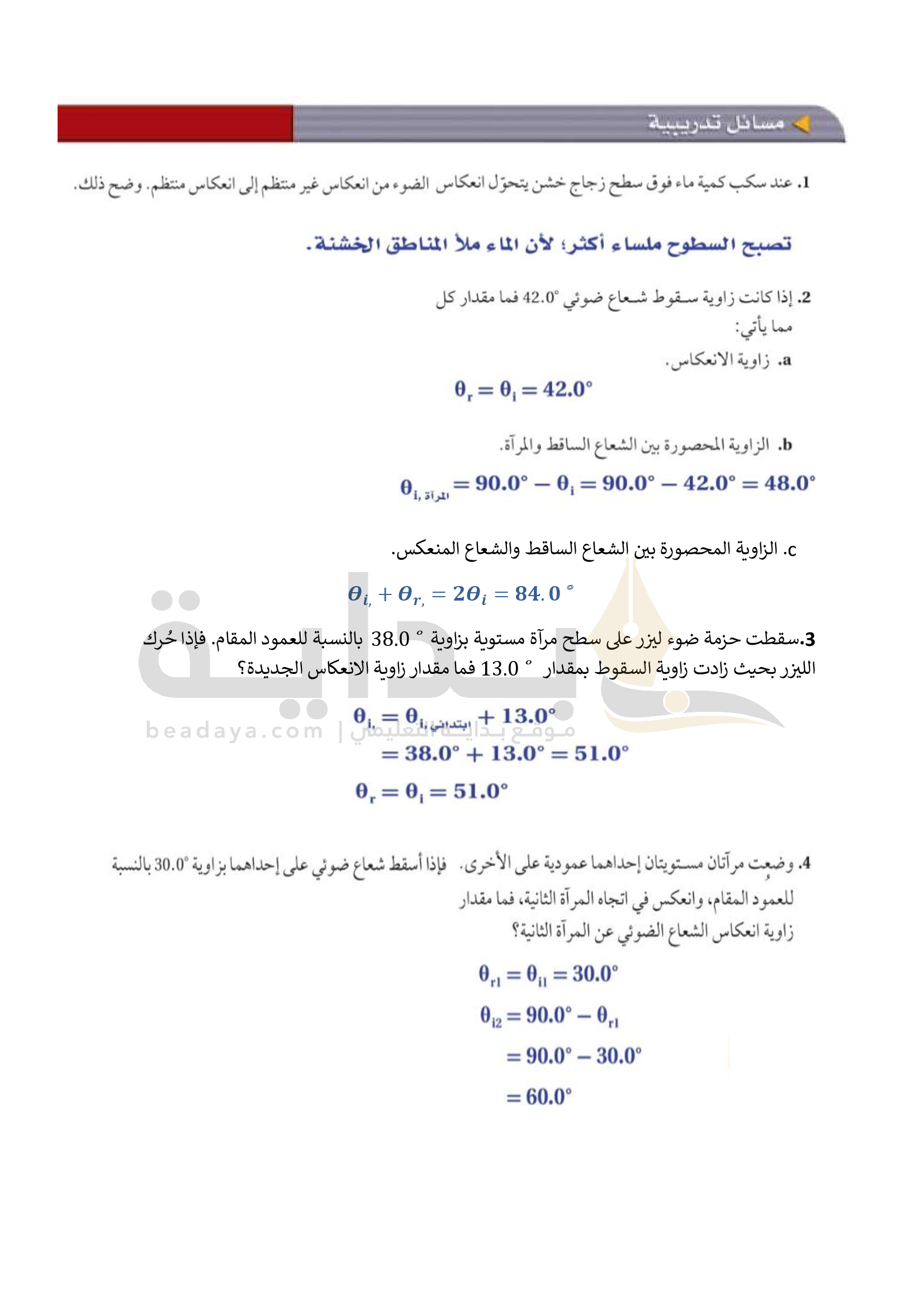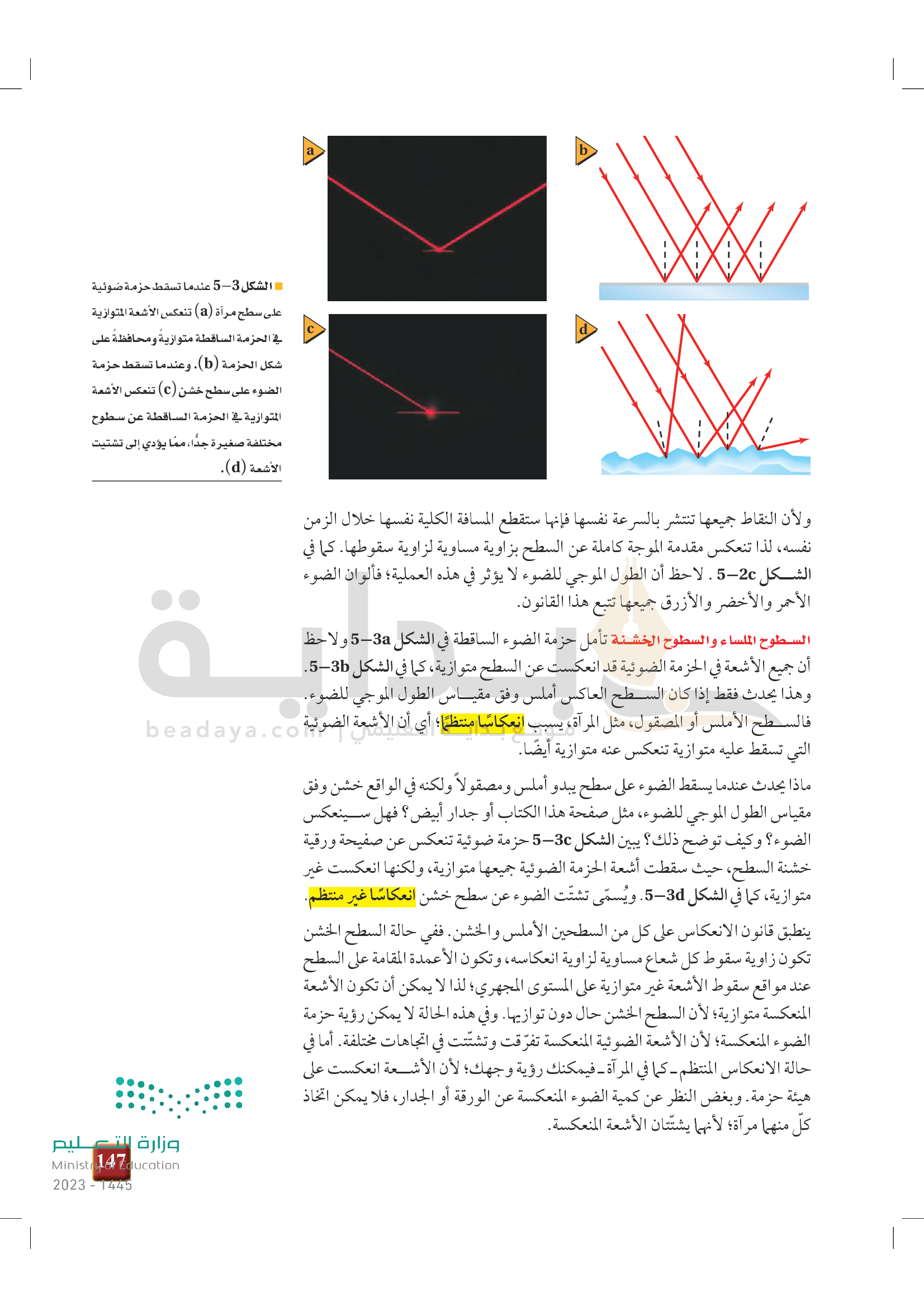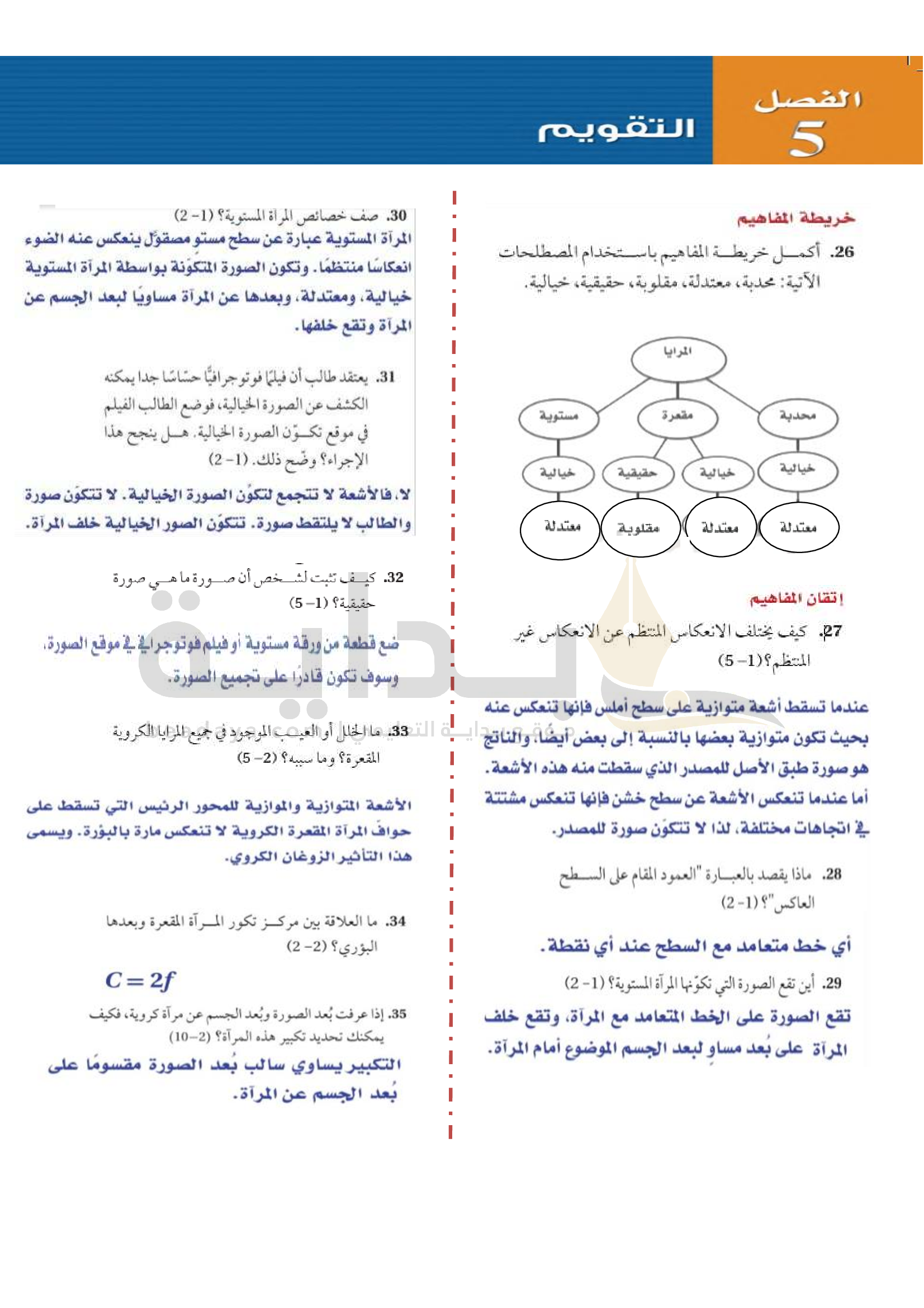 الفصل 5 - الانعكاس عن المرايا المستوية