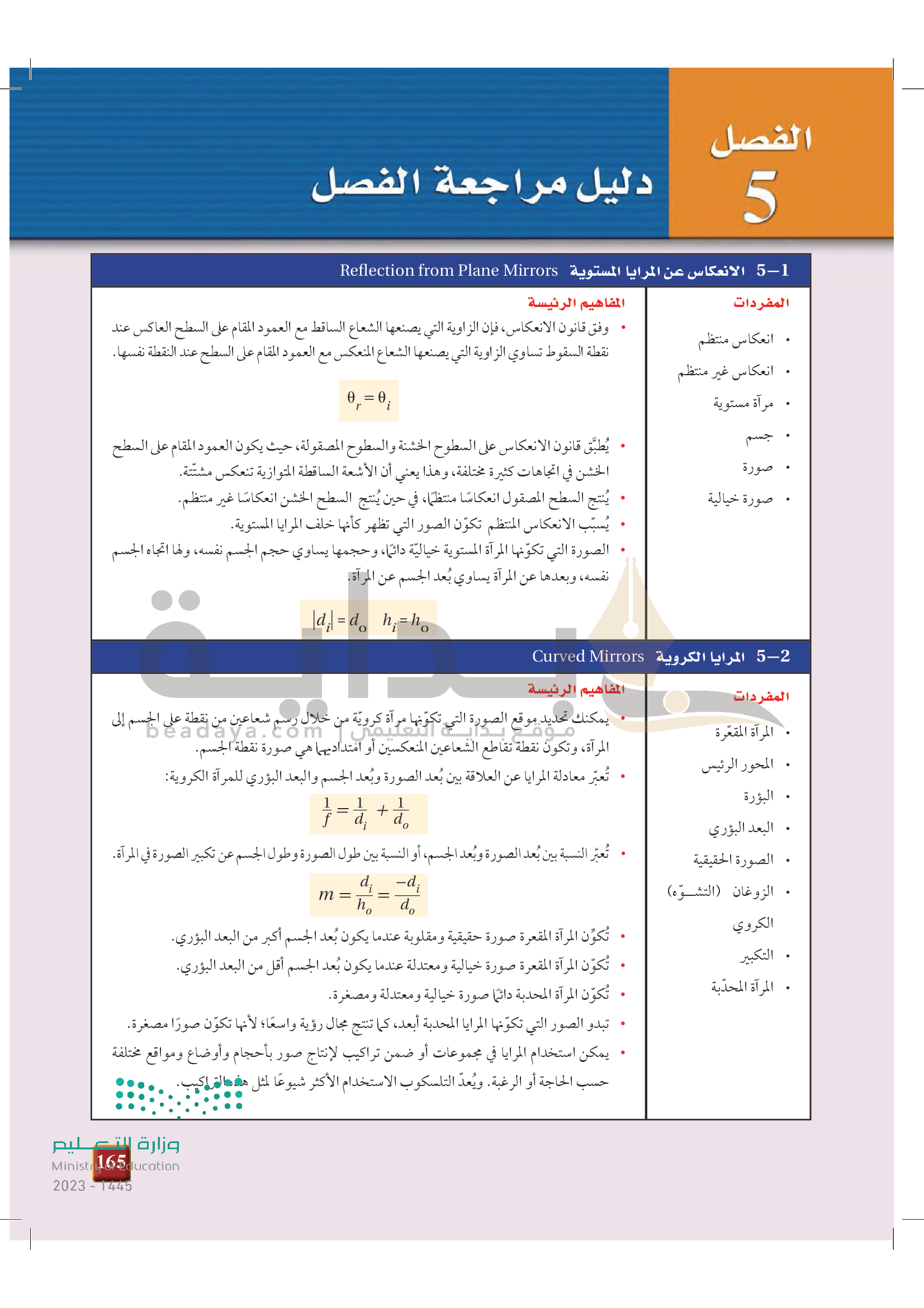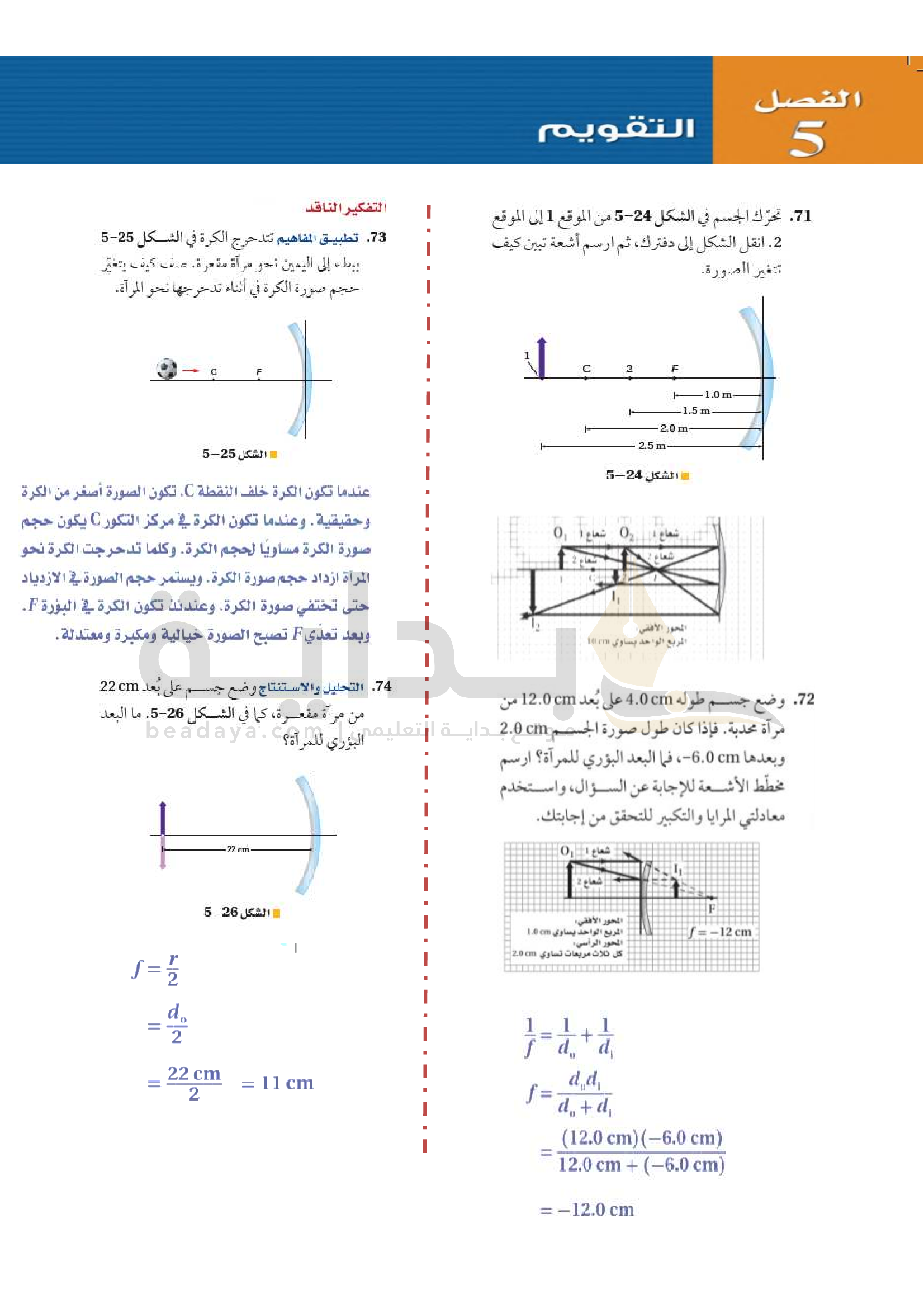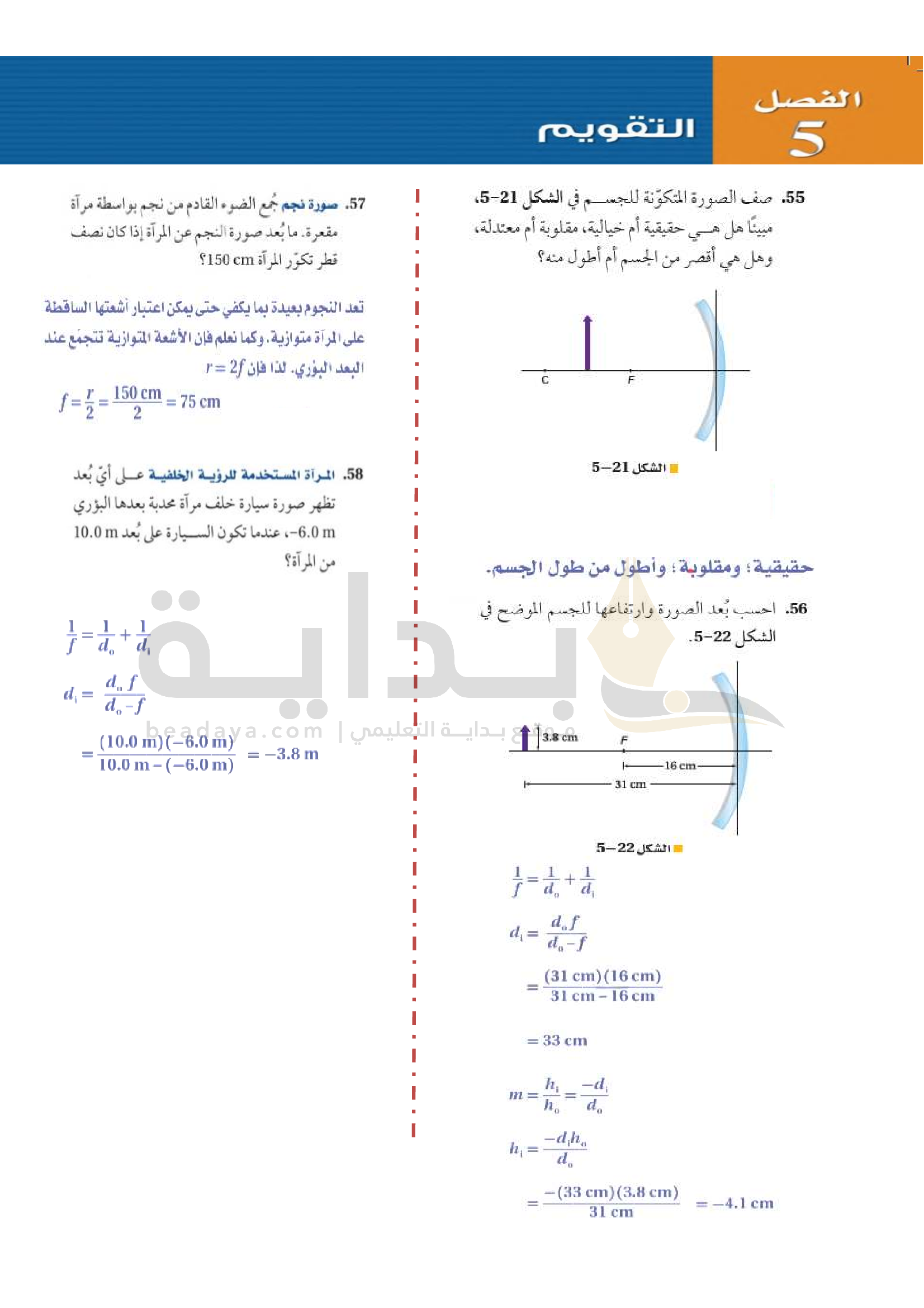 الفصل 5 - المرايا الكروية