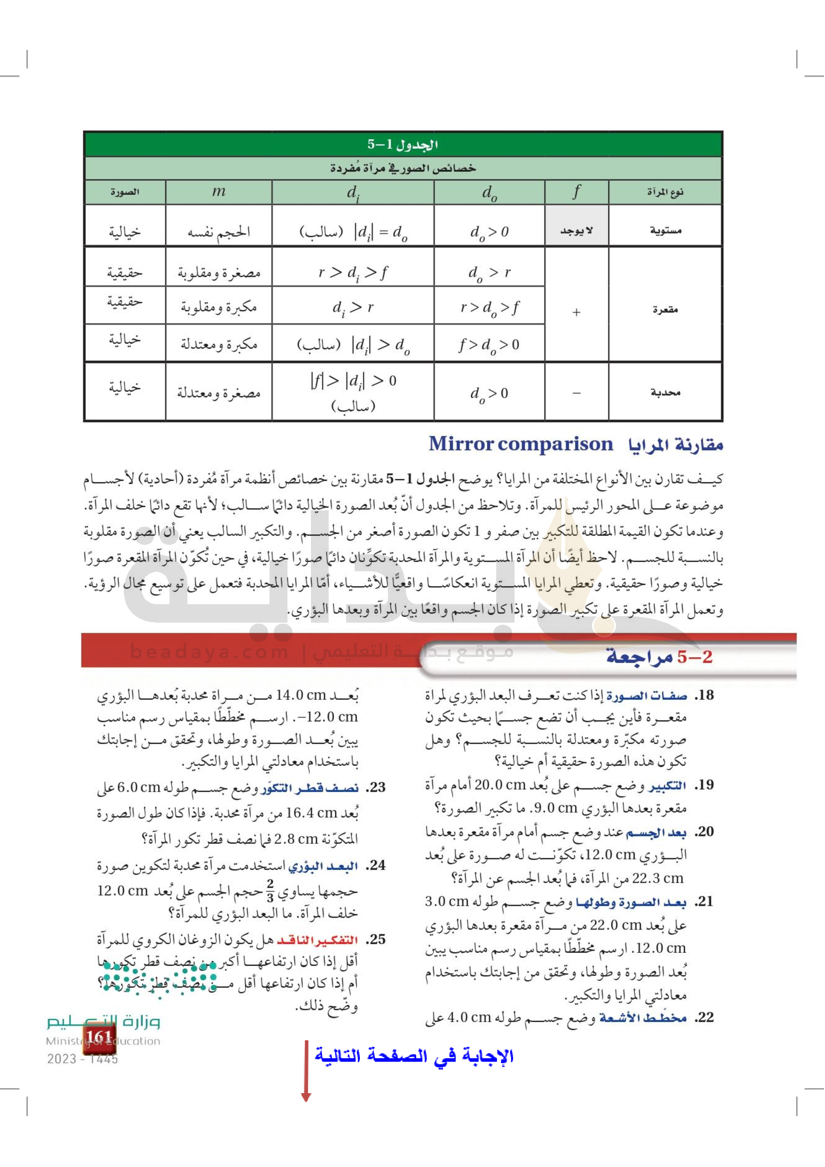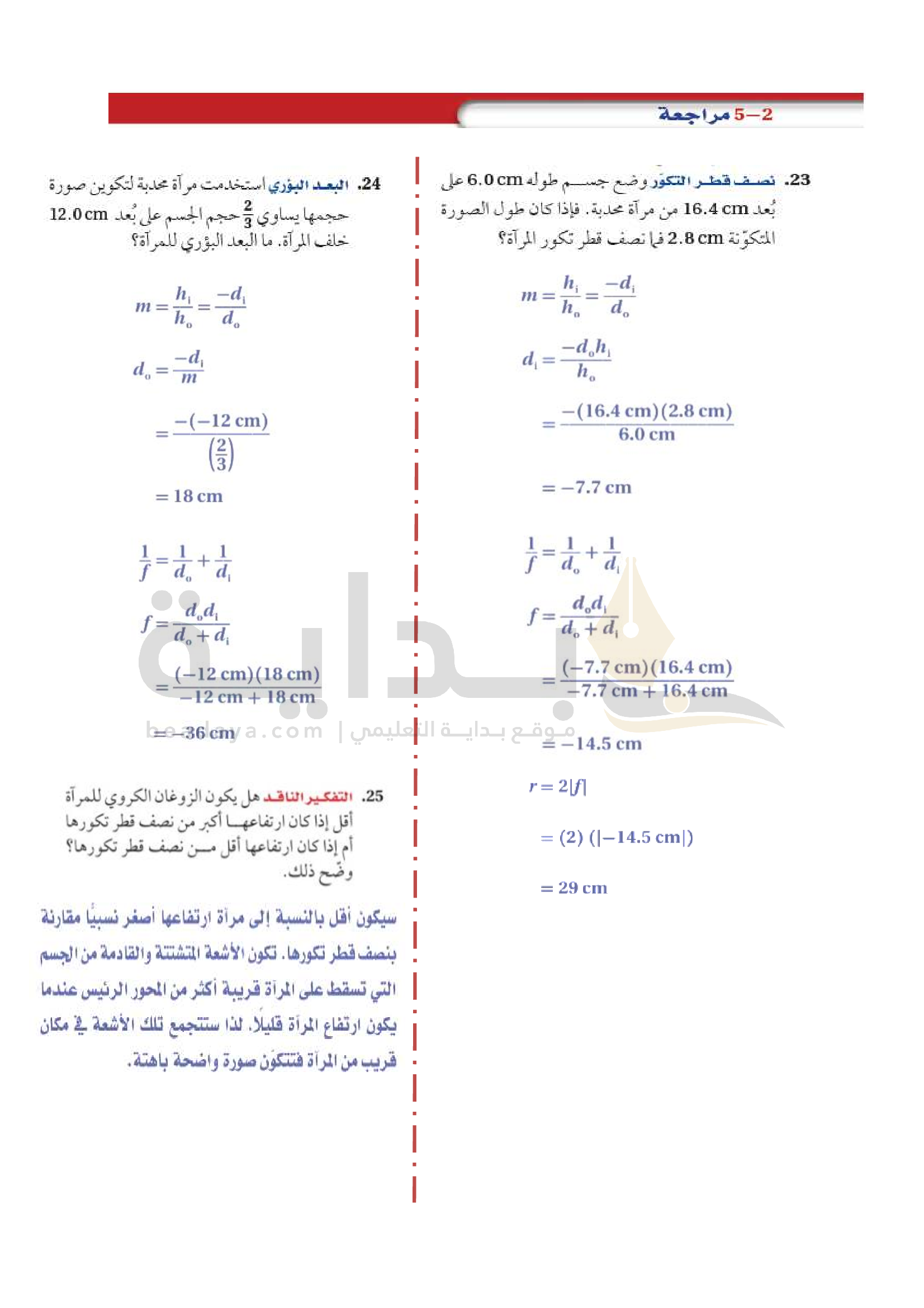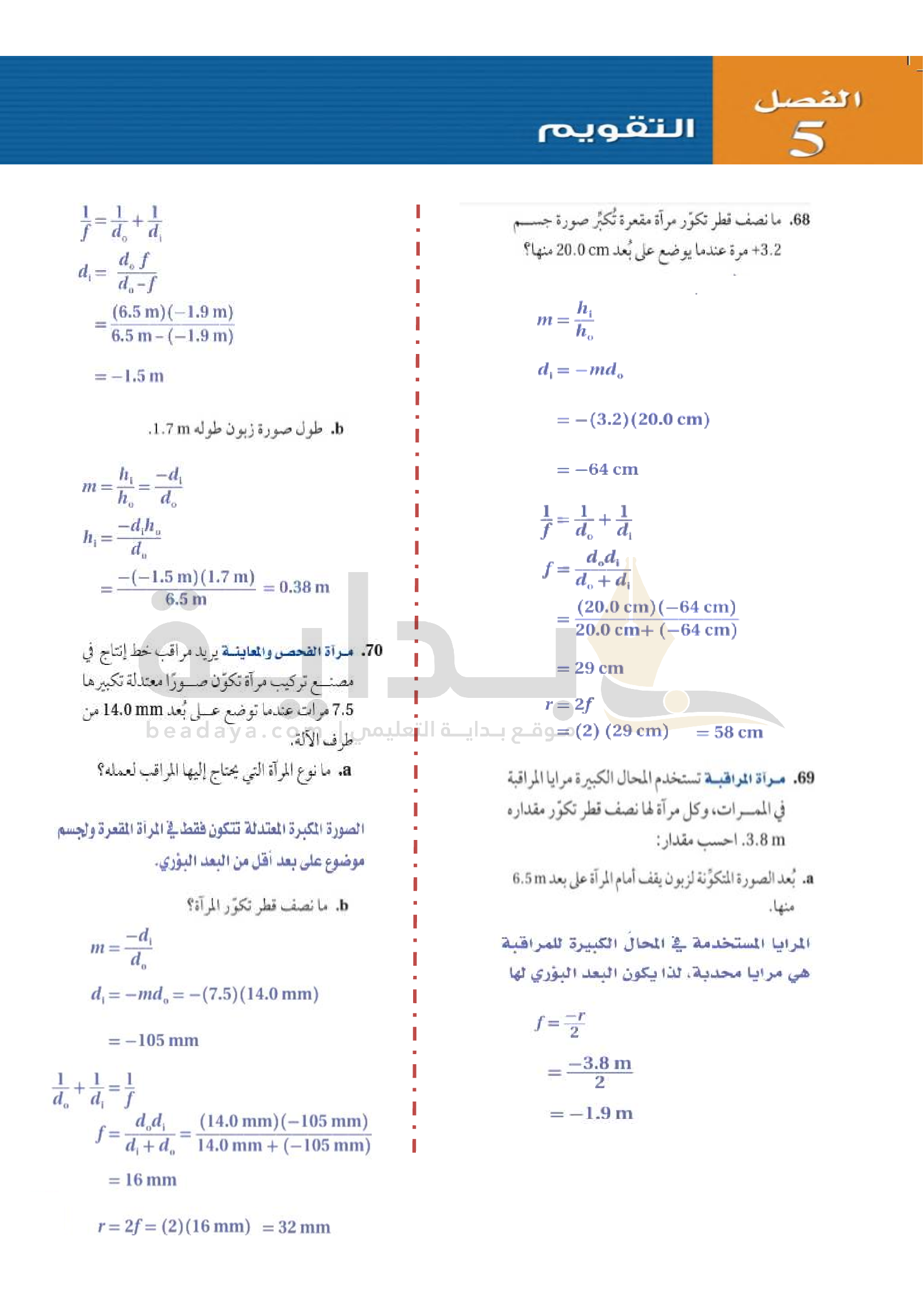 الفصل 5 - المرايا الكروية