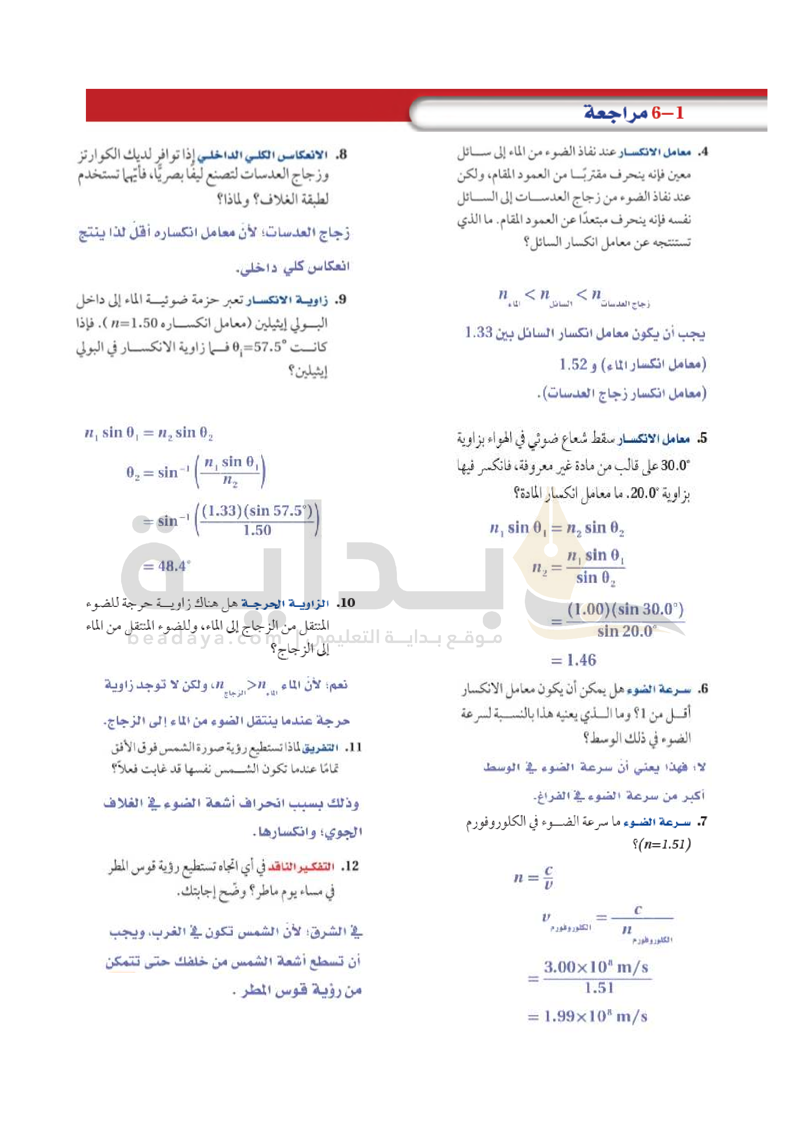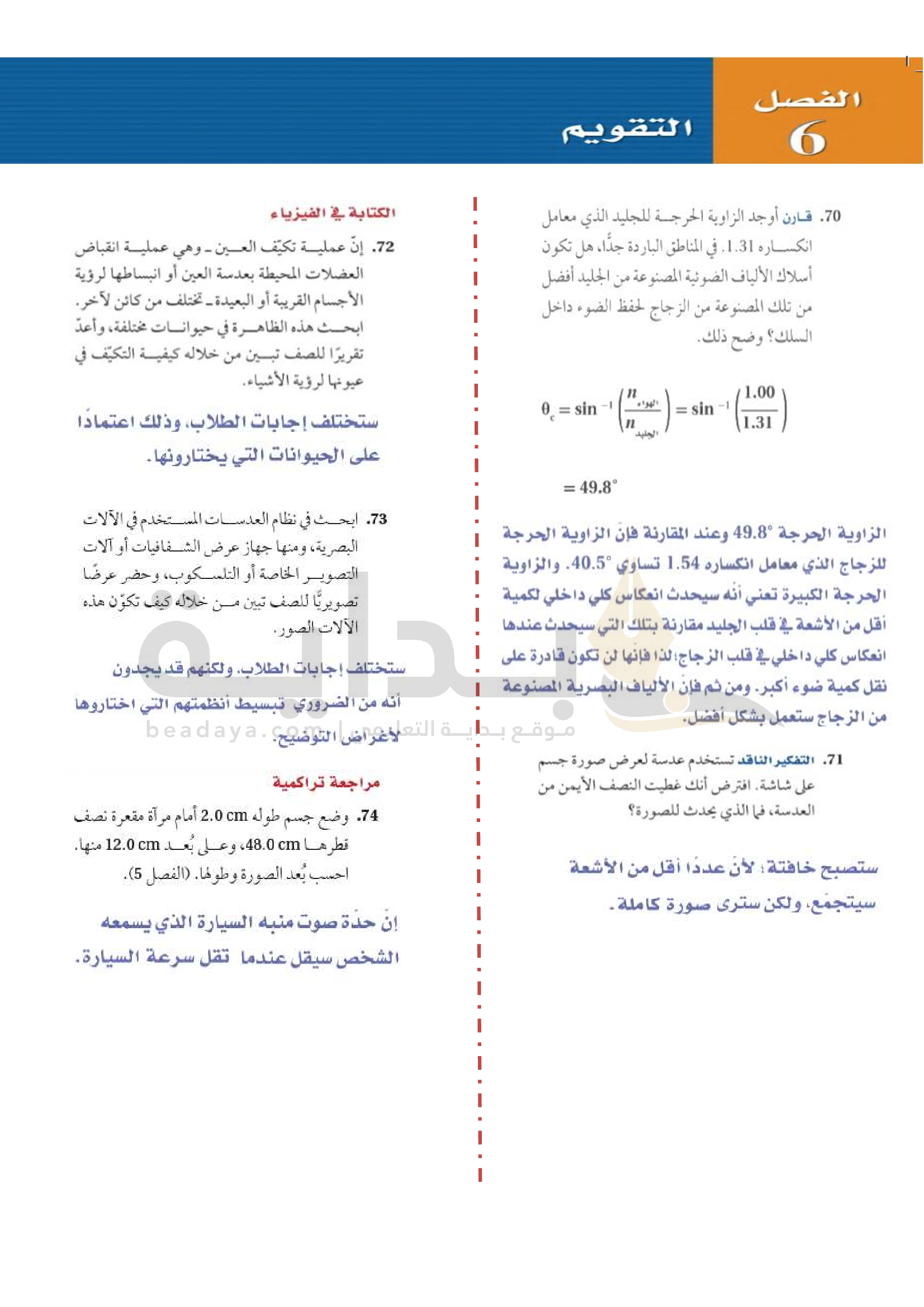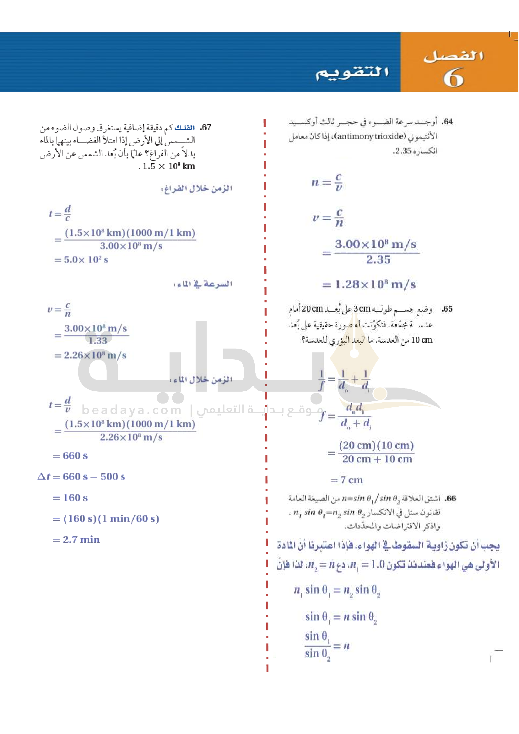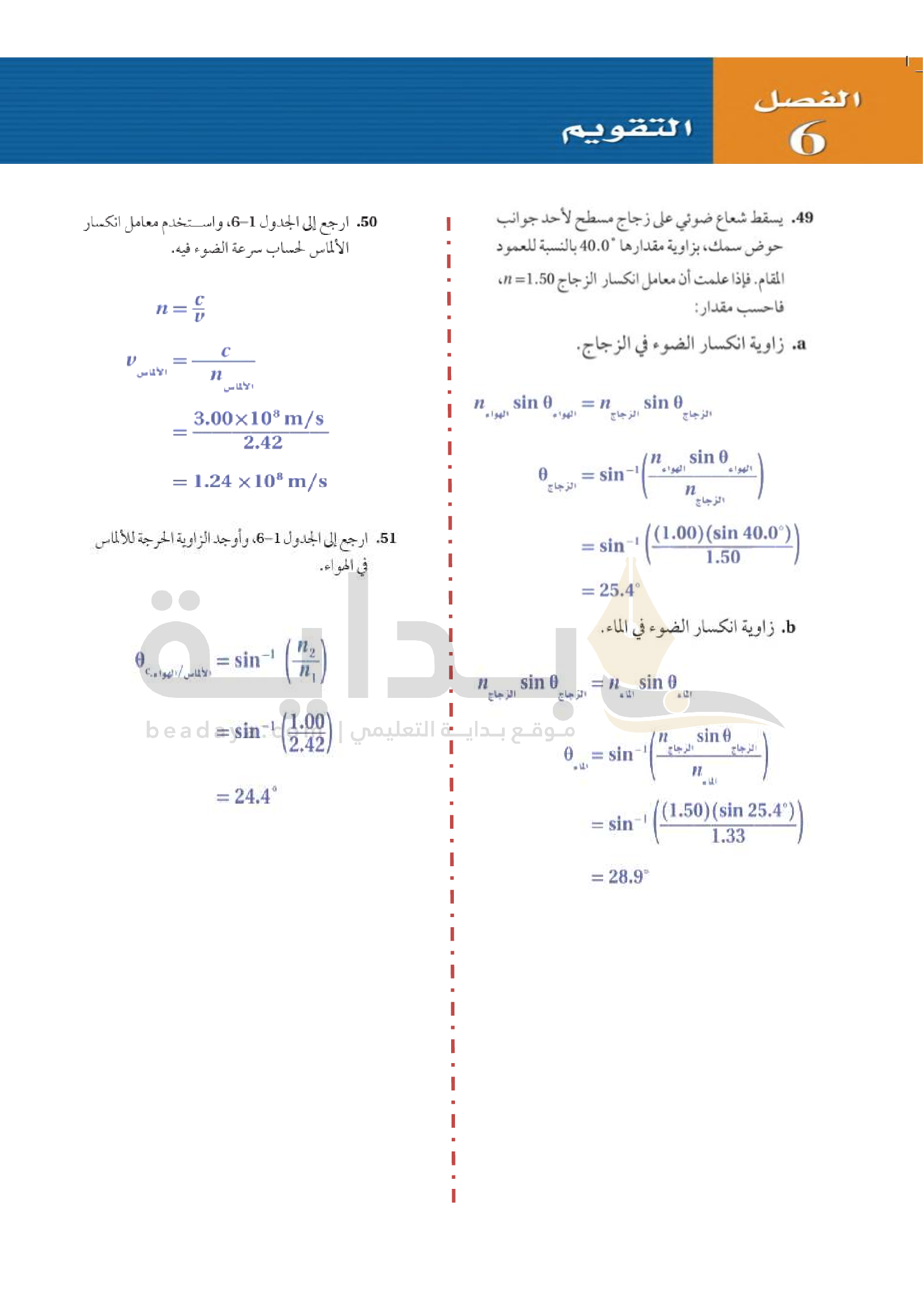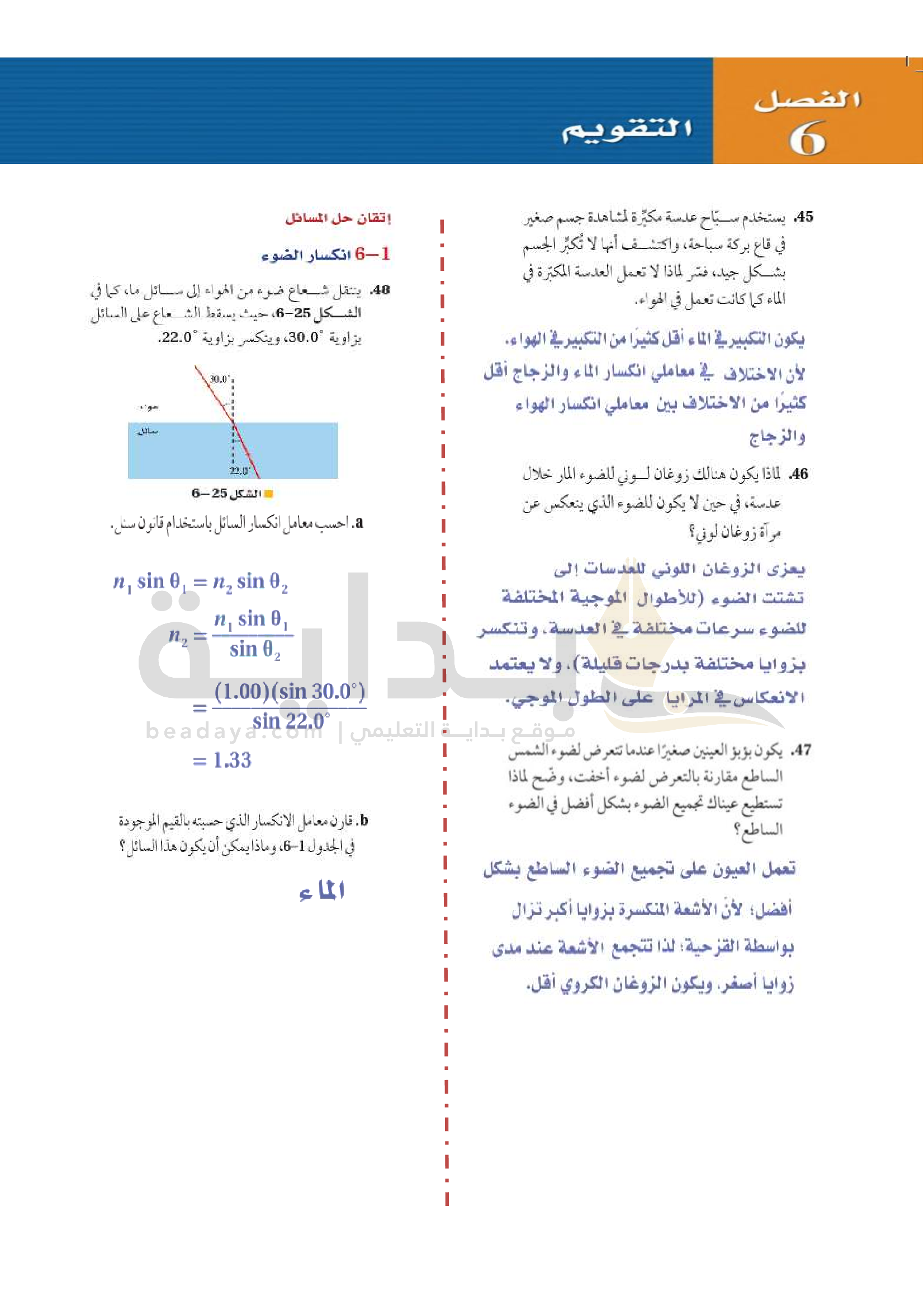 الفصل 6 - انكسار الضوء