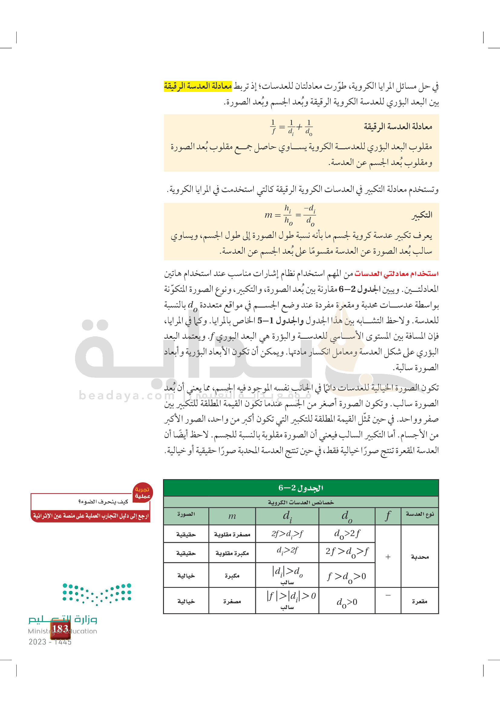 الفصل 6 - العدسات المحدبة والمقعرة