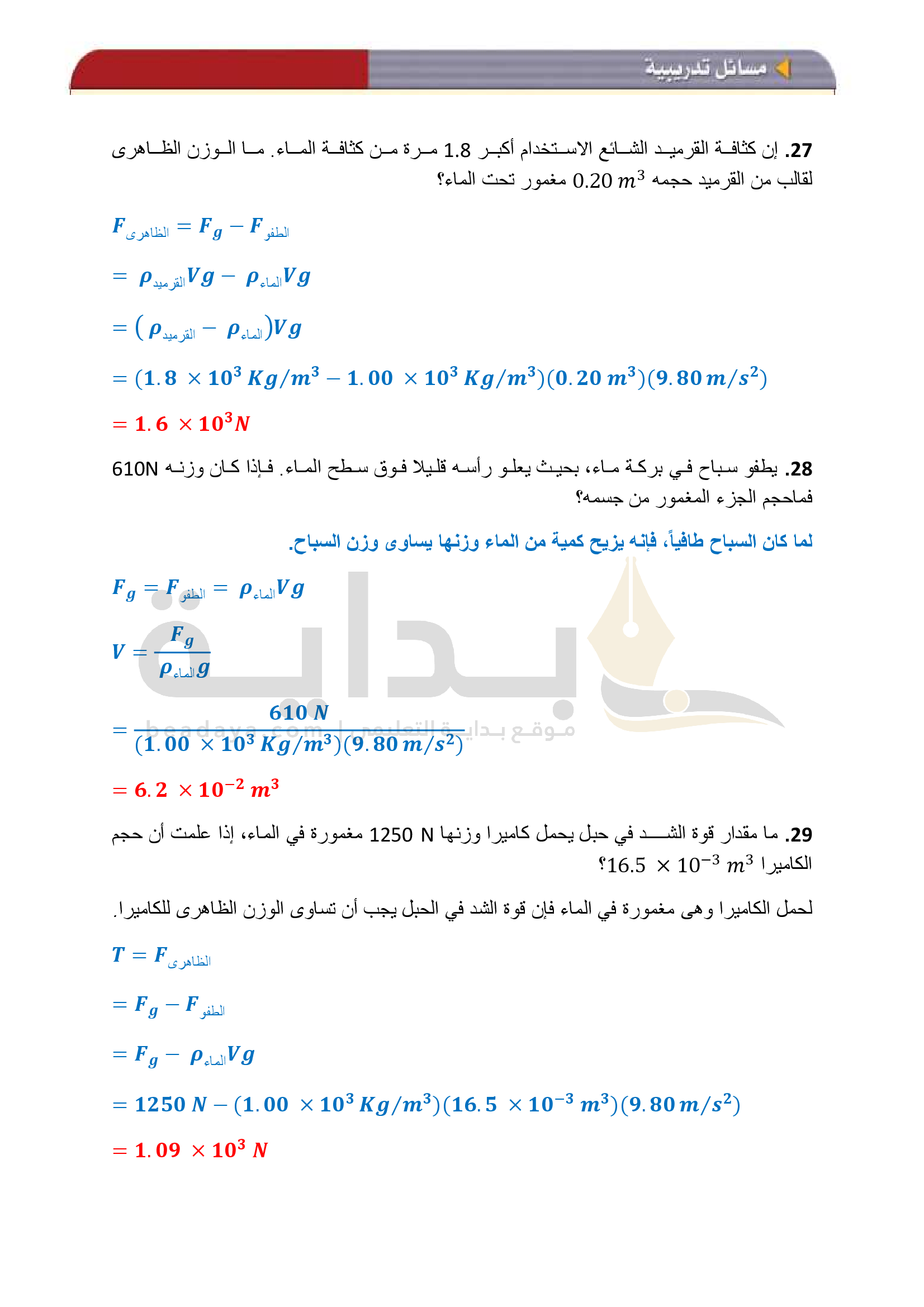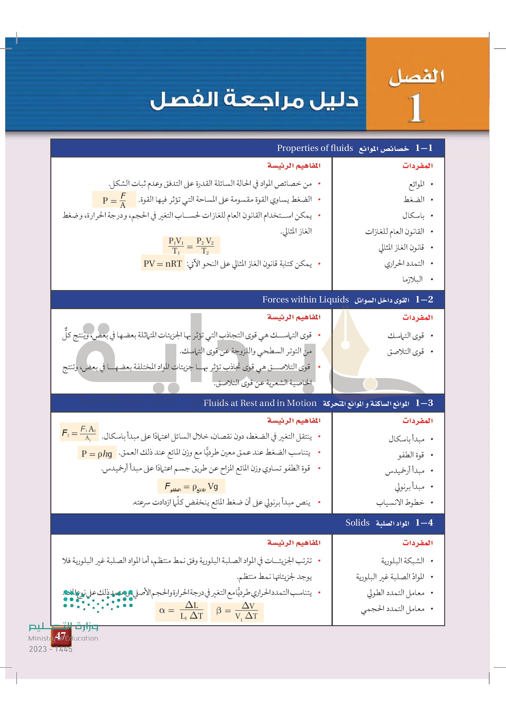 الفصل 1 - القوى داخل السوائل