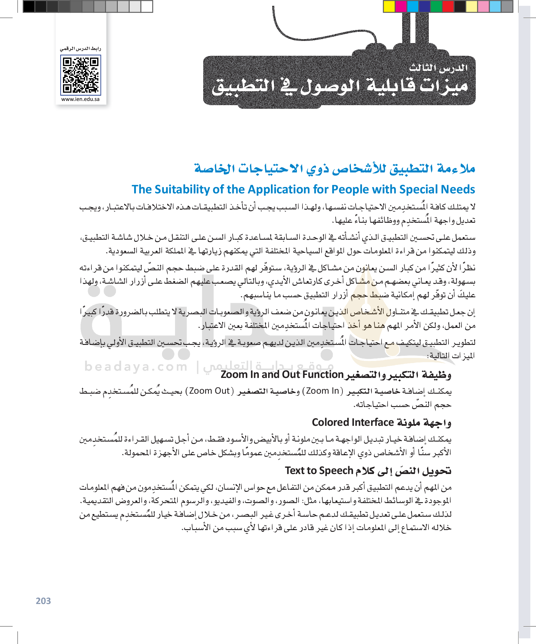 الوحدة 4 - ميزات قابلية الوصول في التطبيق