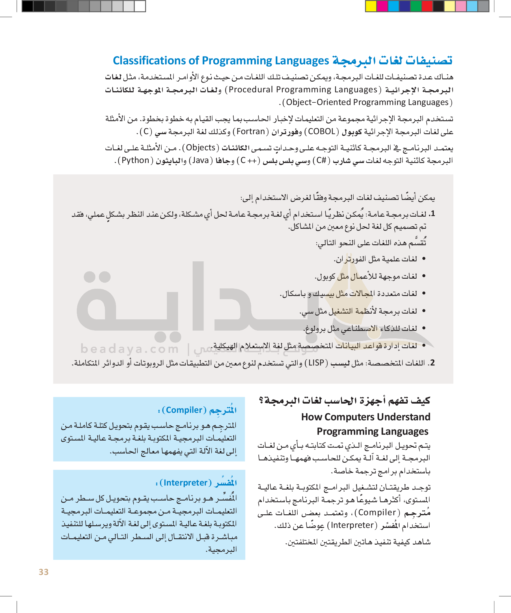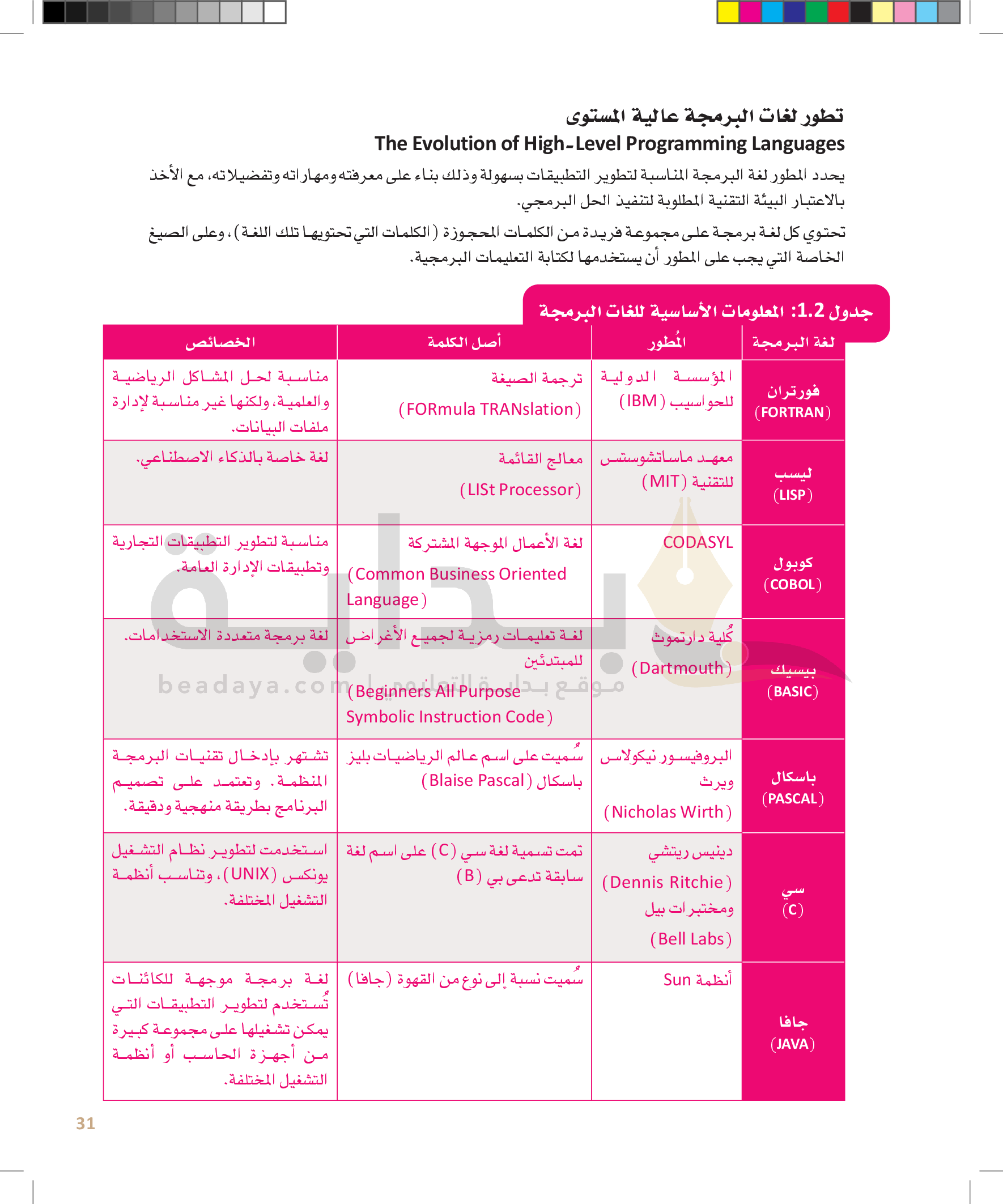الوحدة 1 - لغات البرمجة ومُعالجاتها