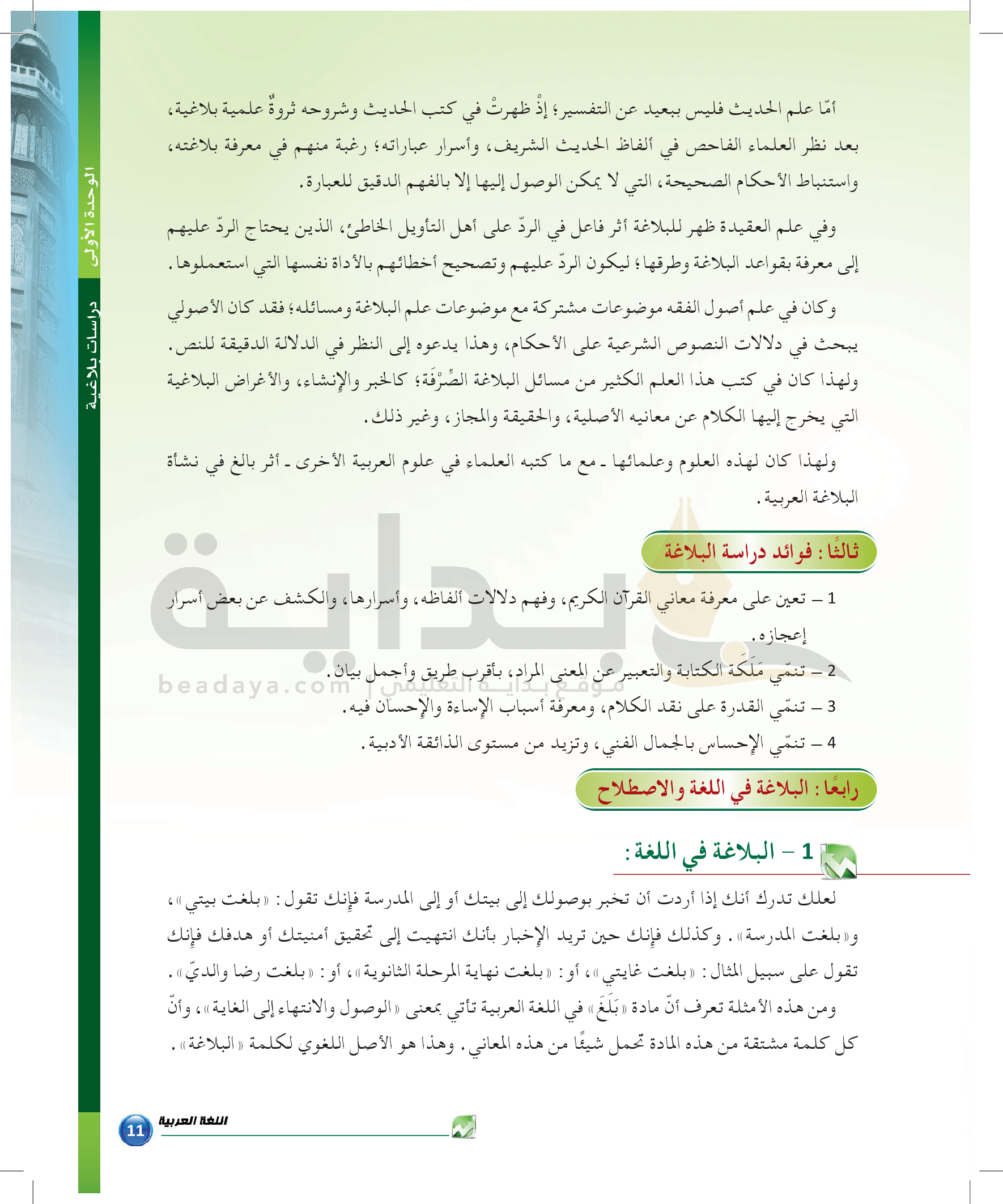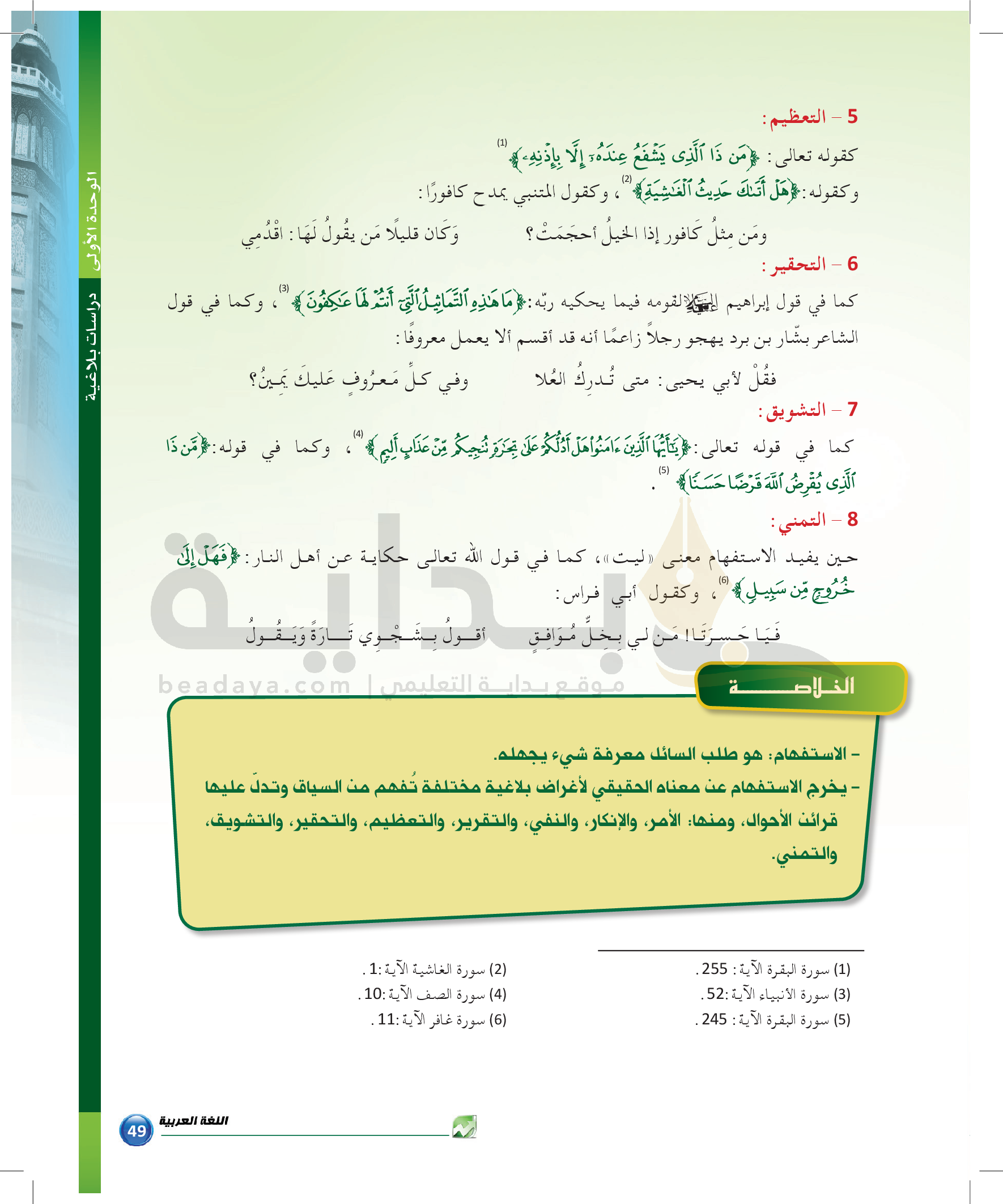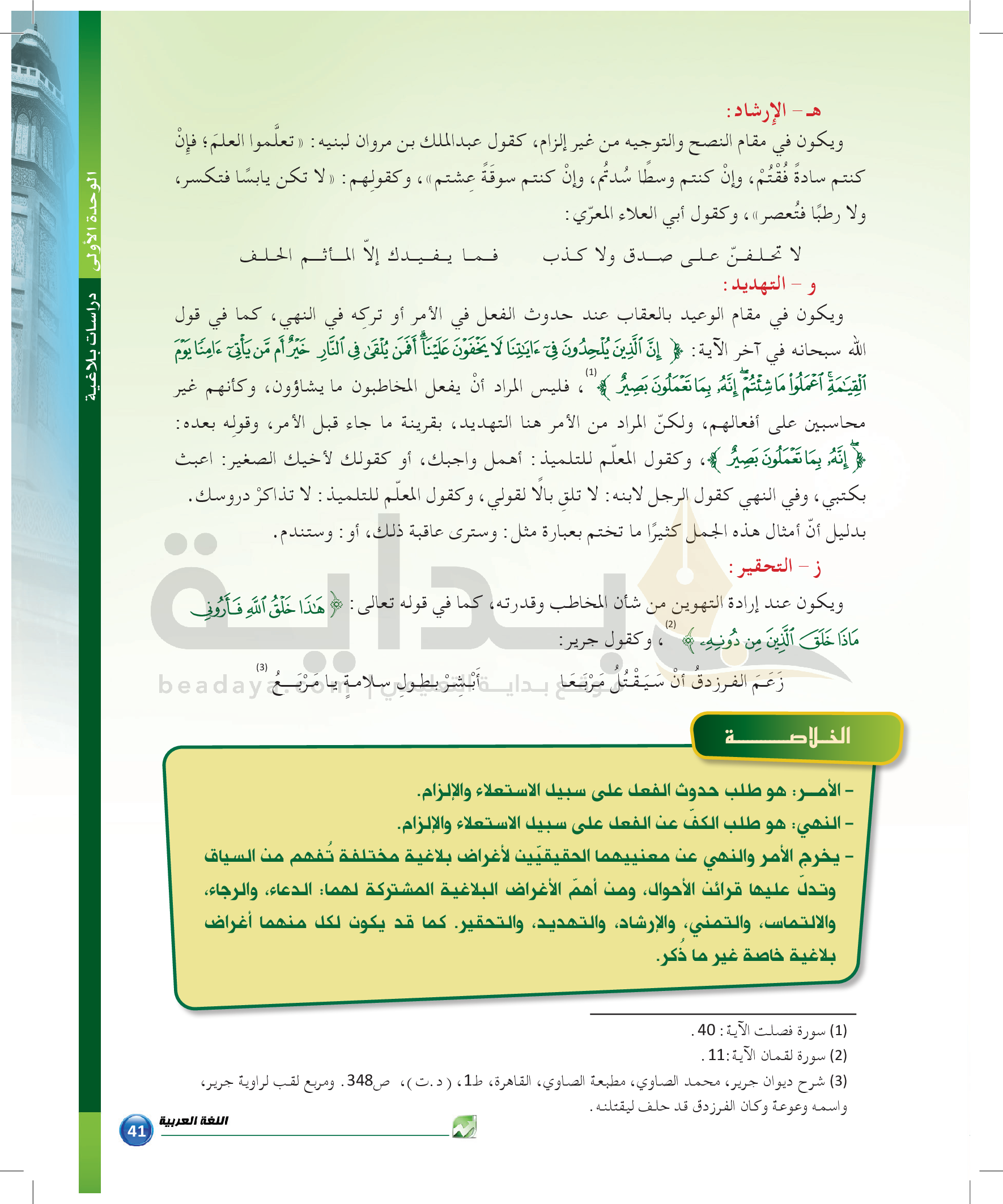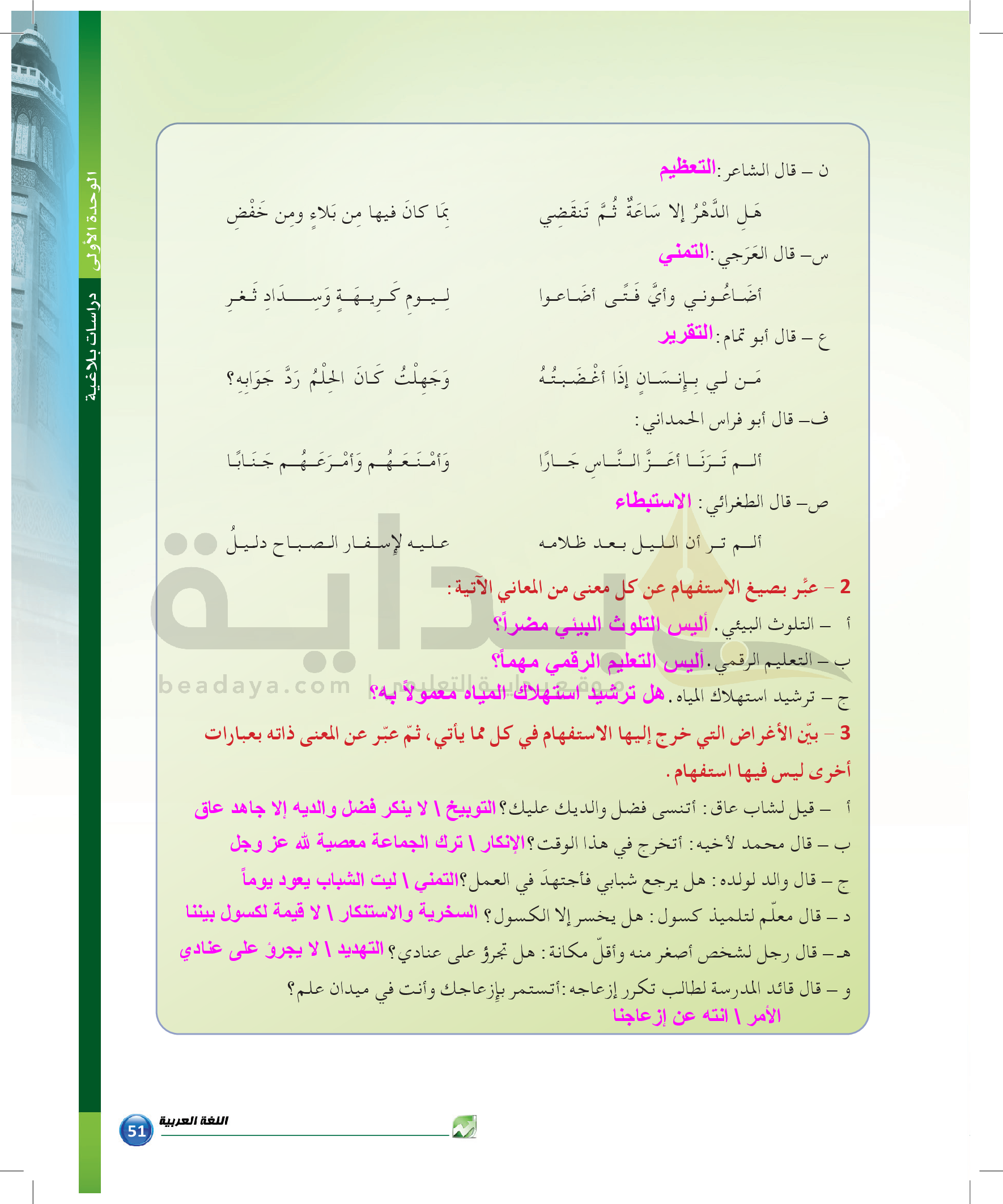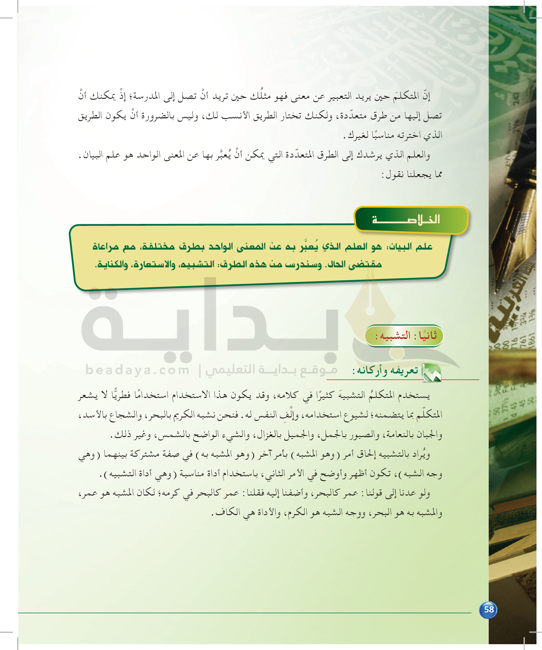 الوحدة 1 - الموضوع الثالث: من مباحث علم البيان
