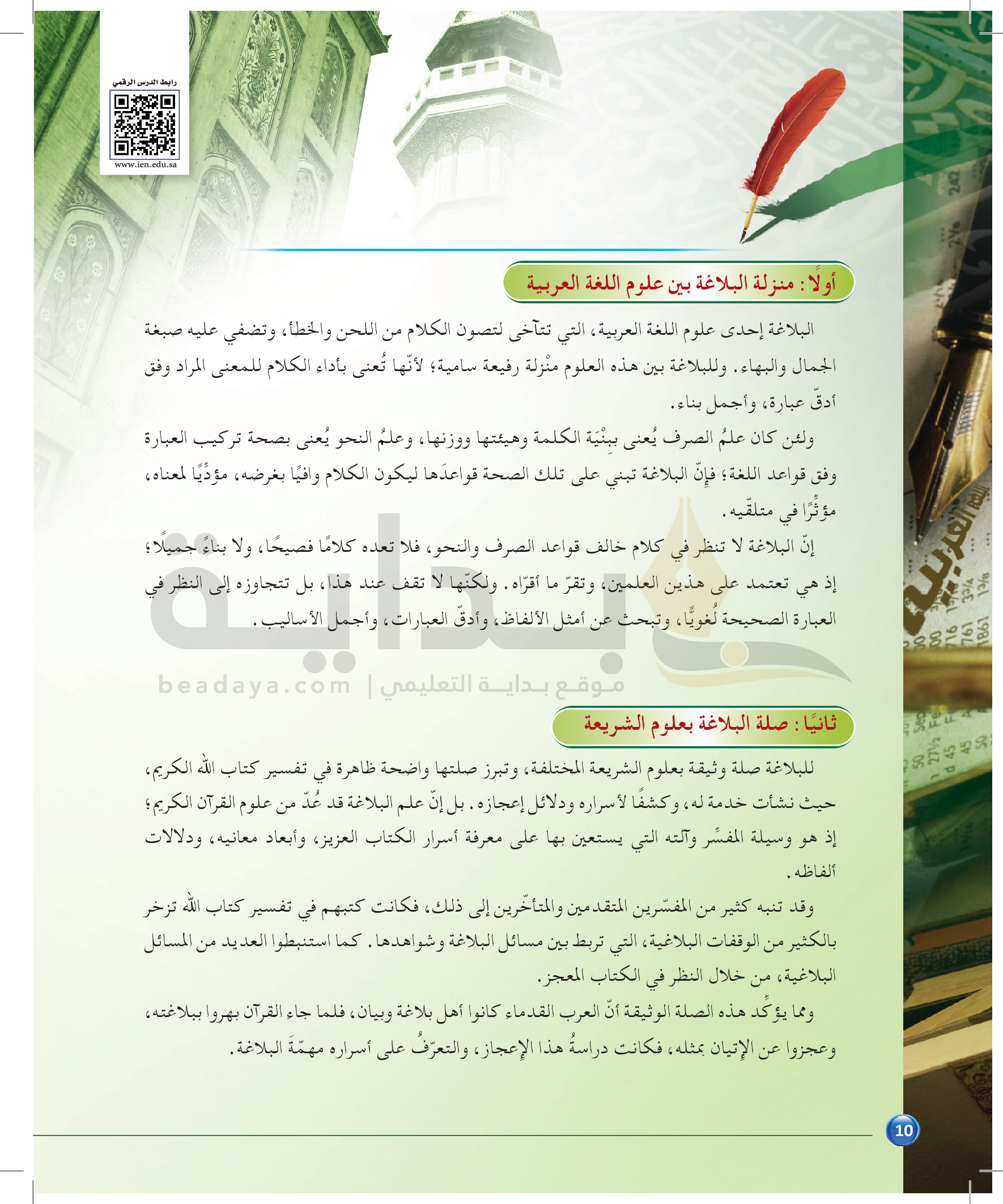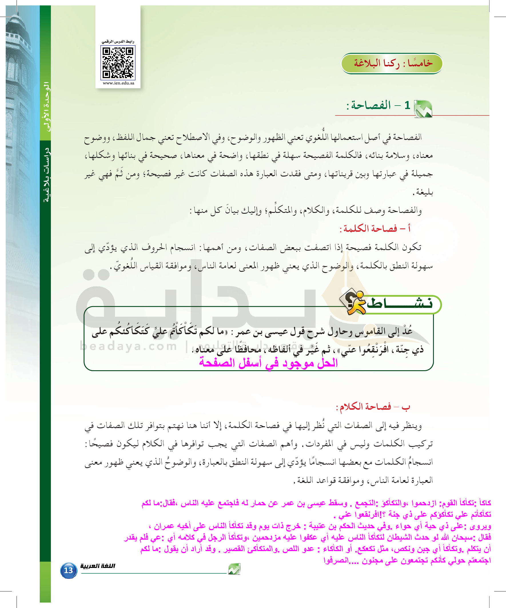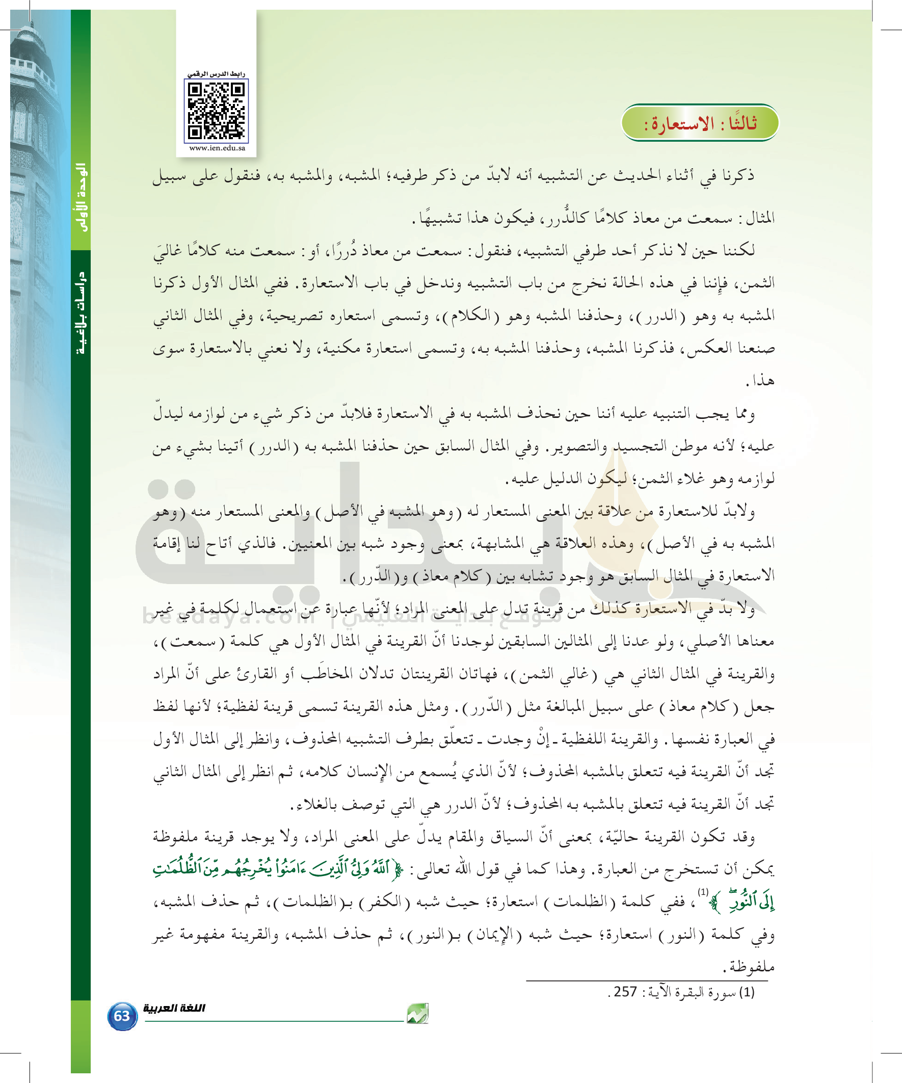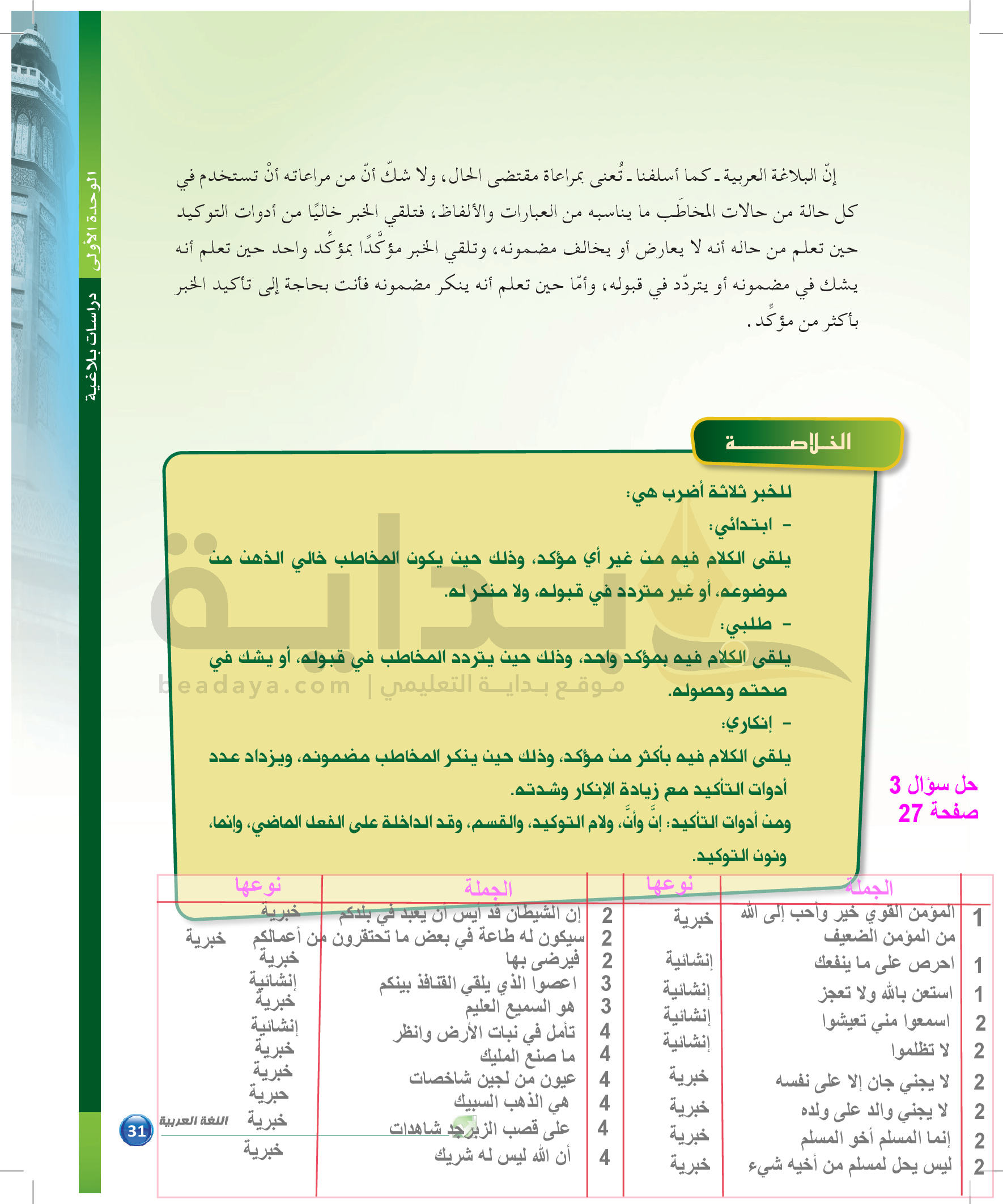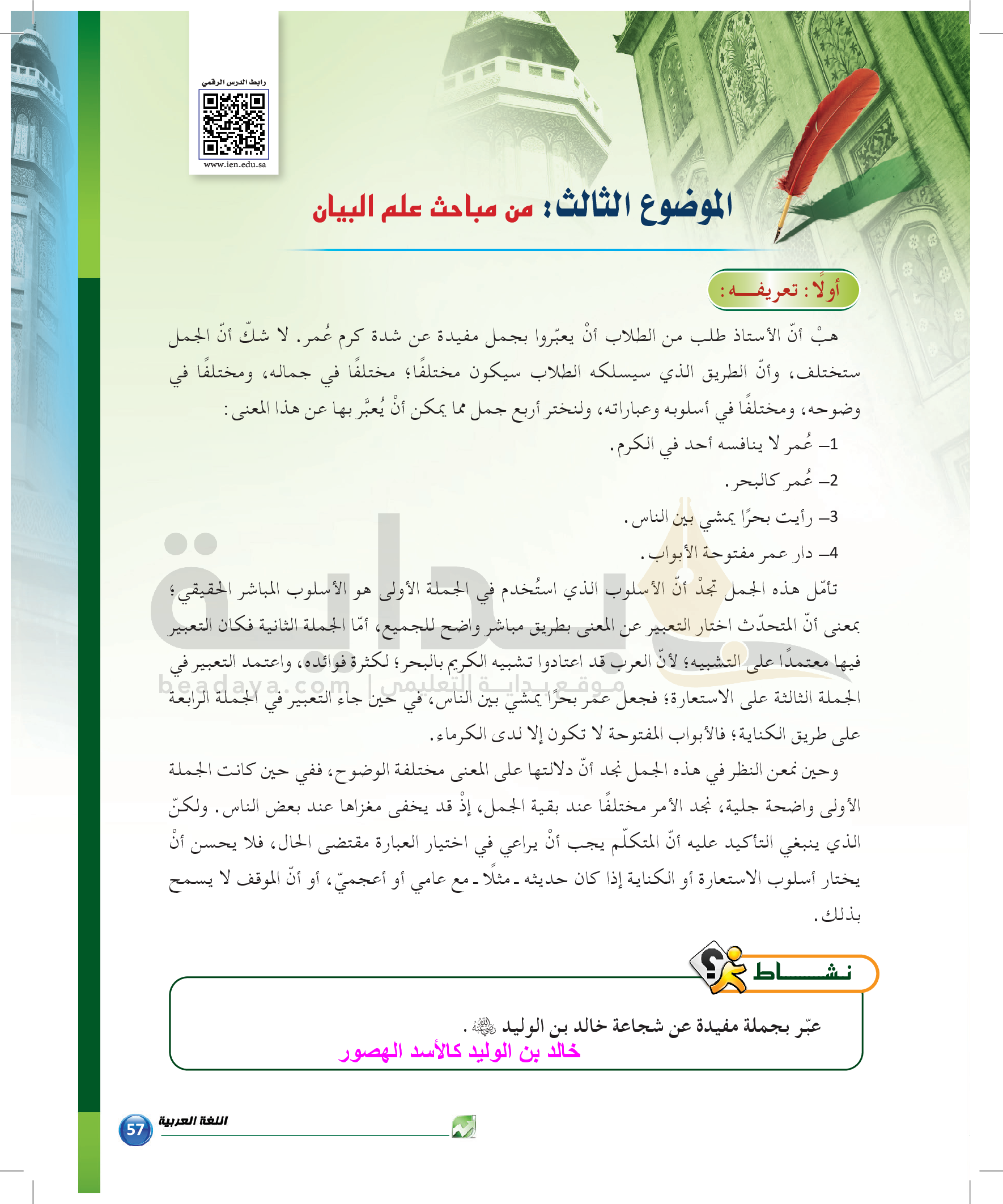 الوحدة 1 - الموضوع الثالث: من مباحث علم البيان