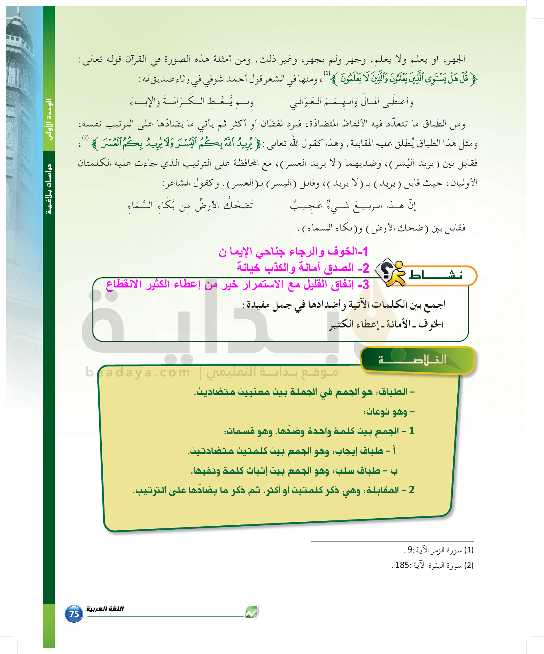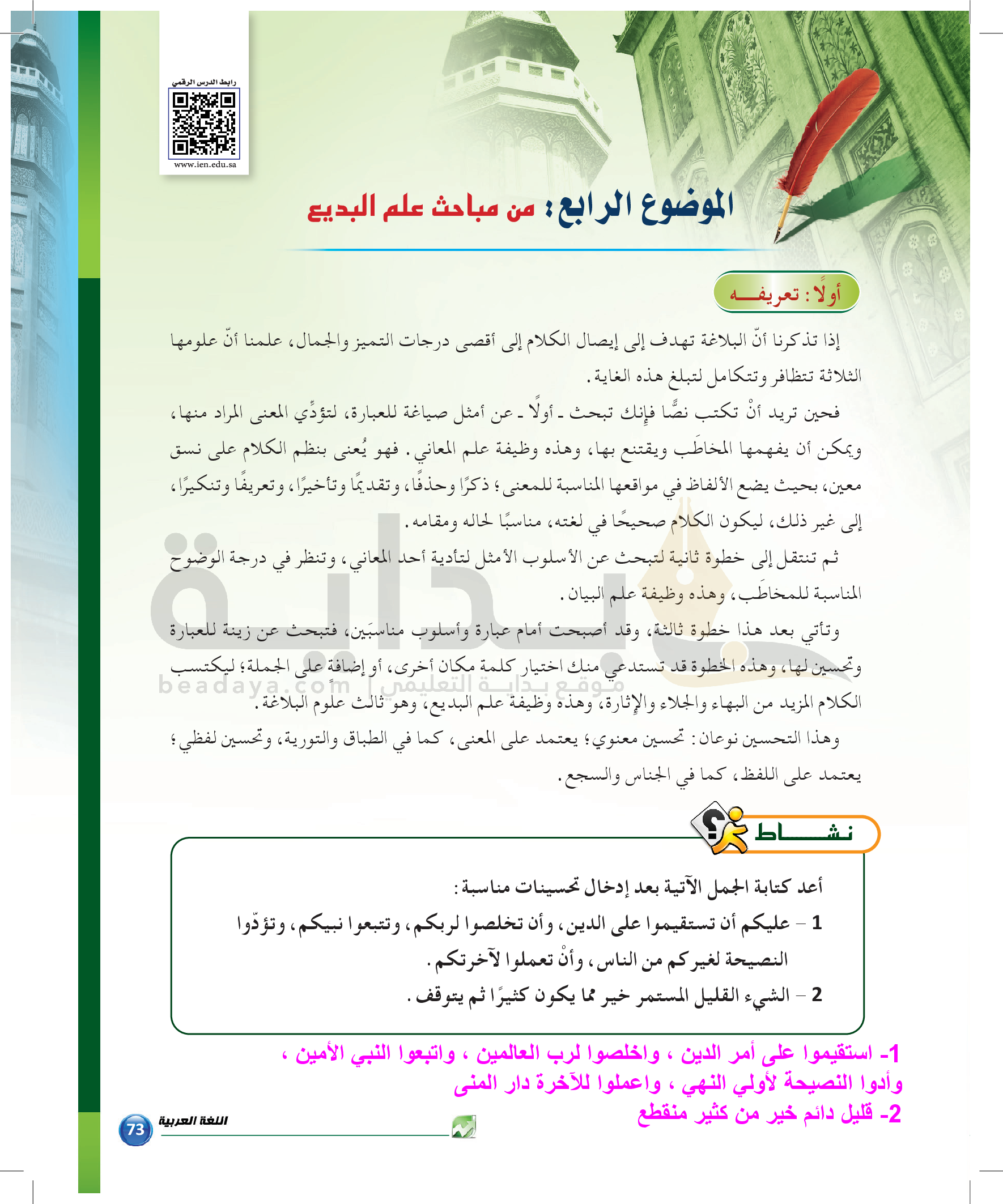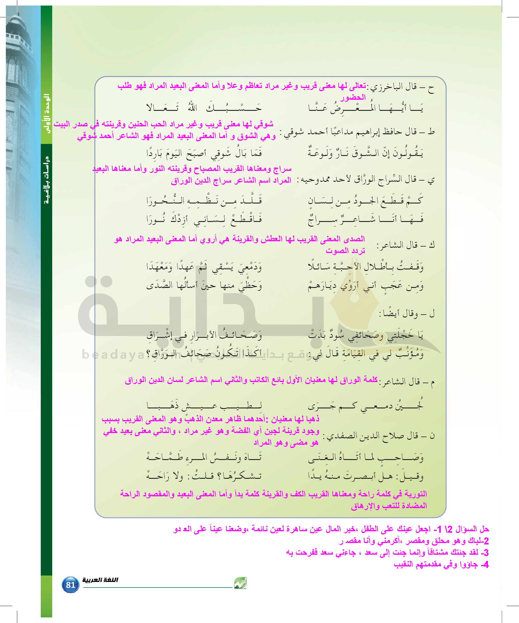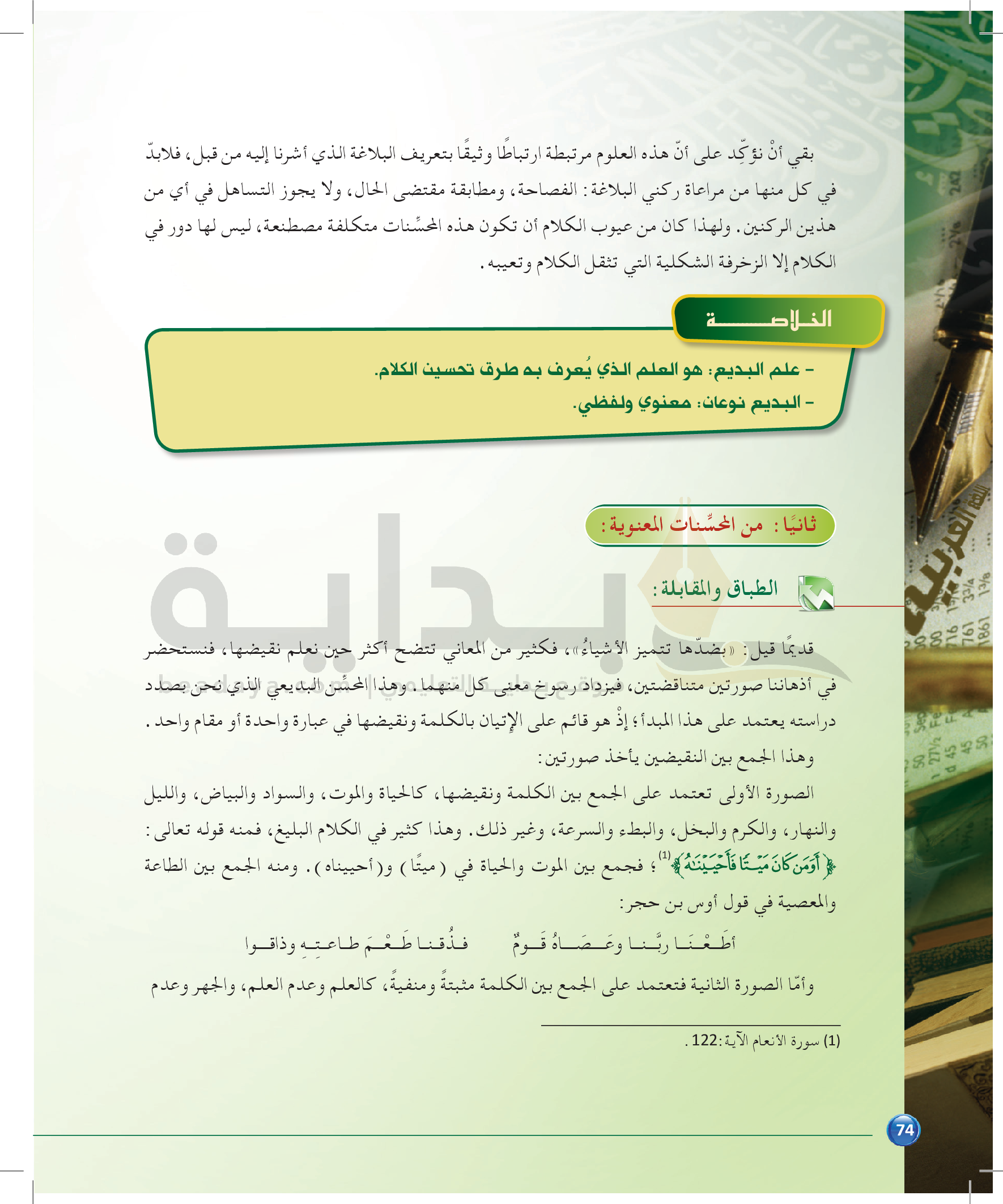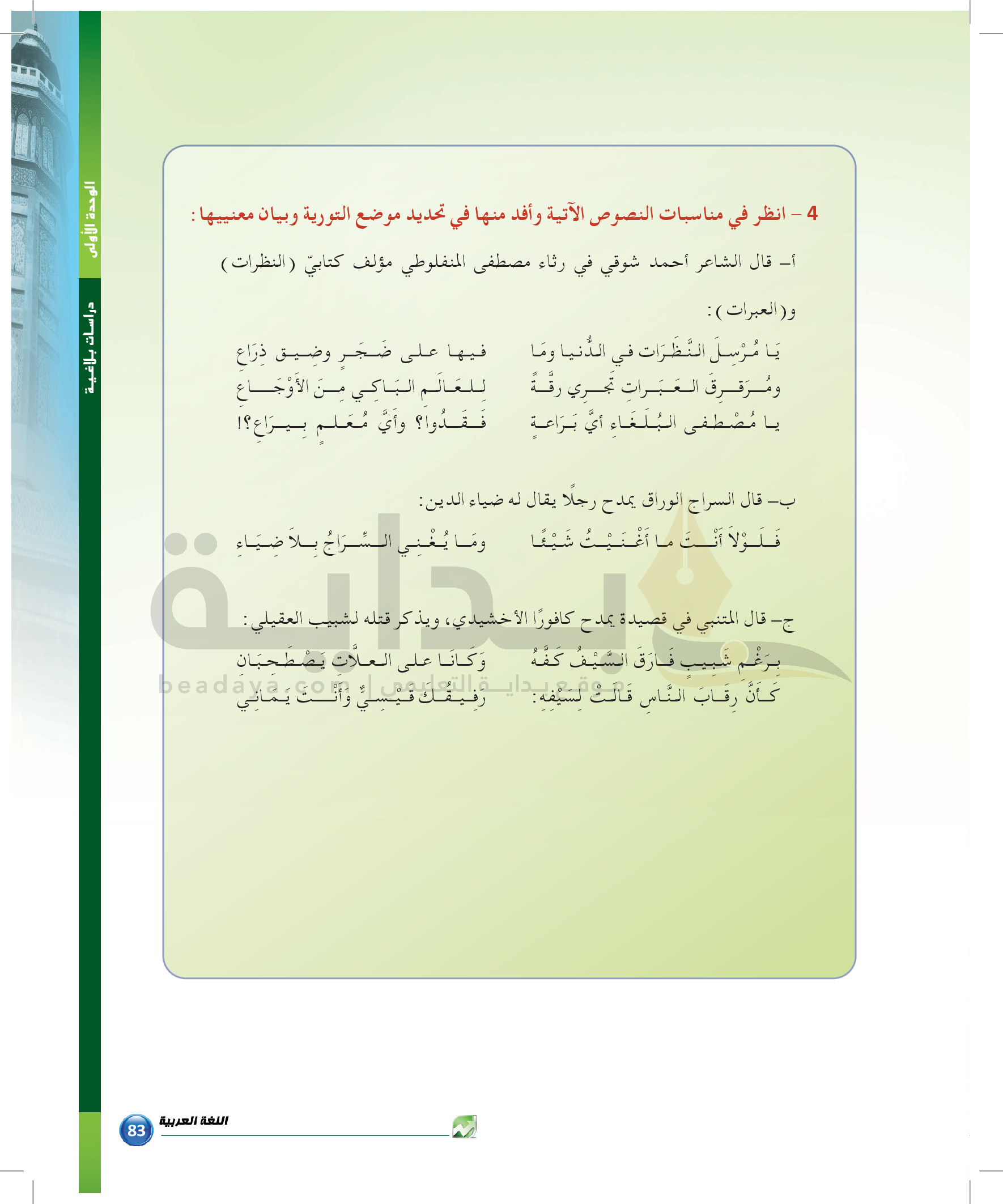 الوحدة 1 - الموضوع الرابع: من مباحث علم البديع