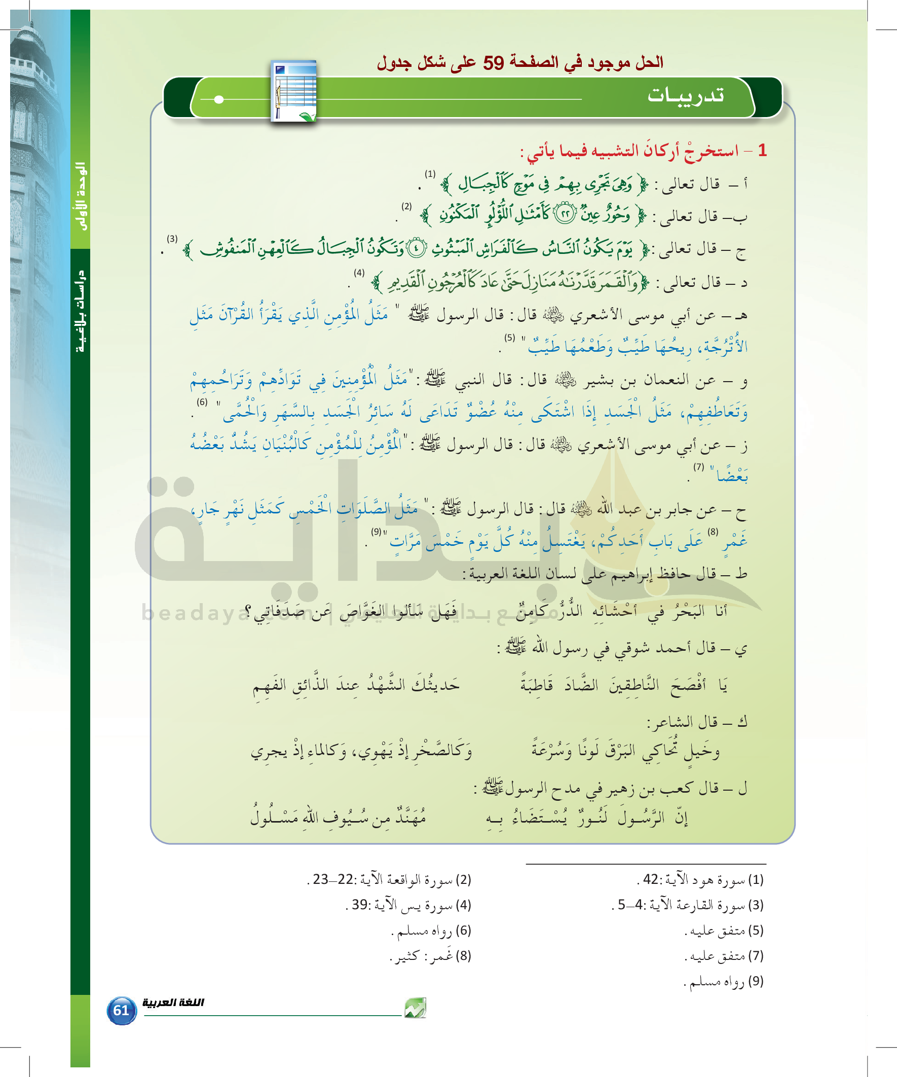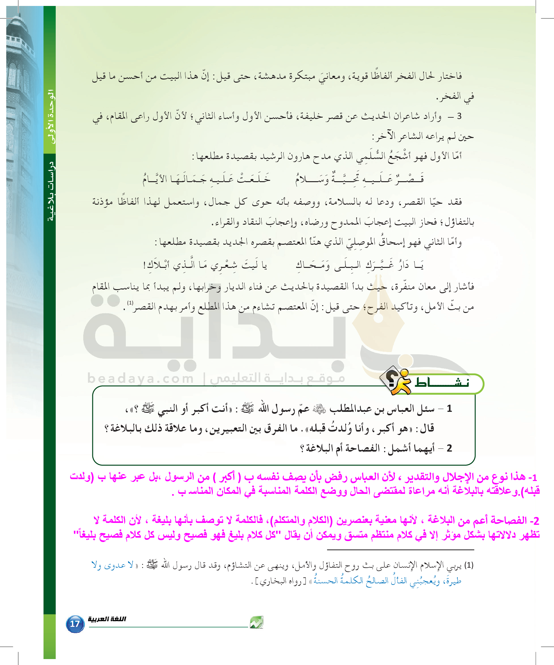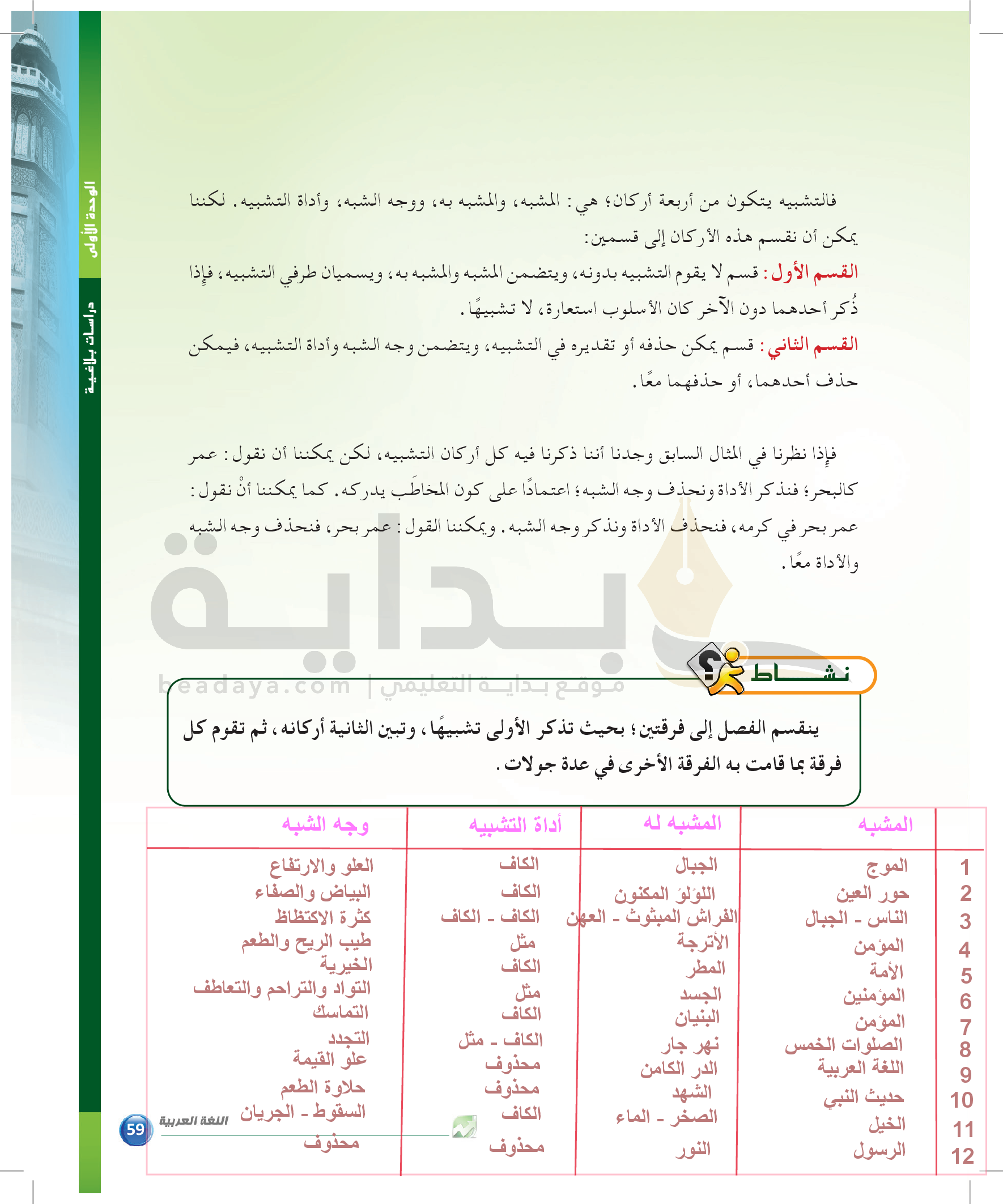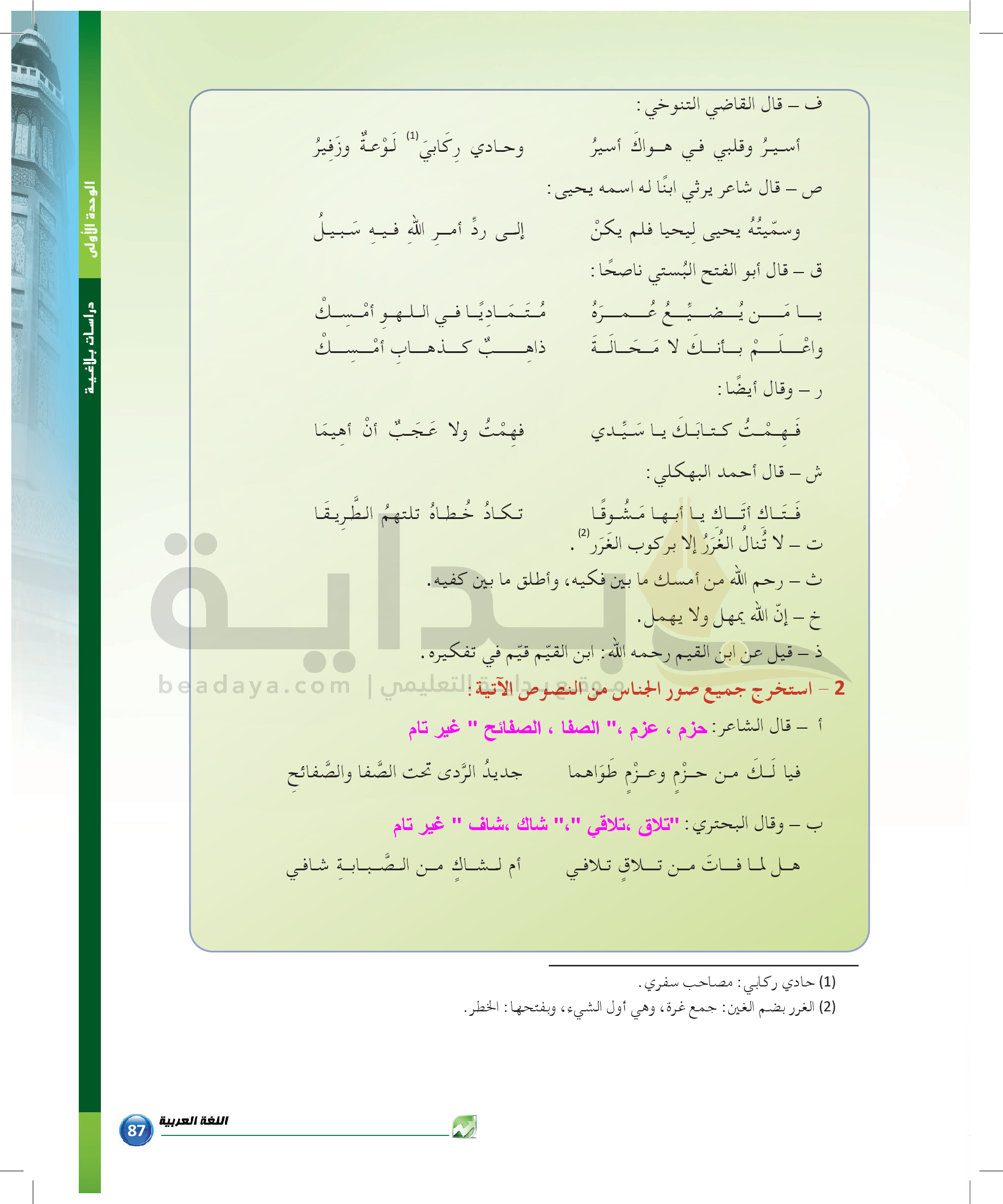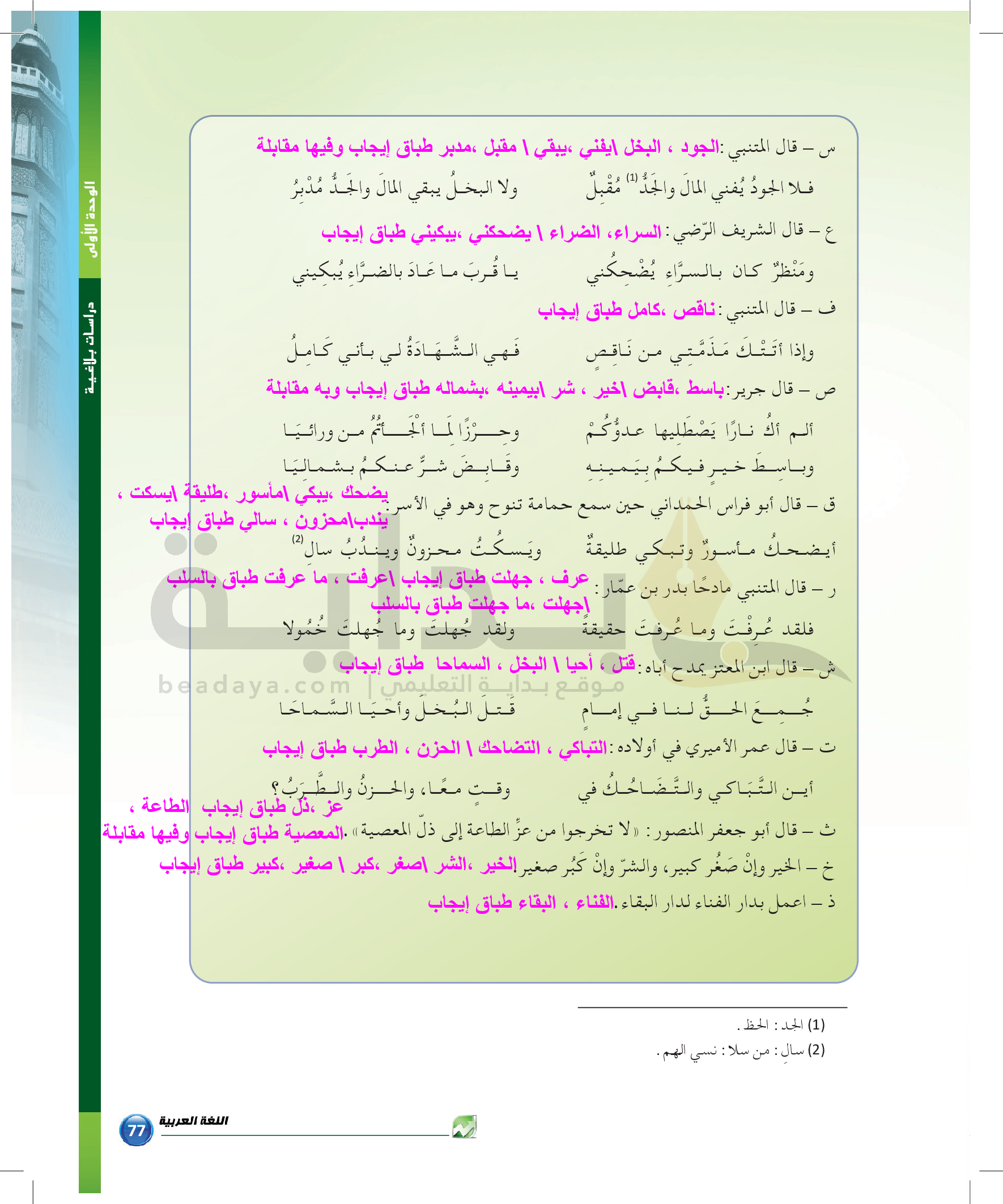الوحدة 1 - الموضوع الرابع: من مباحث علم البديع