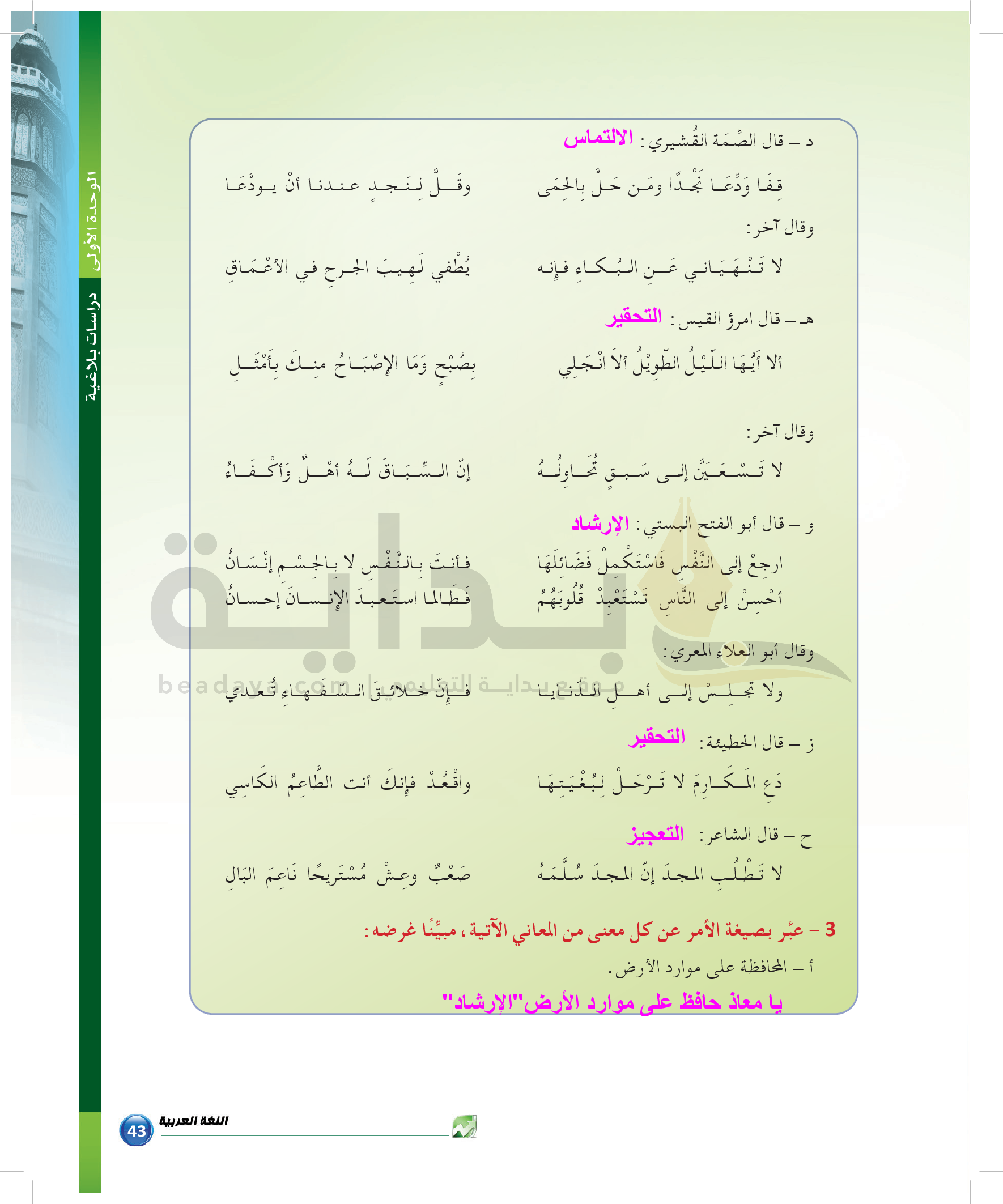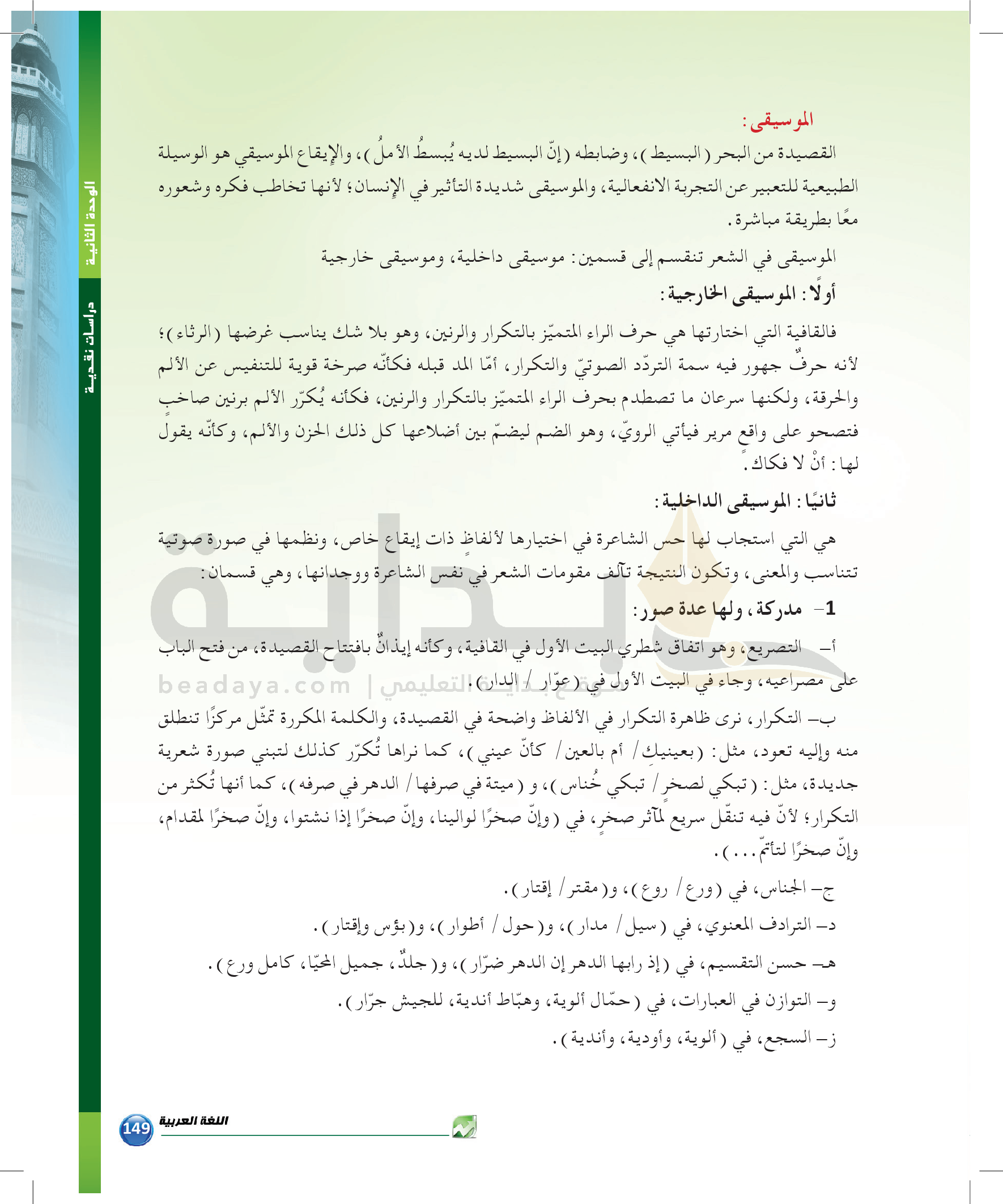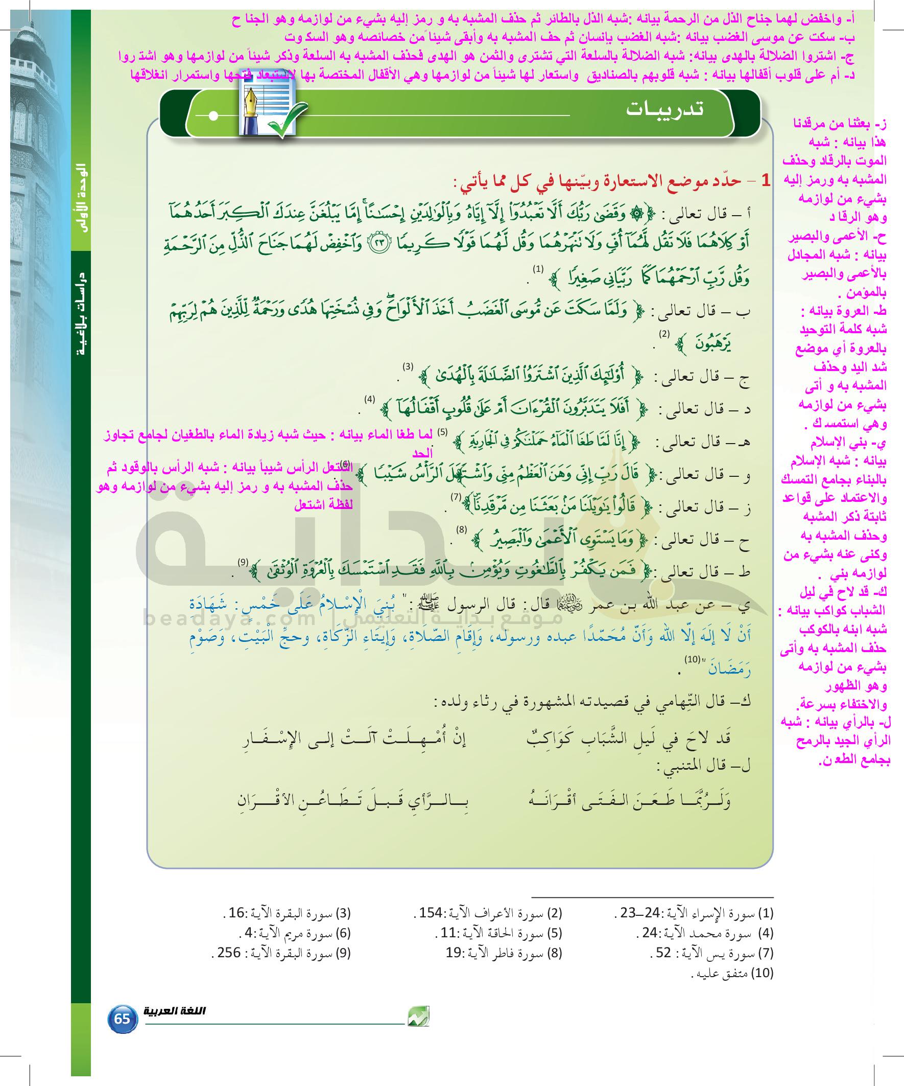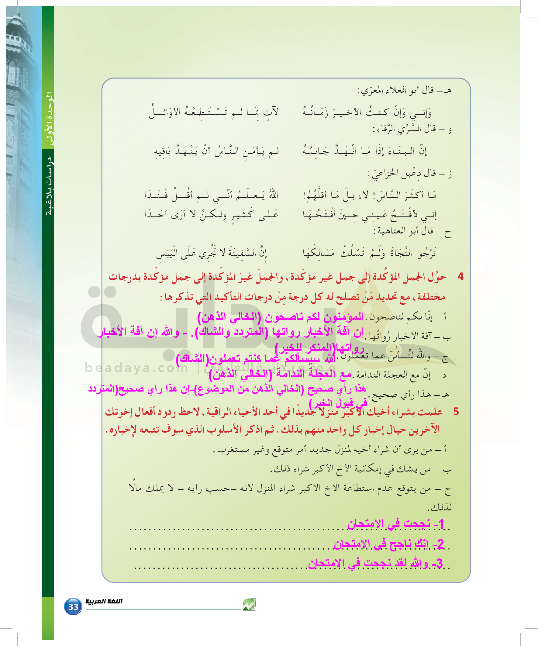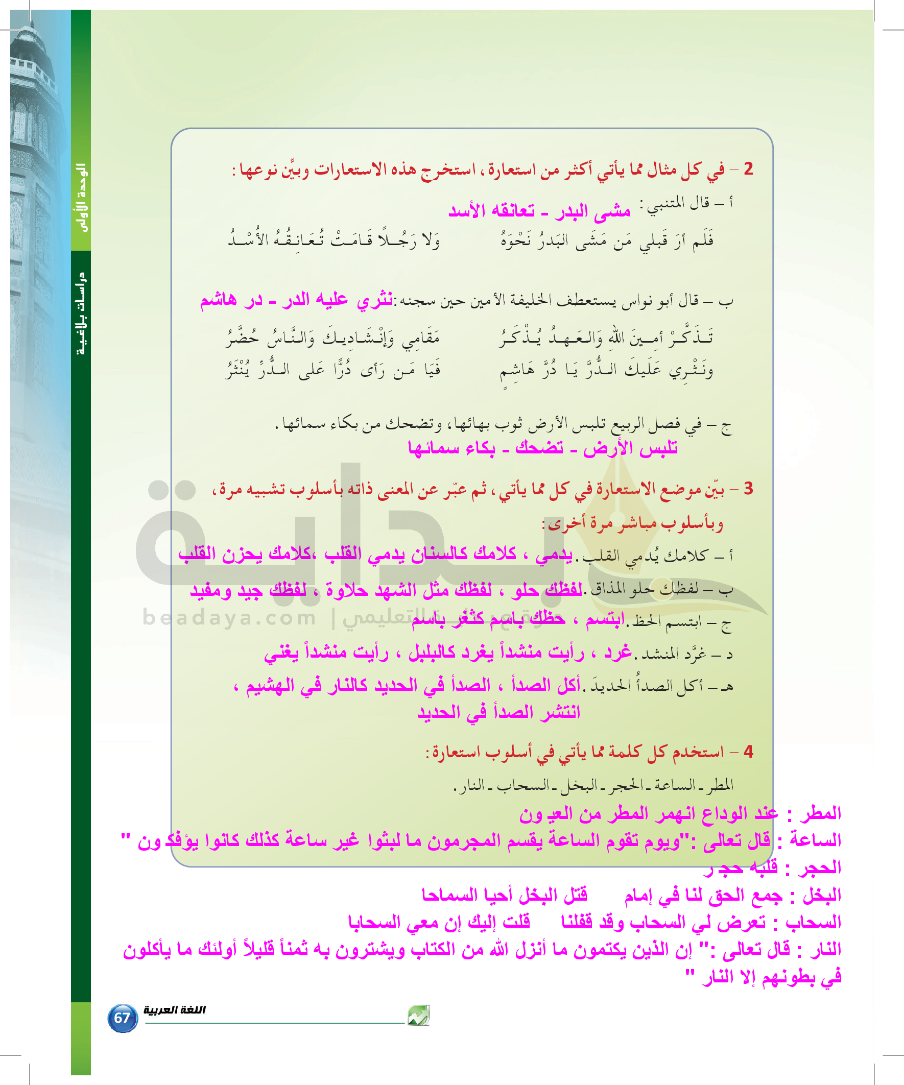 الوحدة 1 - الموضوع الرابع: من مباحث علم البديع