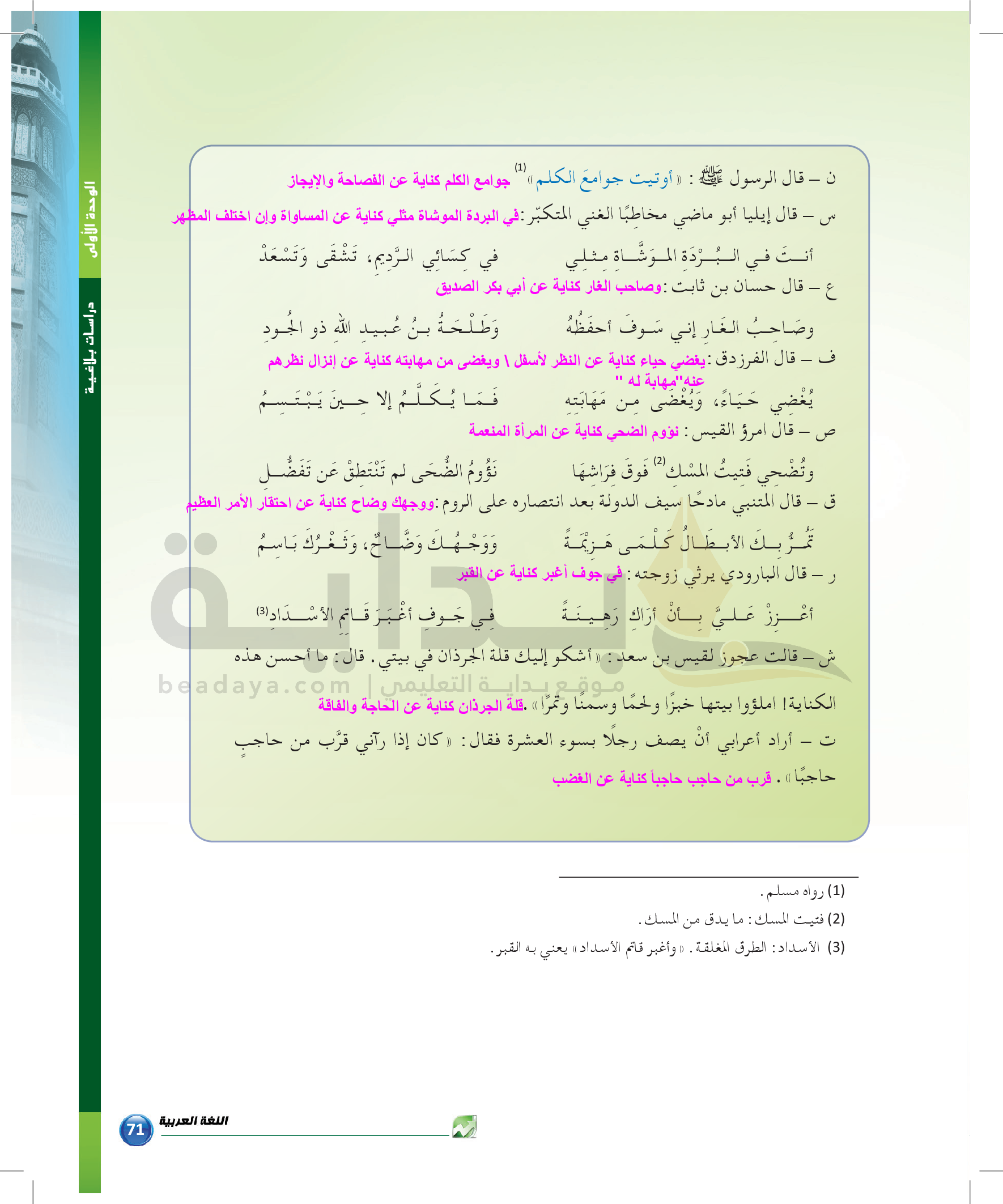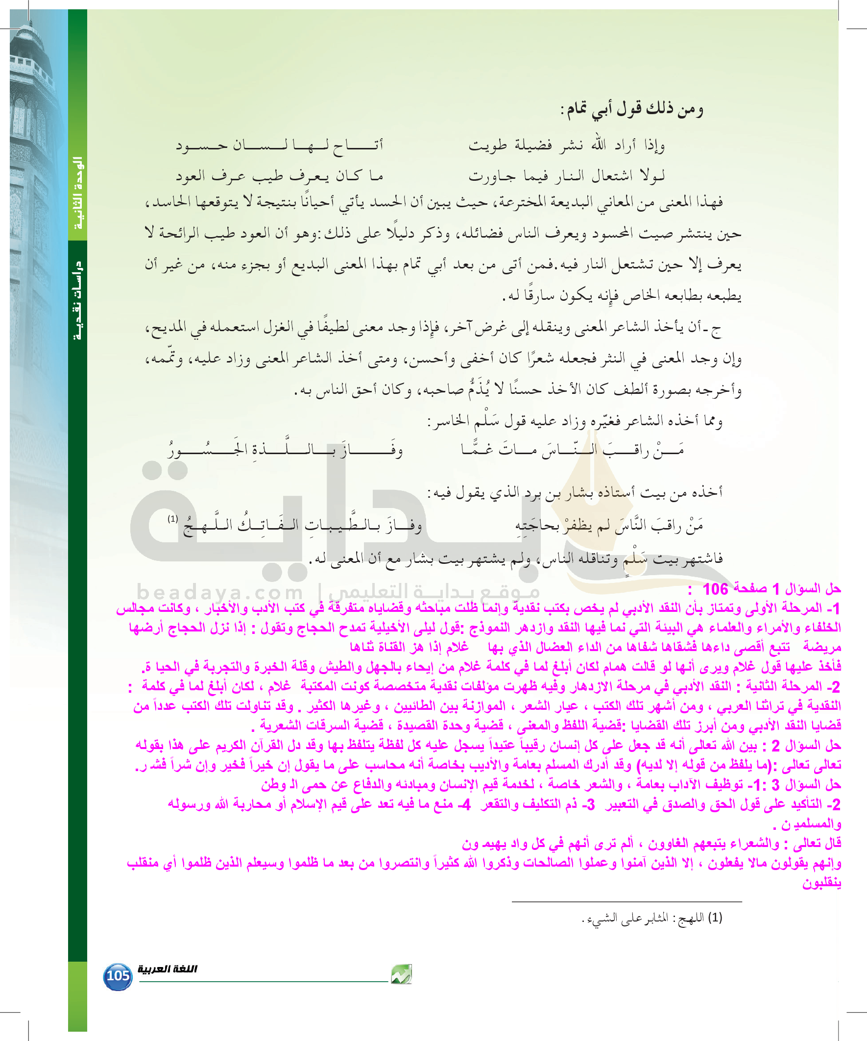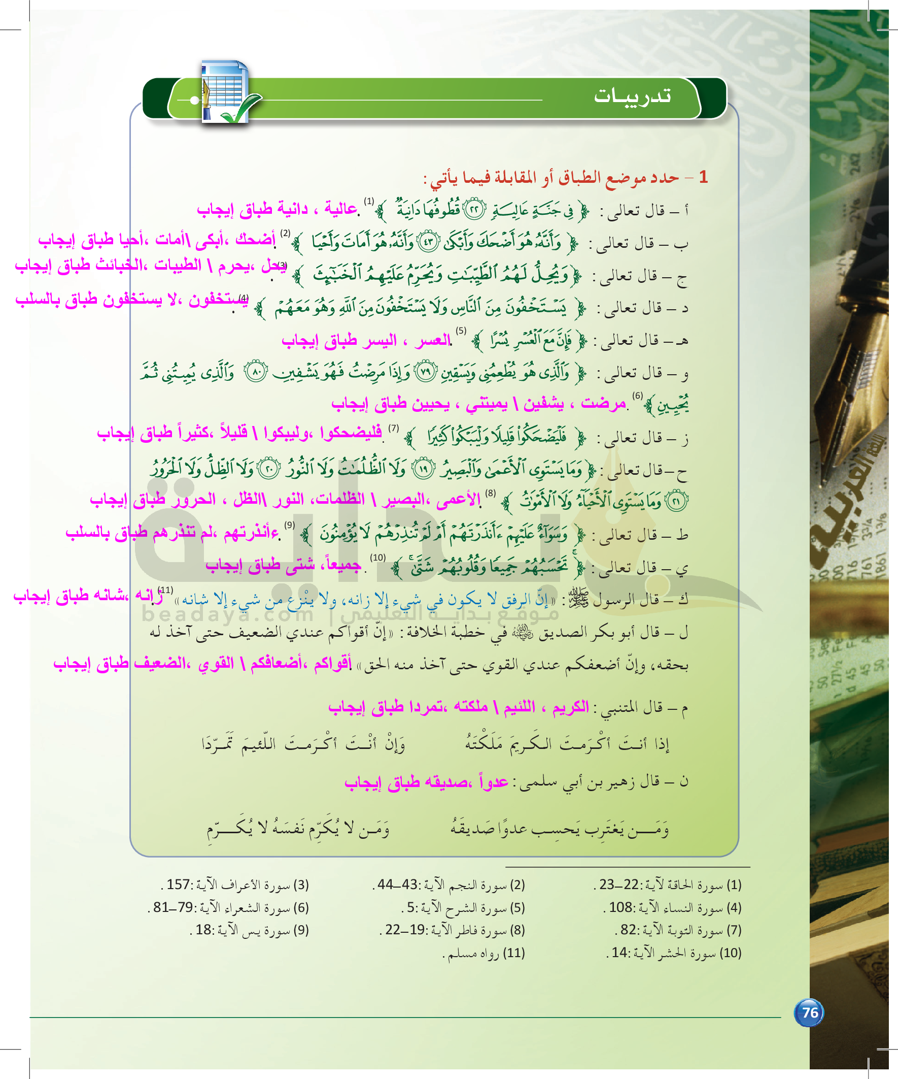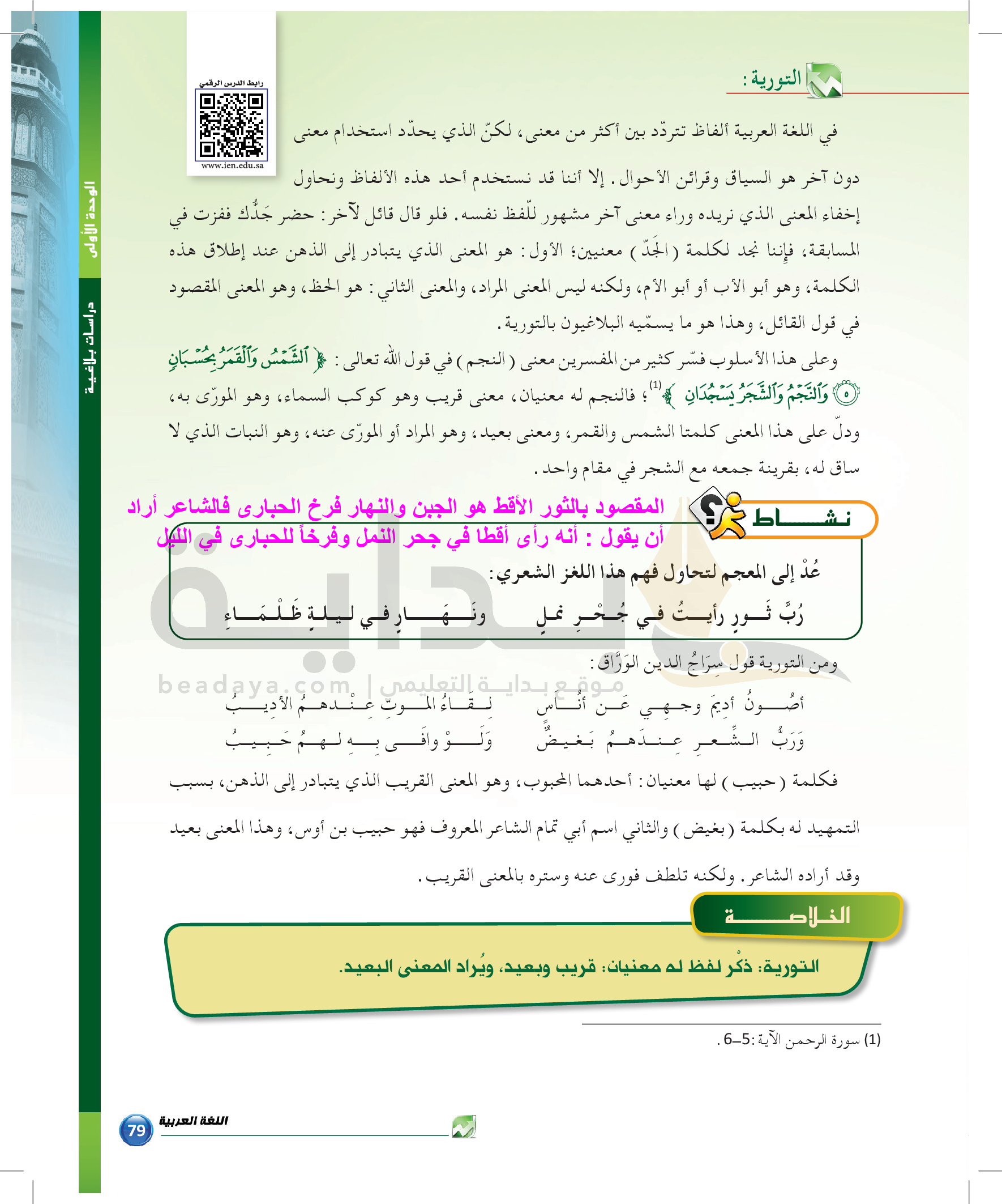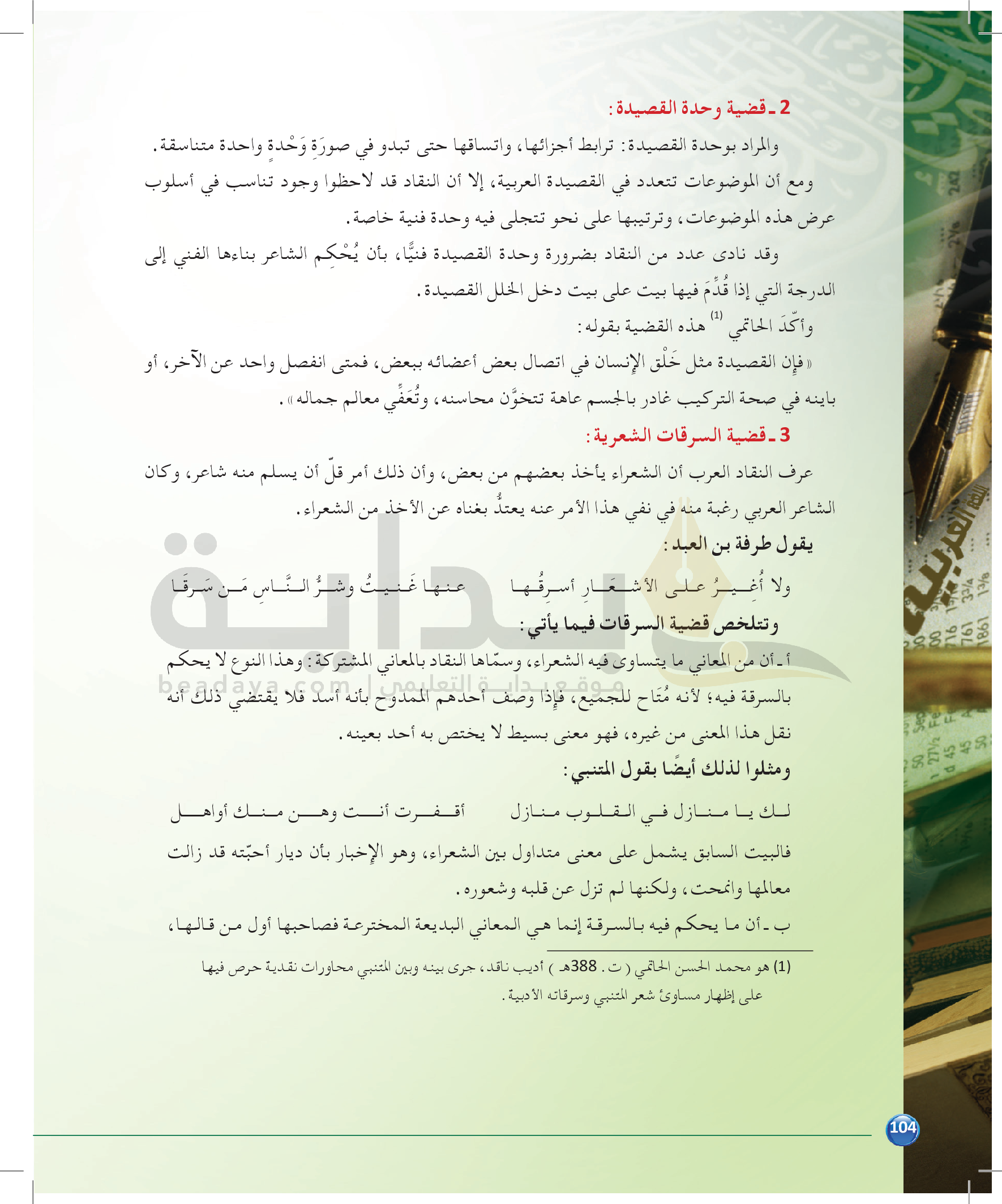 الوحدة 1 - الموضوع الرابع: من مباحث علم البديع