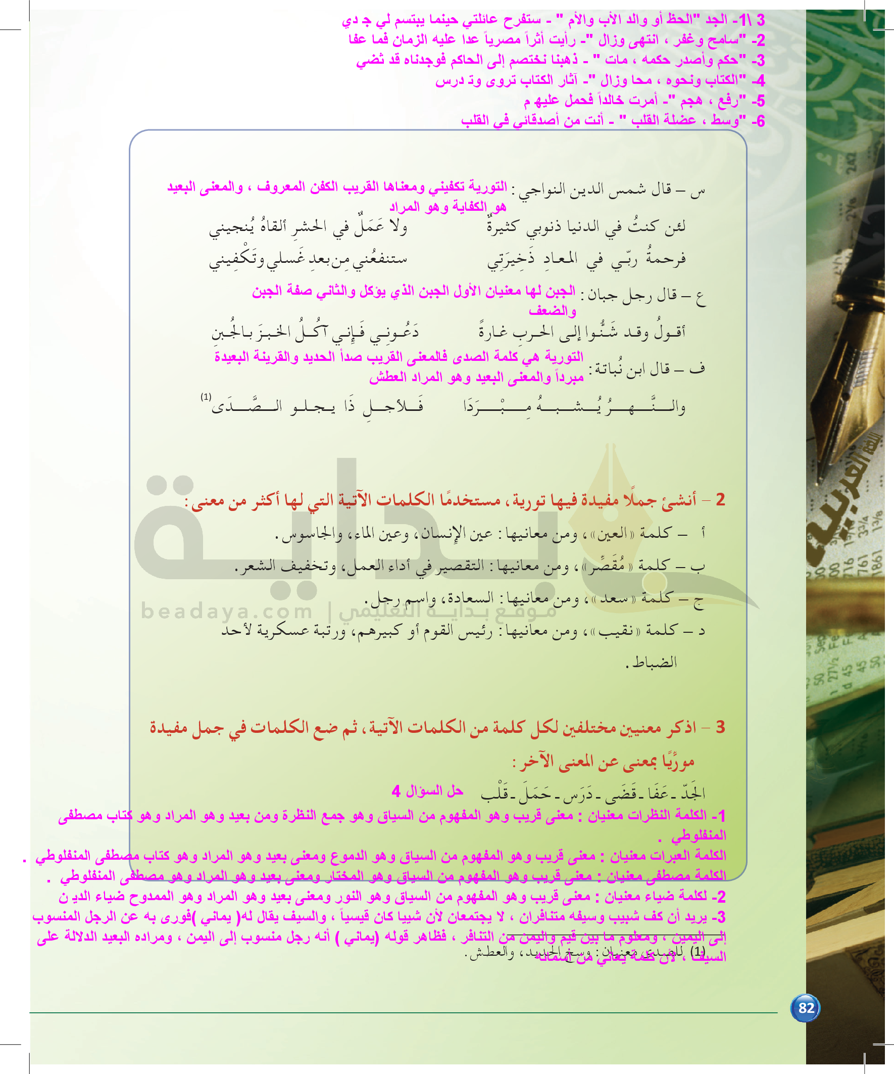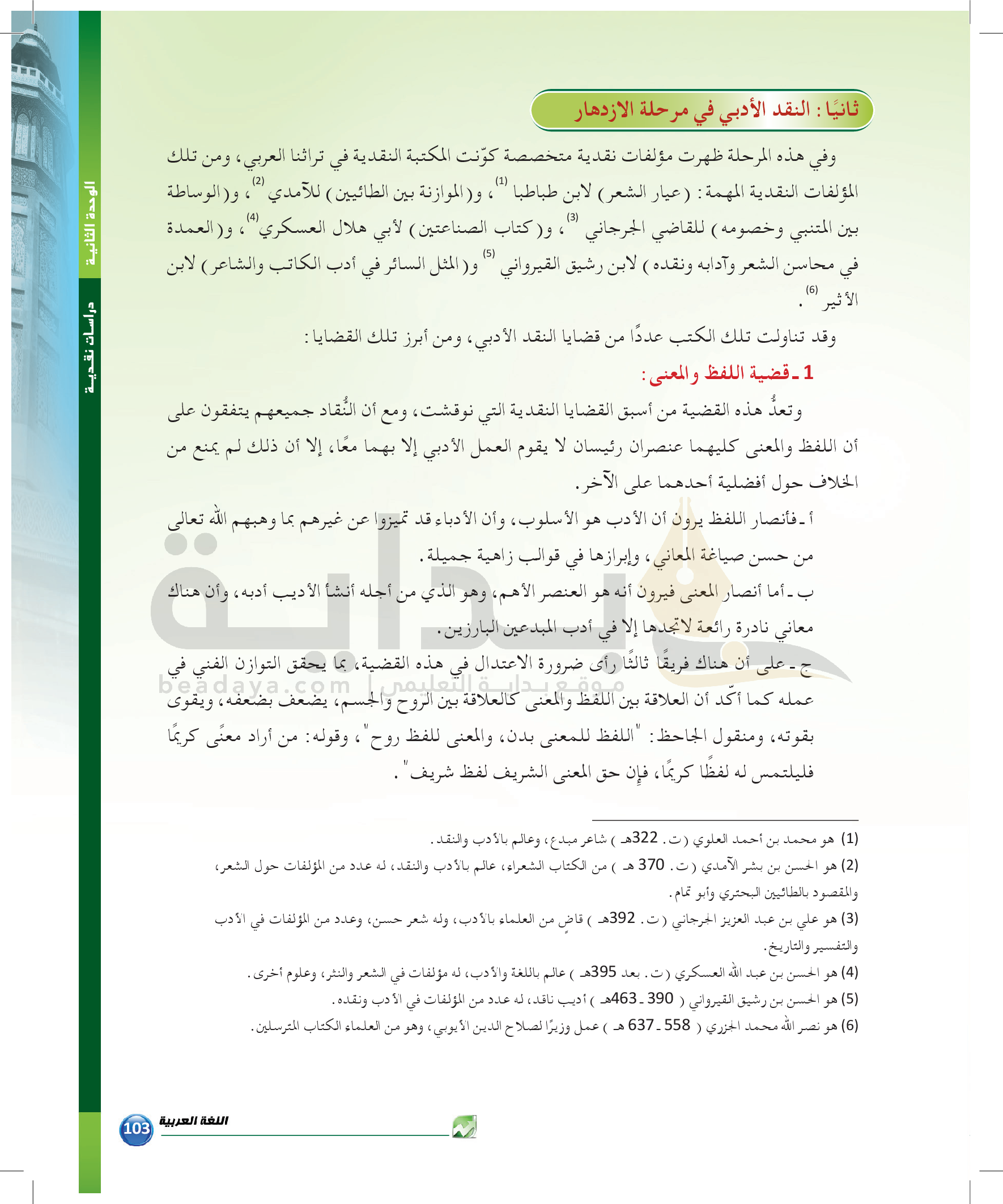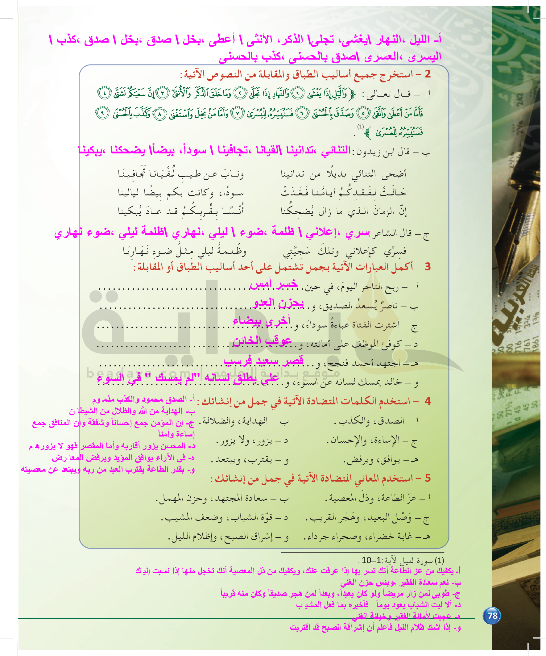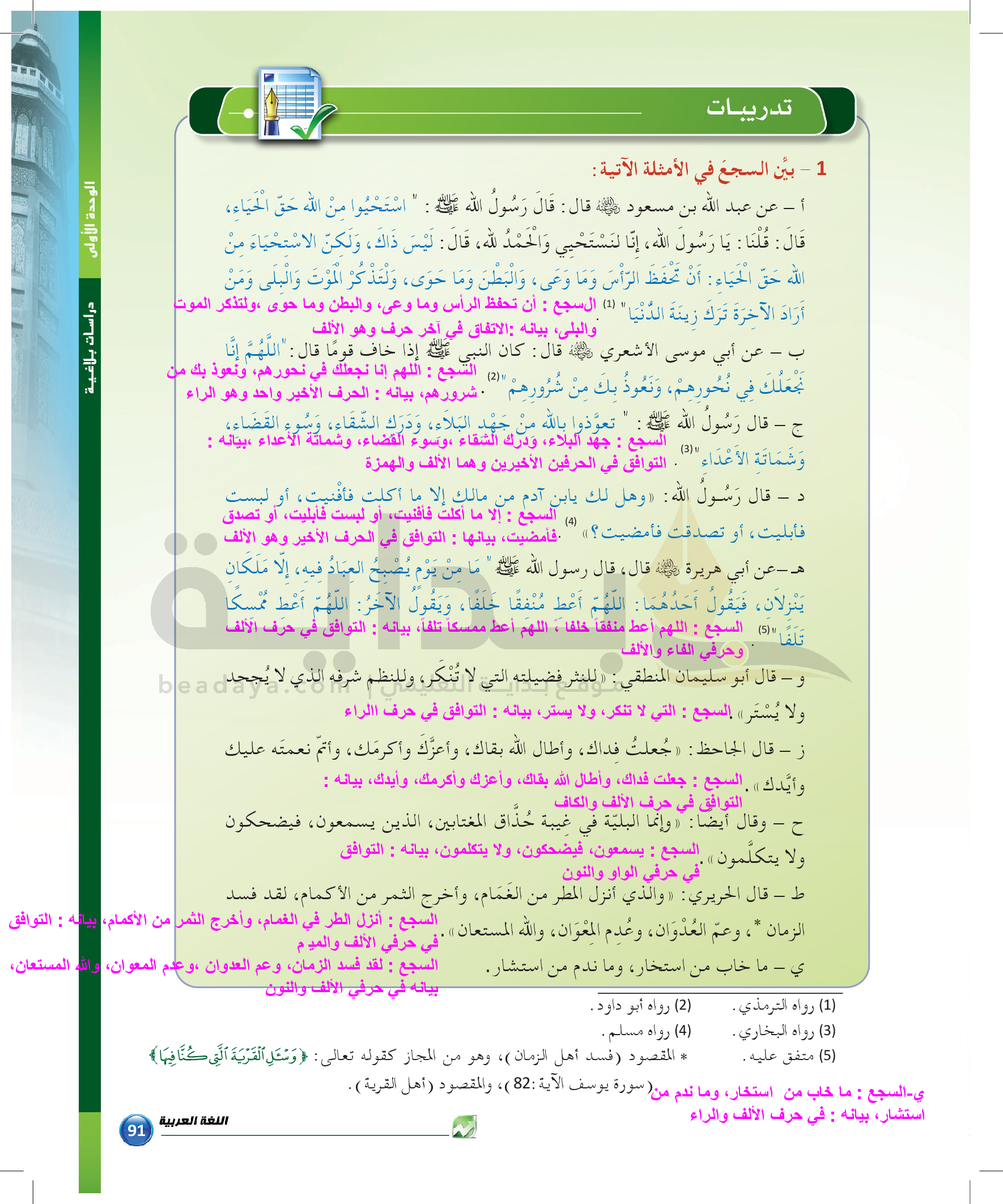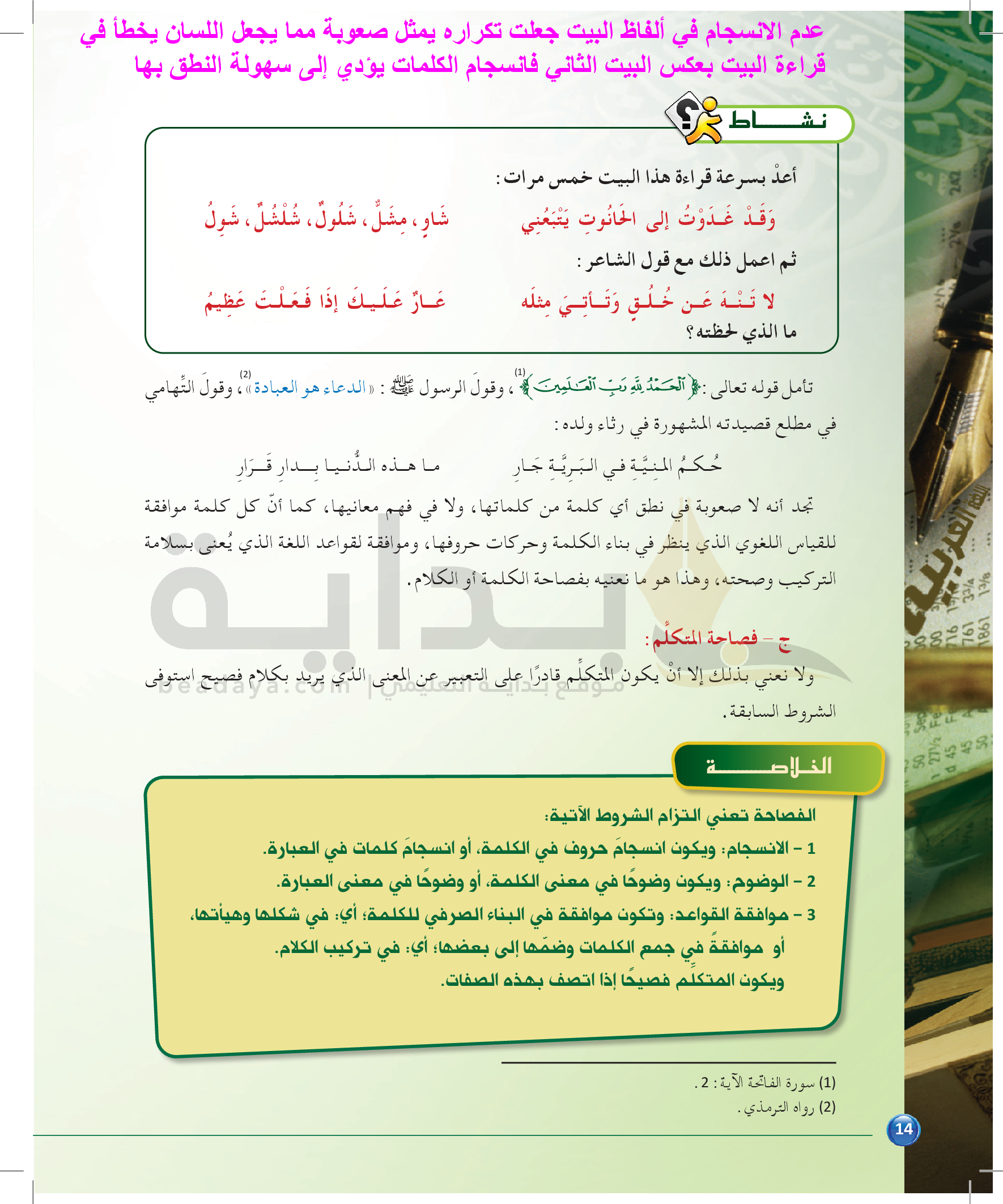 الوحدة 1 - الموضوع الرابع: من مباحث علم البديع
