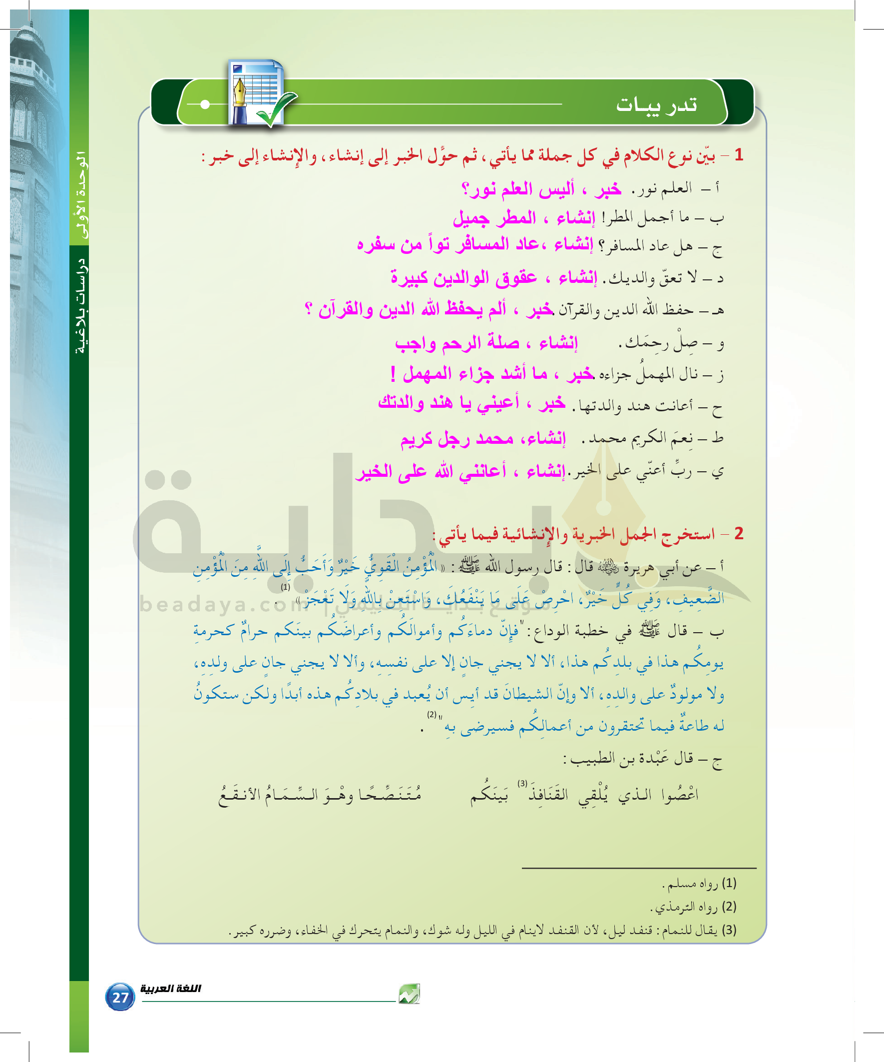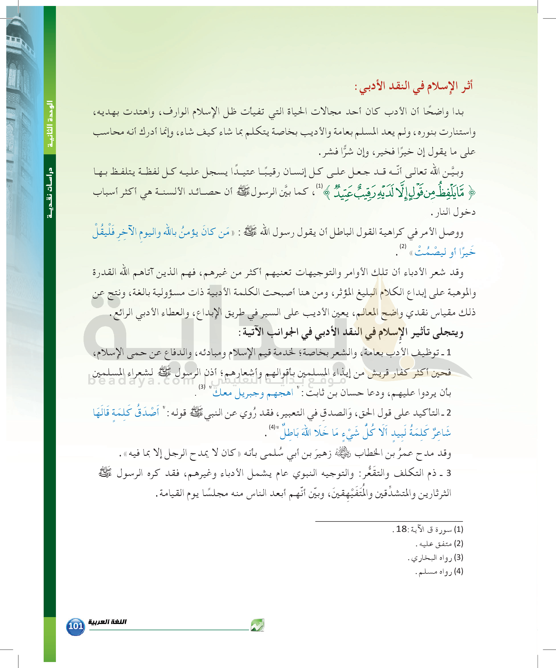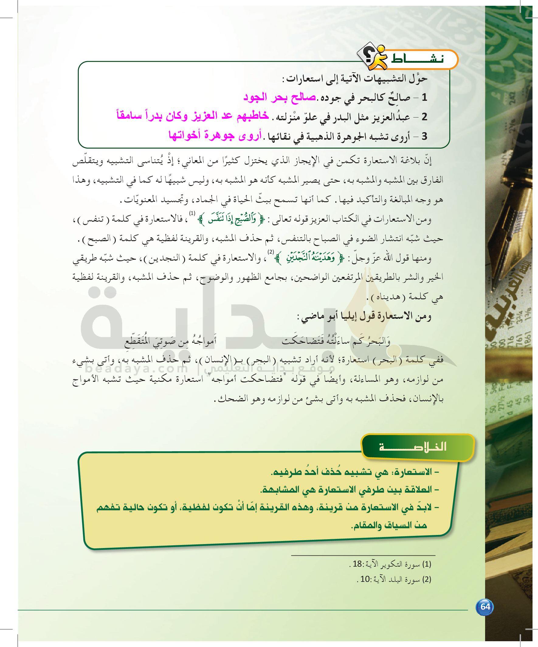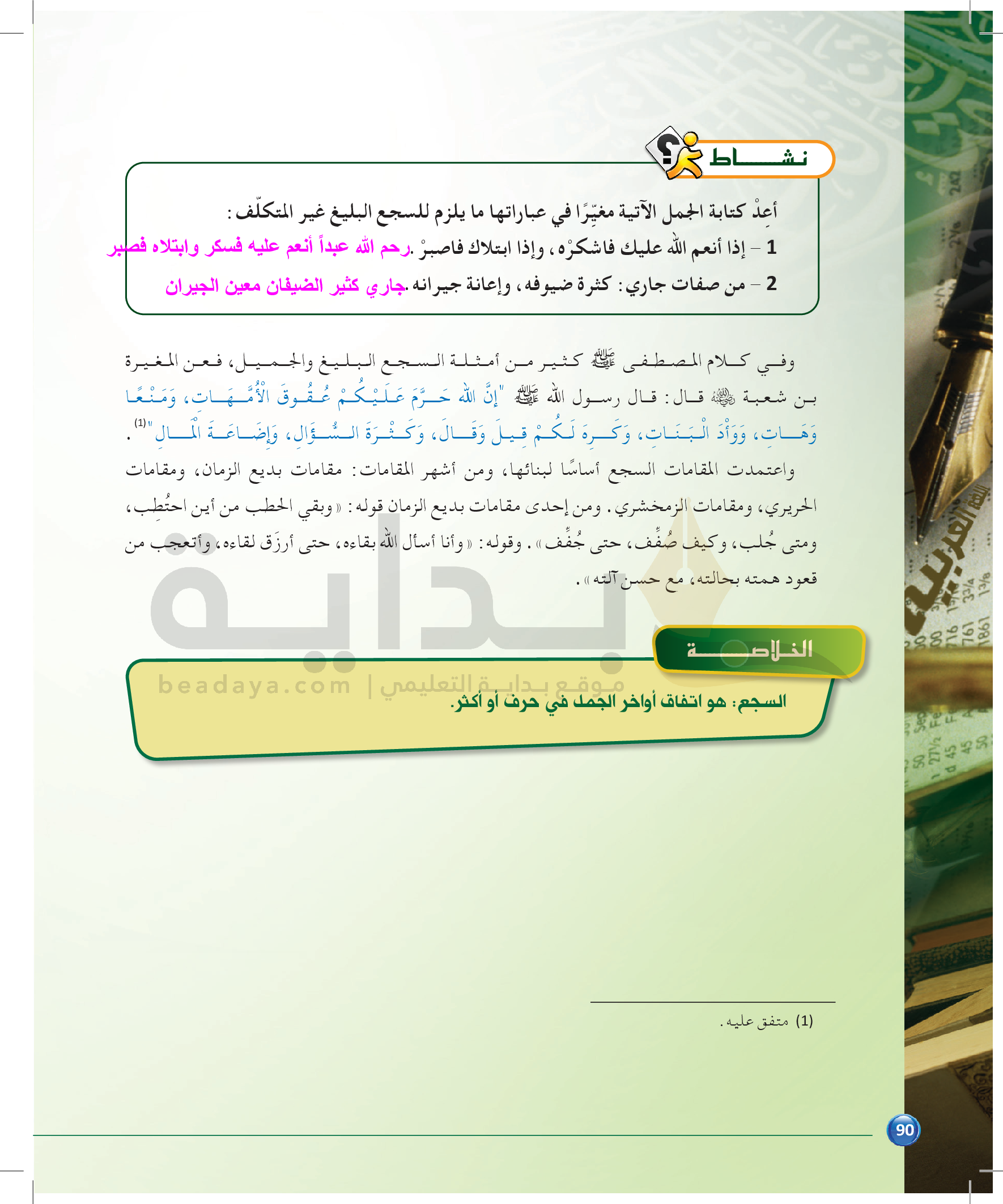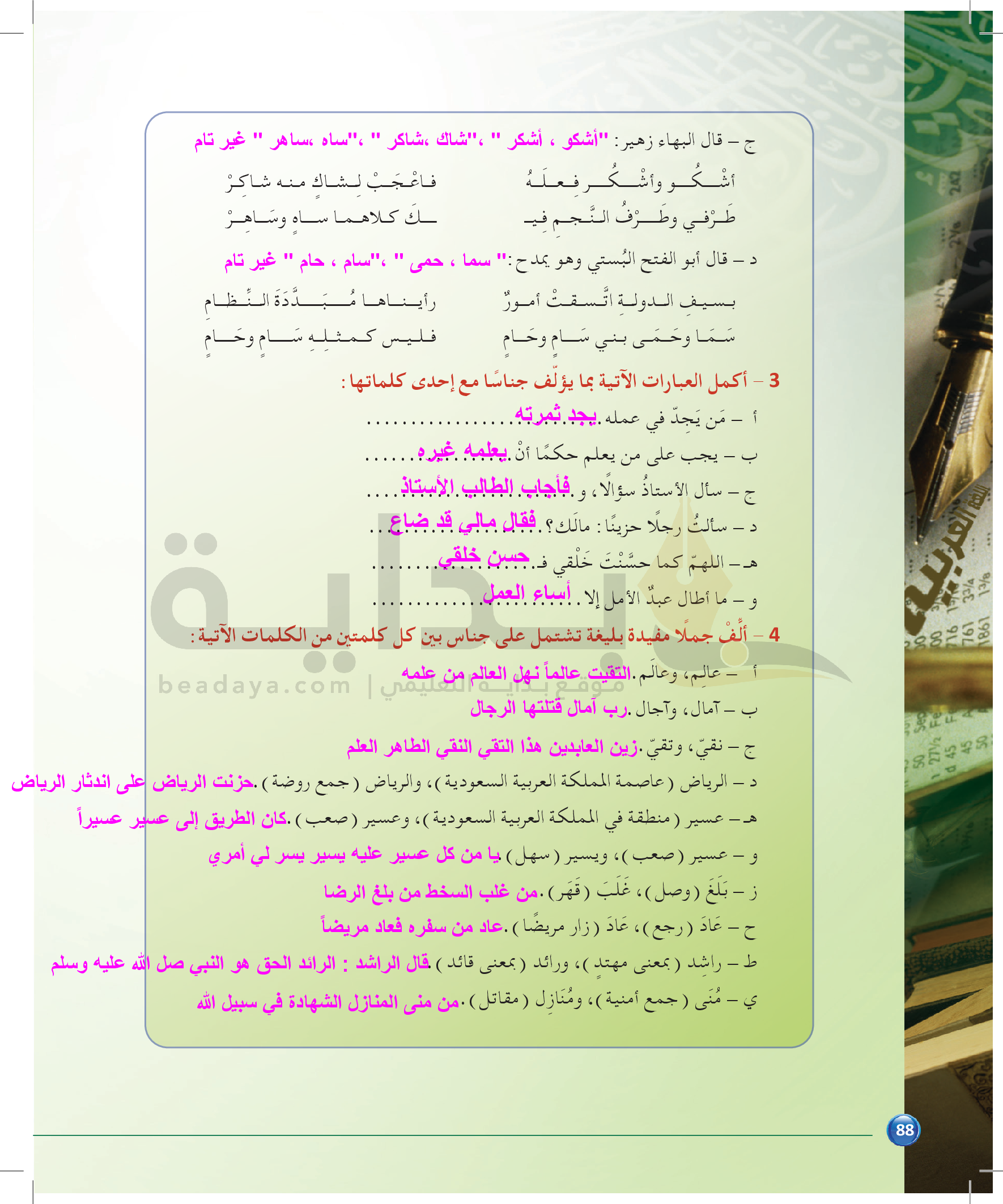 الوحدة 1 - الموضوع الرابع: من مباحث علم البديع