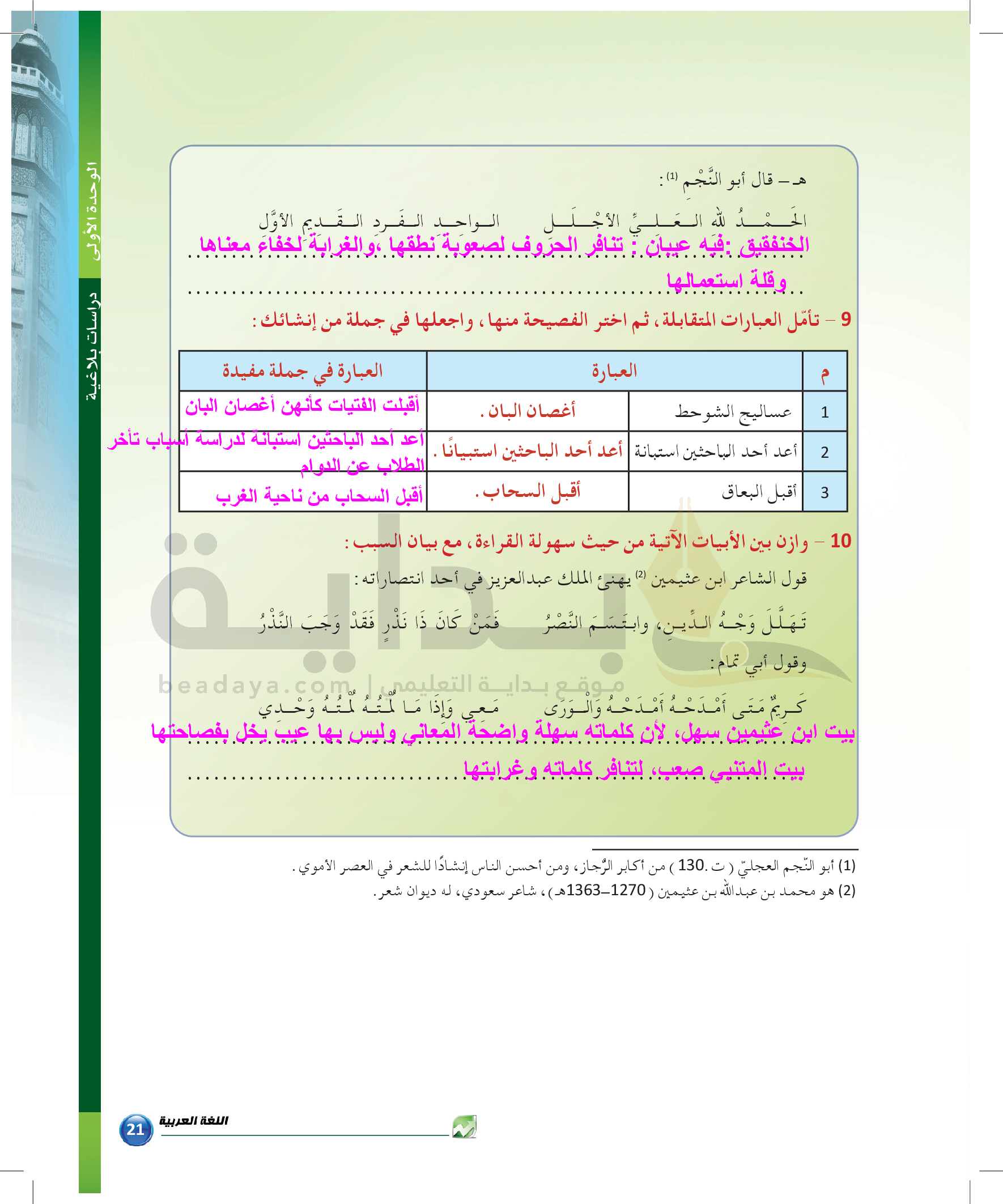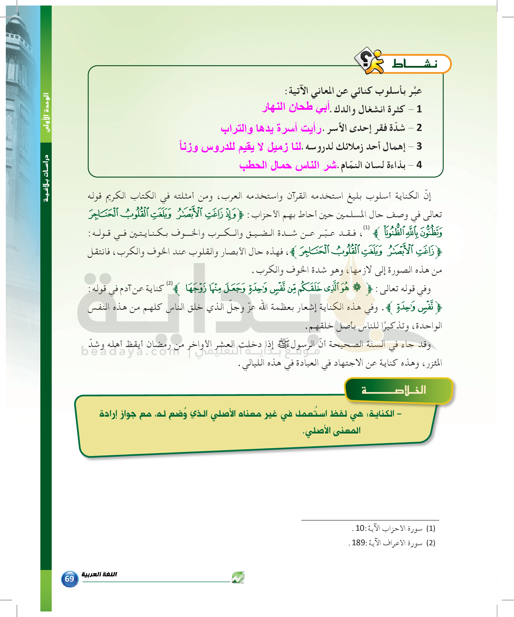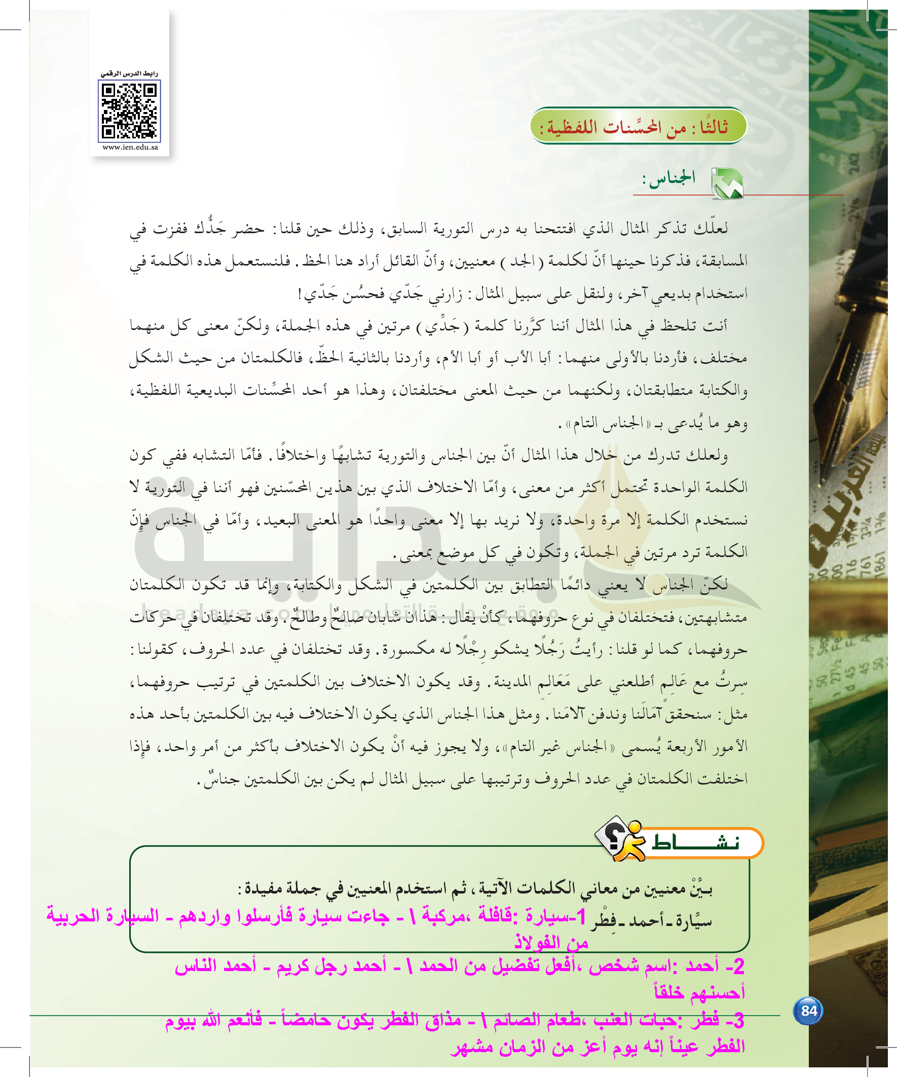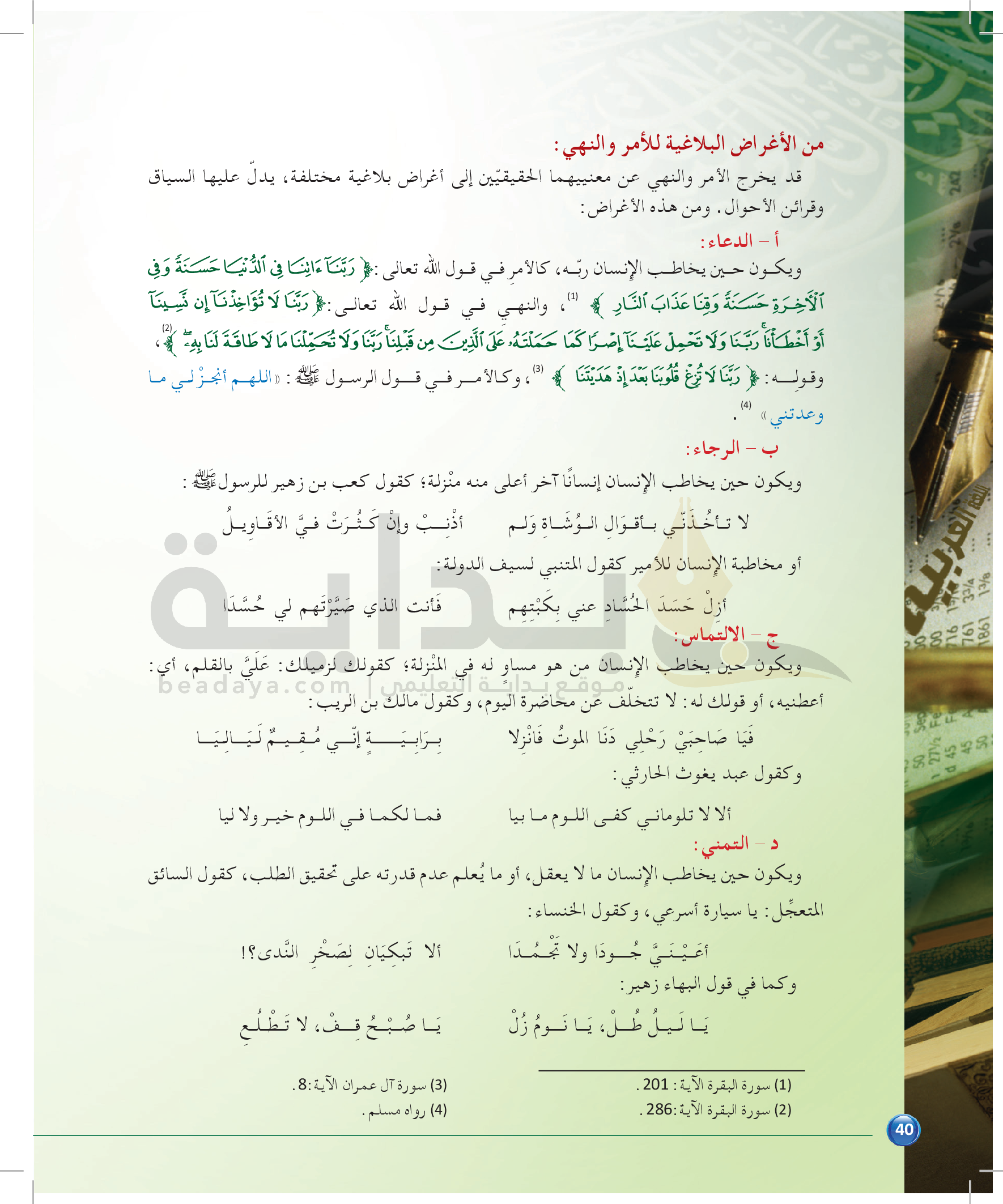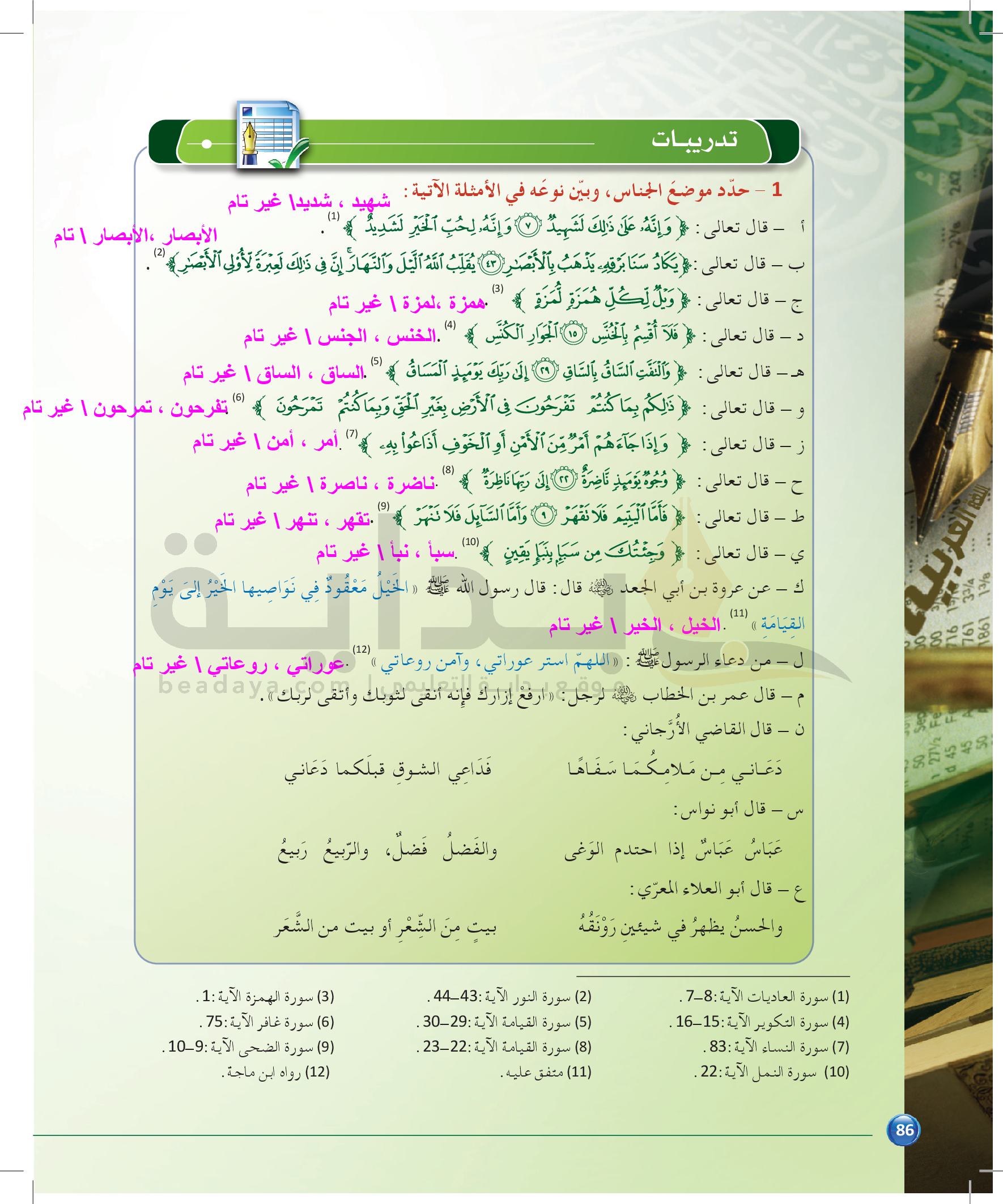 الوحدة 1 - الموضوع الرابع: من مباحث علم البديع