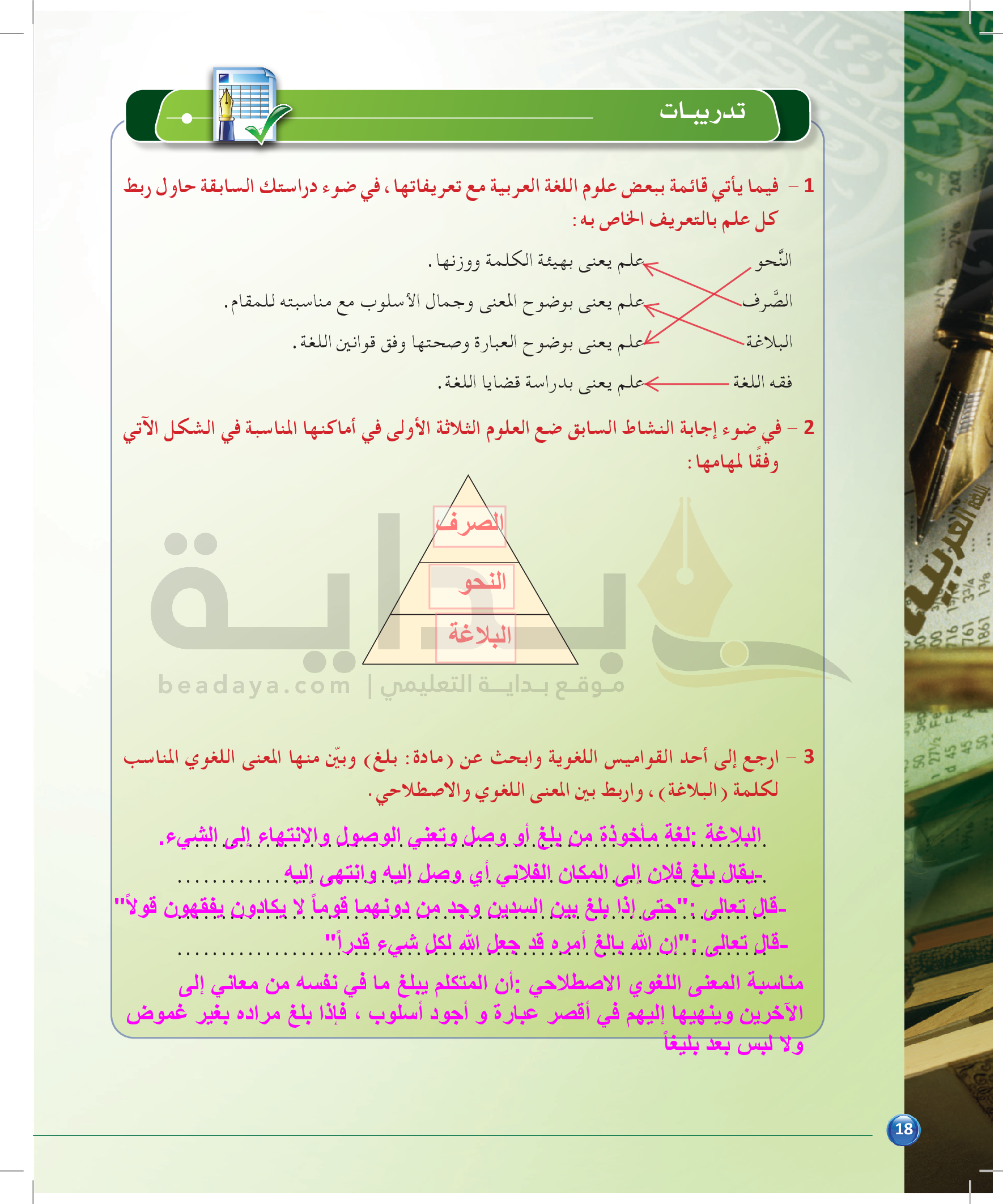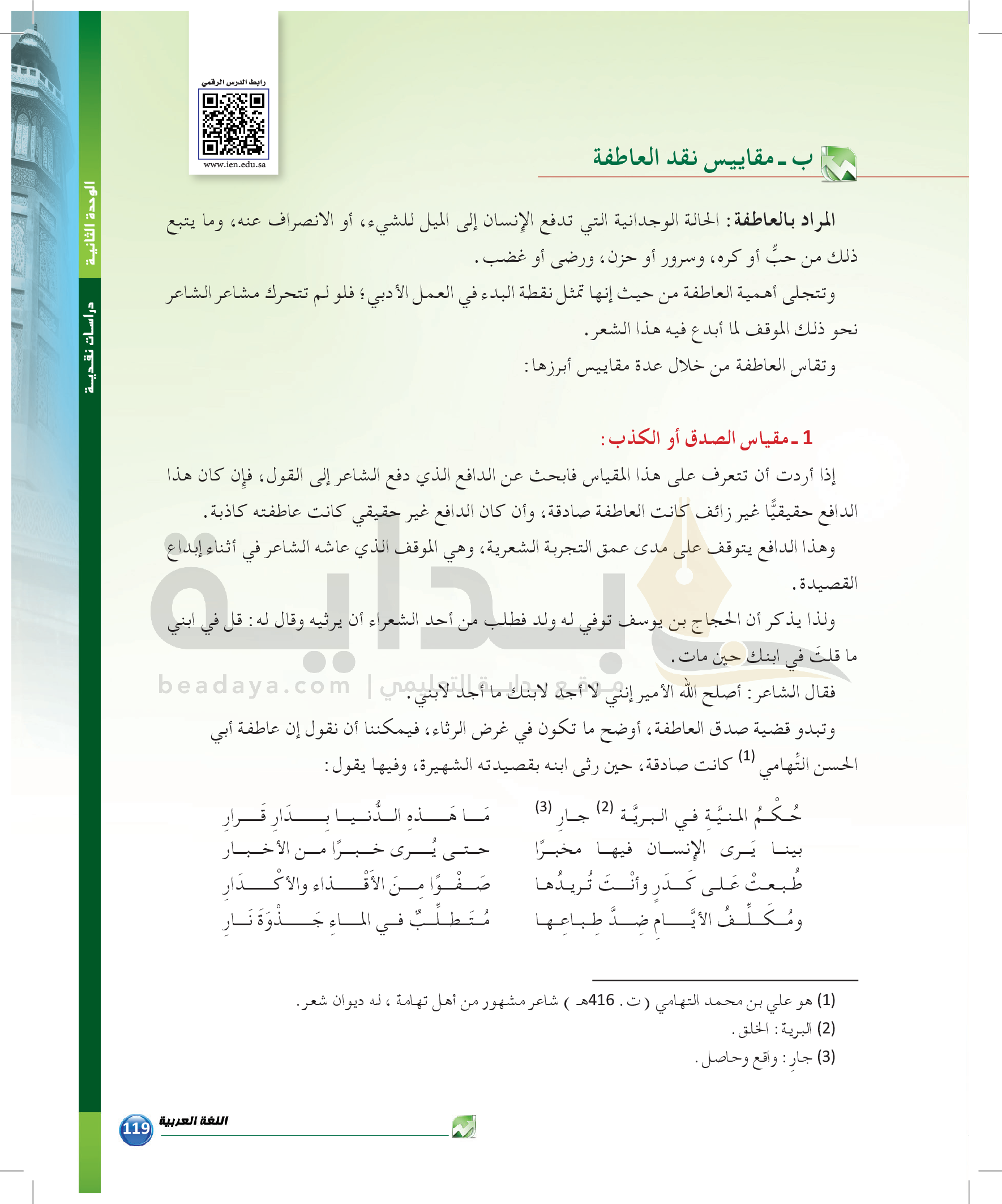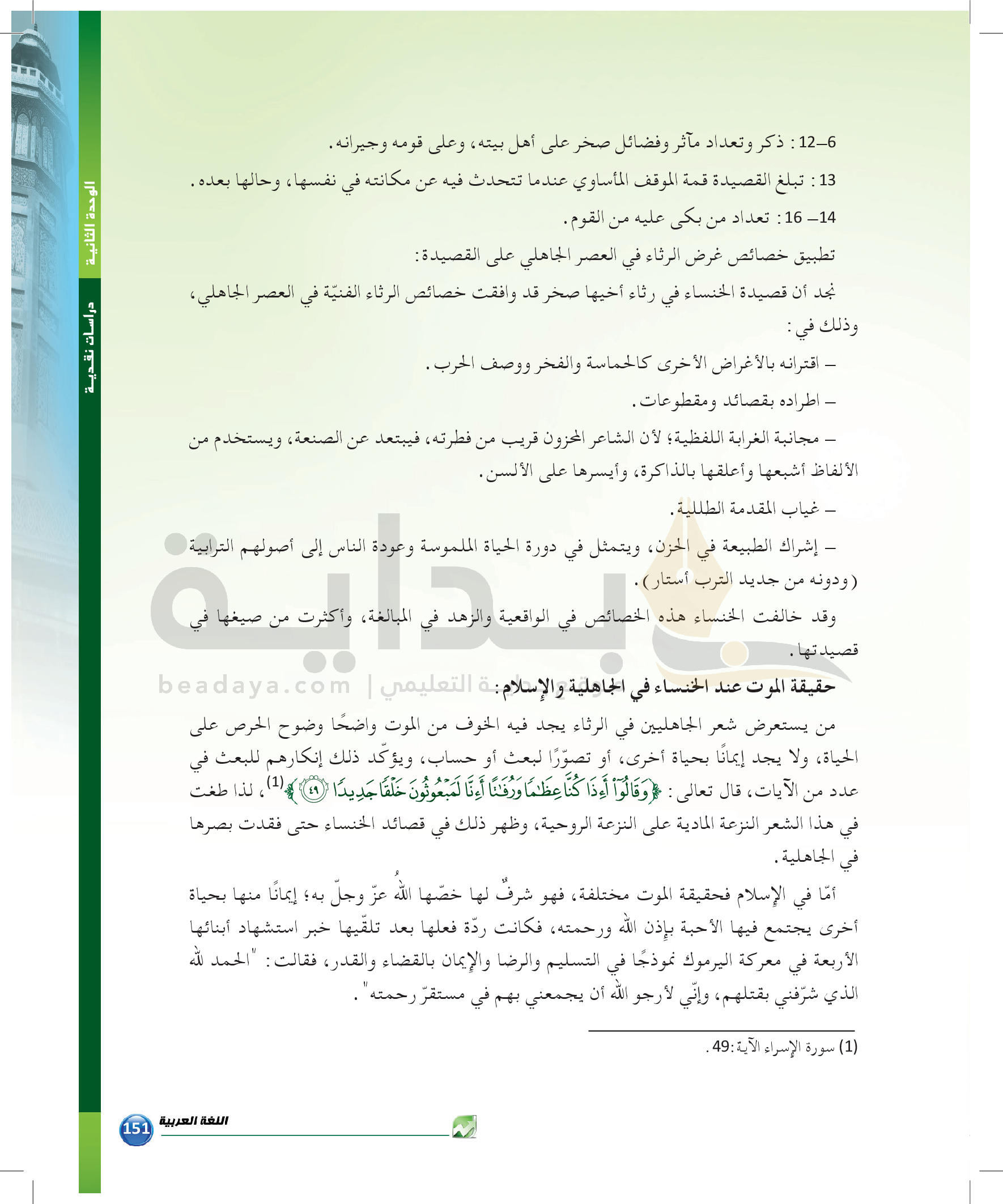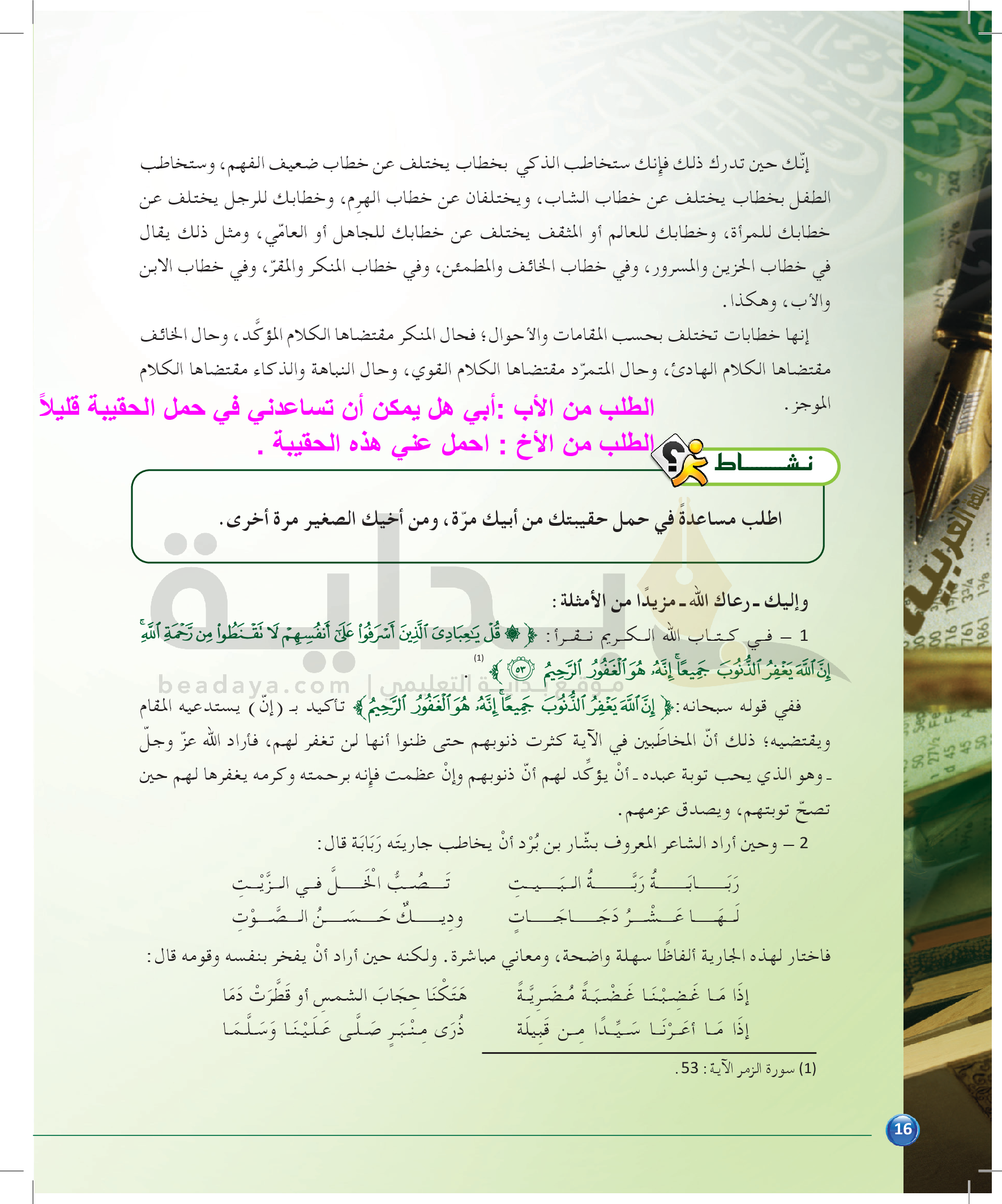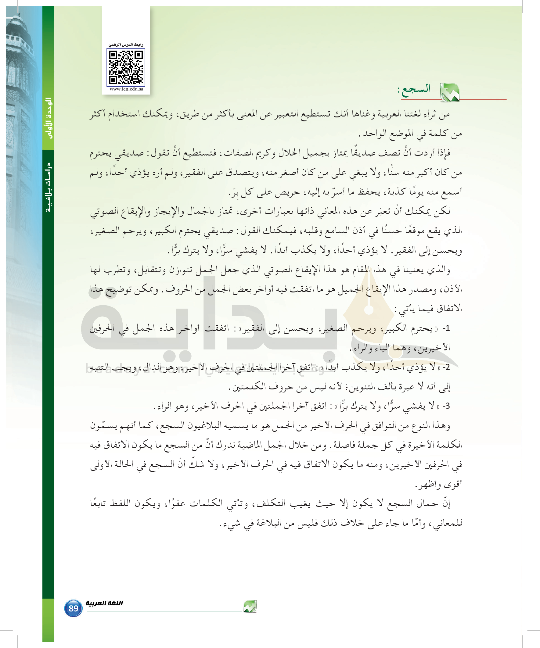 الوحدة 1 - الموضوع الرابع: من مباحث علم البديع