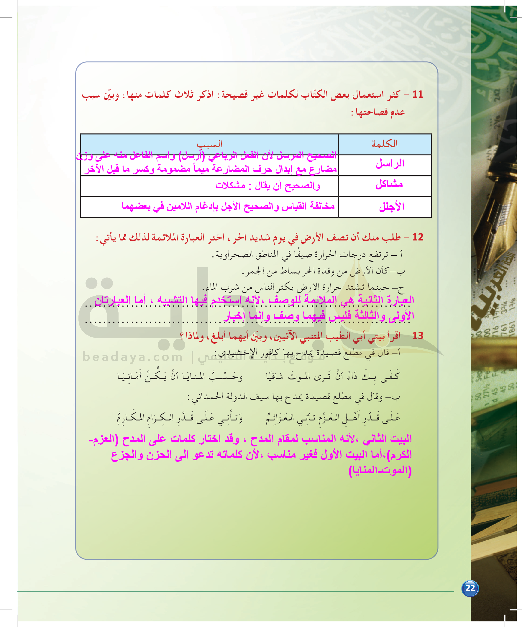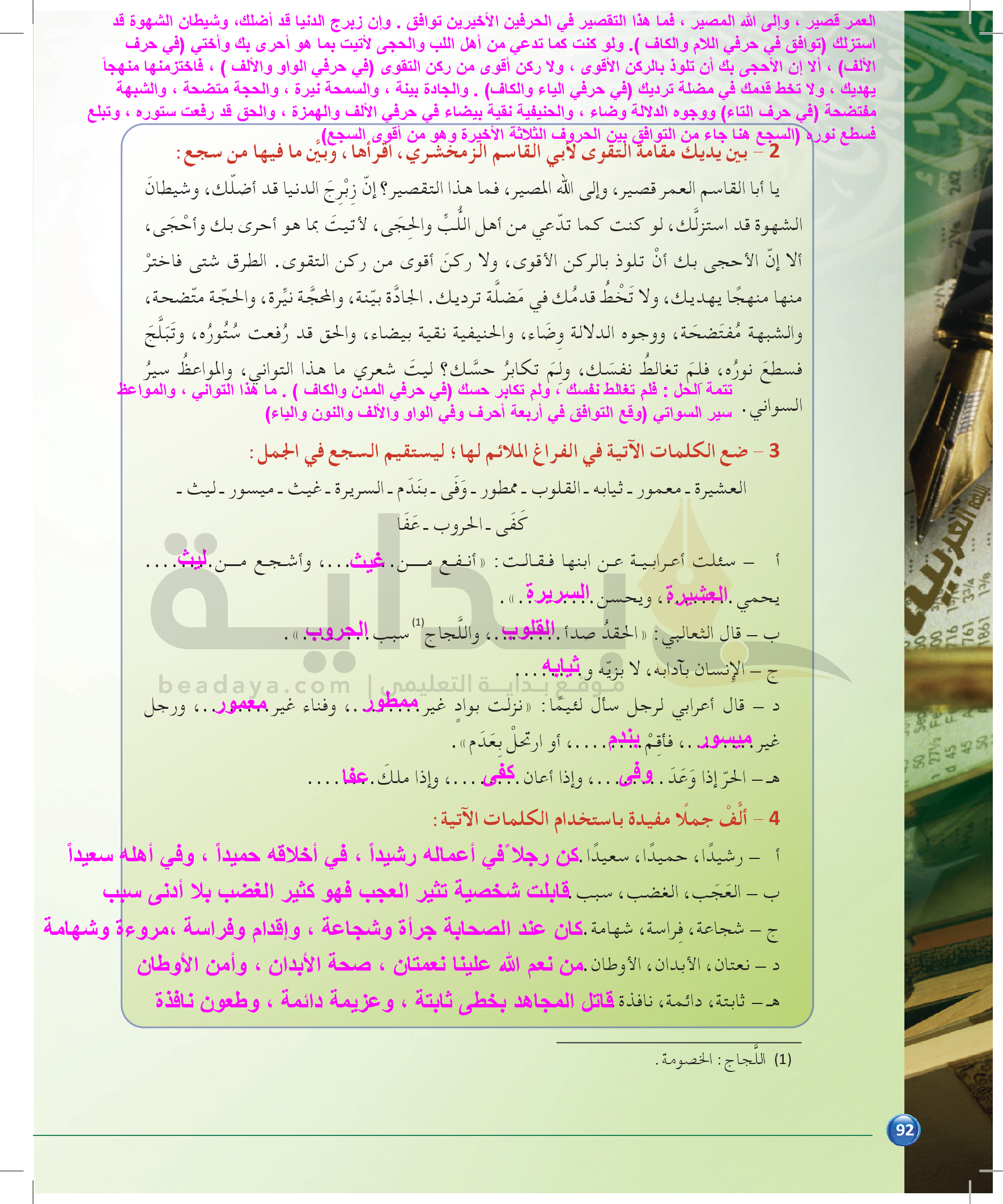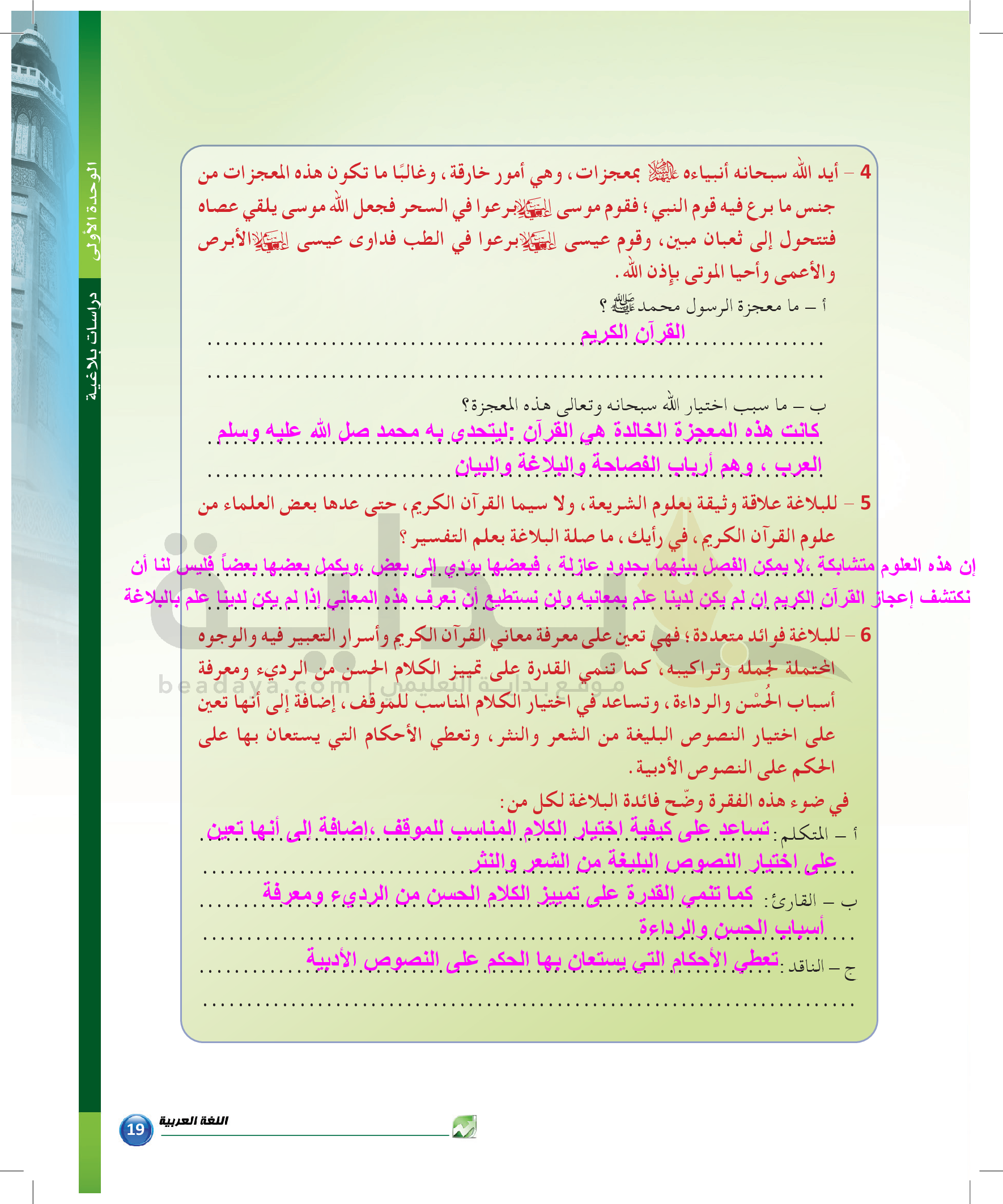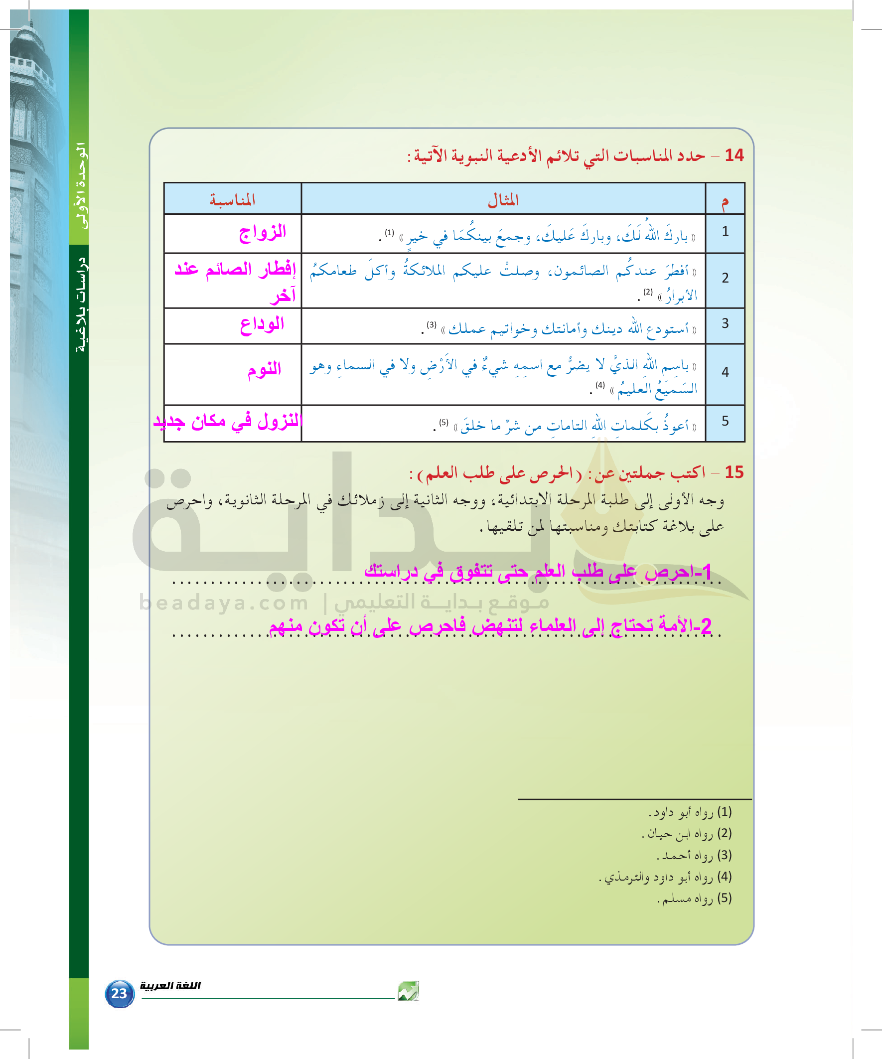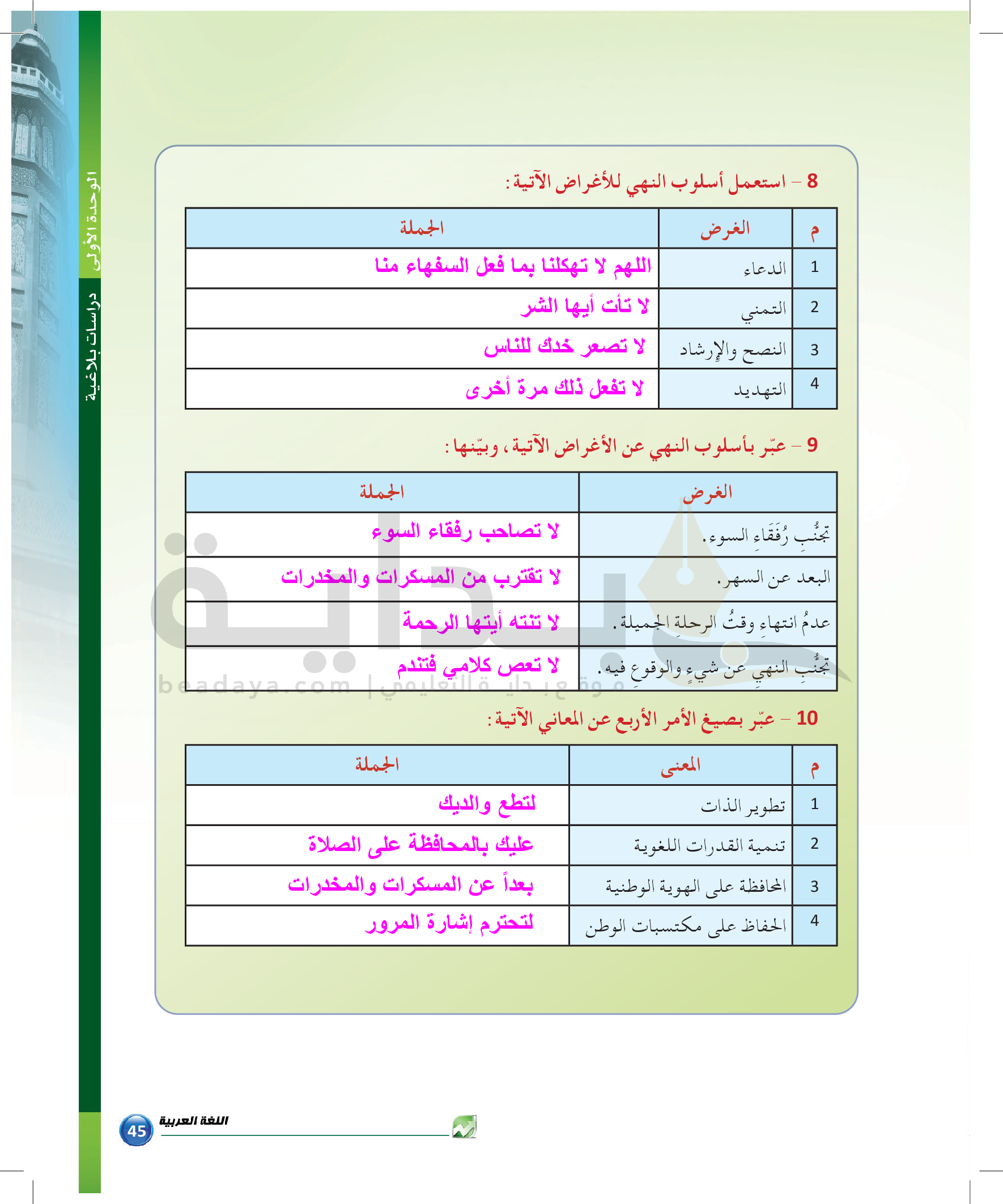 الوحدة 1 - الموضوع الرابع: من مباحث علم البديع