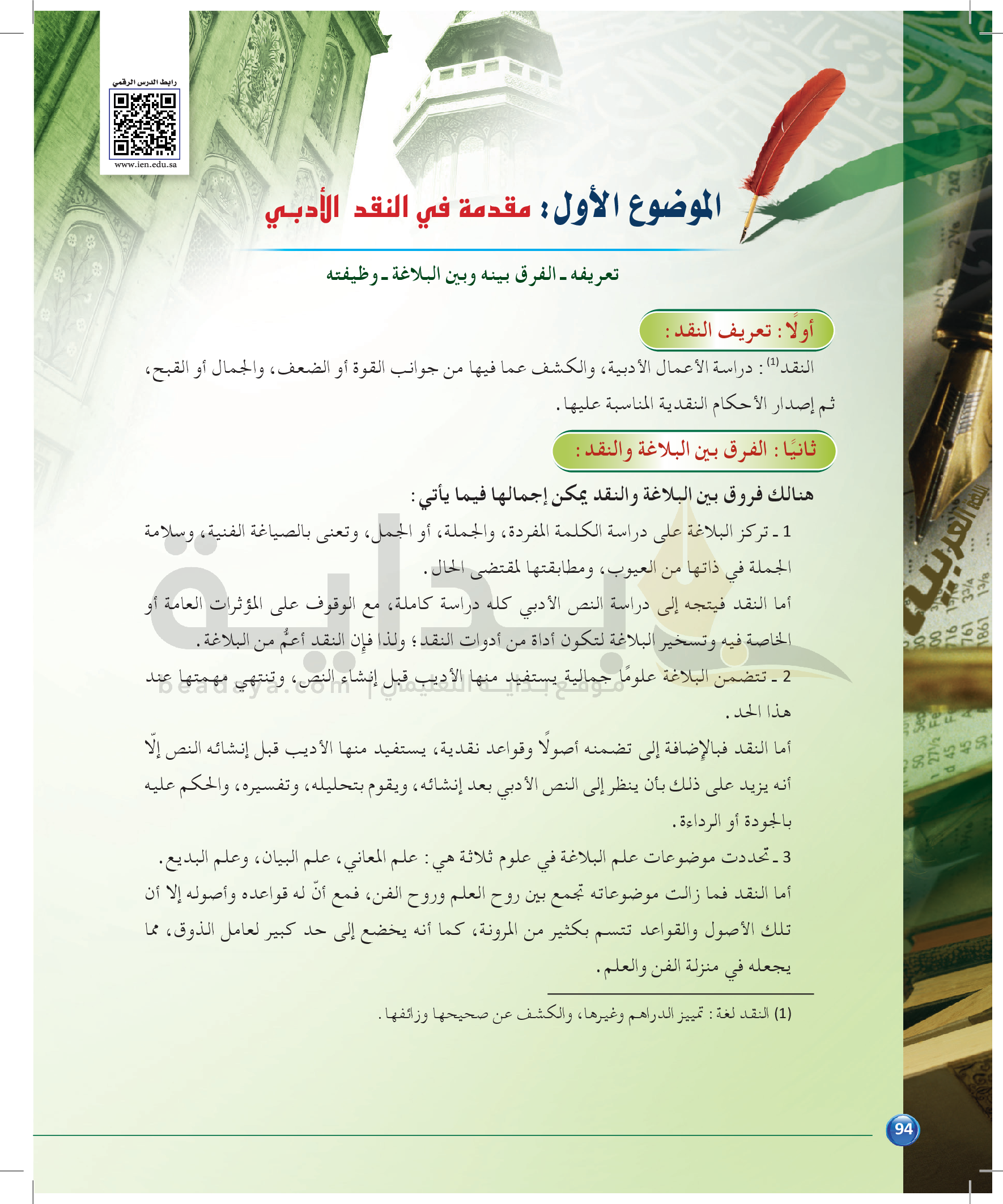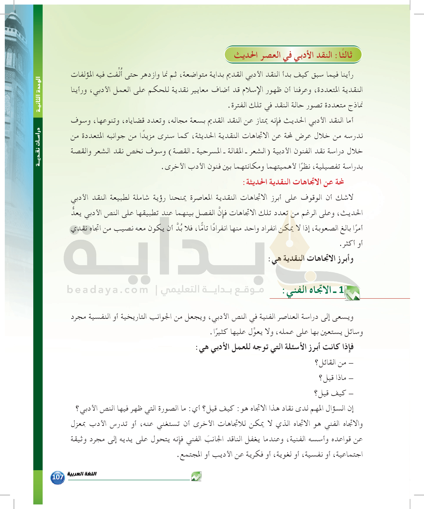 الوحدة 2 - الموضوع الأول: النقد الأدبي