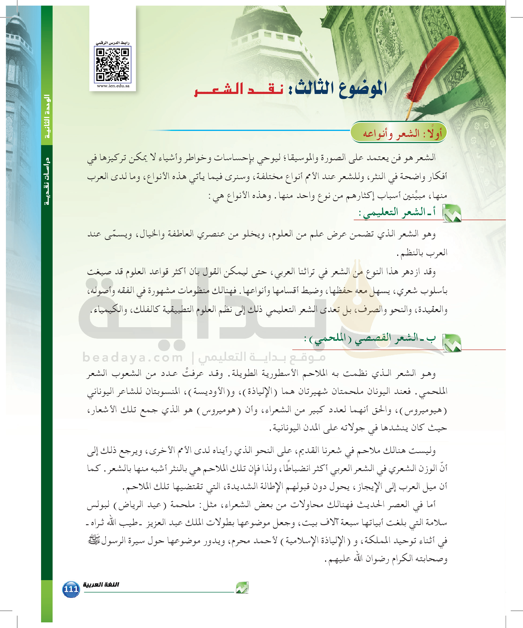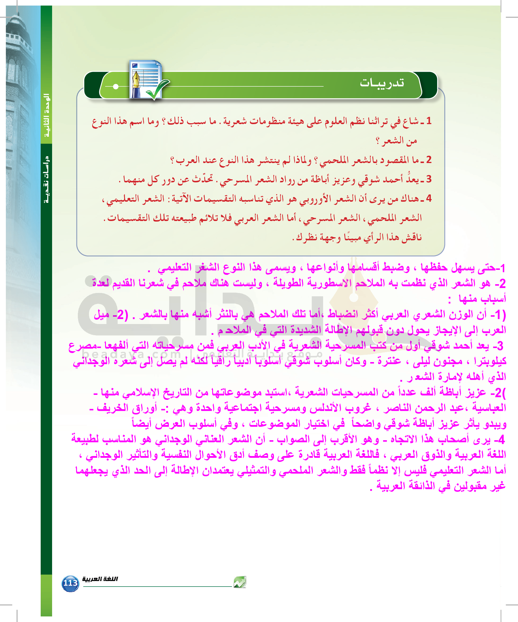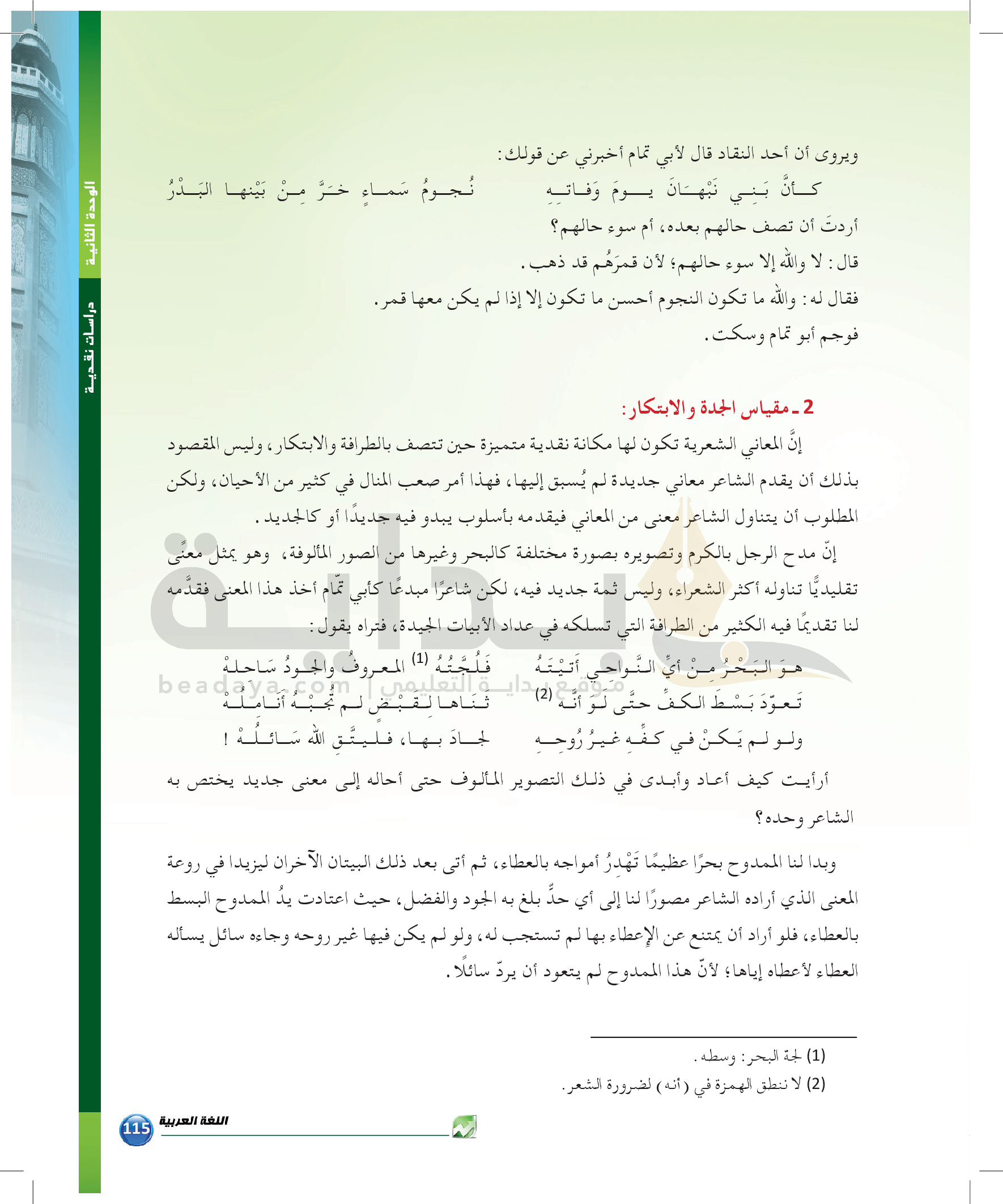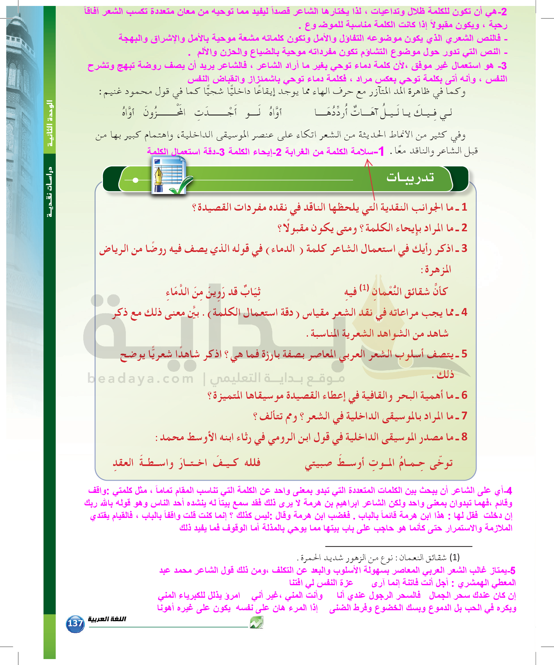 الوحدة 2 - الموضوع الثالث: نقد الشعر