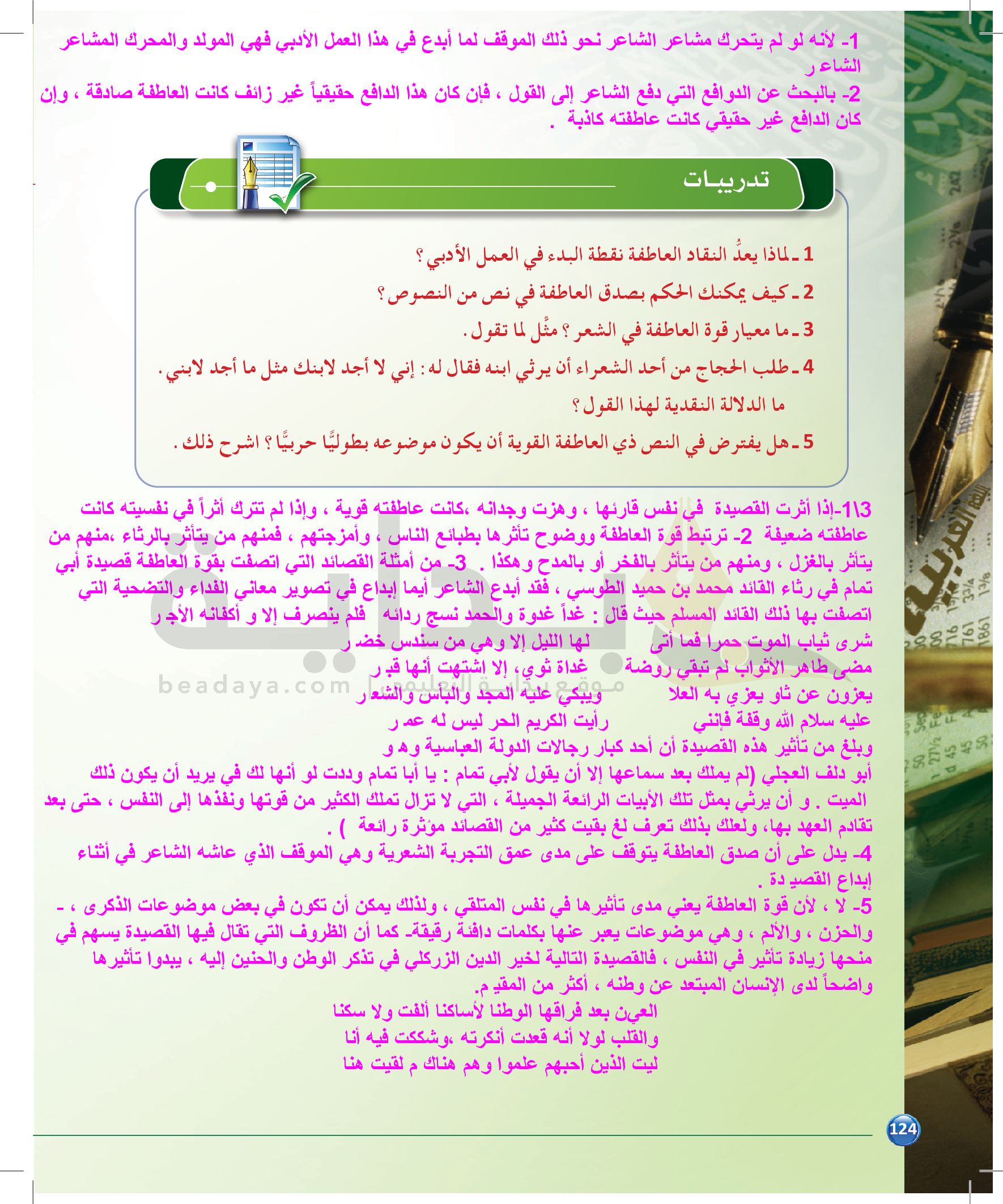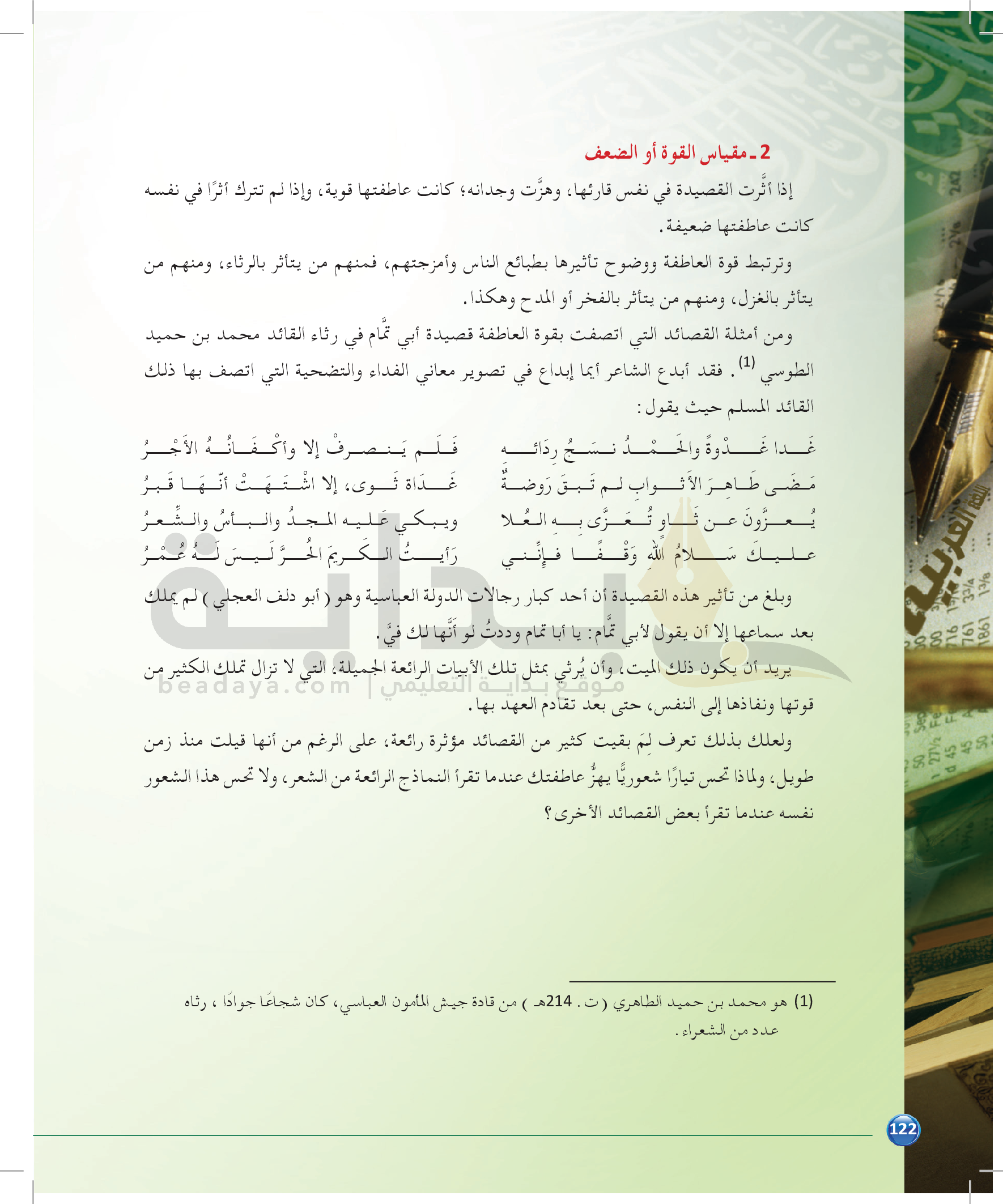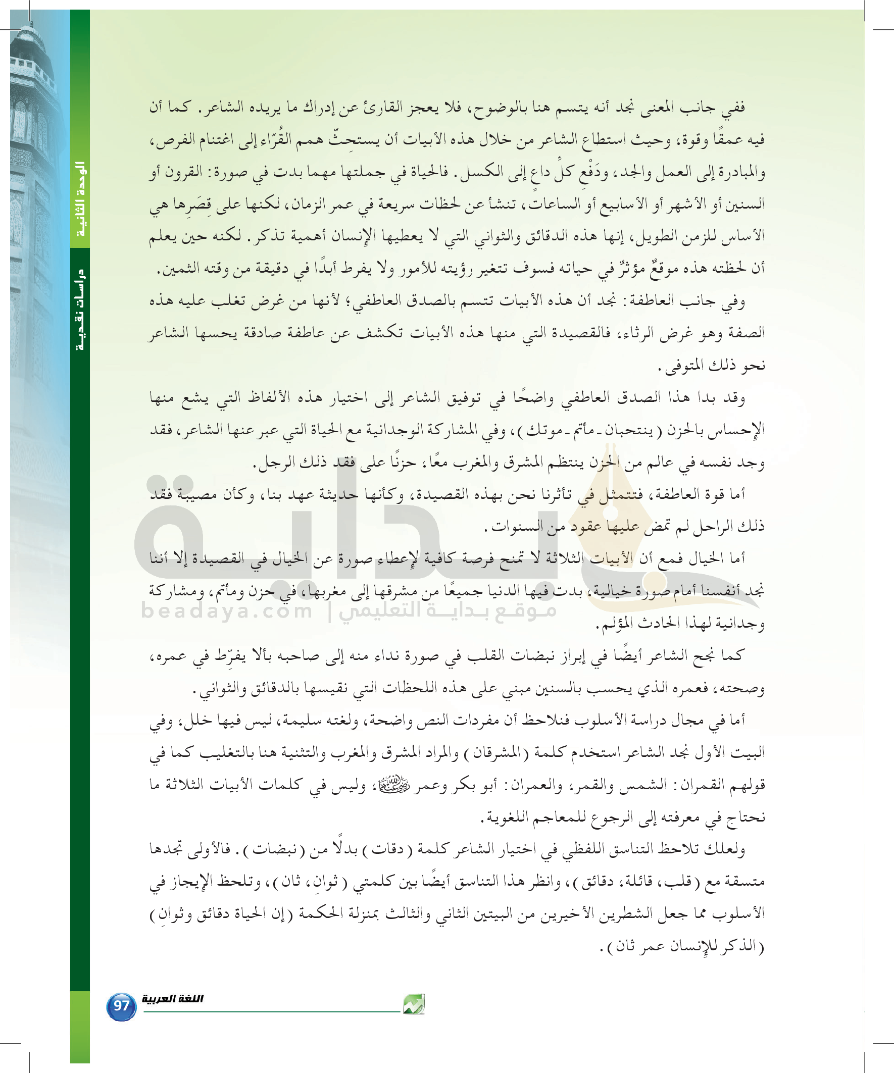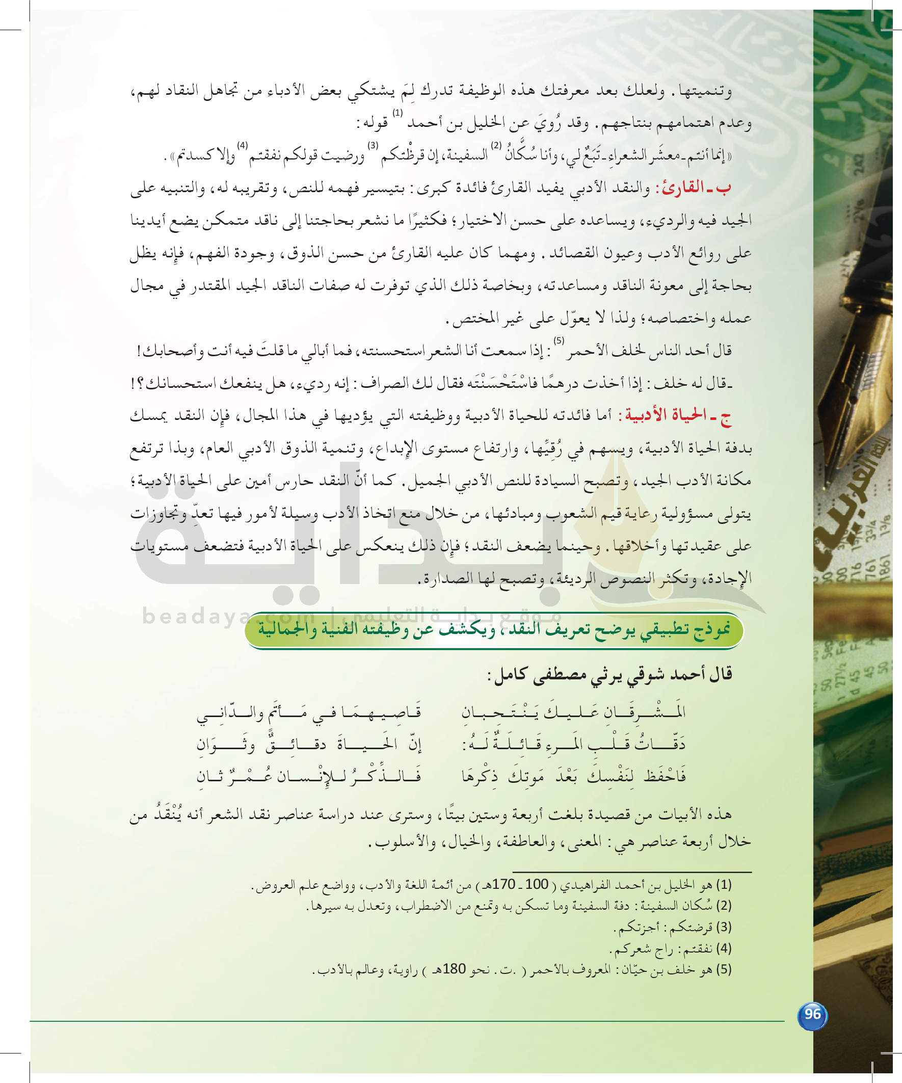 الوحدة 2 - الموضوع الرابع: نماذج من النقد التطبيقي للشعر