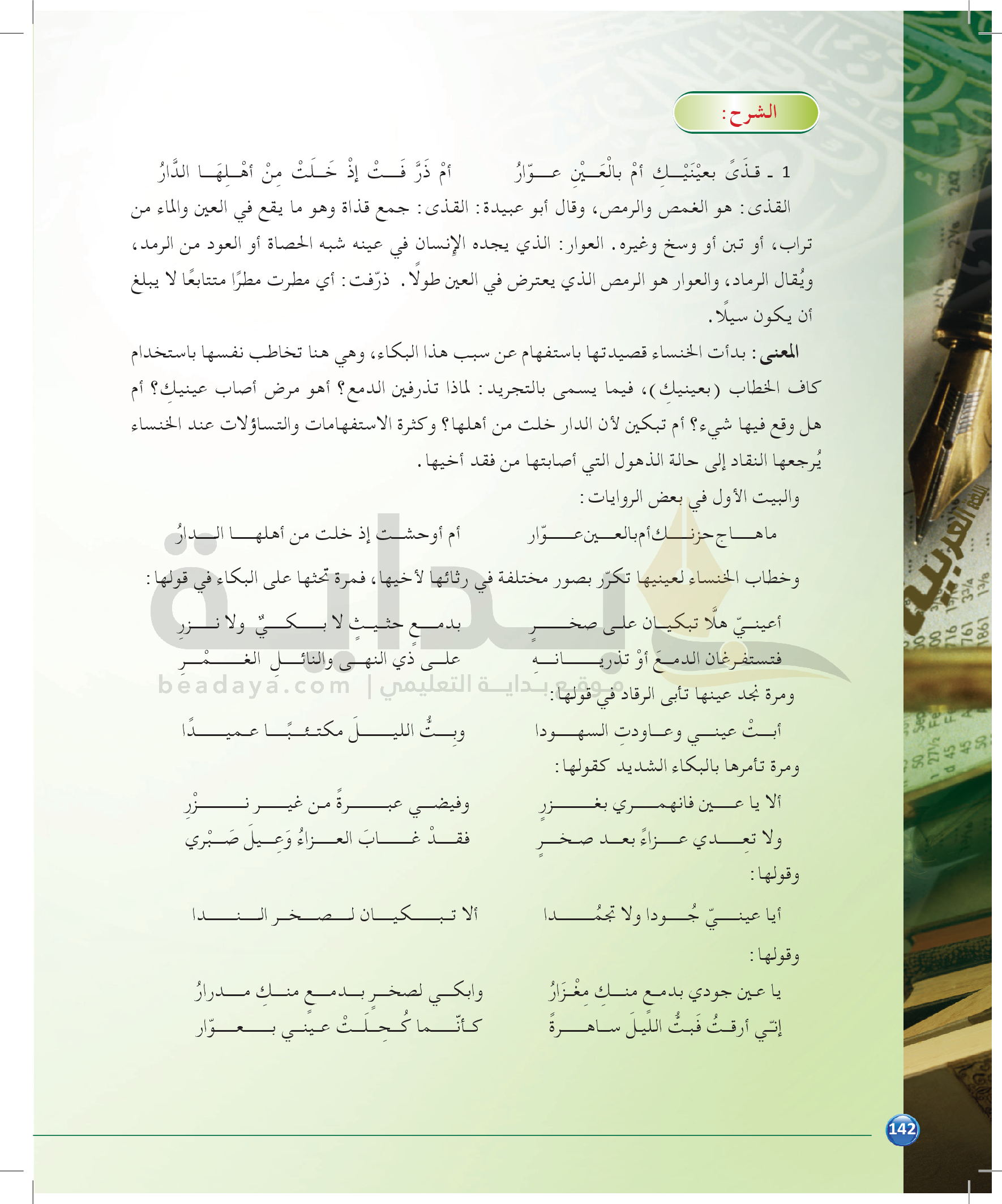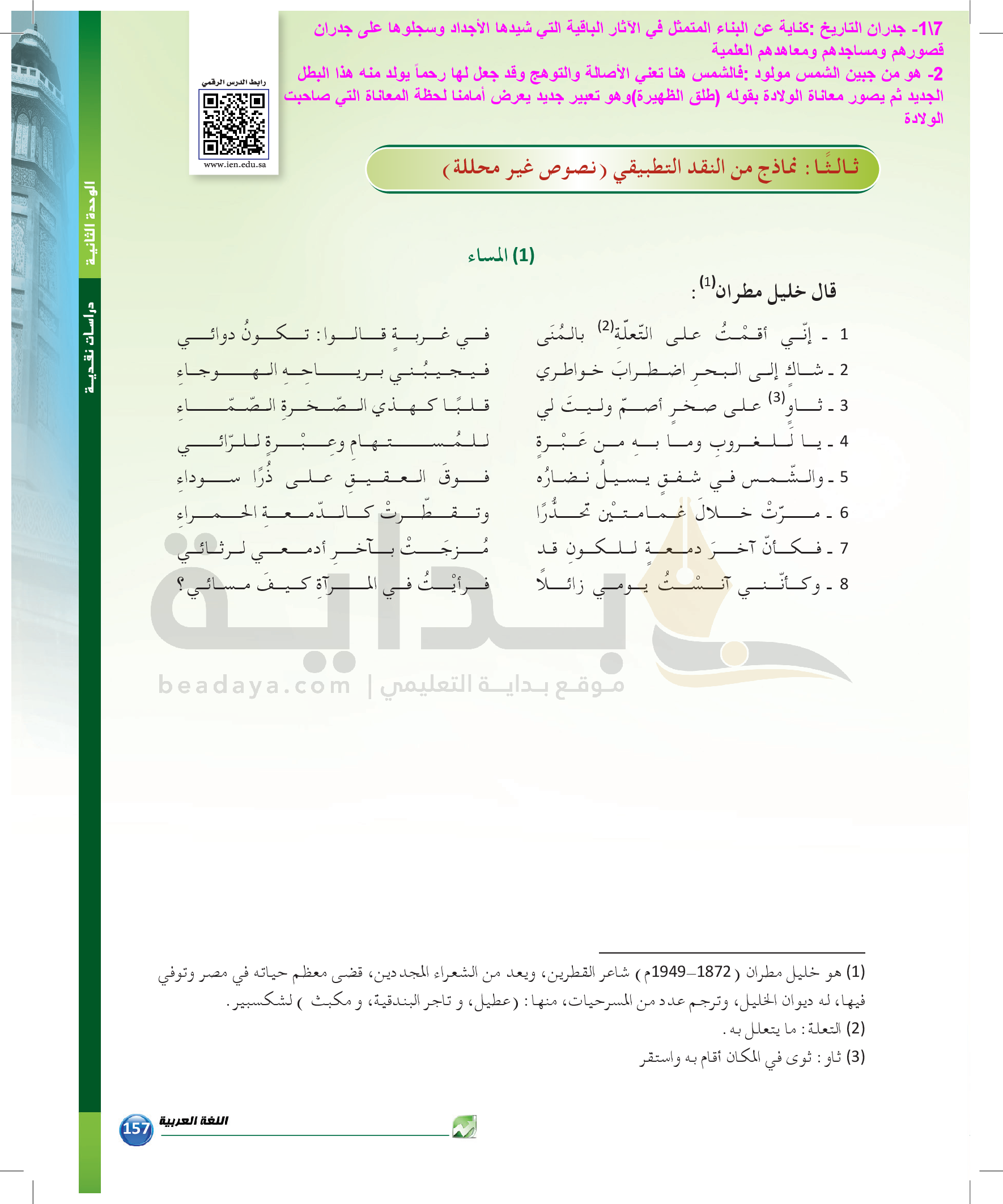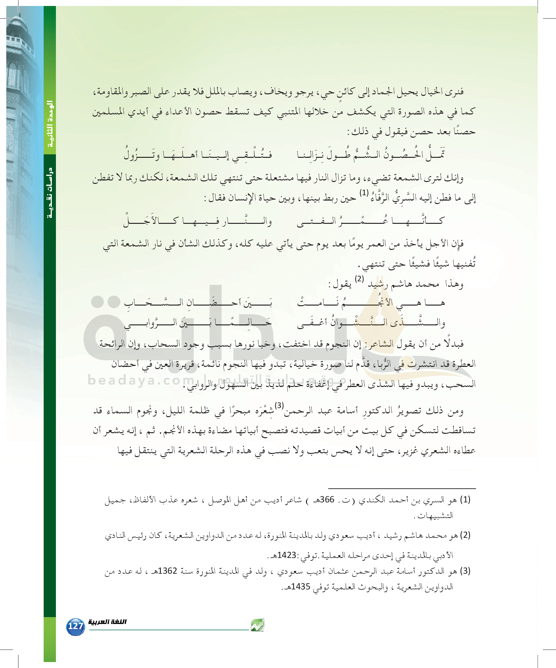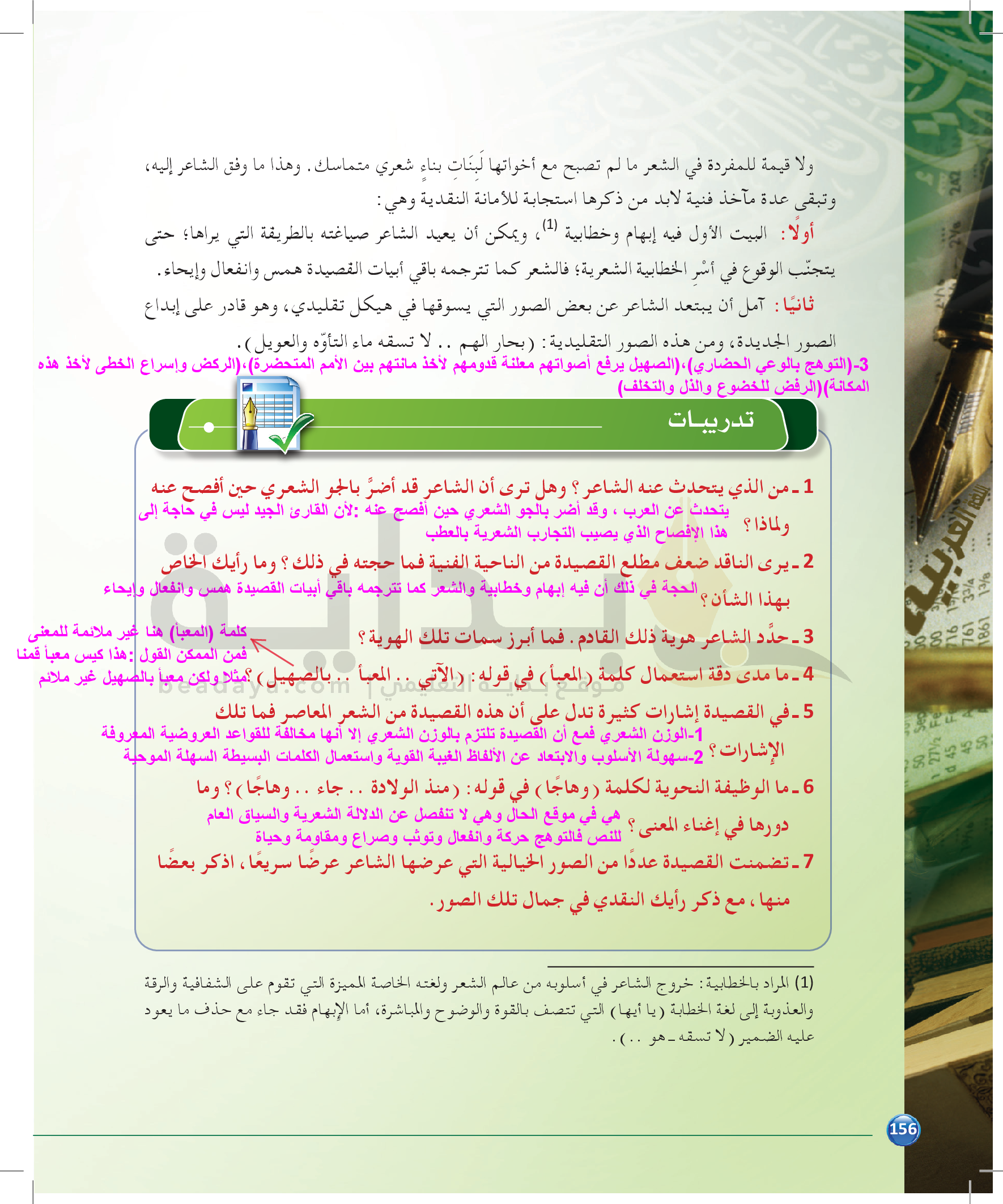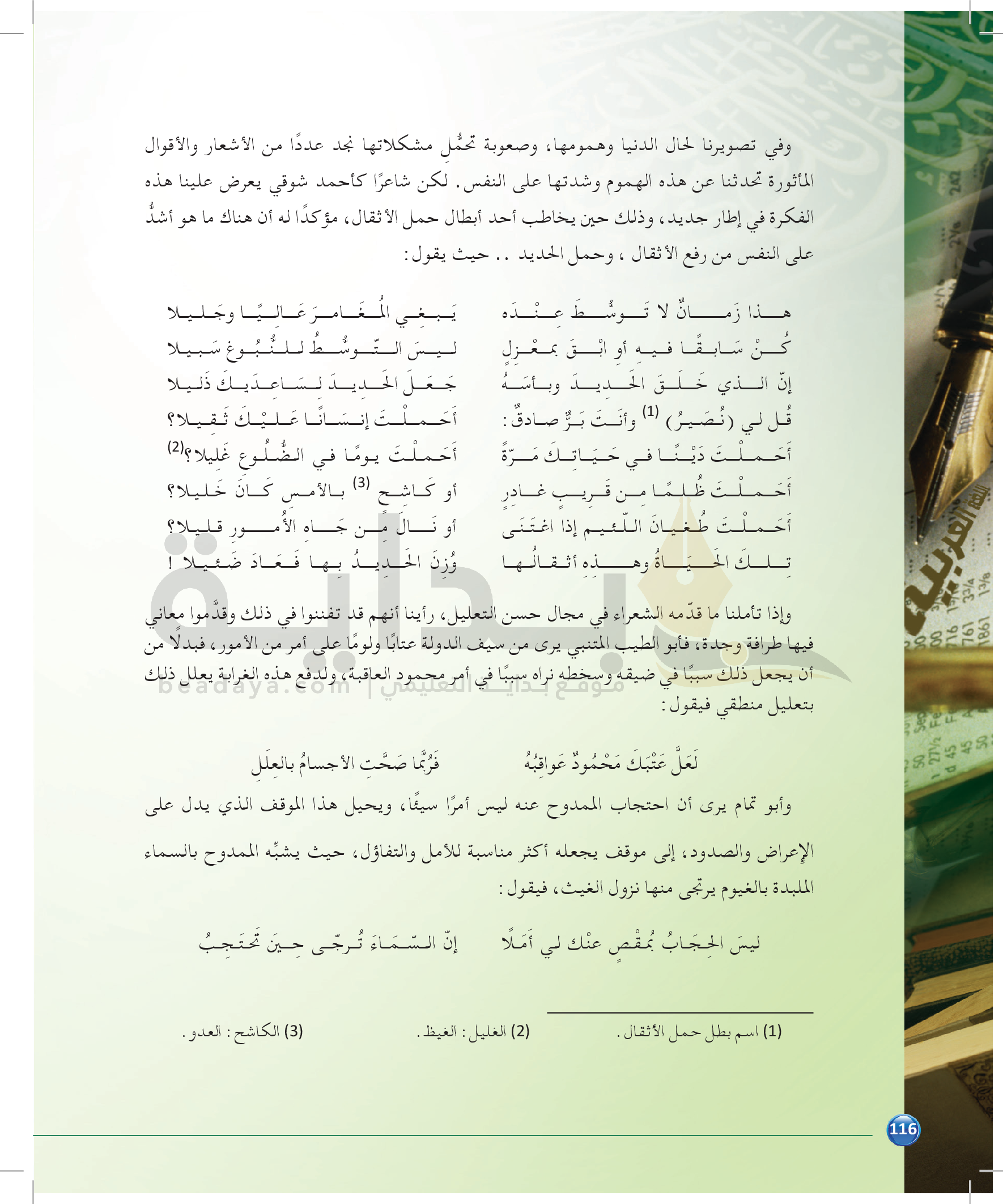 الوحدة 2 - الموضوع الرابع: نماذج من النقد التطبيقي للشعر