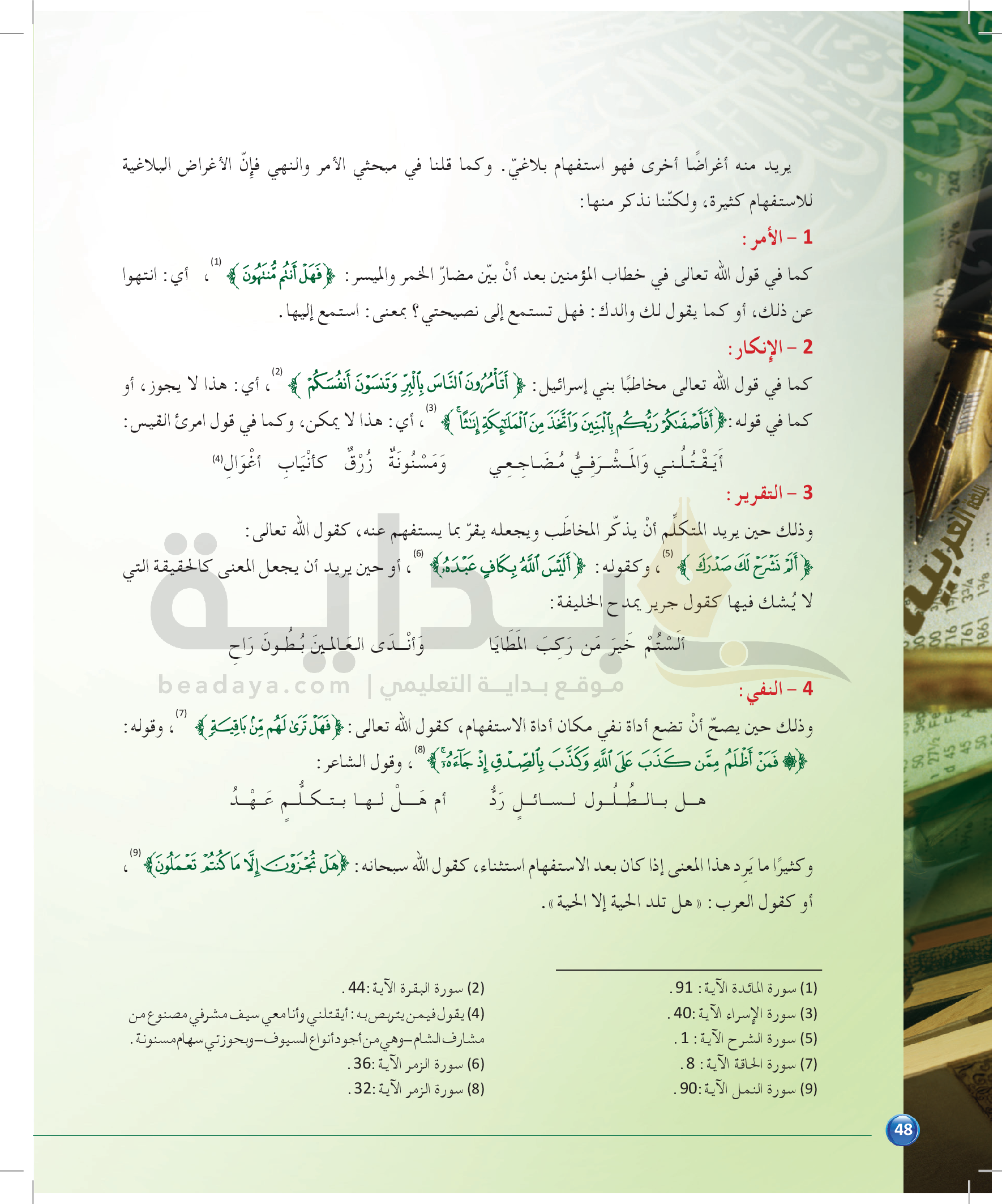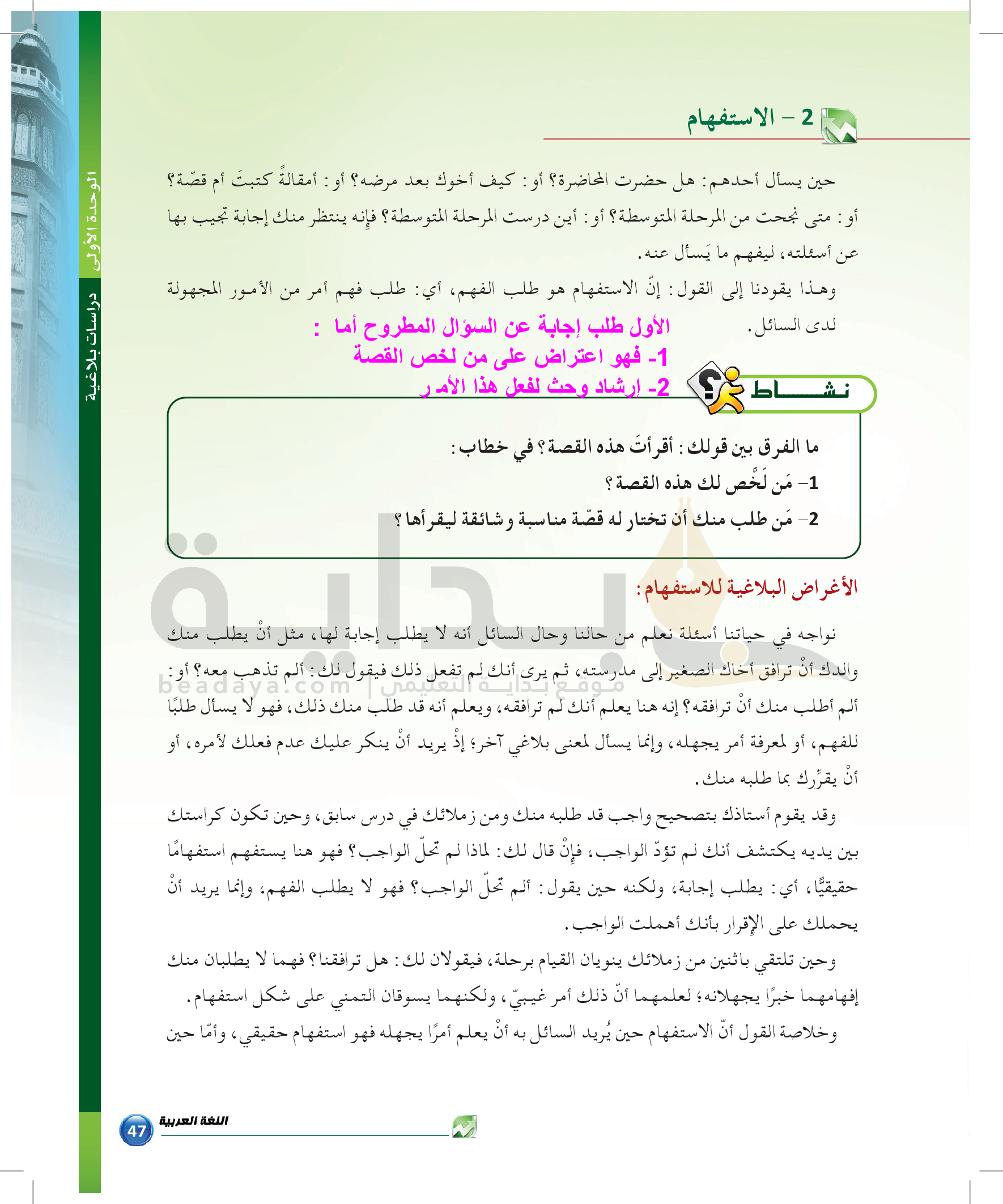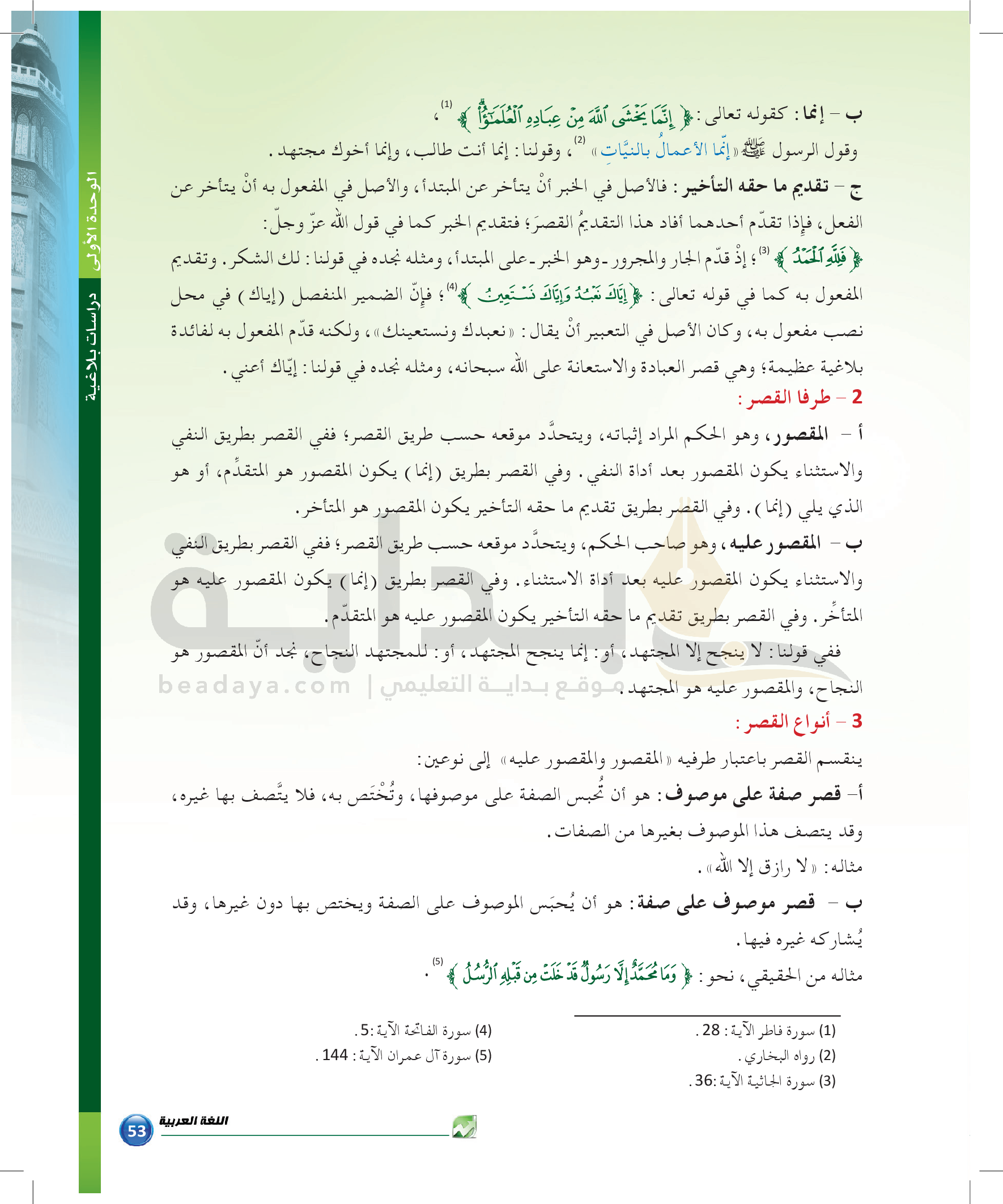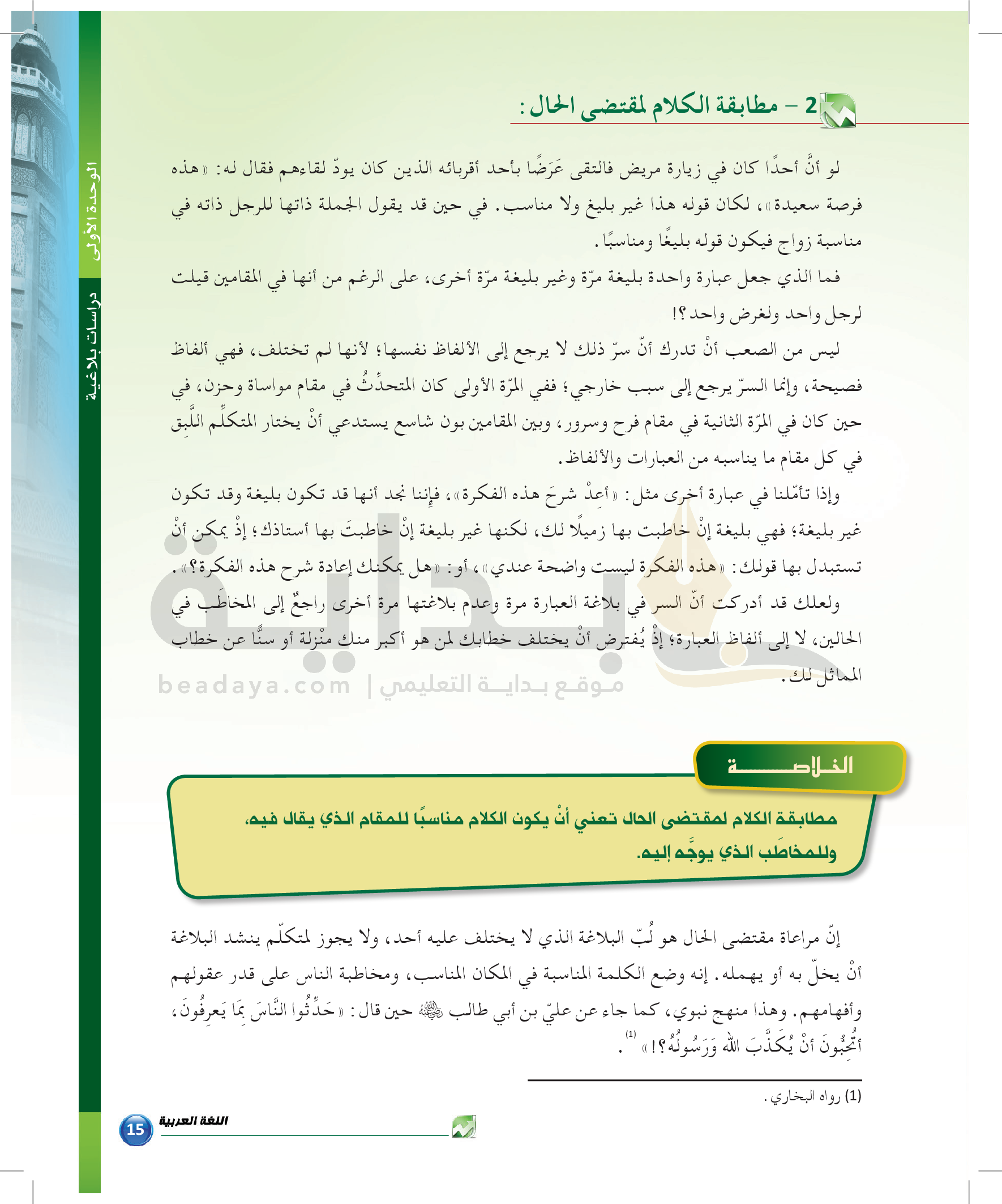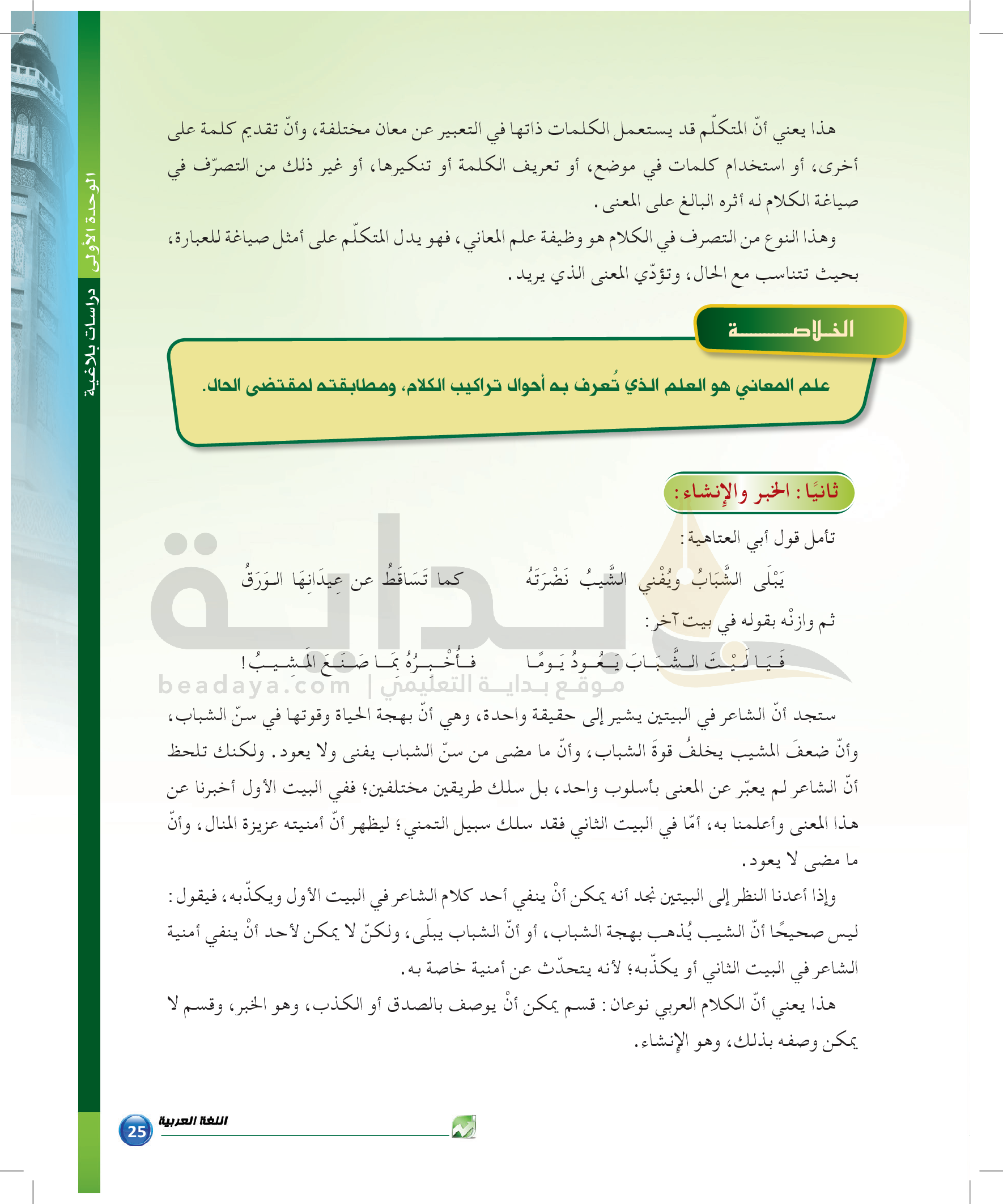 الوحدة 1 - الموضوع الثاني: من مباحث علم المعاني