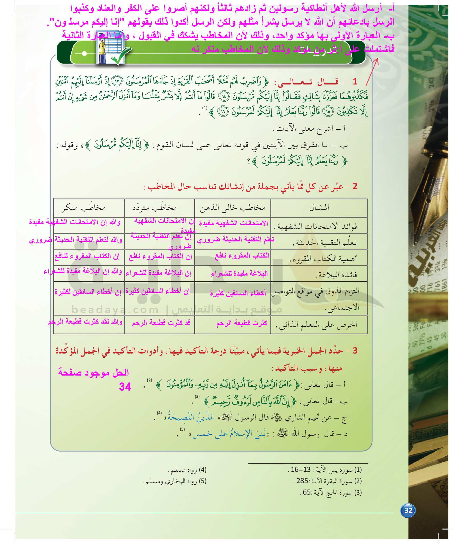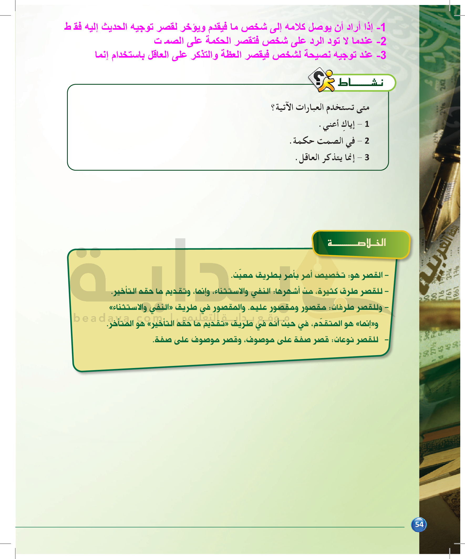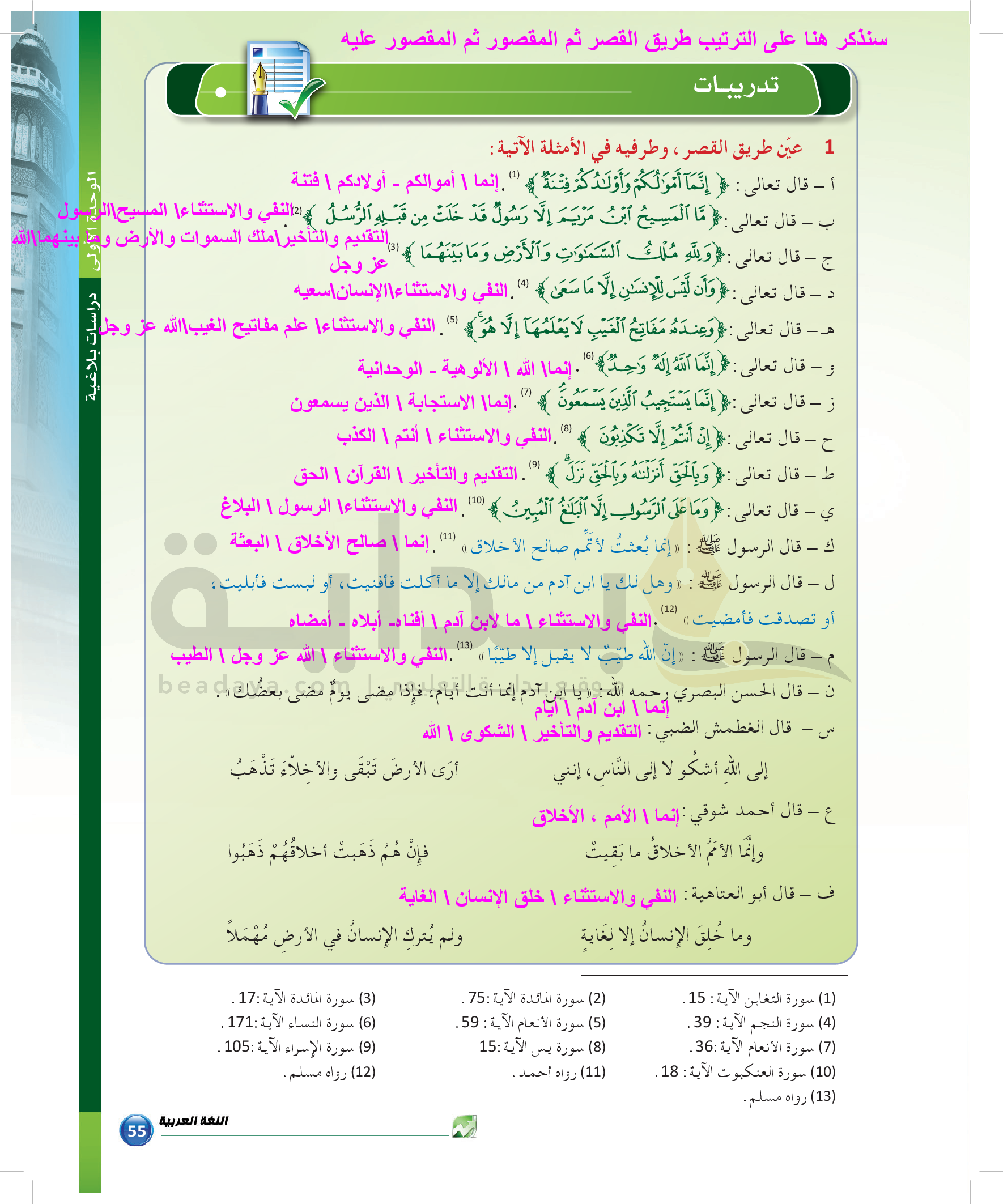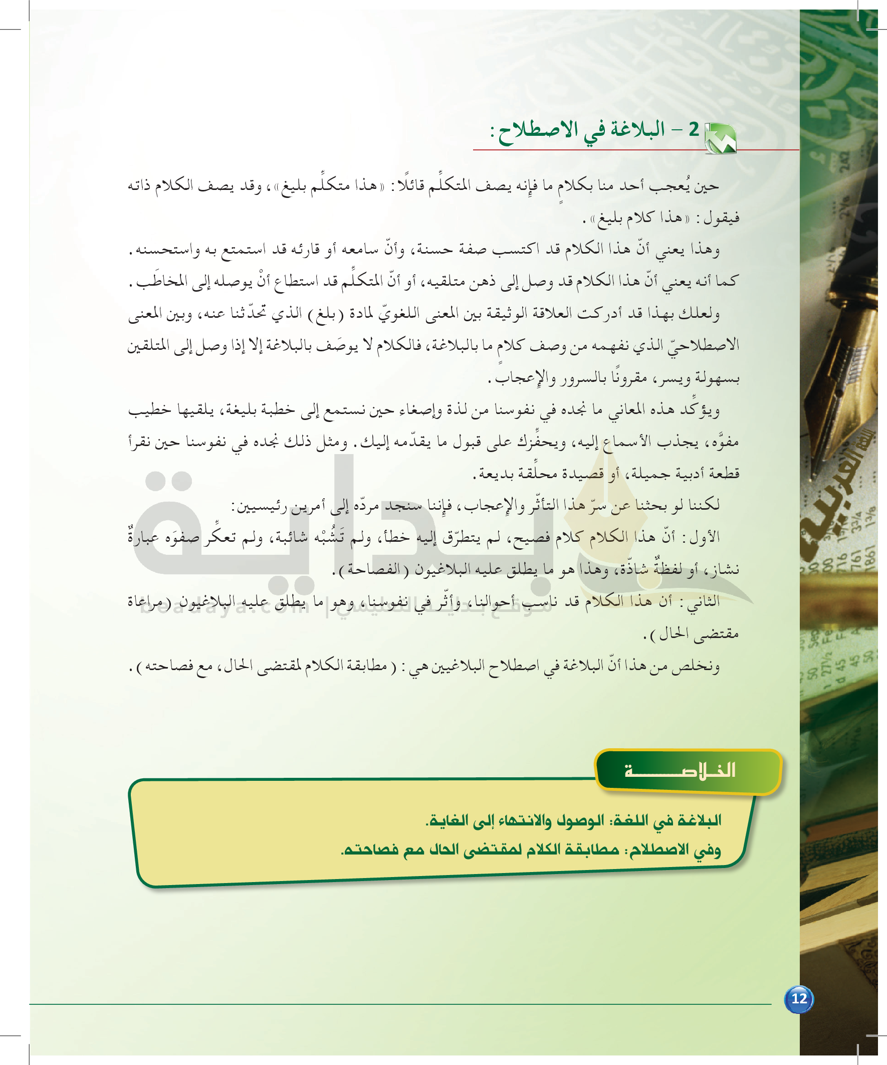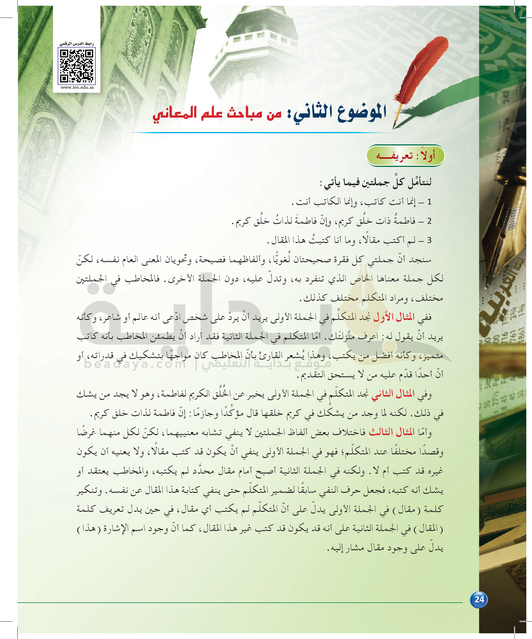 الوحدة 1 - الموضوع الثاني: من مباحث علم المعاني