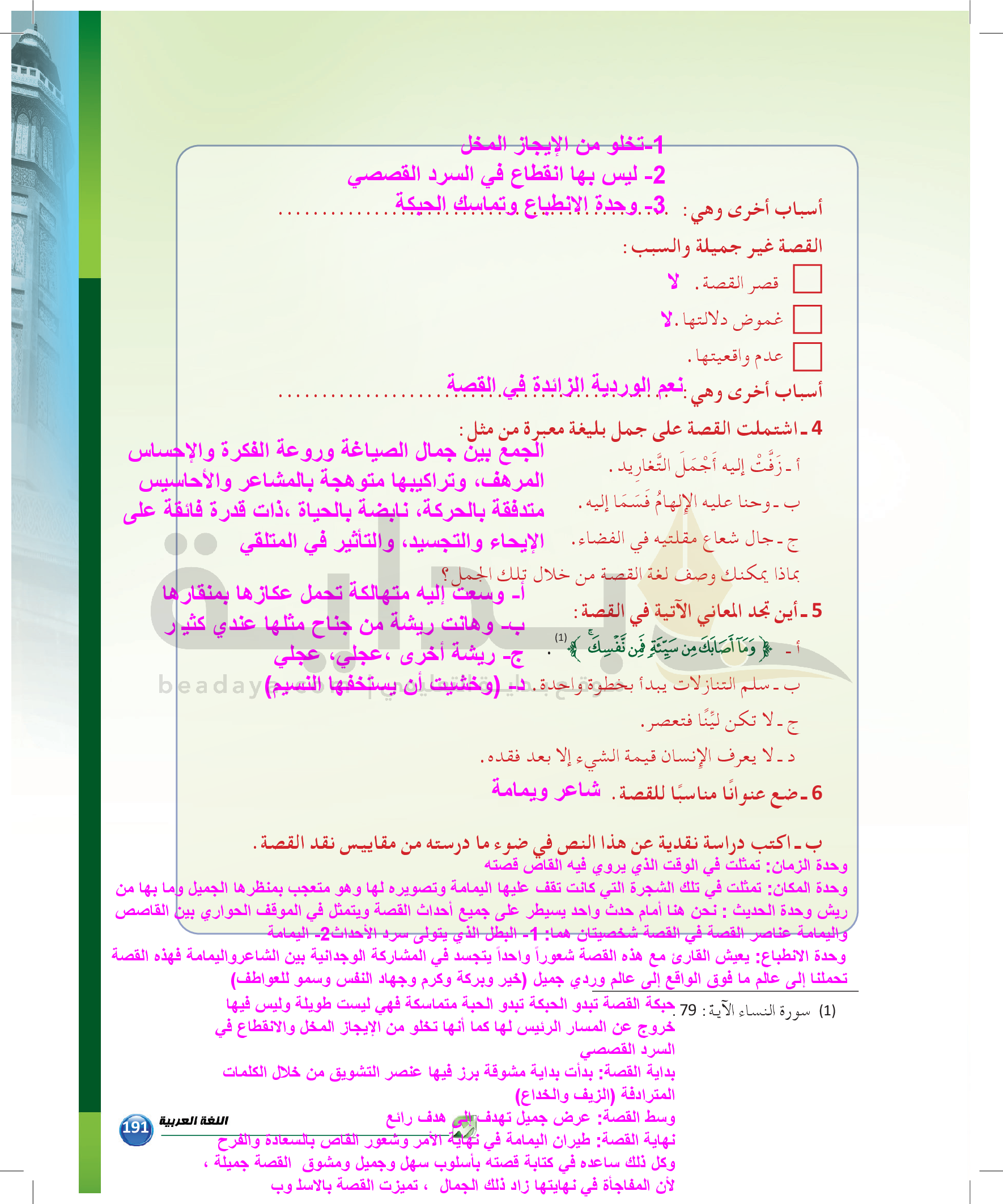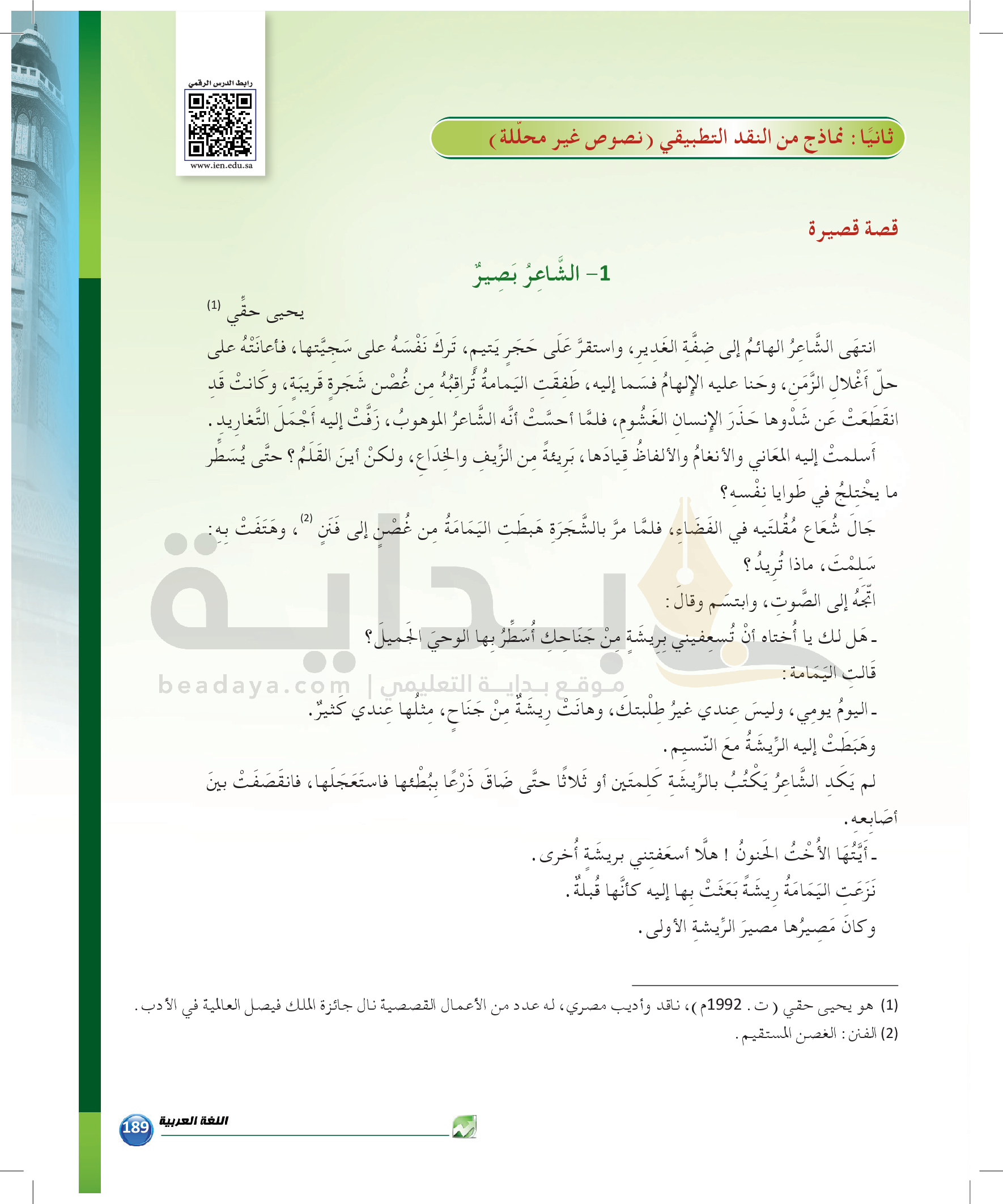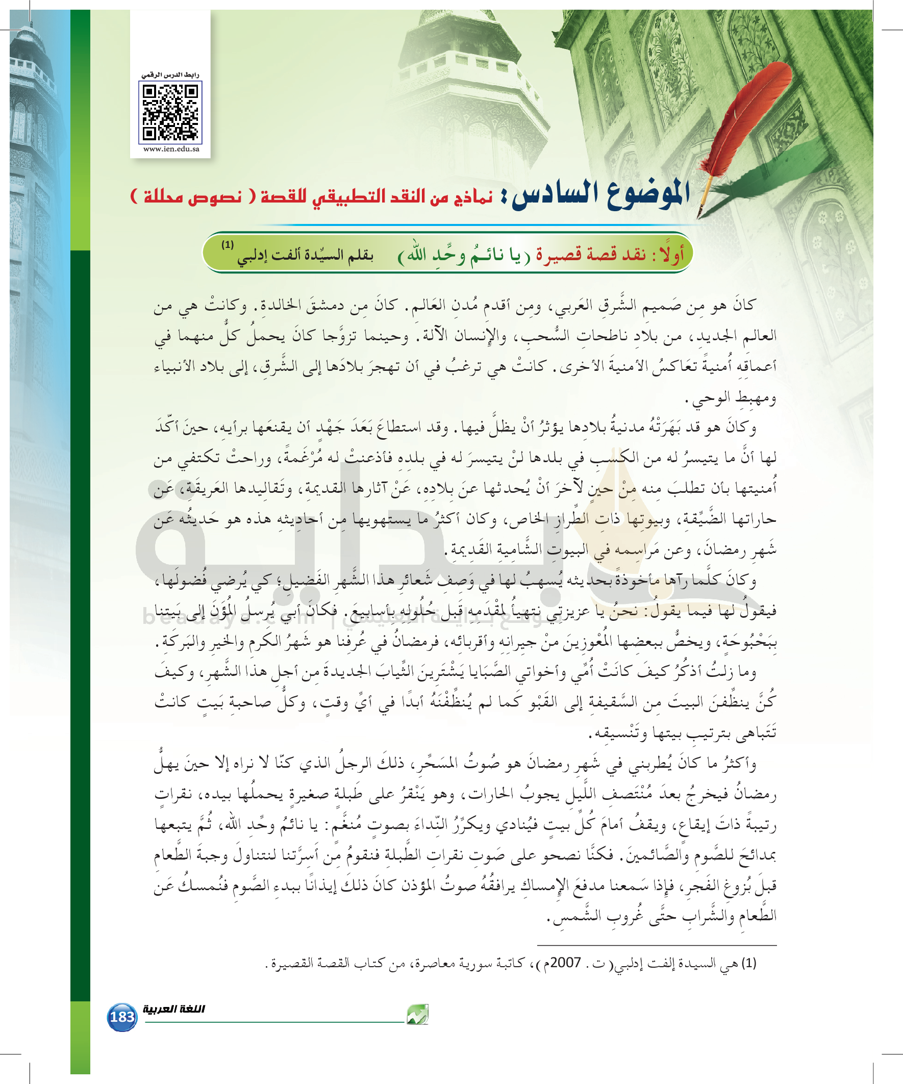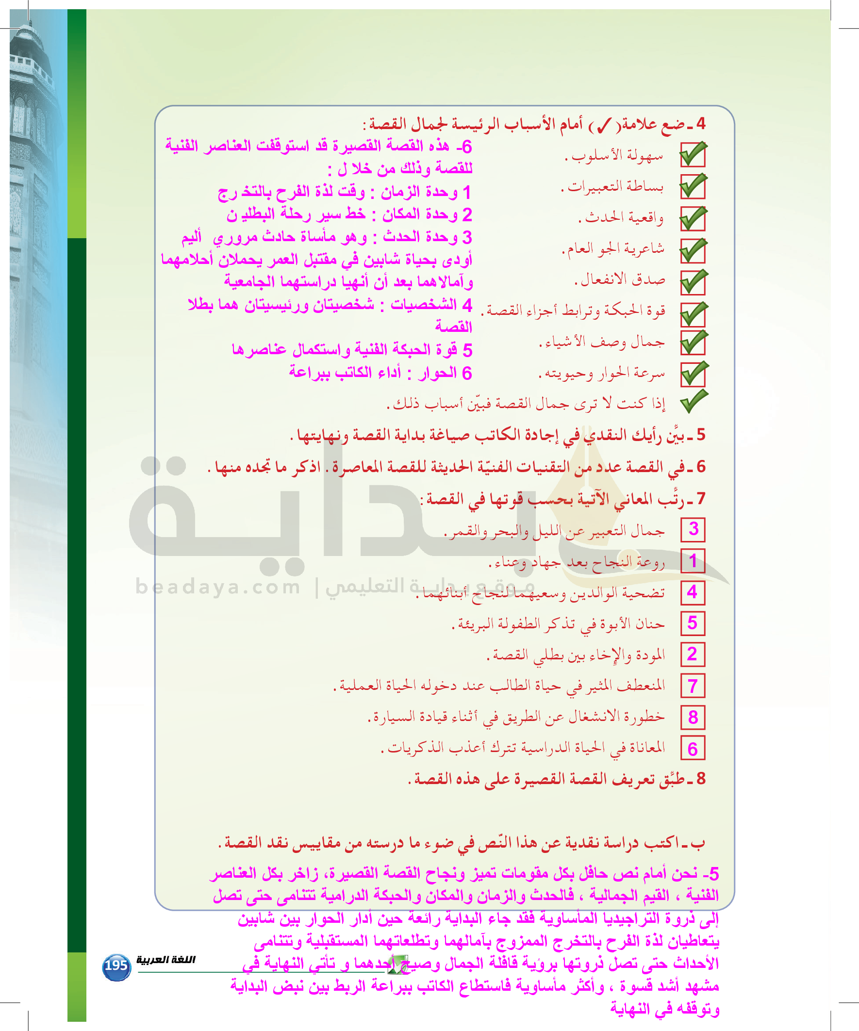 الوحدة 2 - الموضوع السادس: نماذج من النقد التطبيقي للقصة