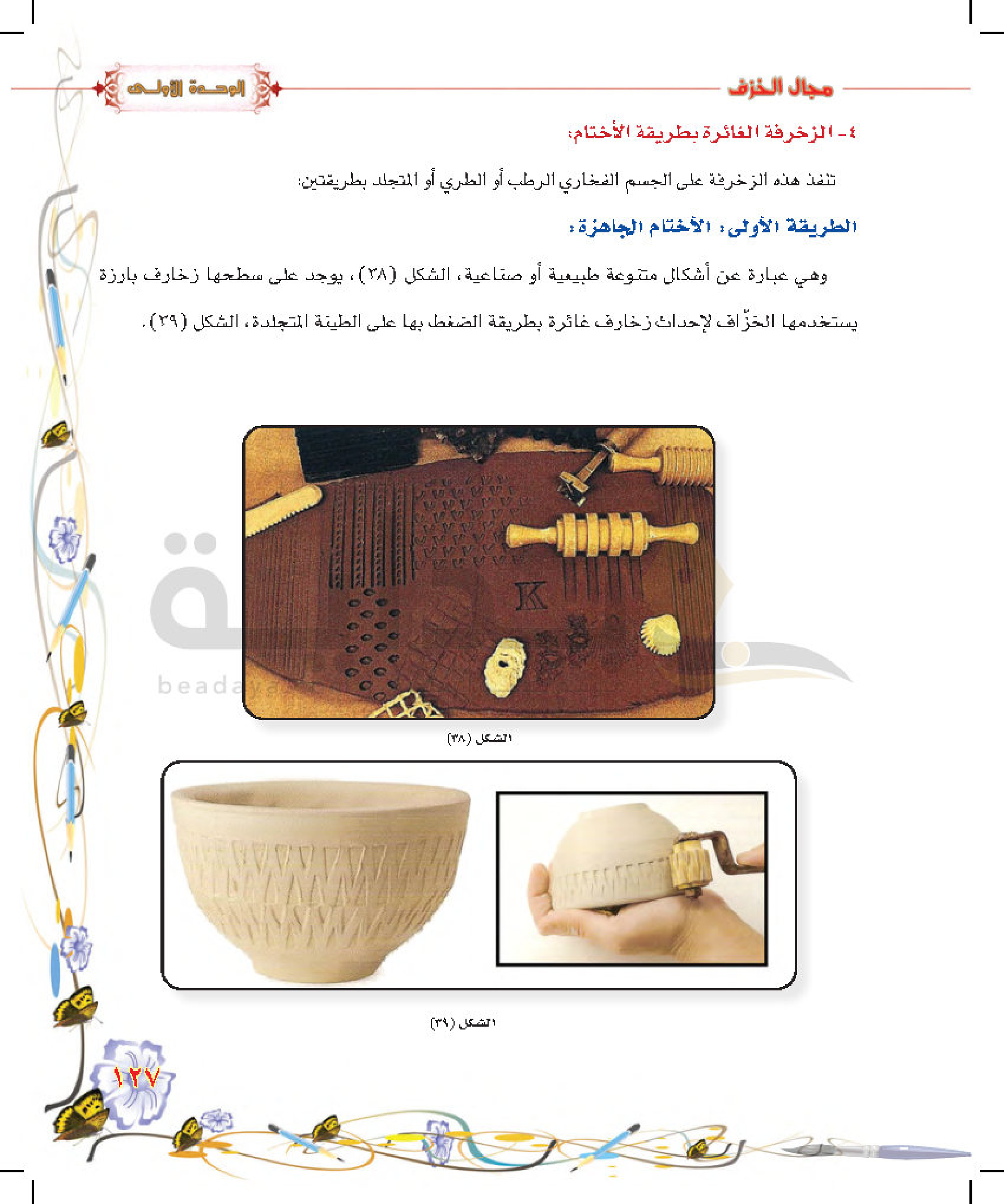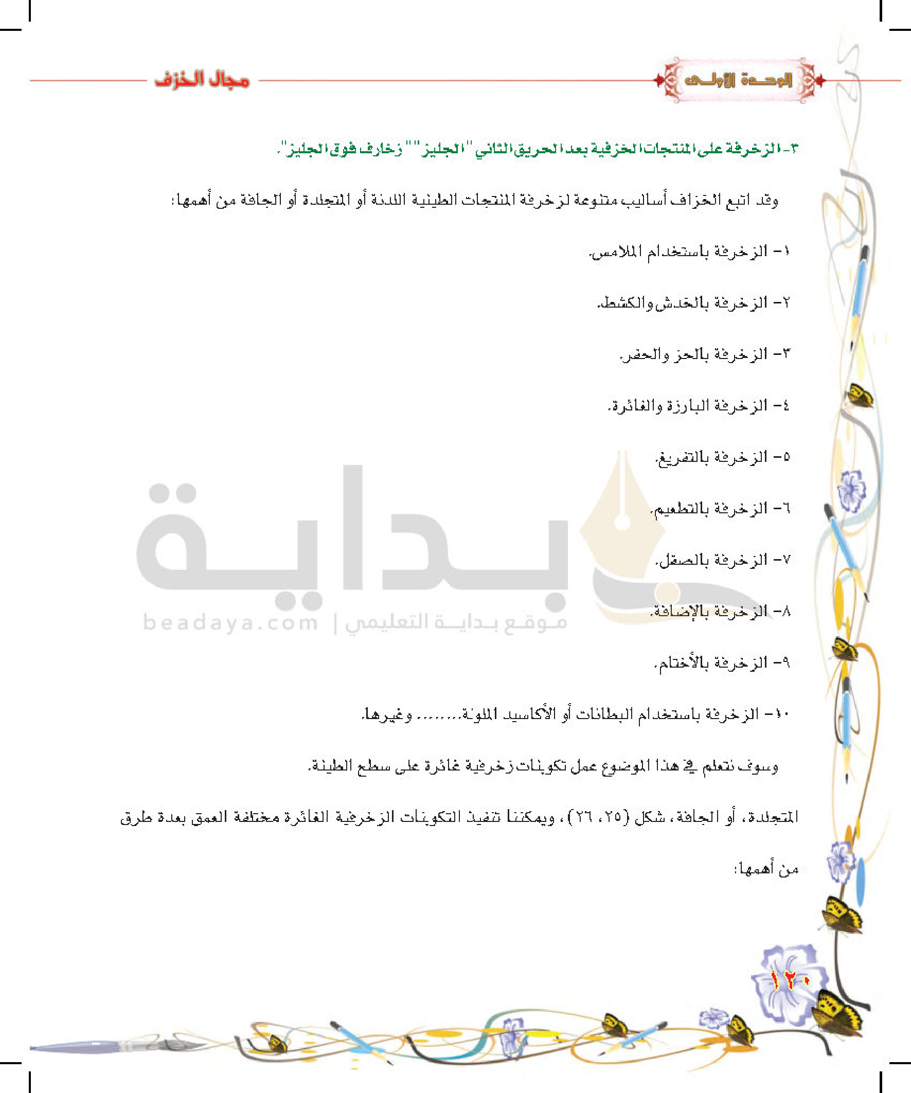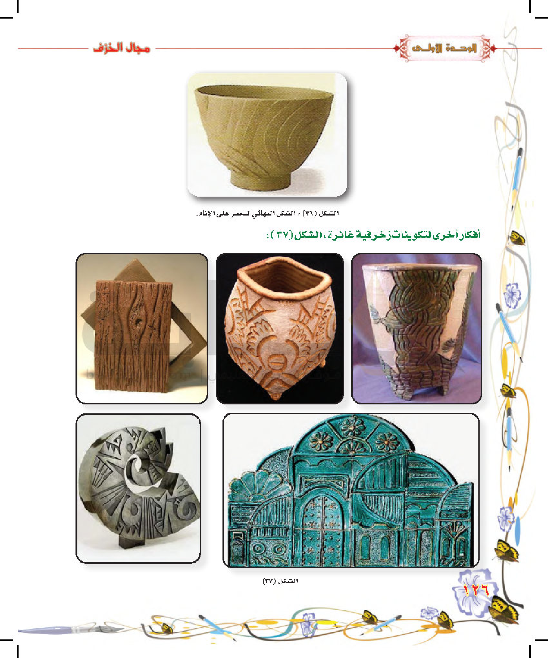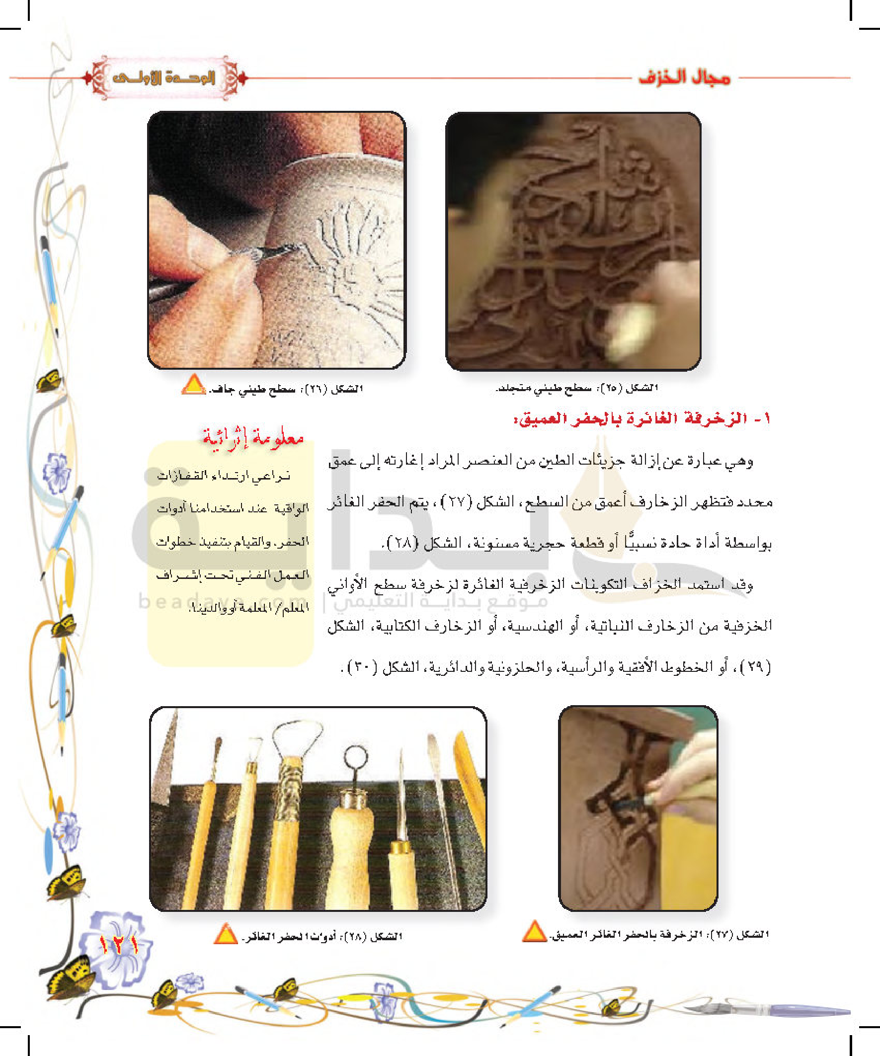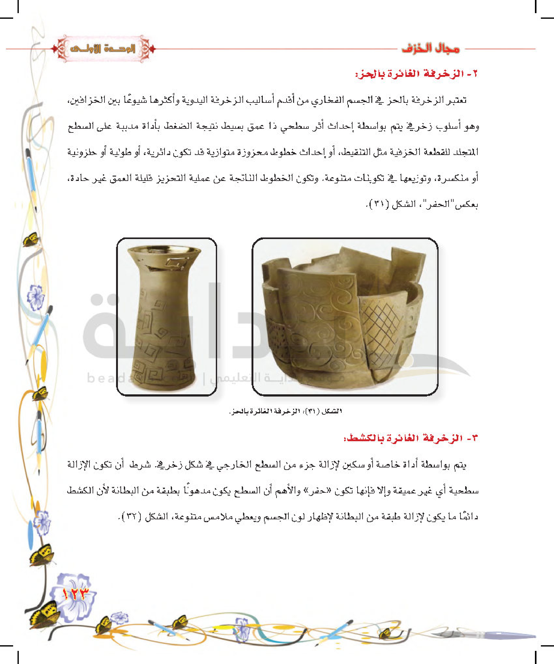 تكوينات زخرفية غائرة على سطح الطينة المتجلدة