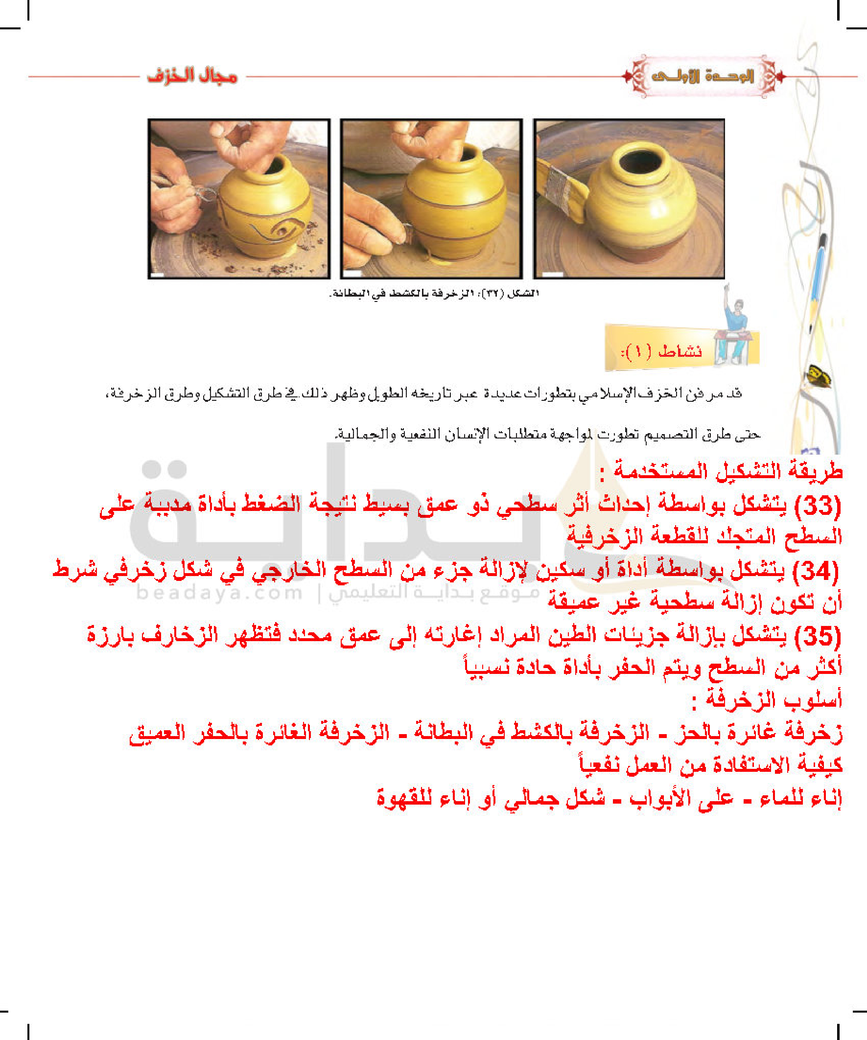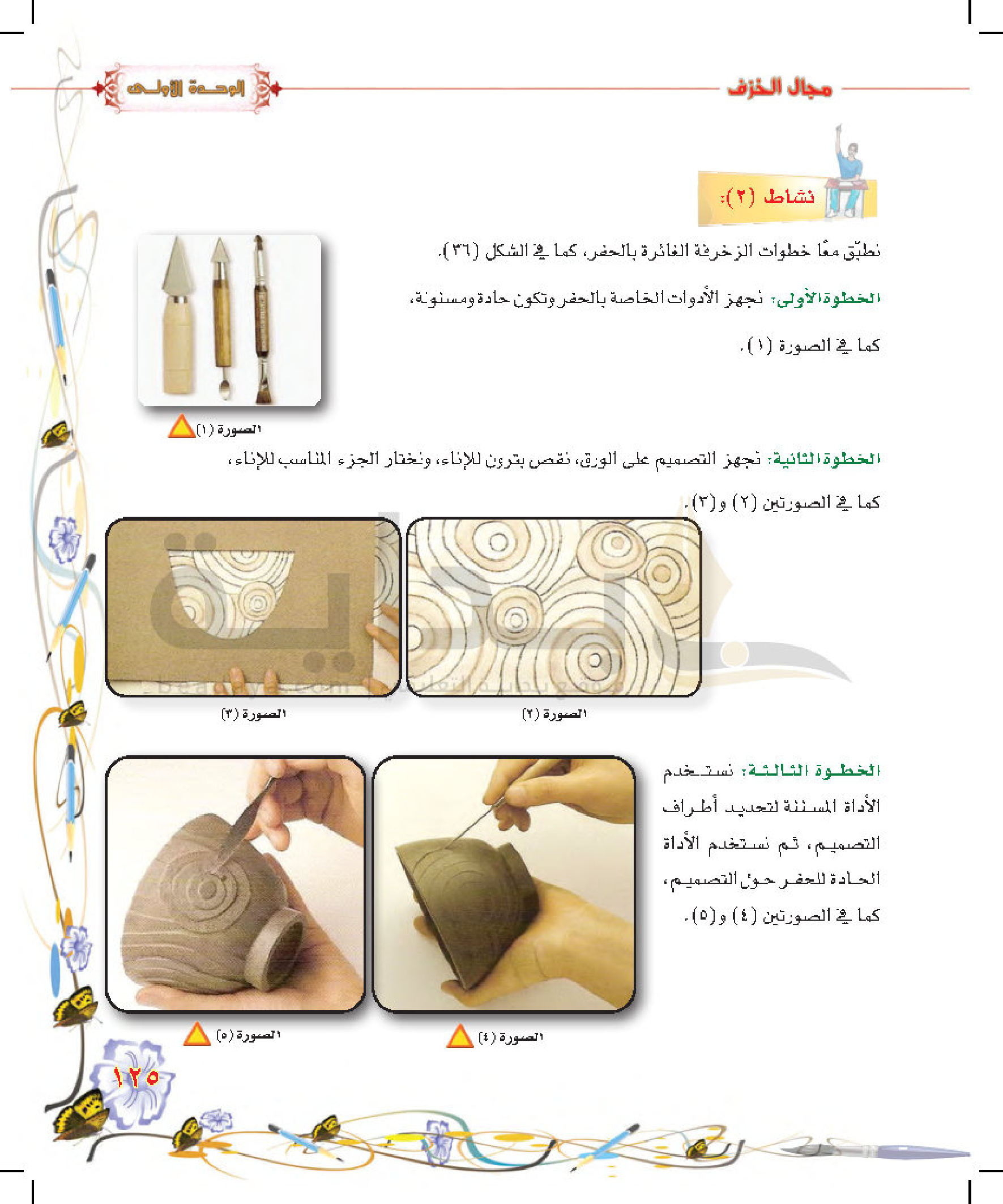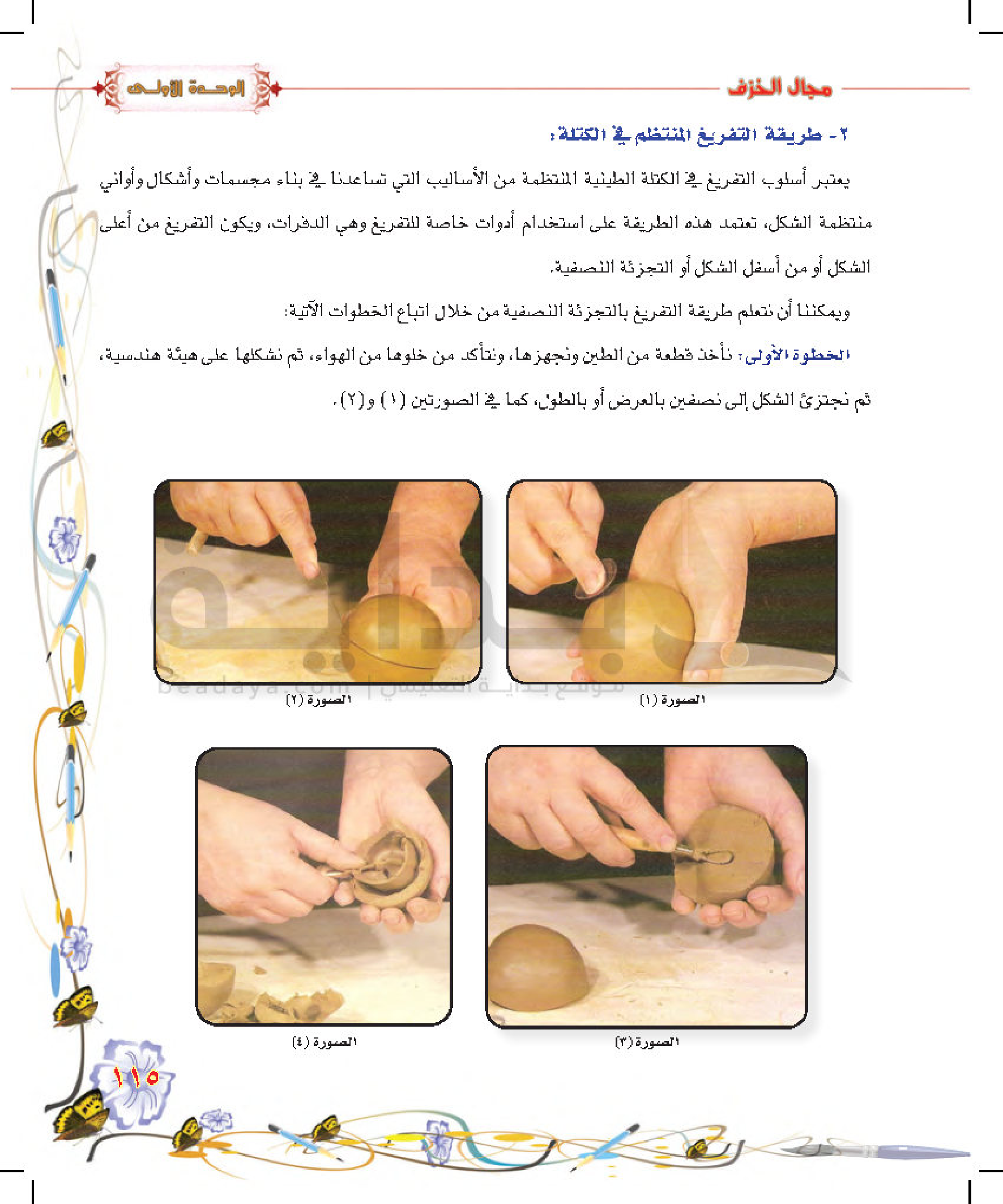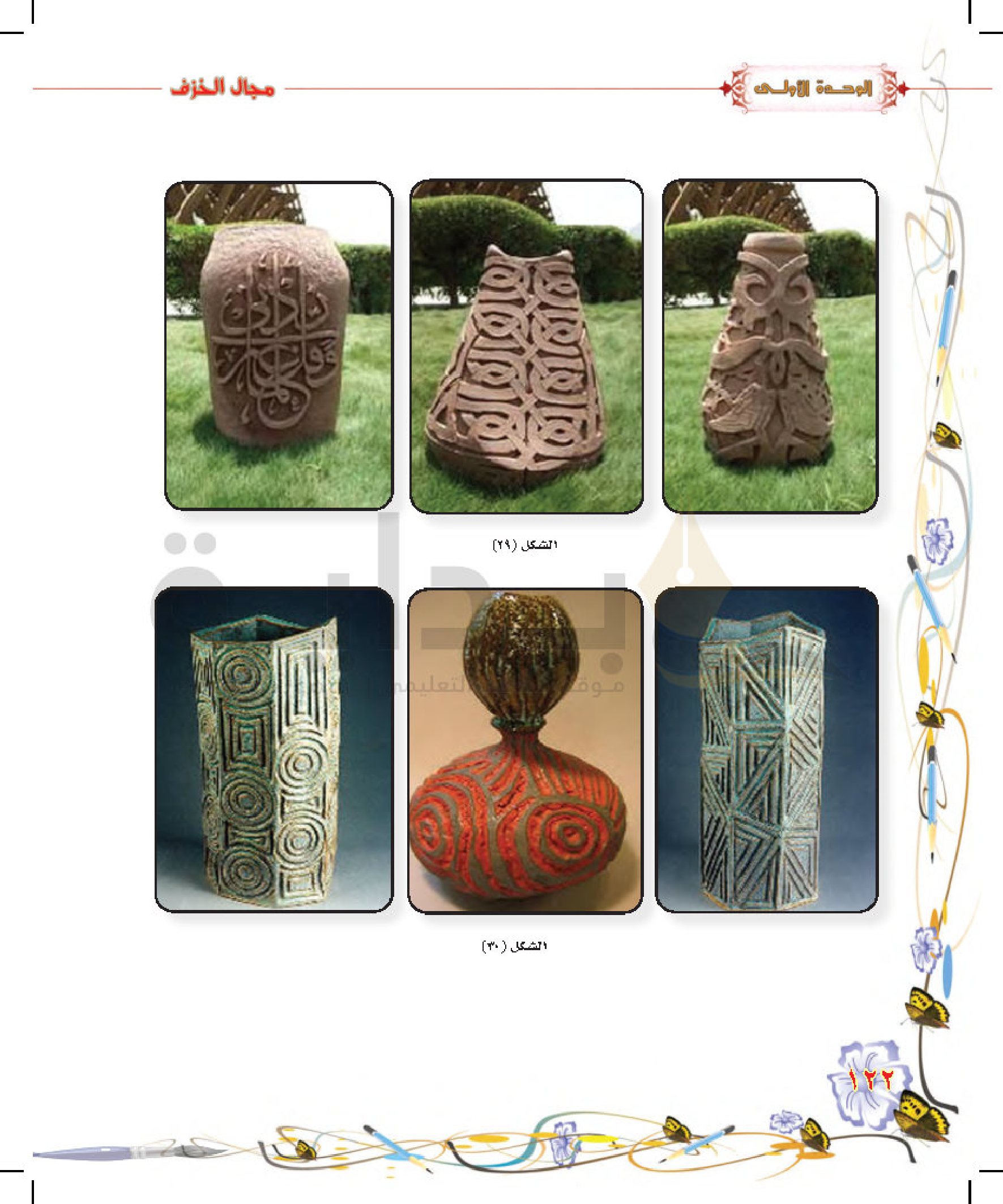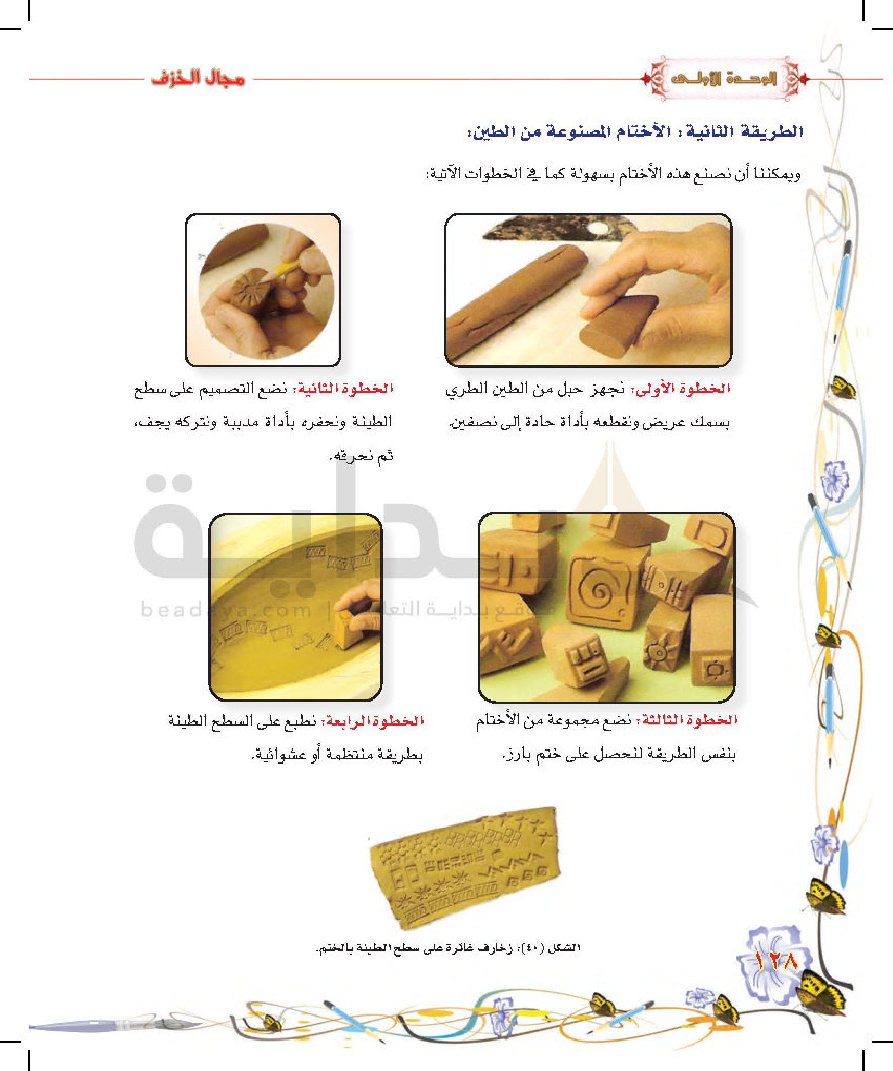 تكوينات زخرفية غائرة على سطح الطينة المتجلدة