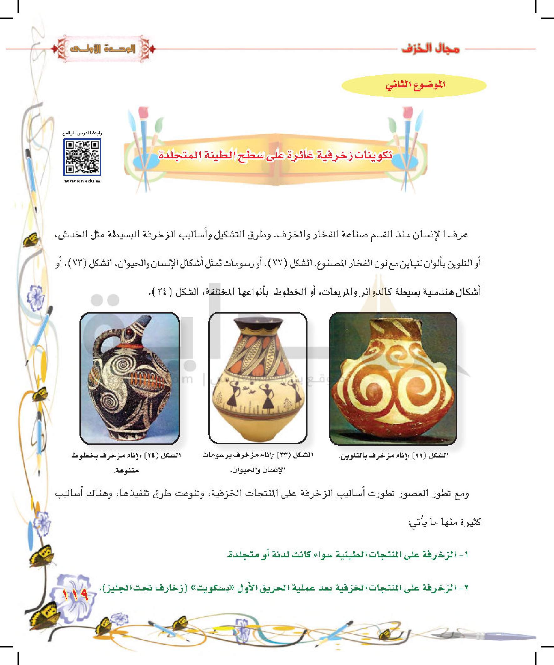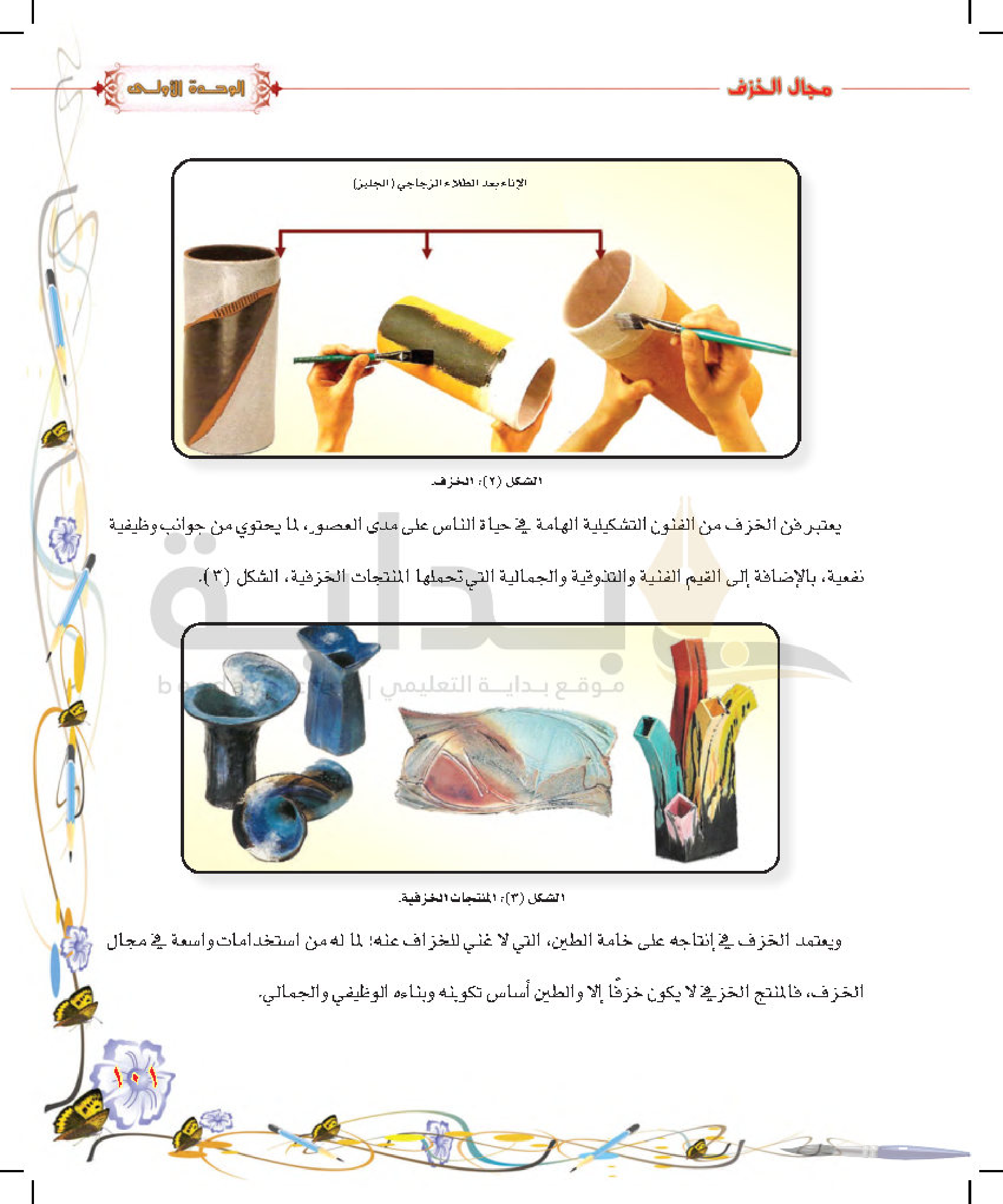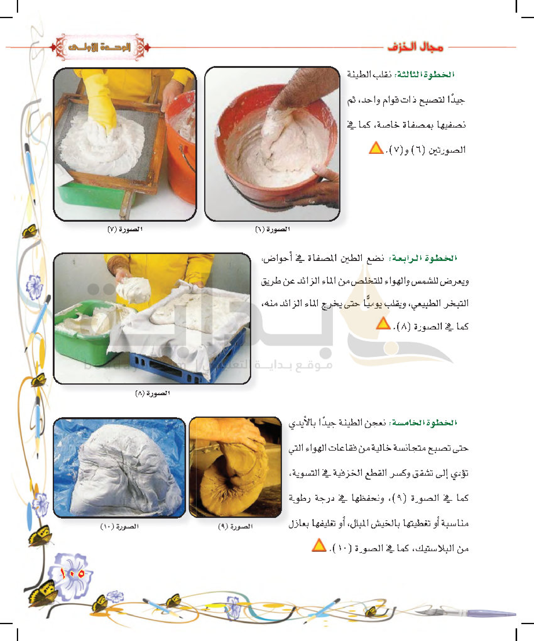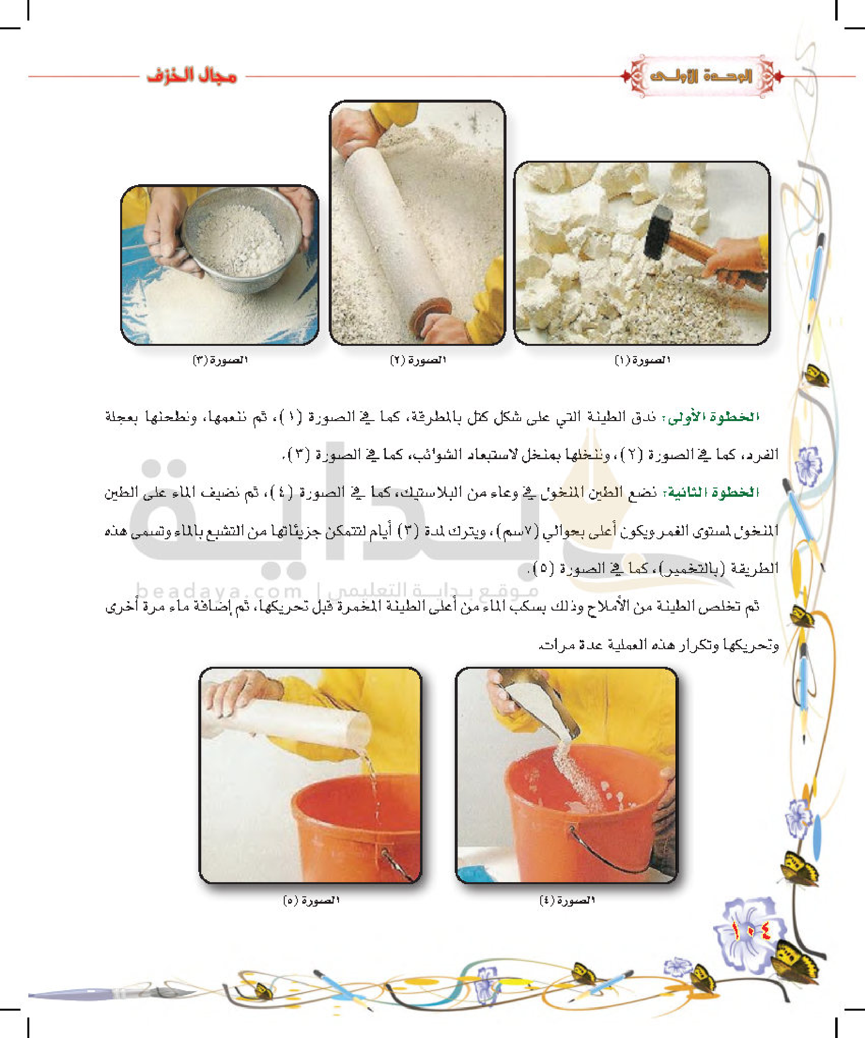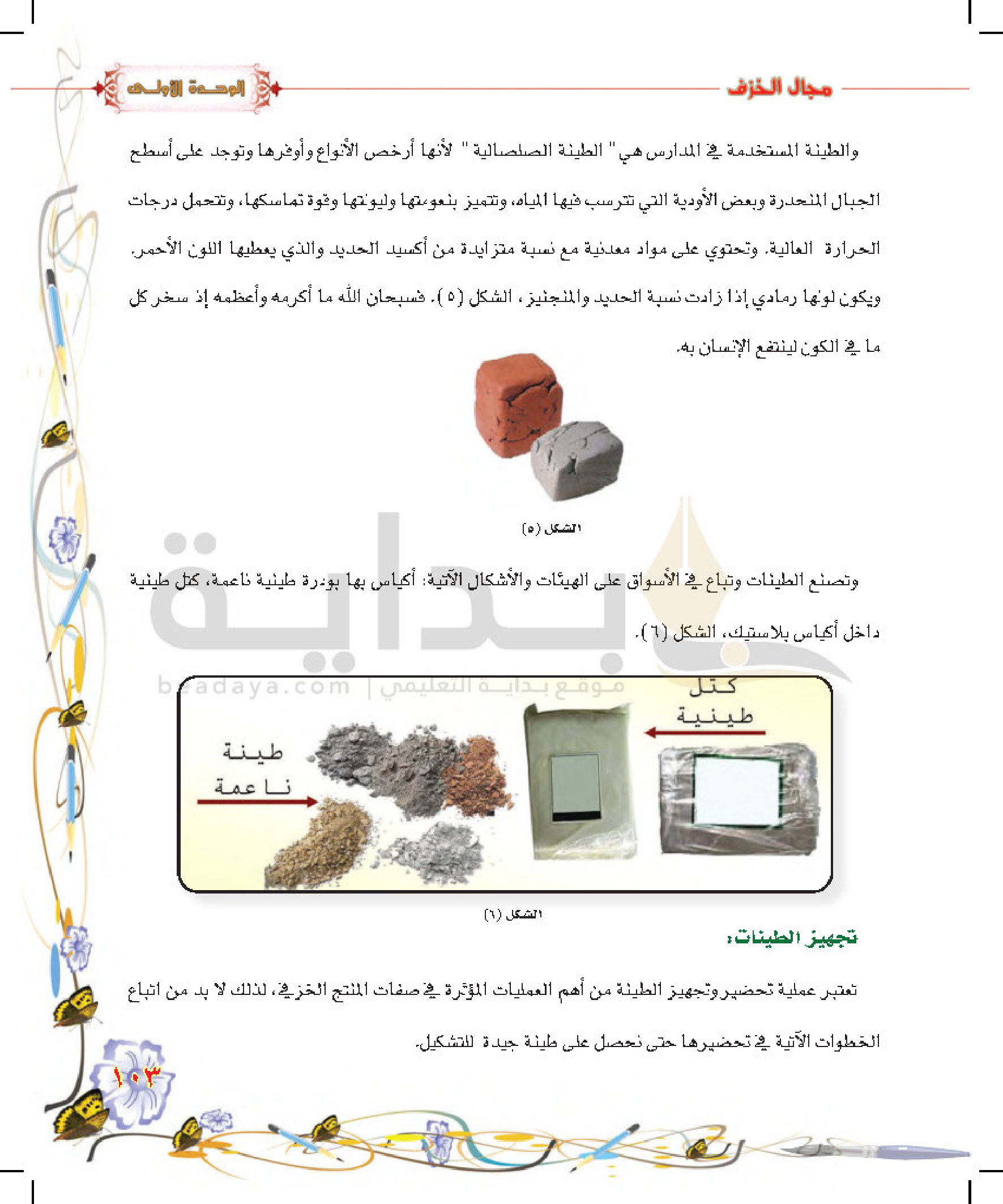 تكوينات زخرفية غائرة على سطح الطينة المتجلدة