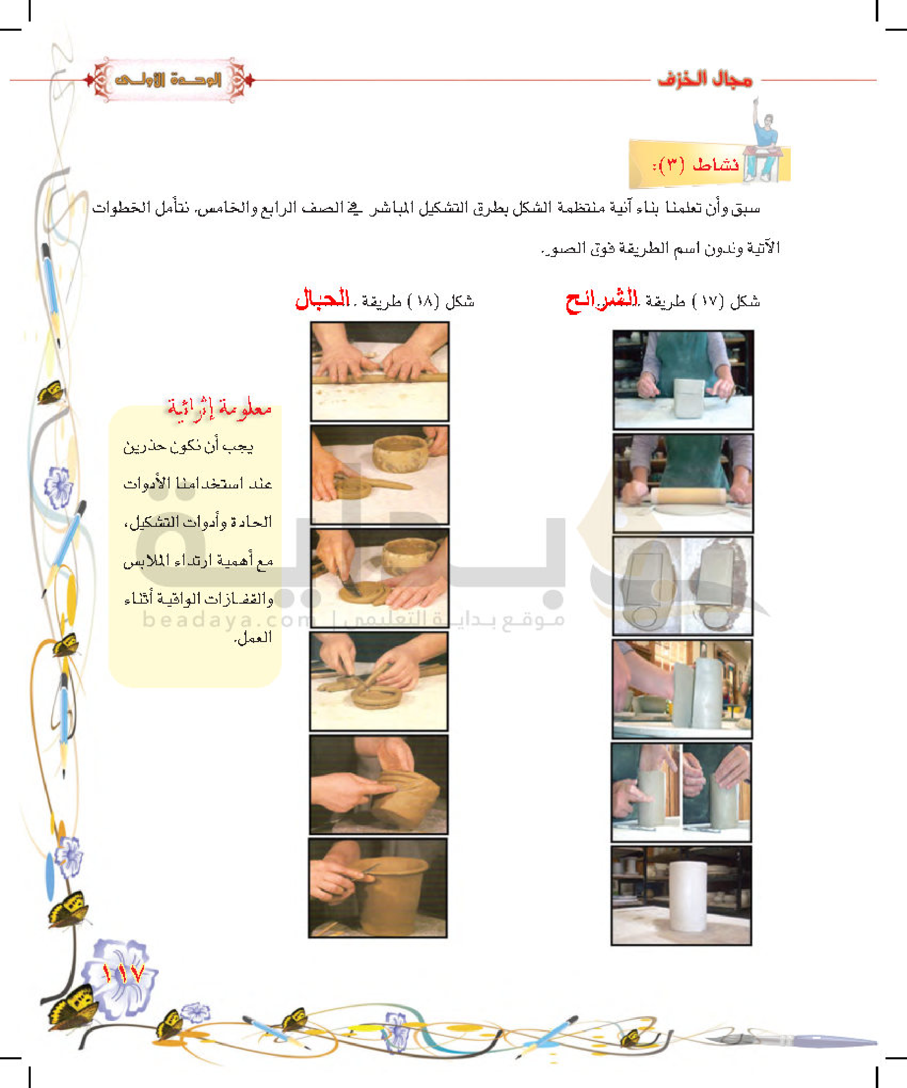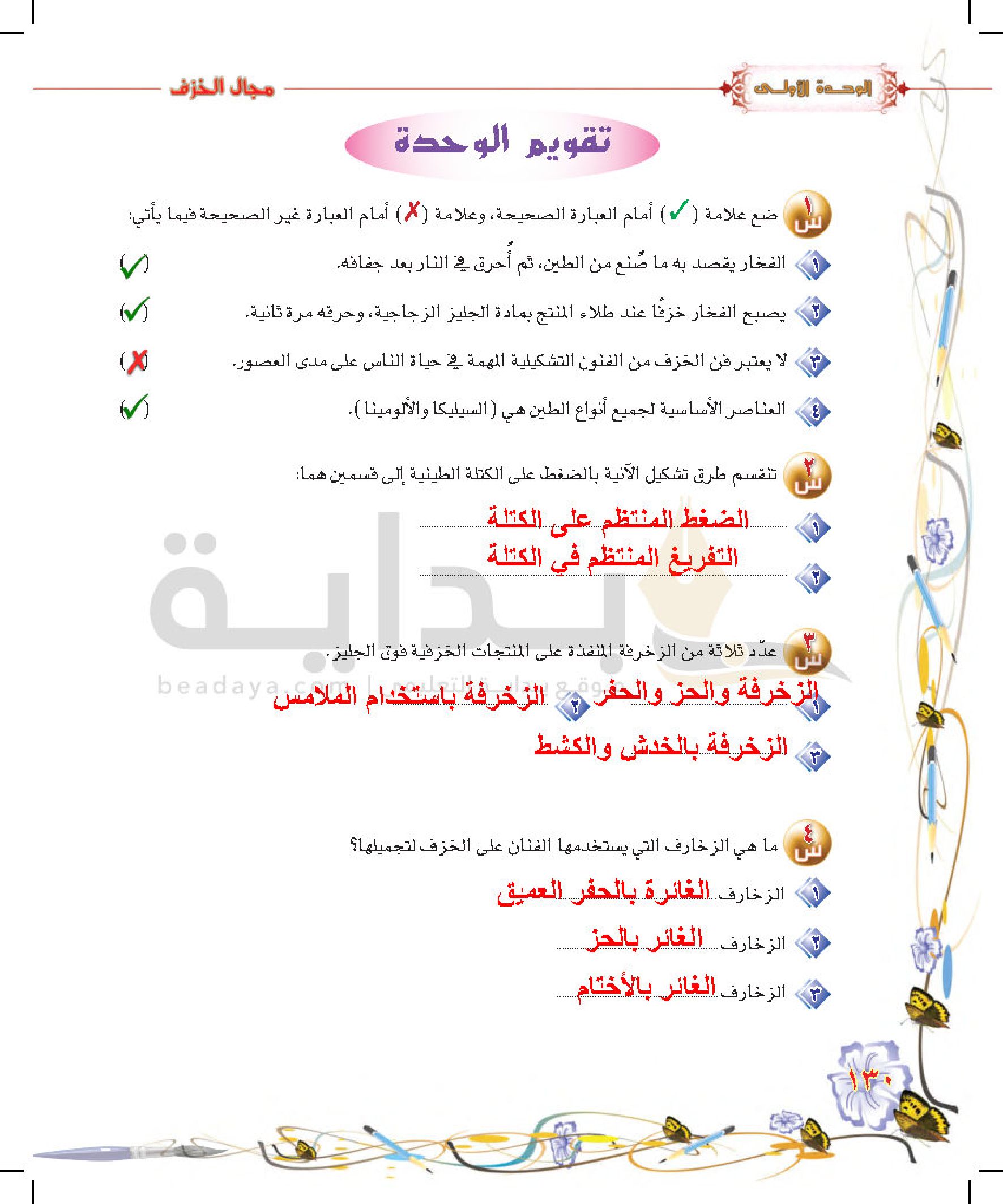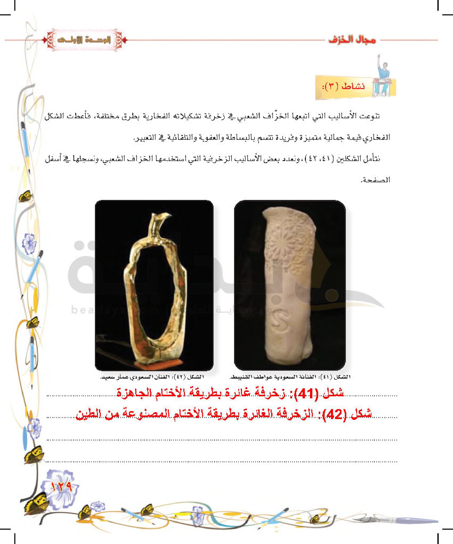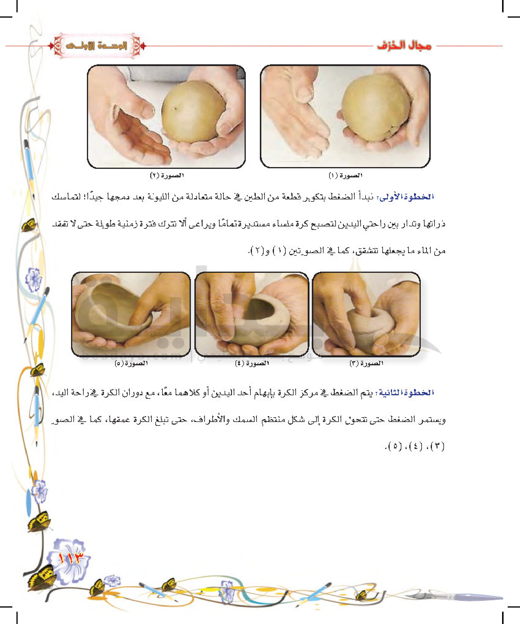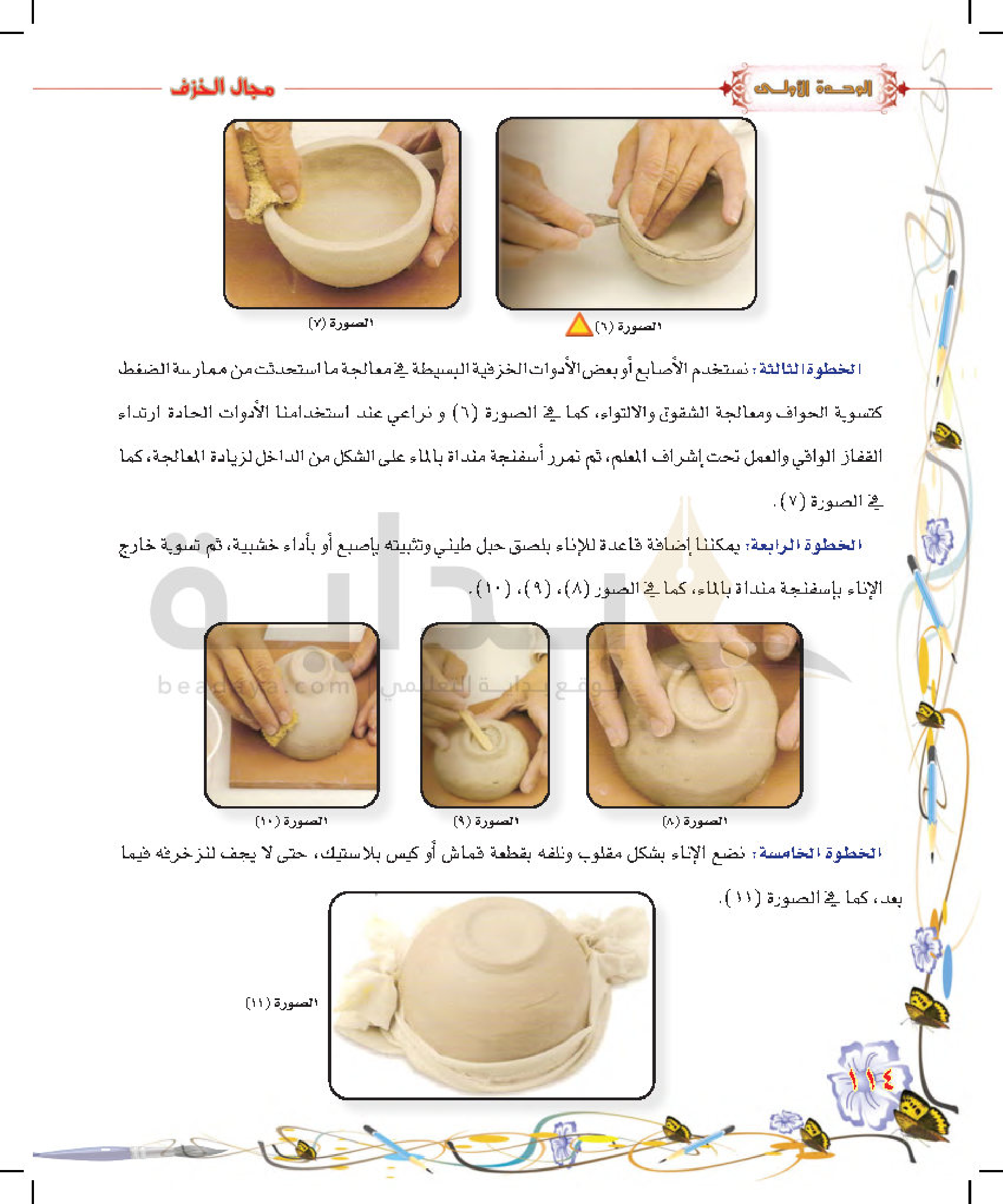 تكوينات زخرفية غائرة على سطح الطينة المتجلدة