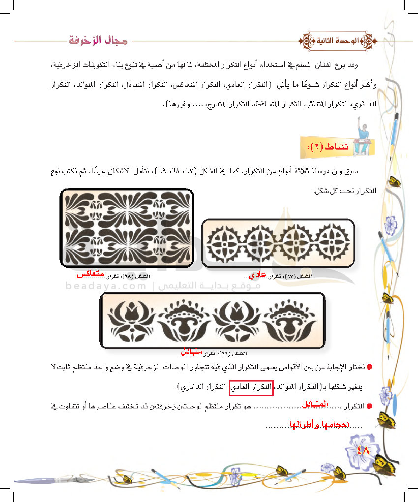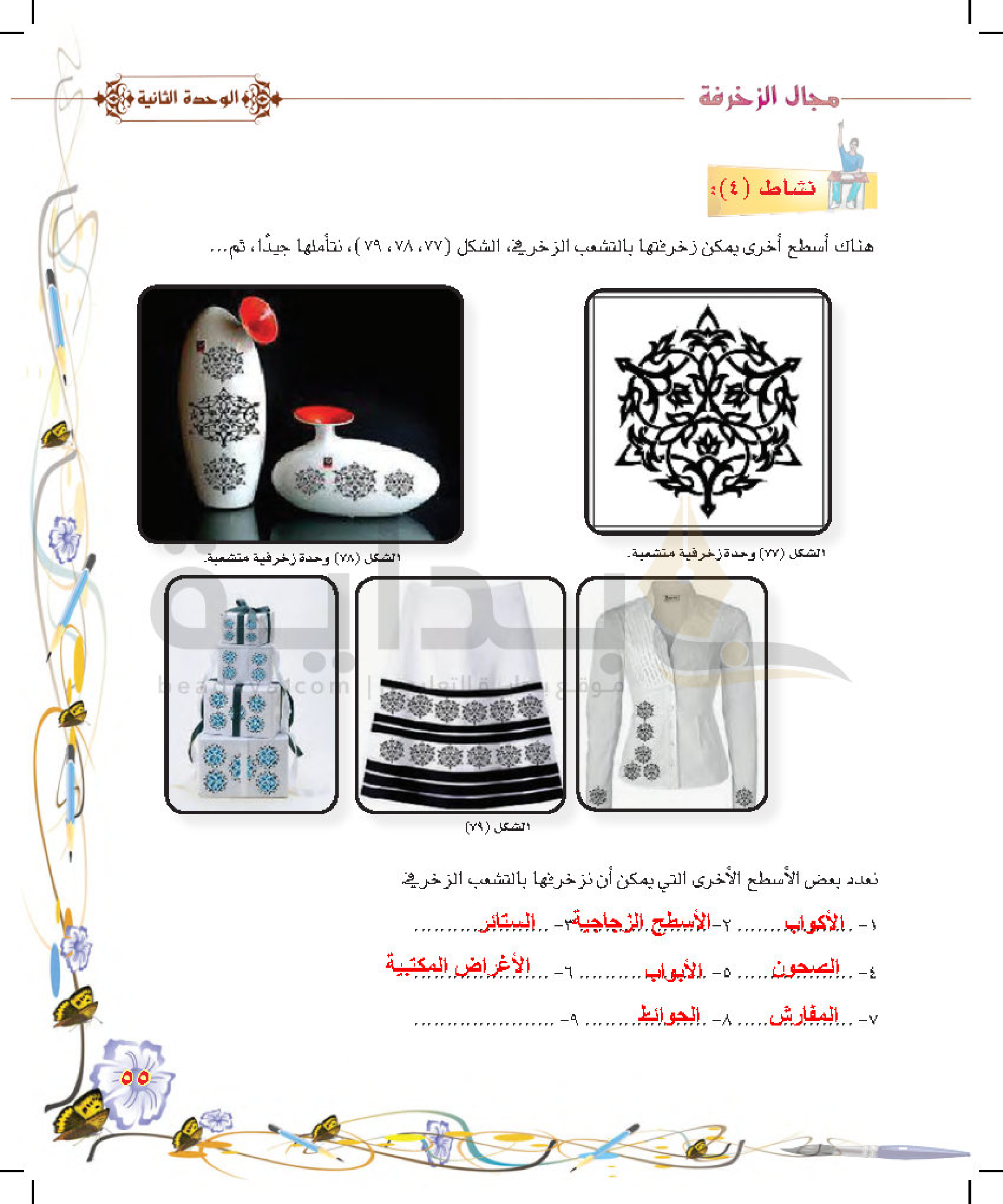 التشعب الزخرفي على أسطح متنوعة