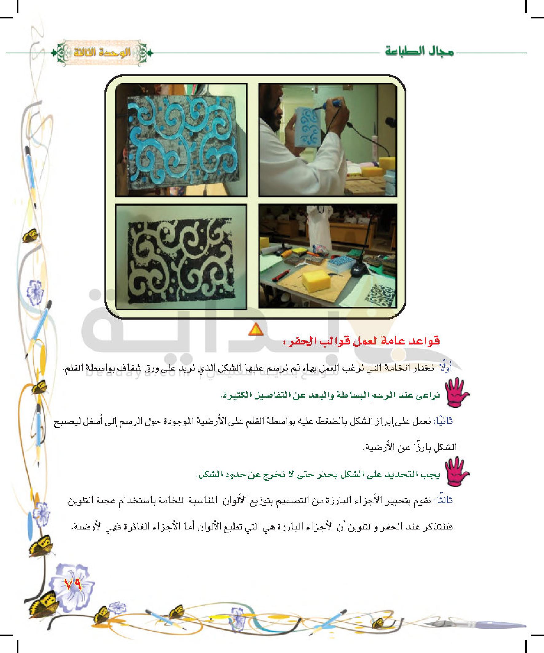 الحفر والطباعة بالقوالب (الإعداد والتنفيذ)