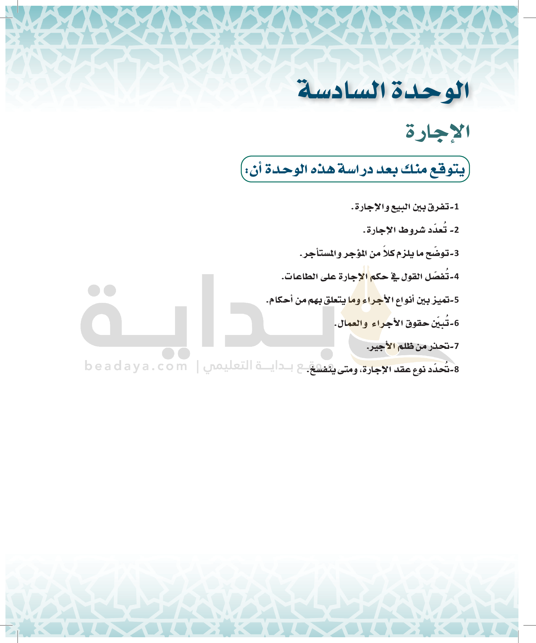 الوحدة 6 - الإجارة