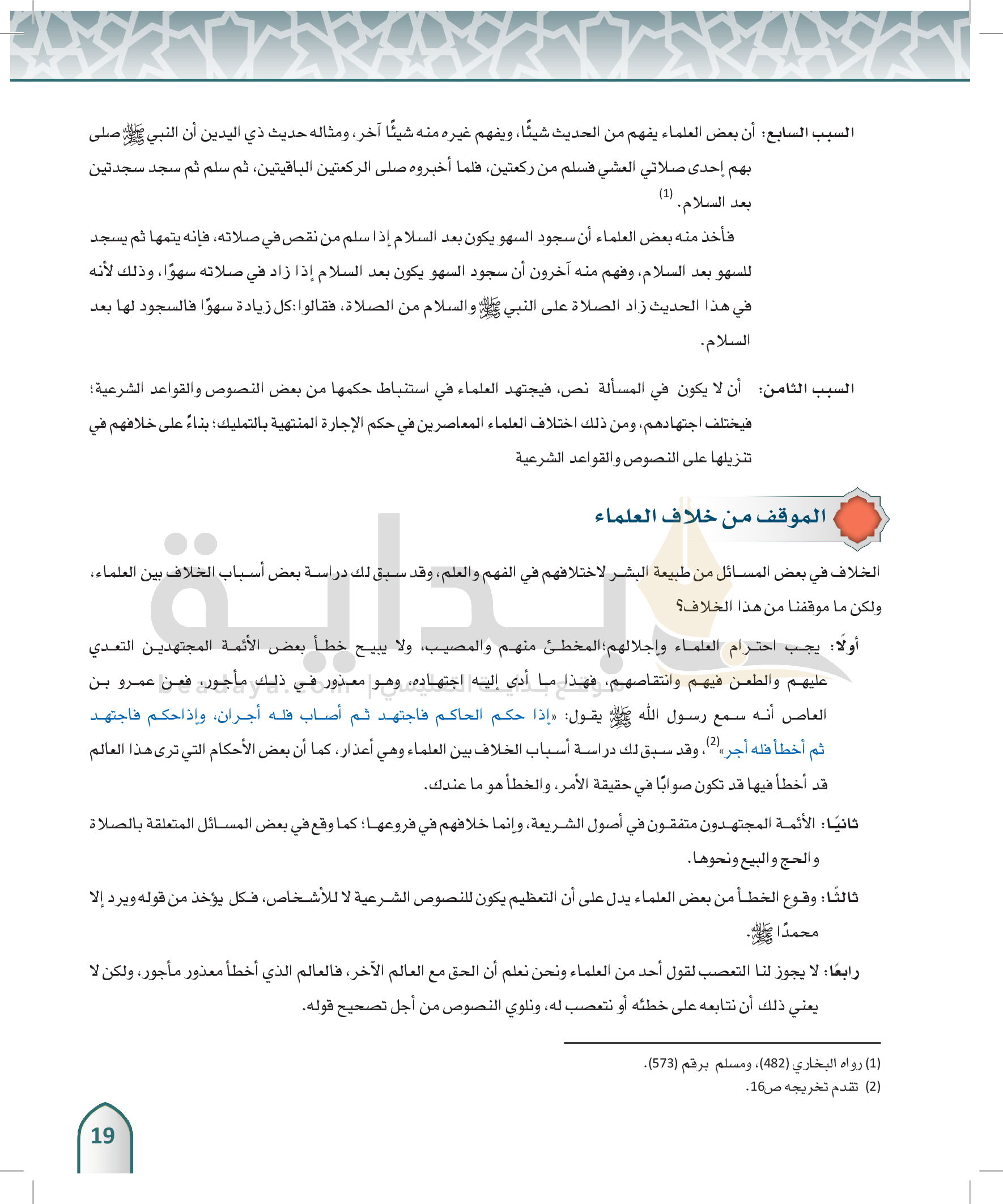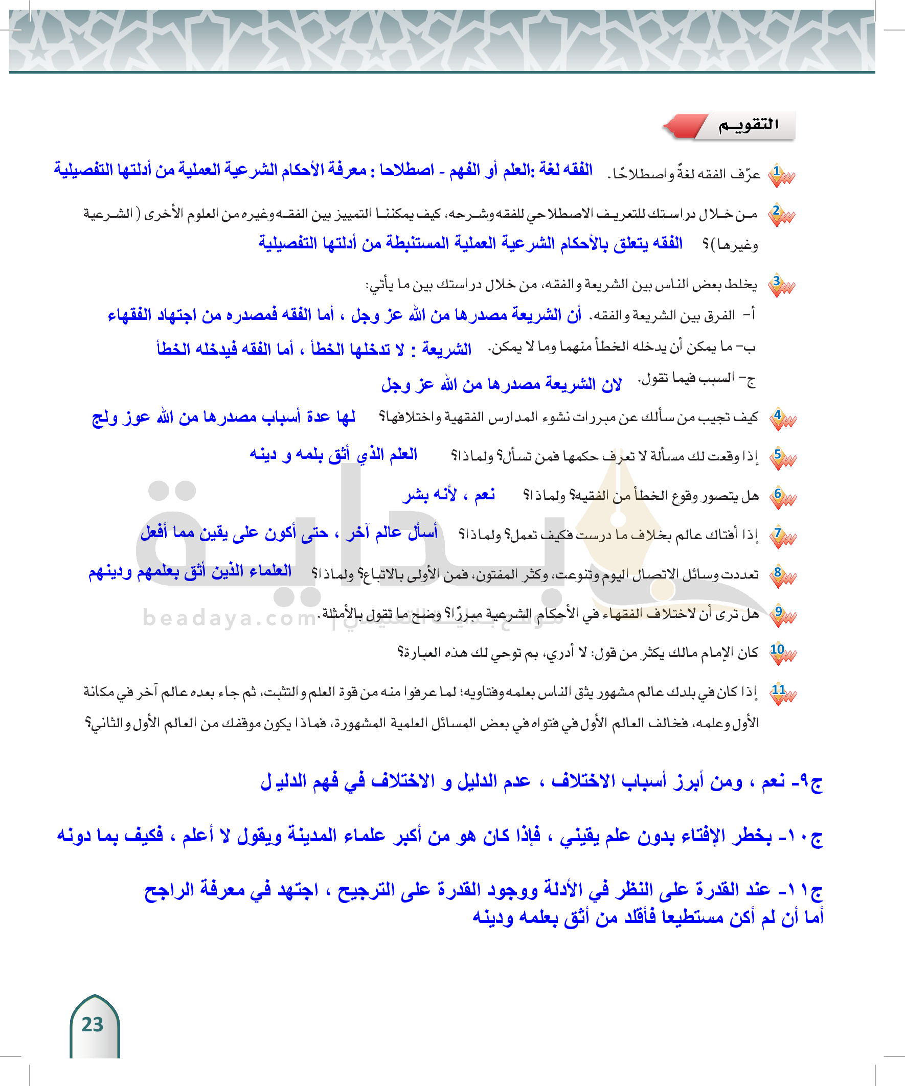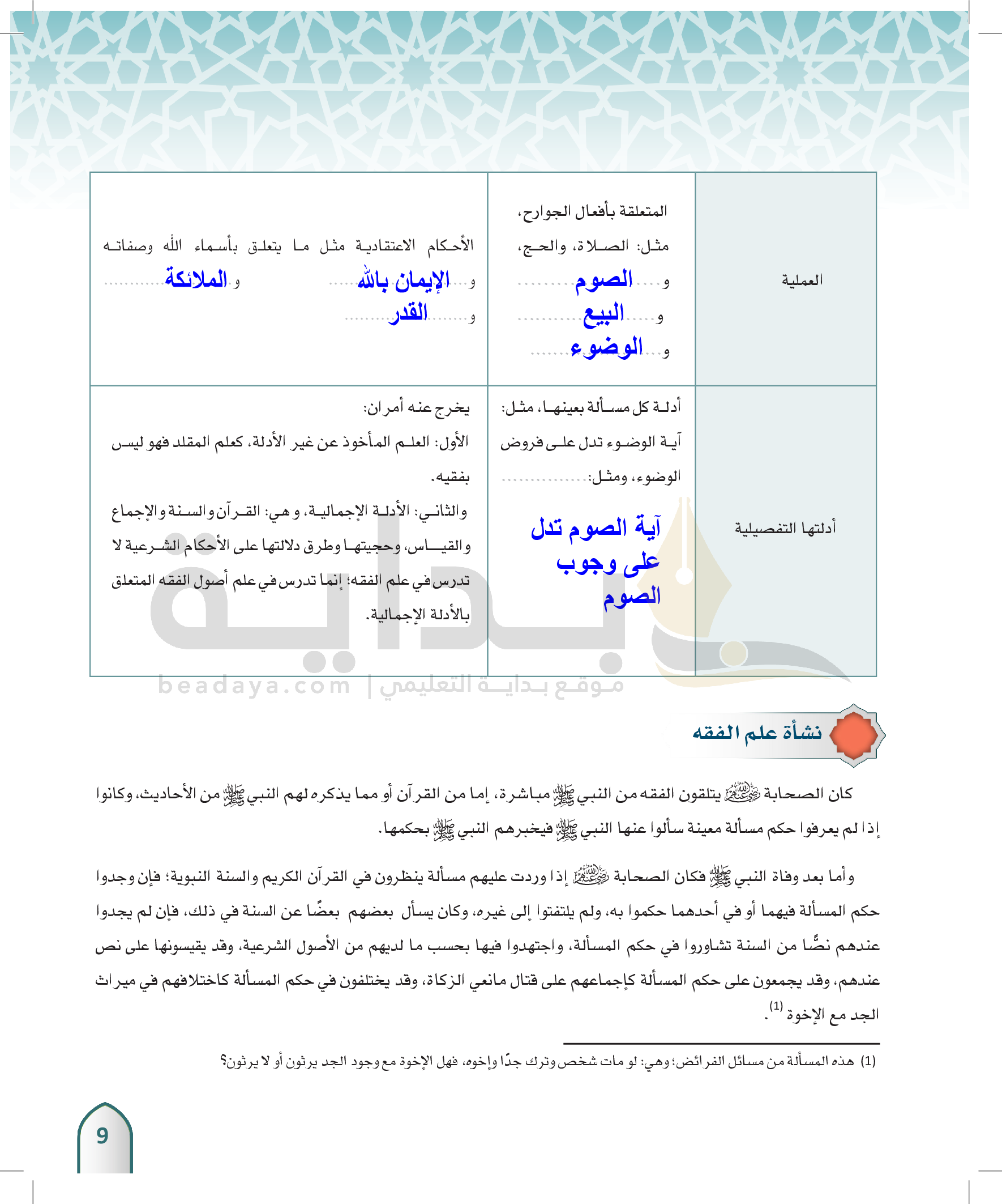 الوحدة 1 - مقدمة في الفقه