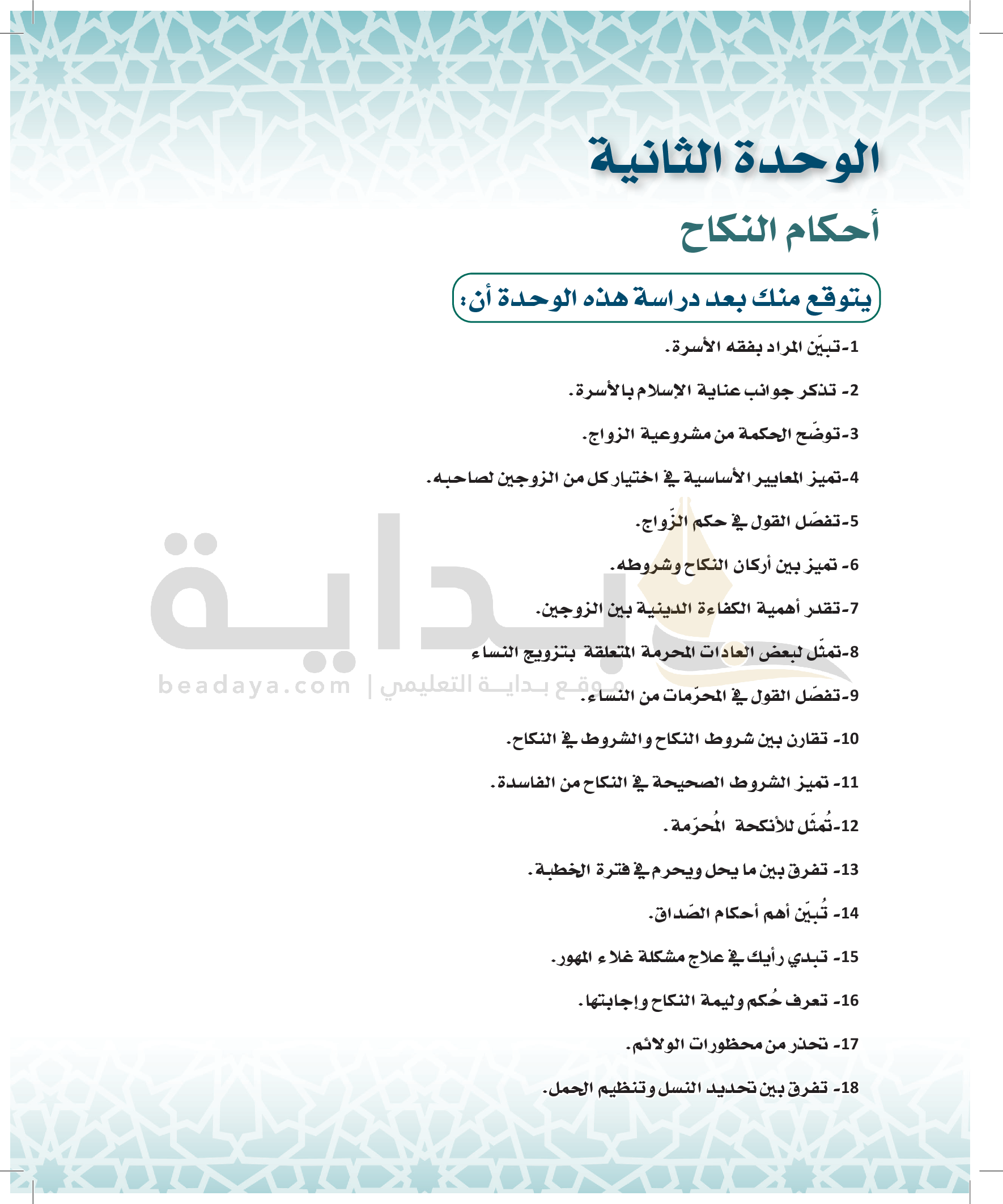 الوحدة 2 - أحكام النكاح