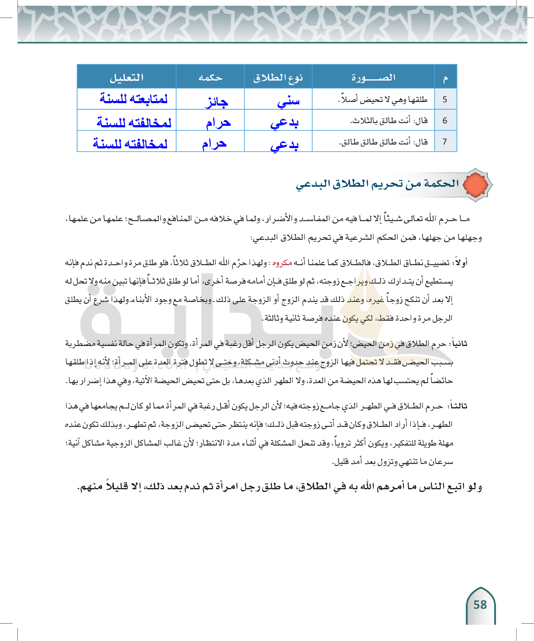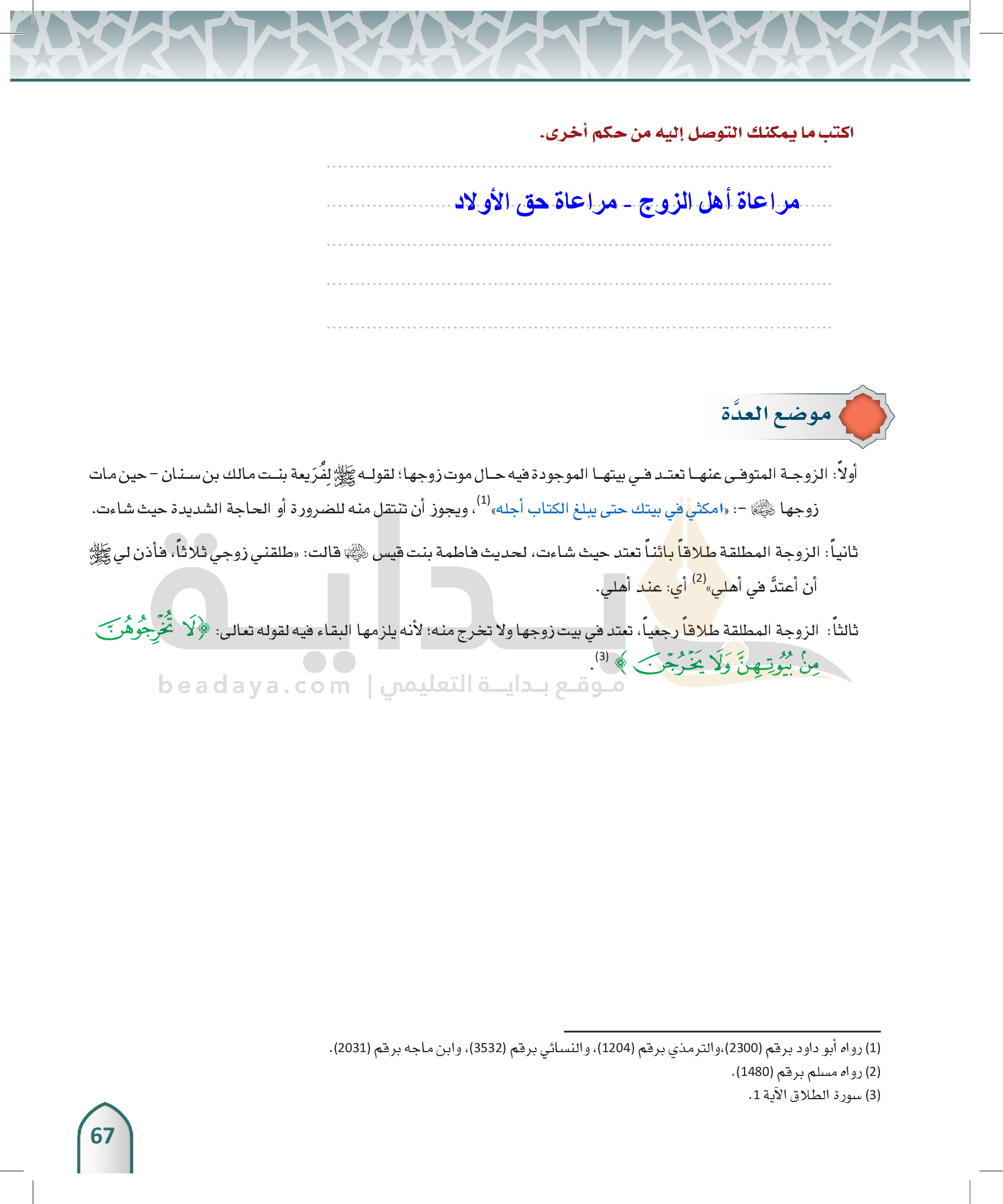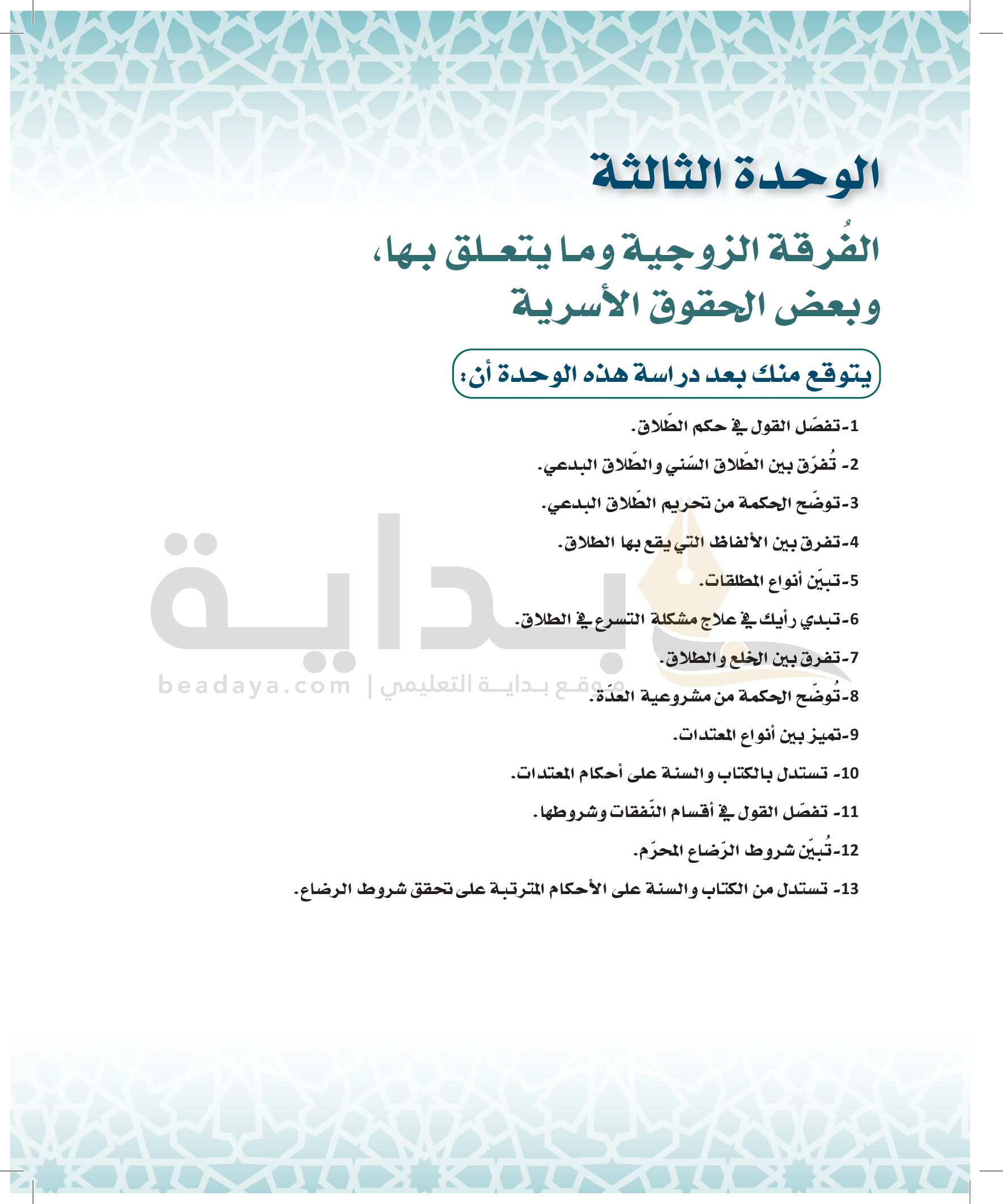 الوحدة 3 - الفُرقة الزوجية وما يتعلق بها، وبعض الحقوق الأسرية