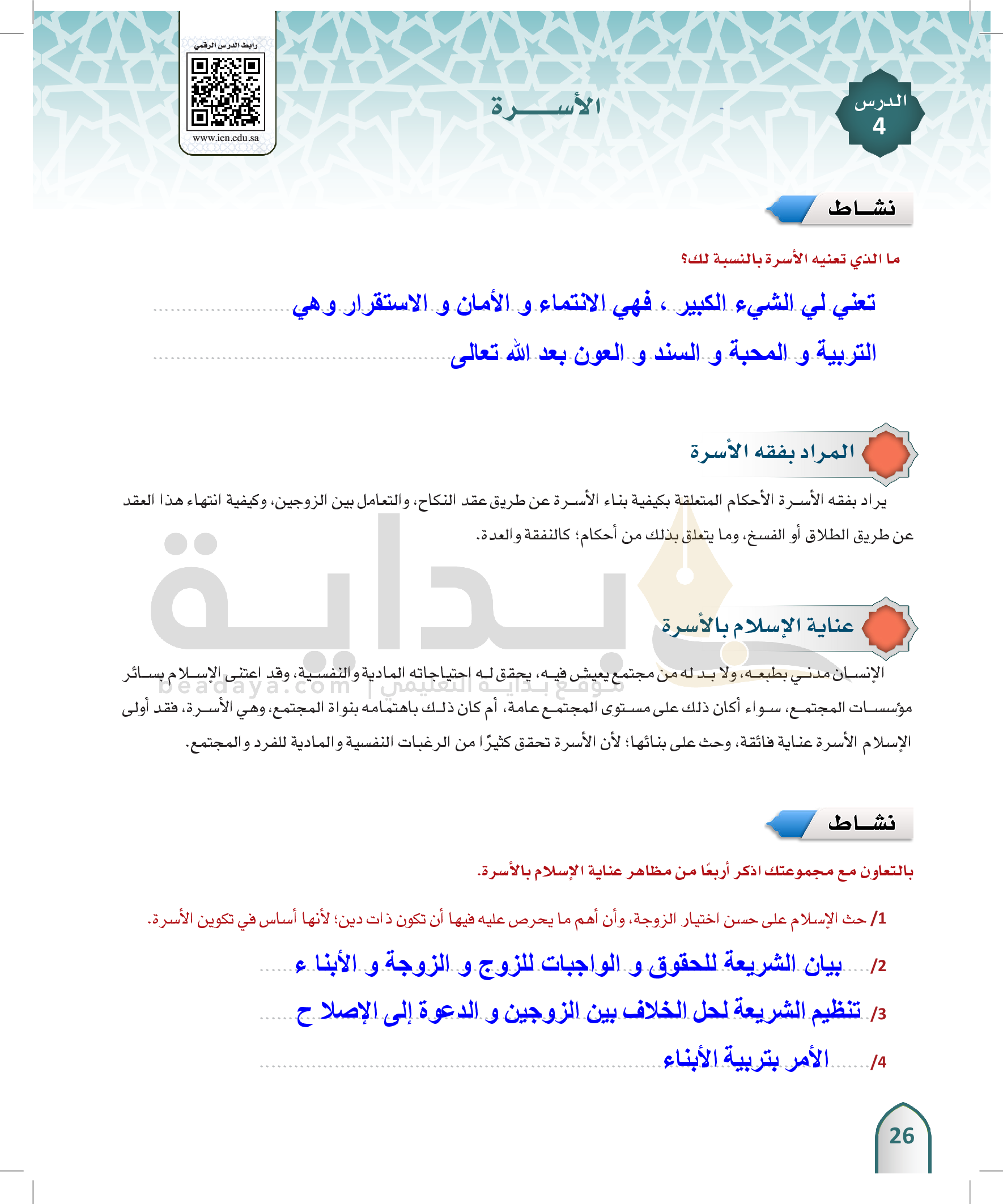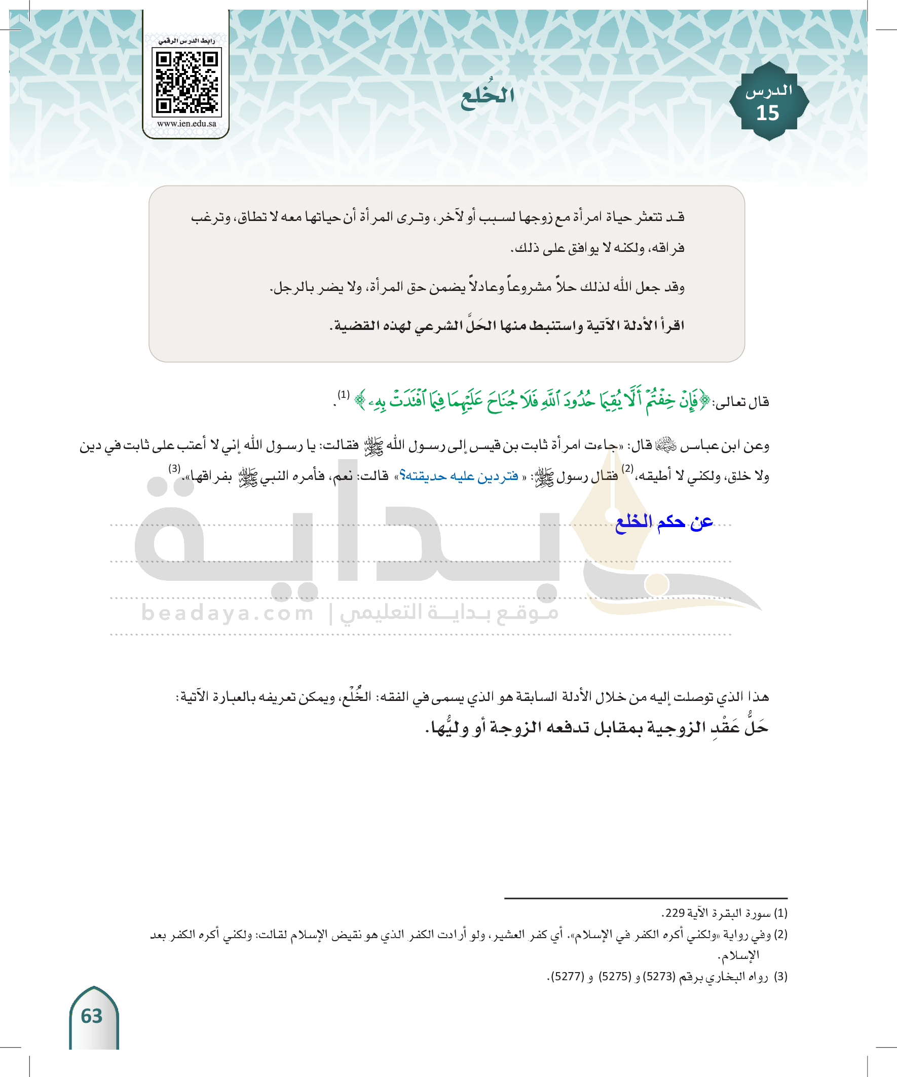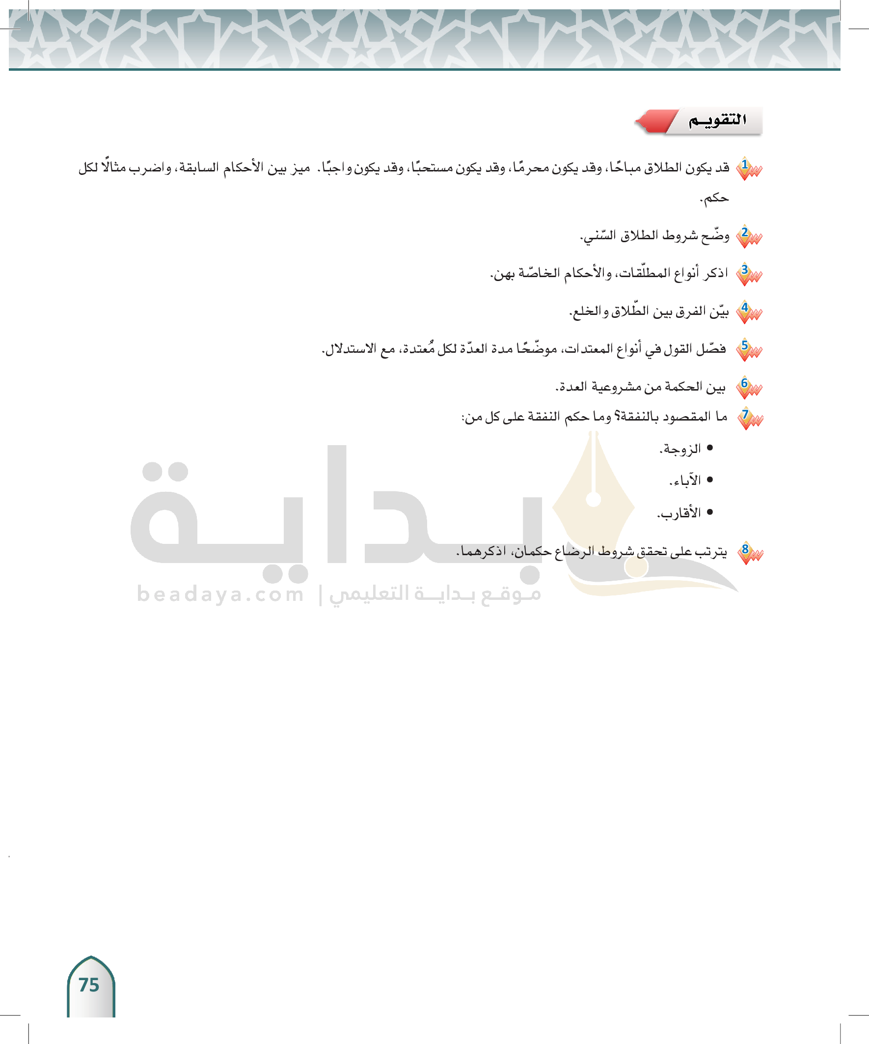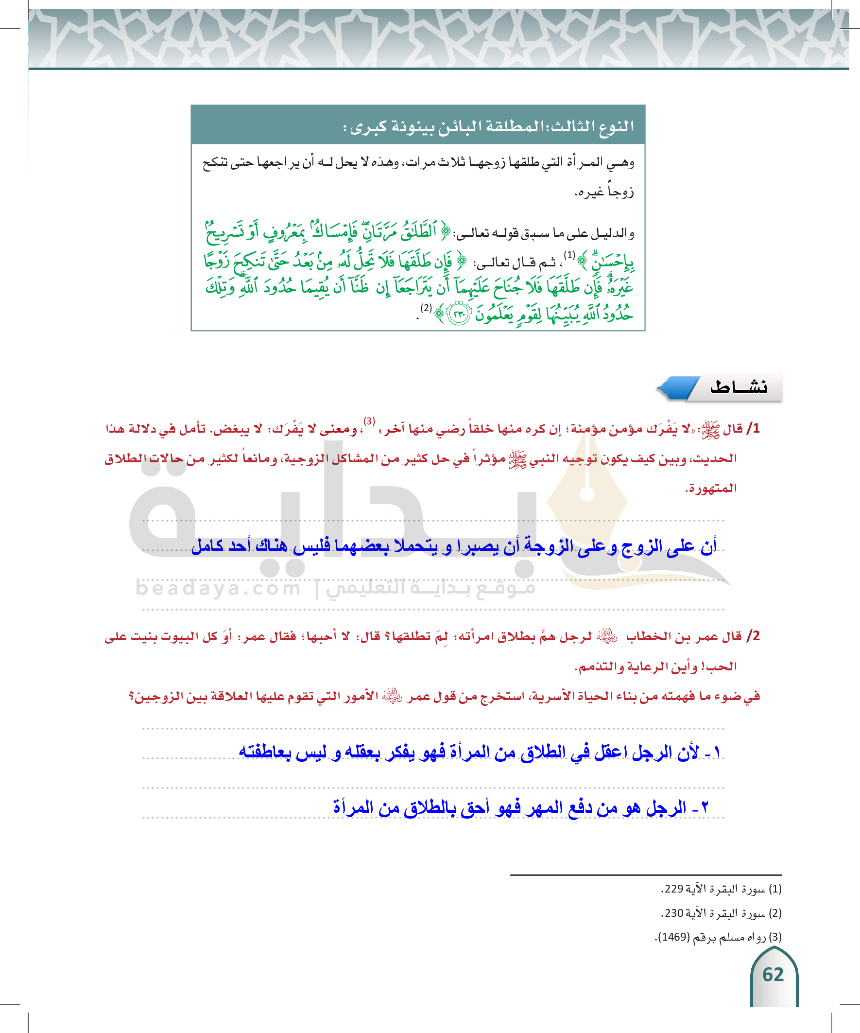 الوحدة 3 - الفُرقة الزوجية وما يتعلق بها، وبعض الحقوق الأسرية