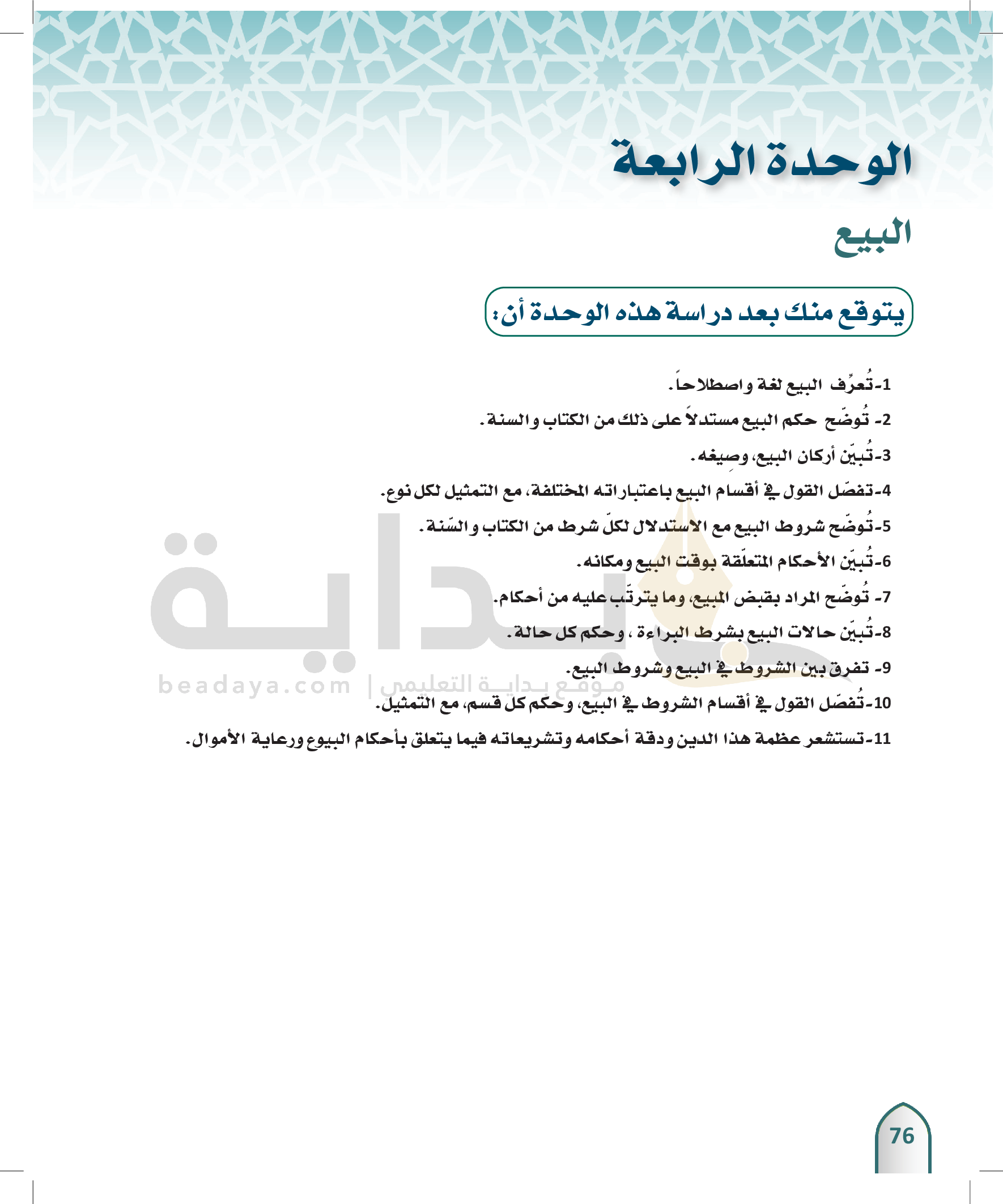 الوحدة 4- البيع