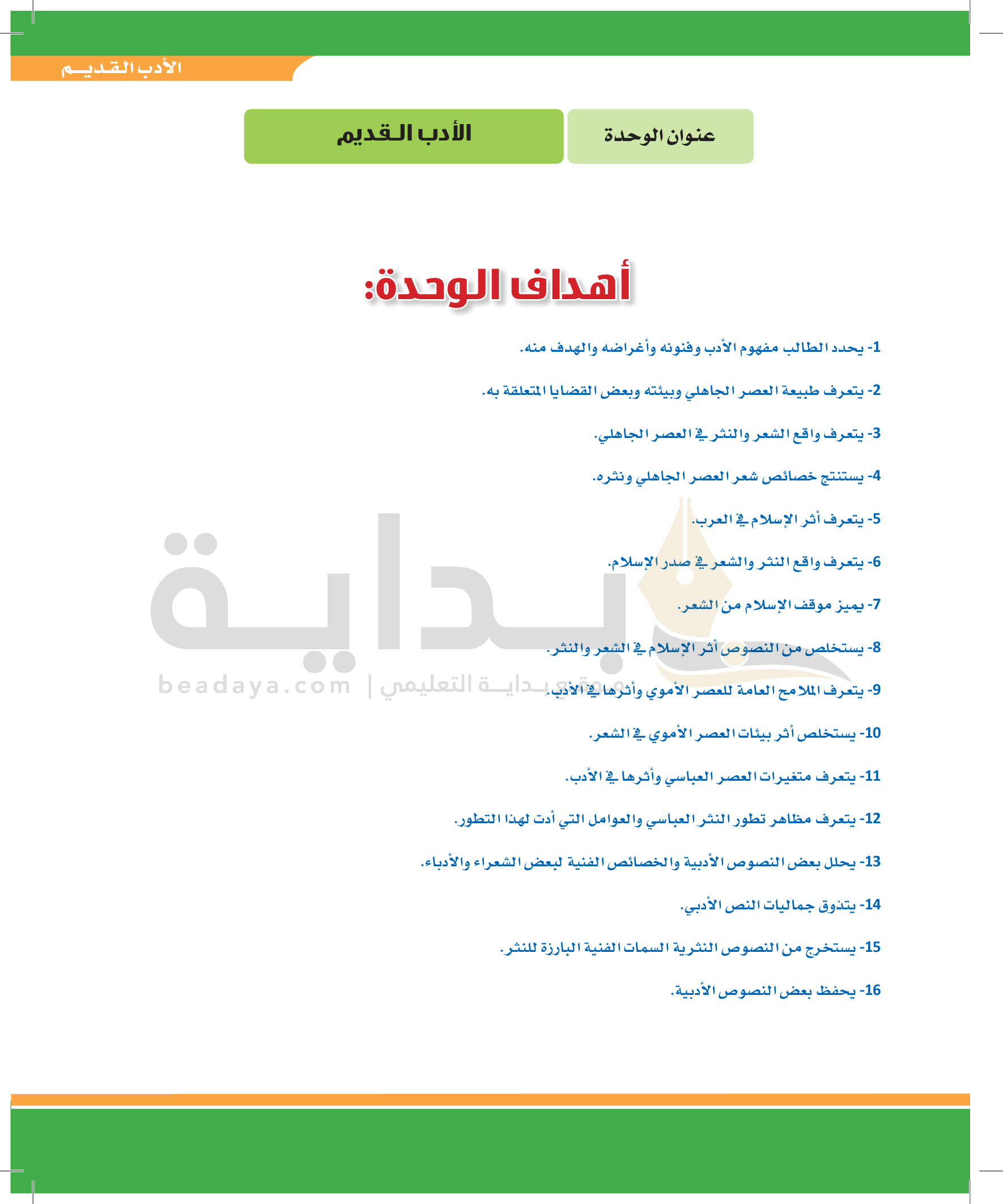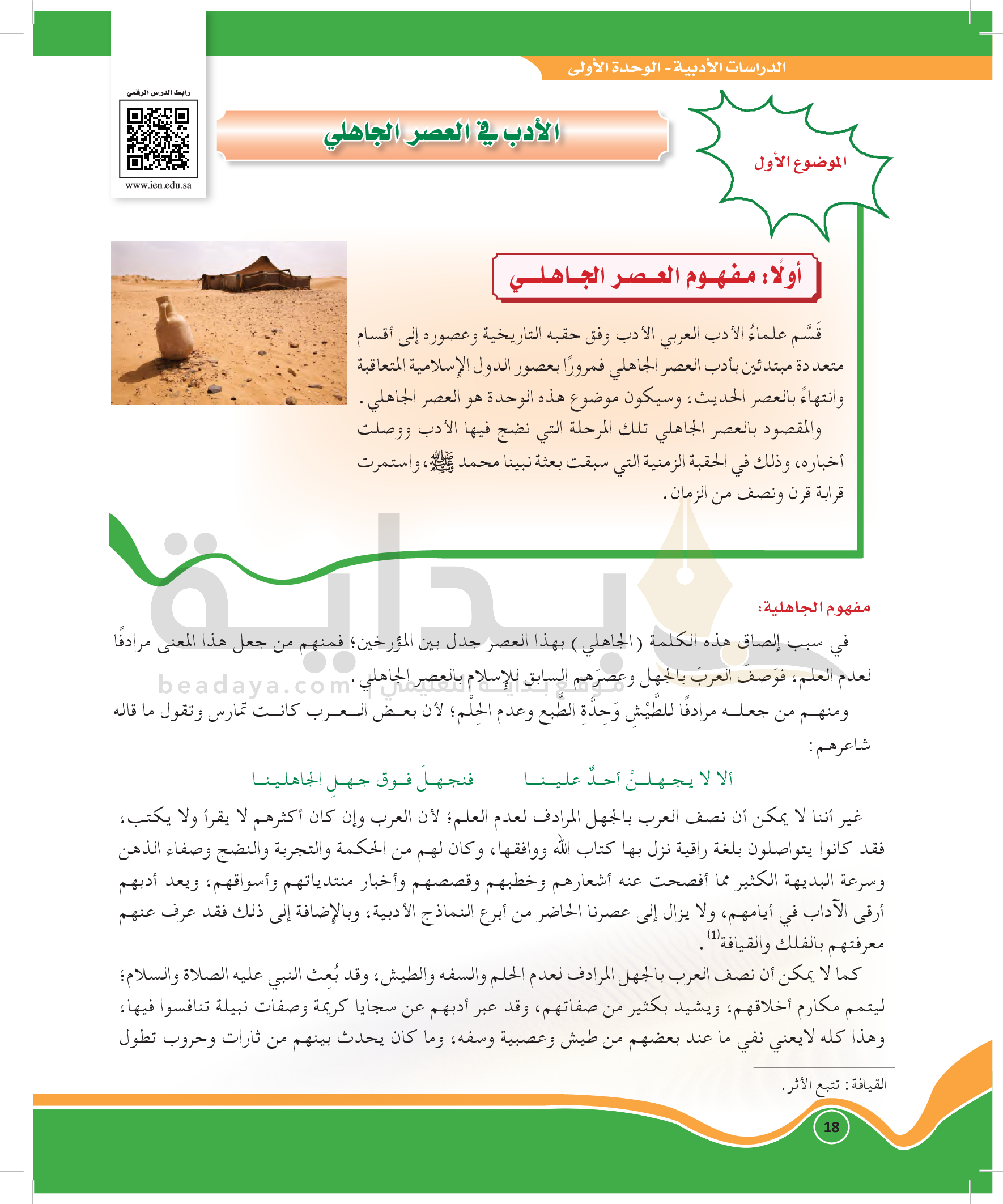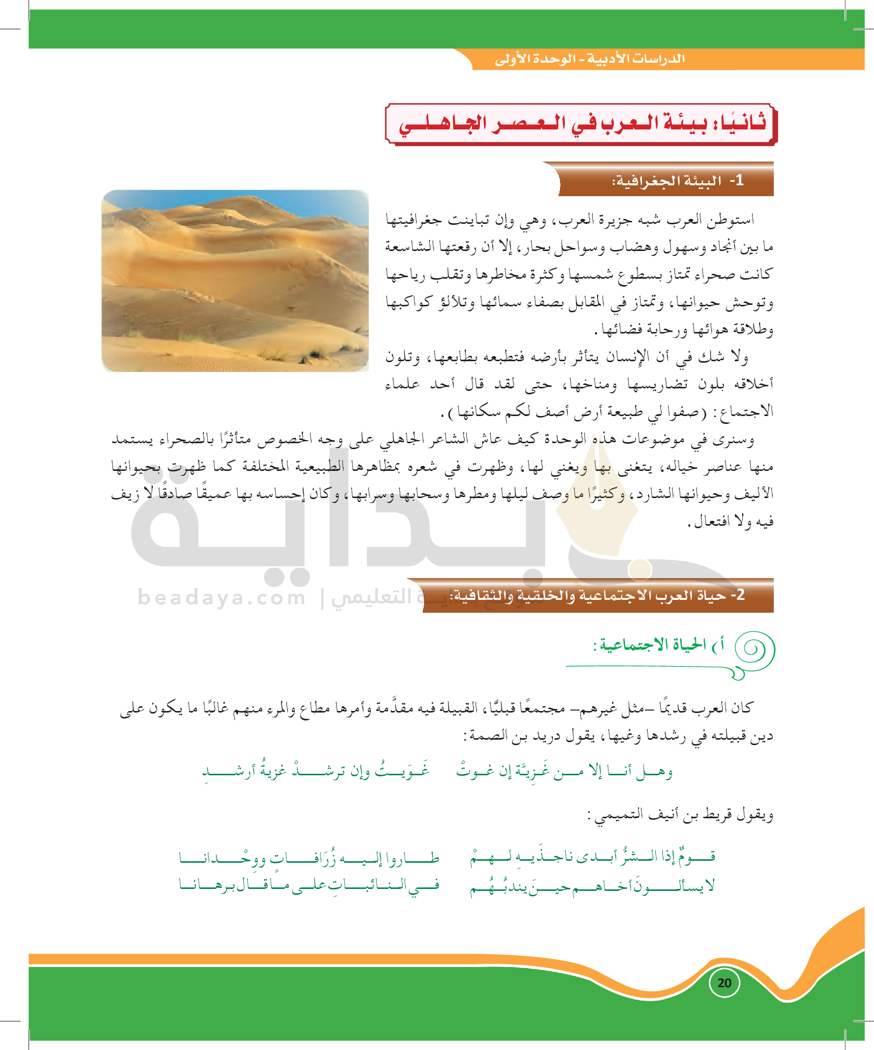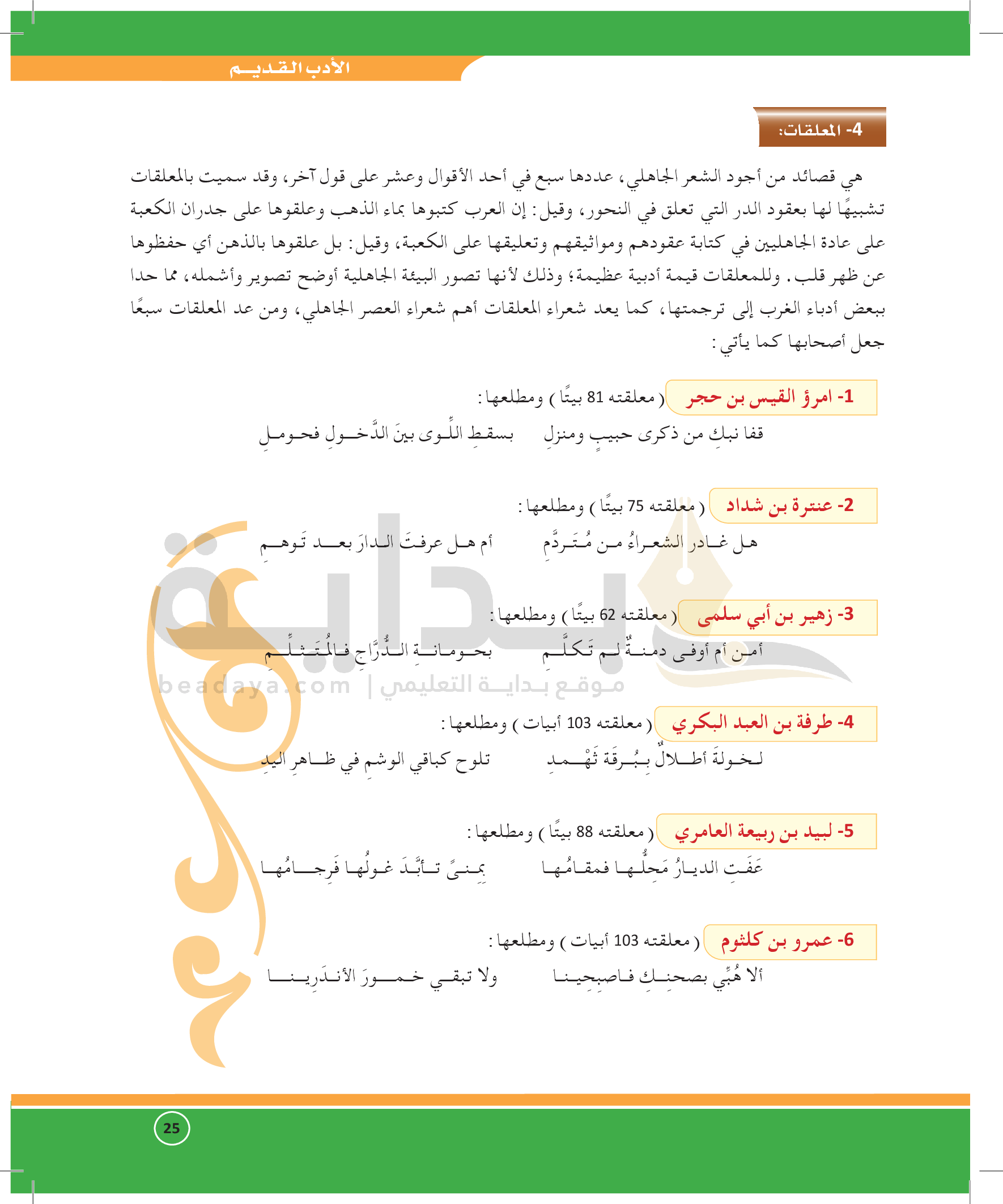 الموضوع الأول: الأدب في العصر الجاهلي: