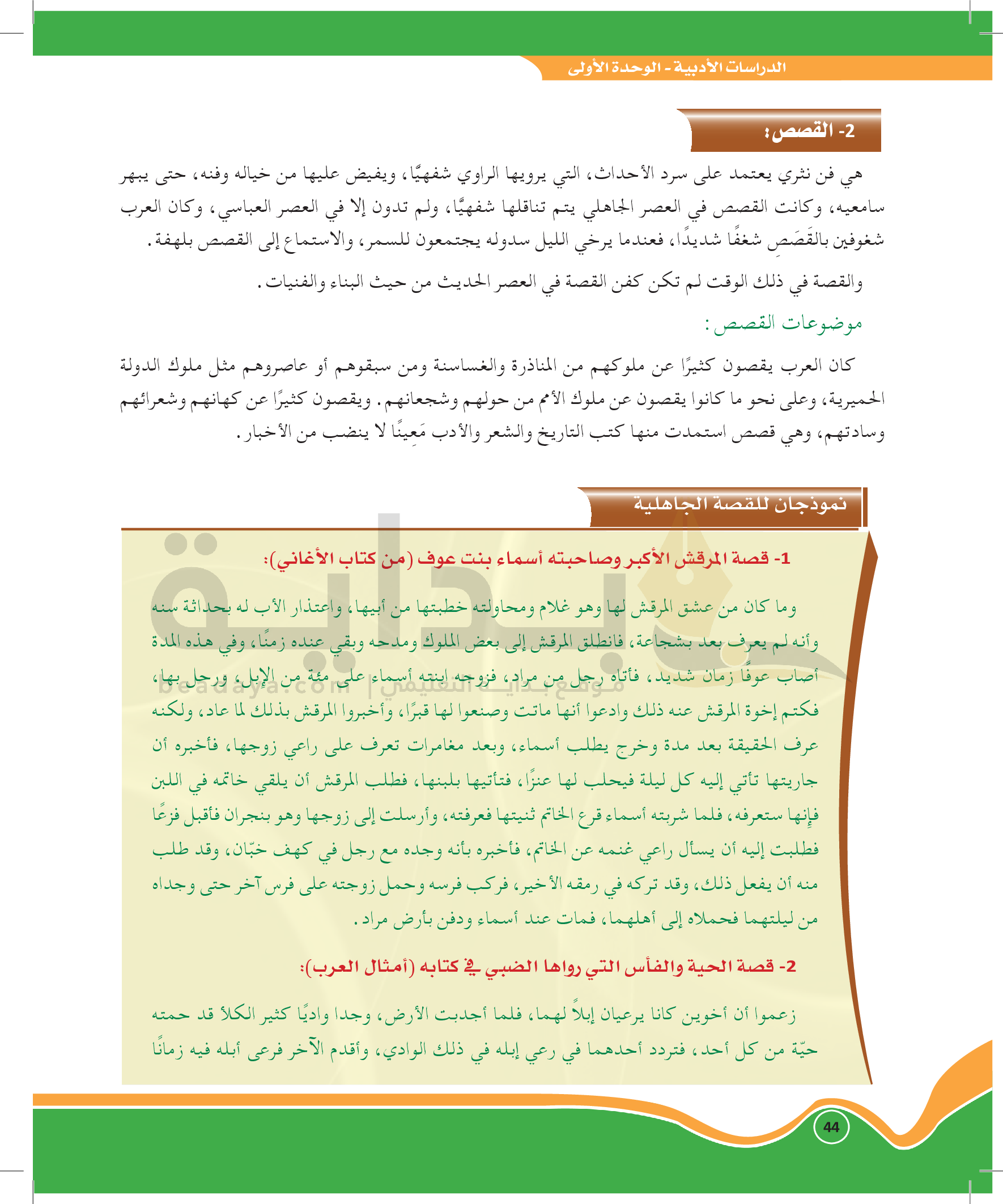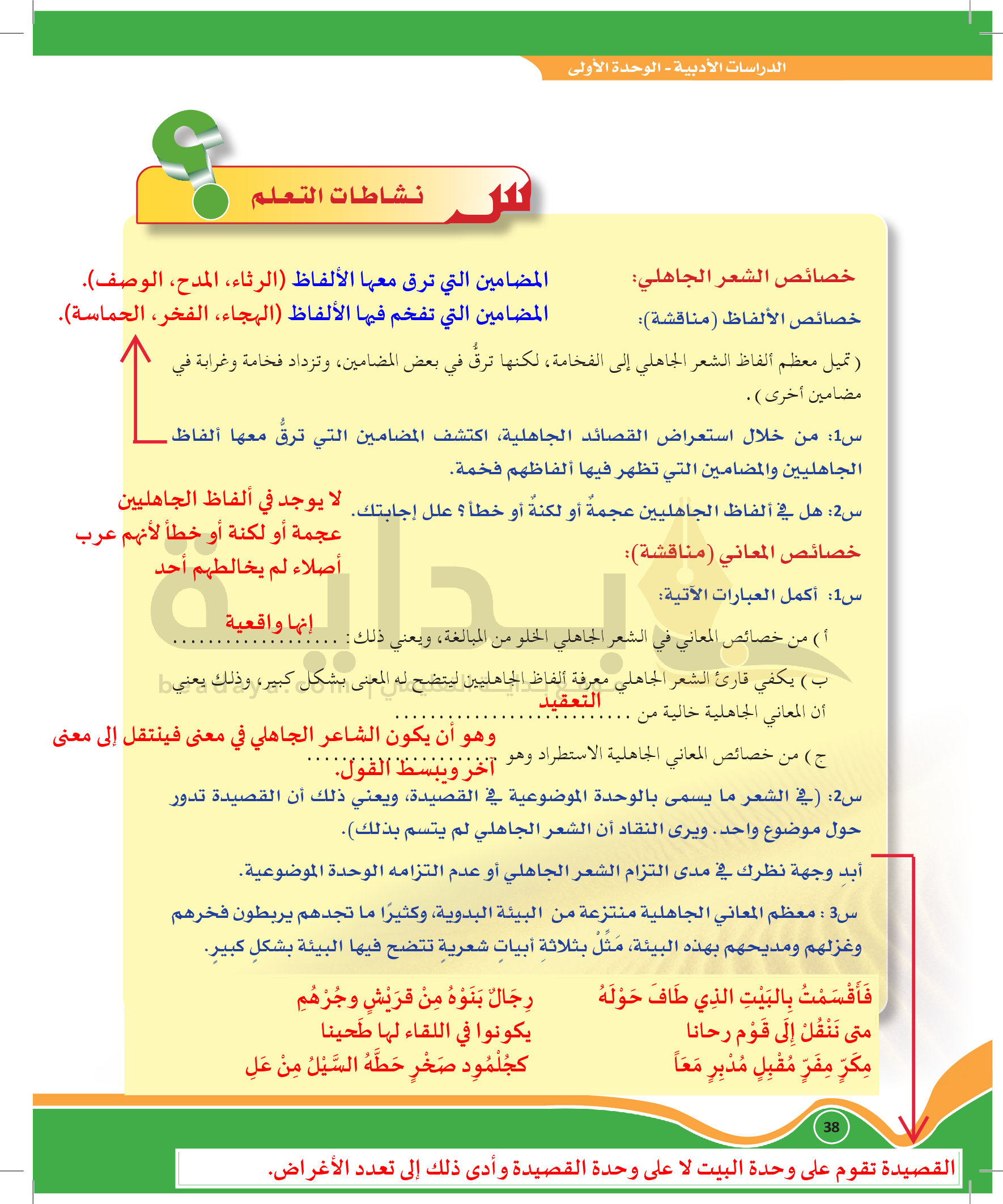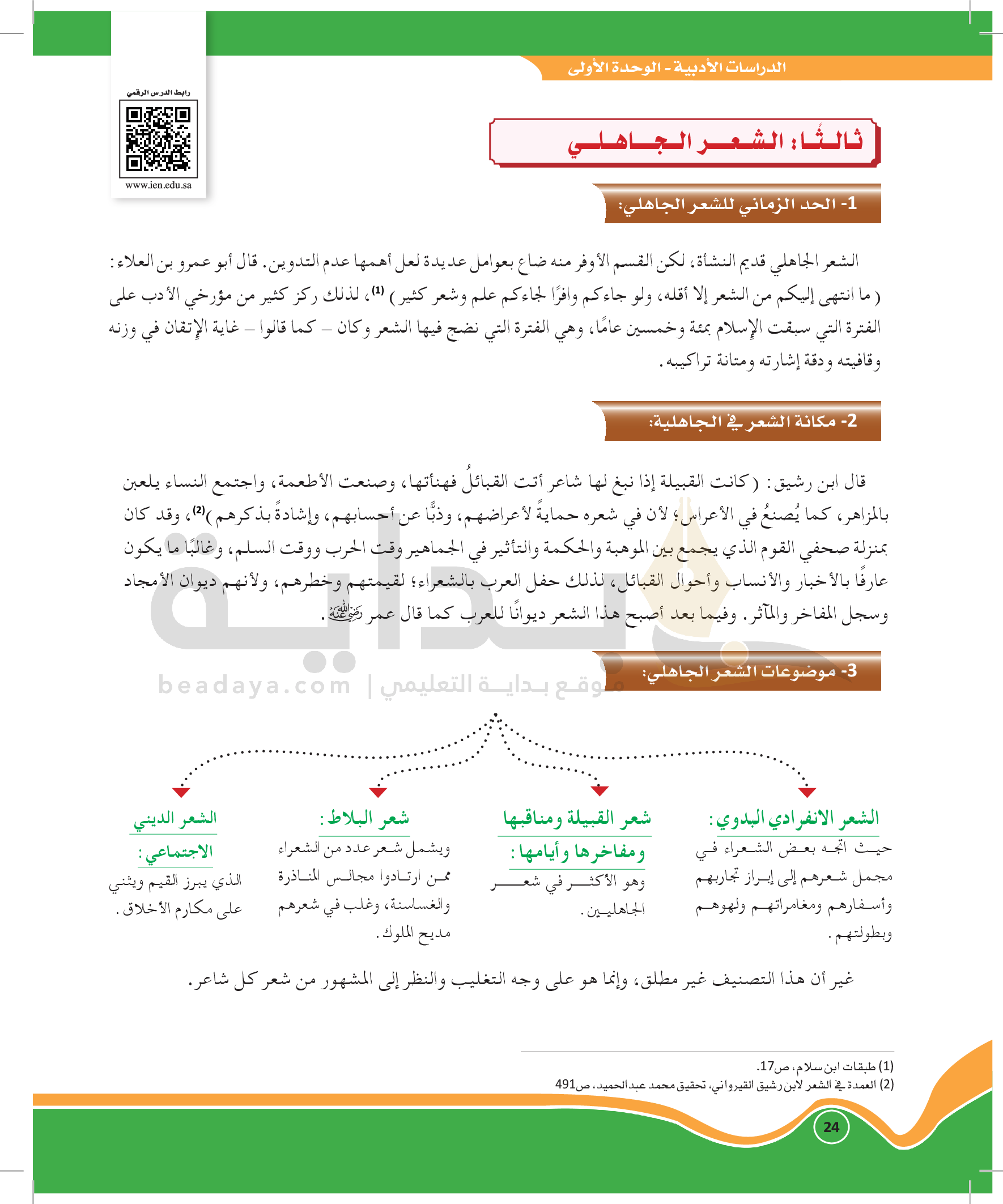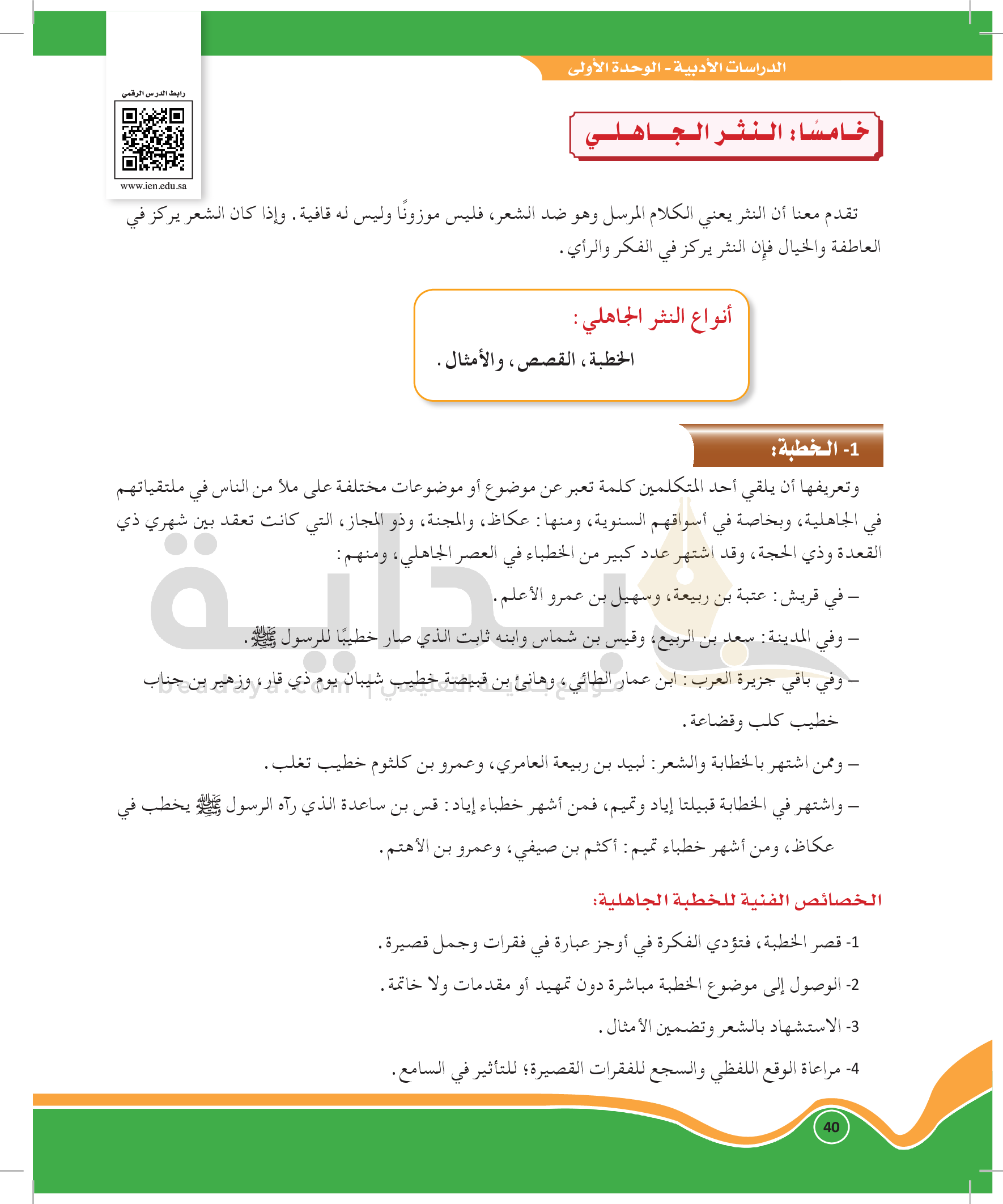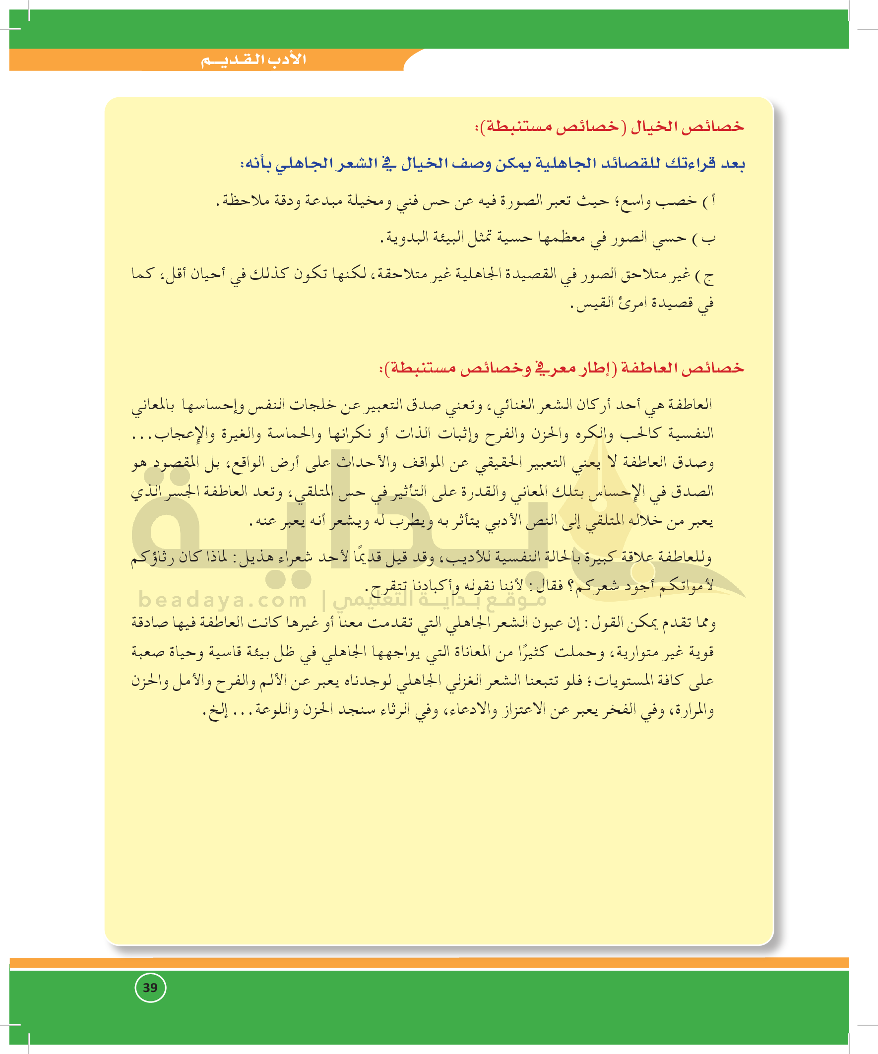 الموضوع الأول: الأدب في العصر الجاهلي: