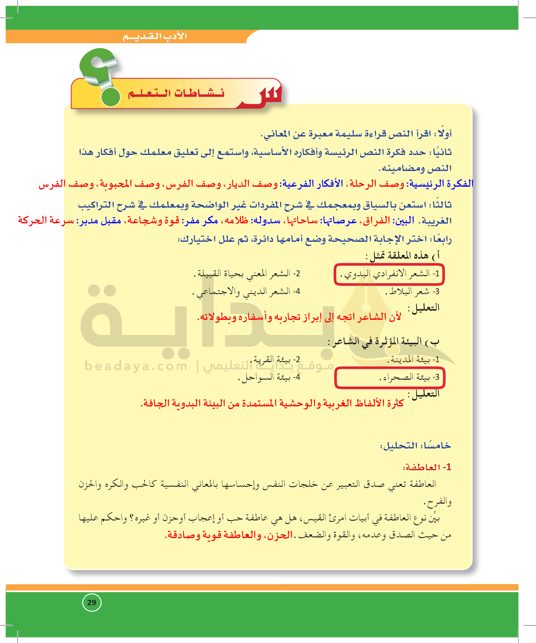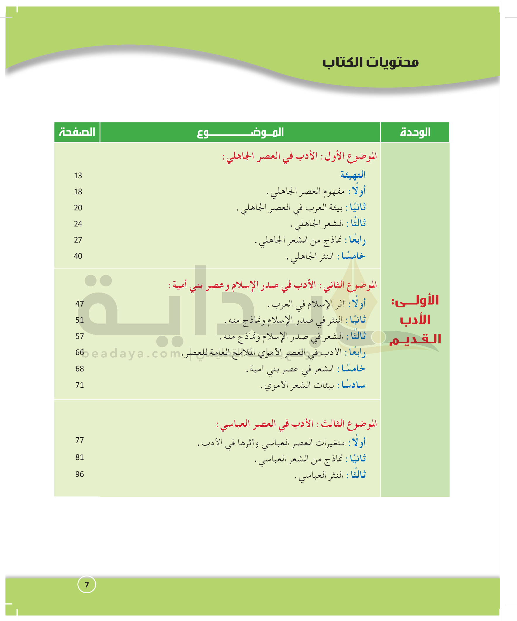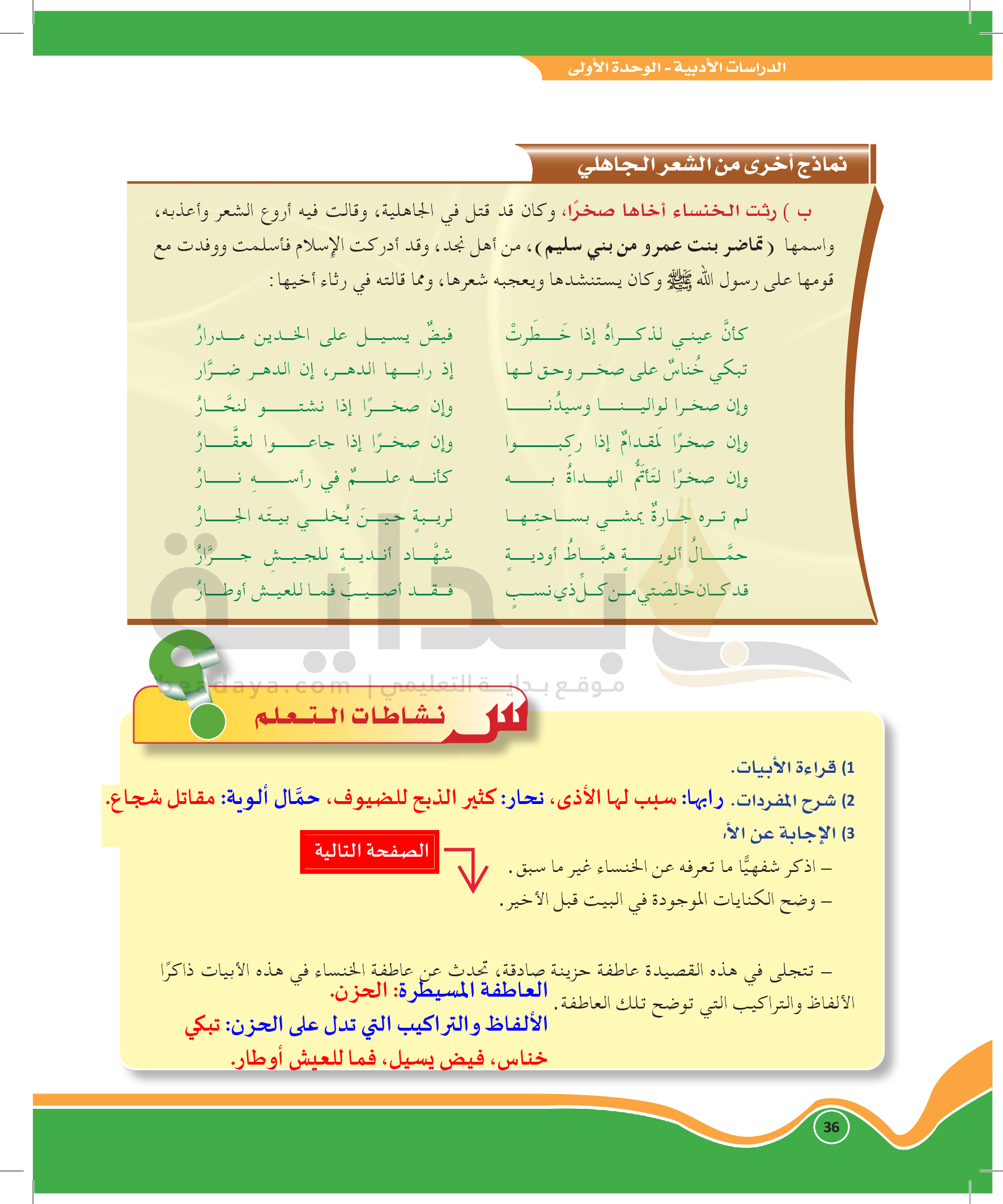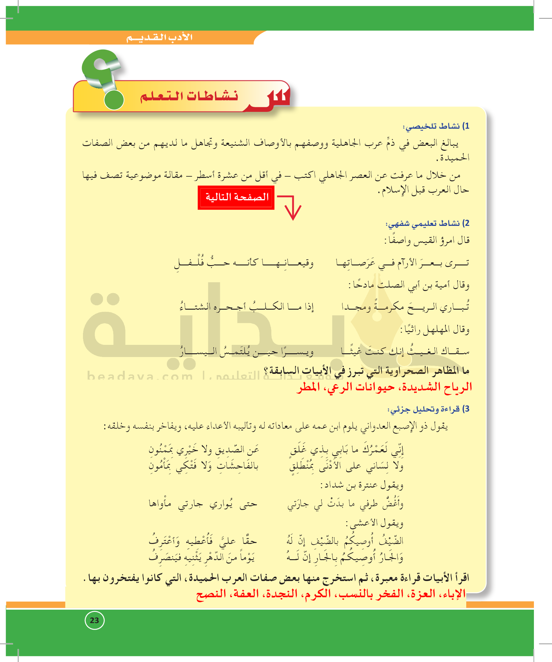الموضوع الأول: الأدب في العصر الجاهلي: