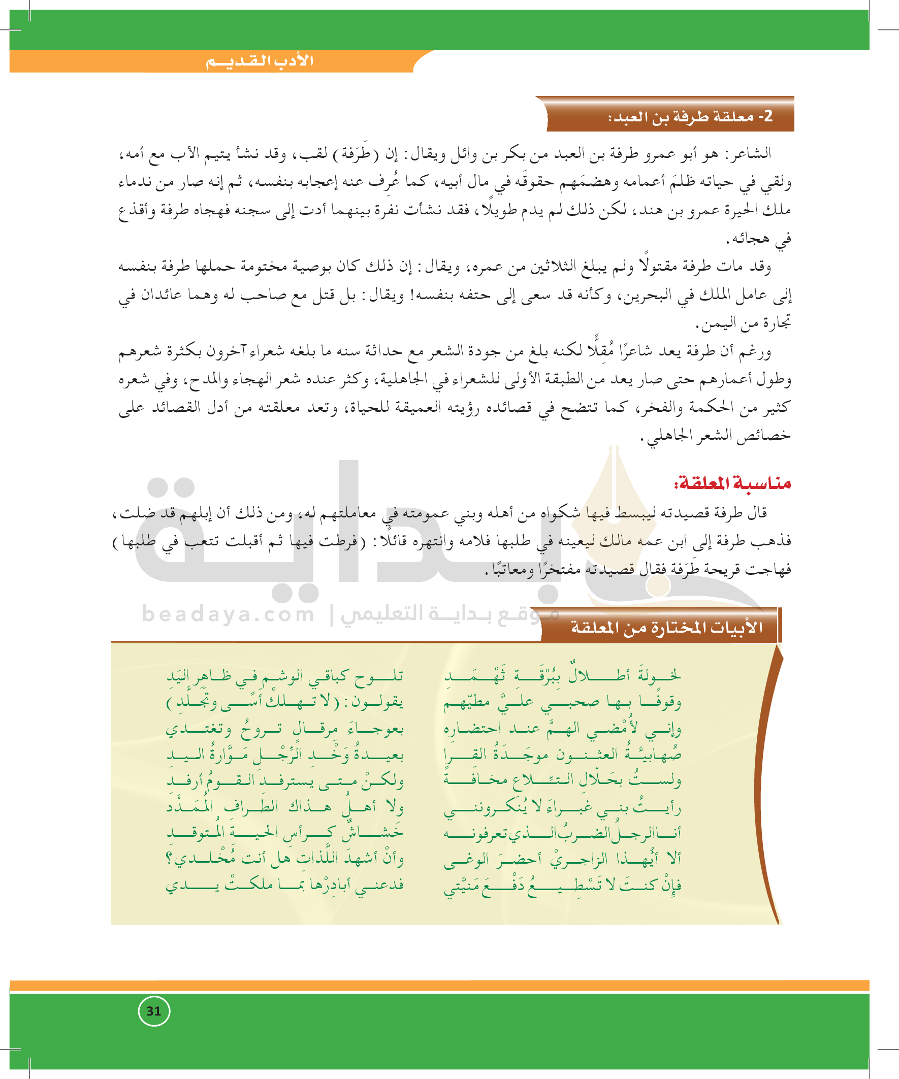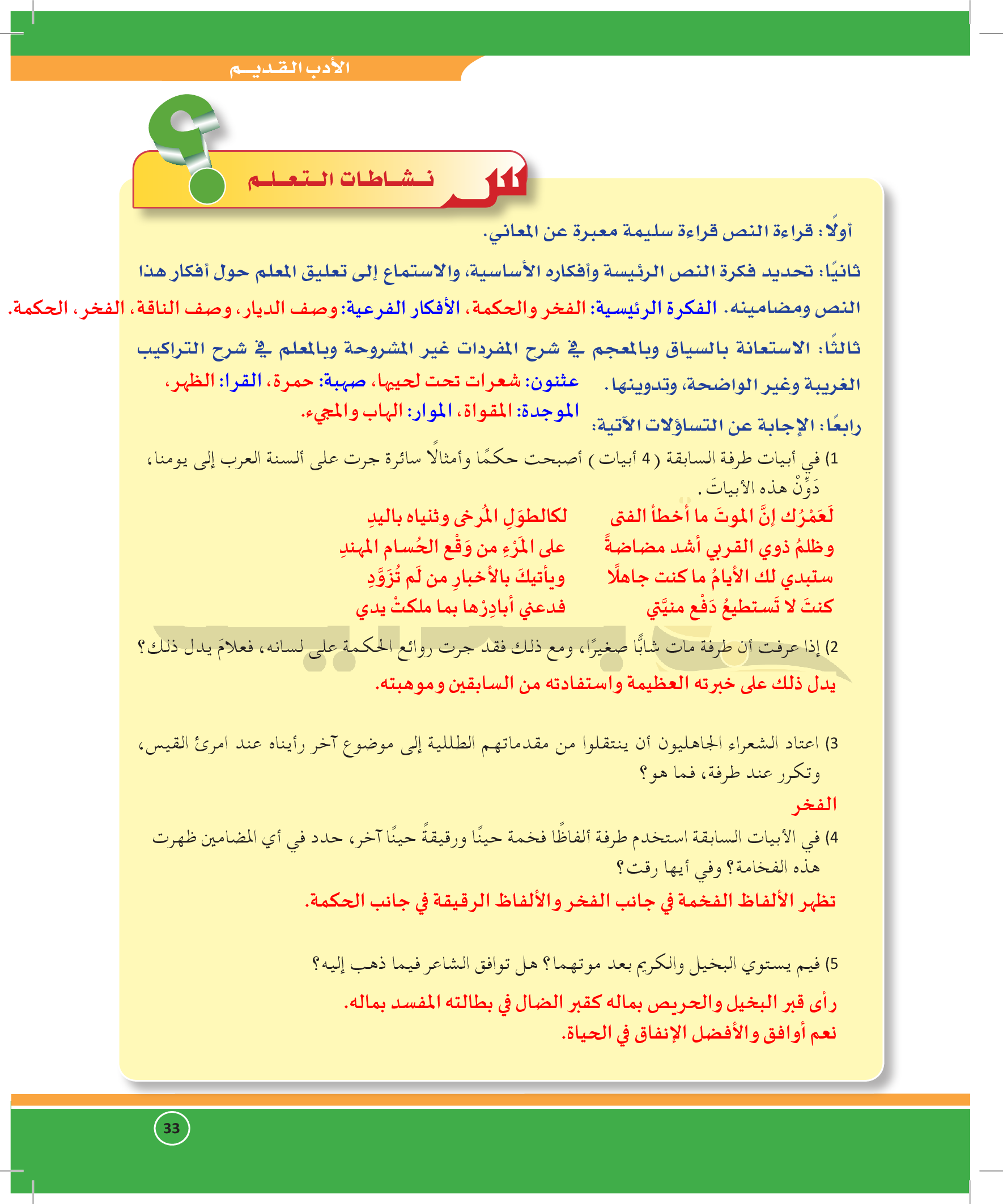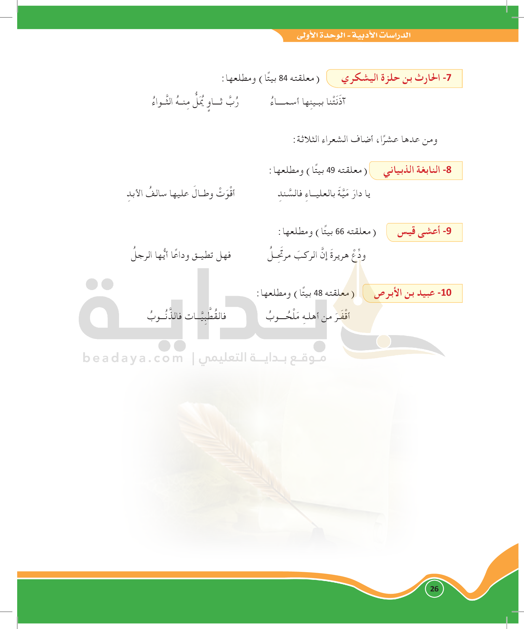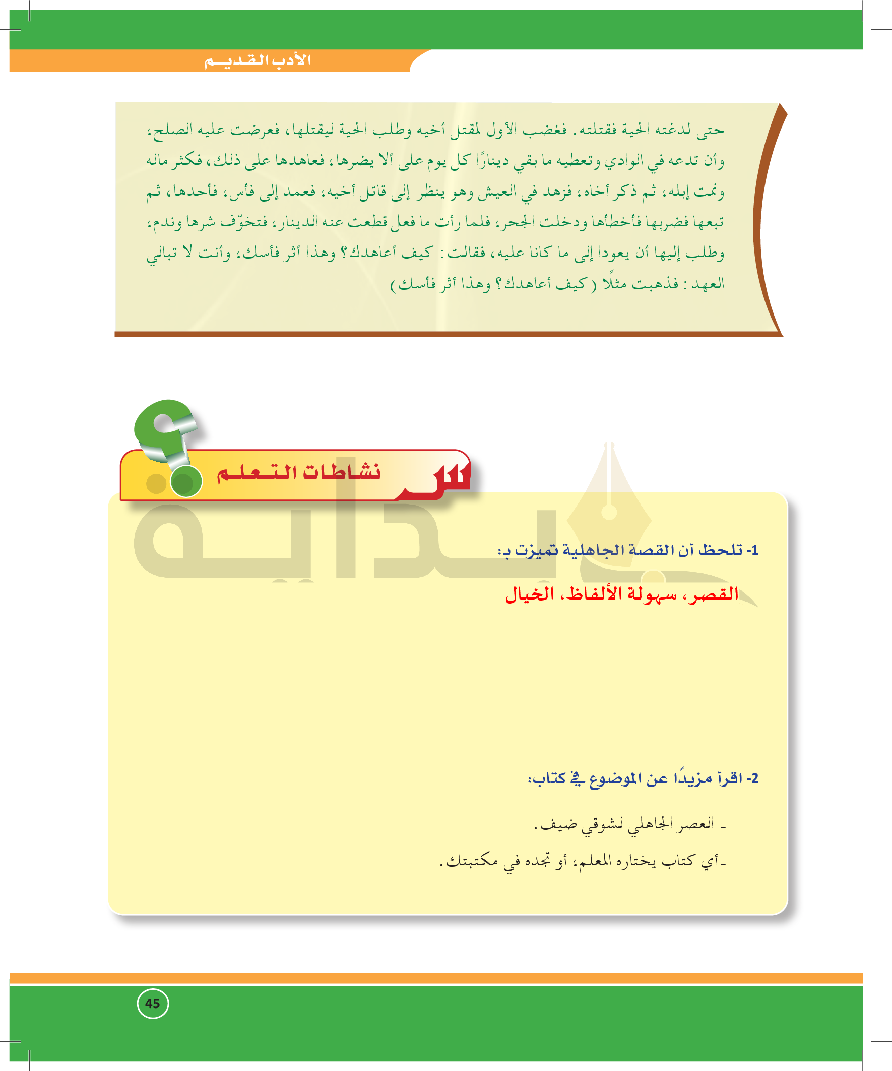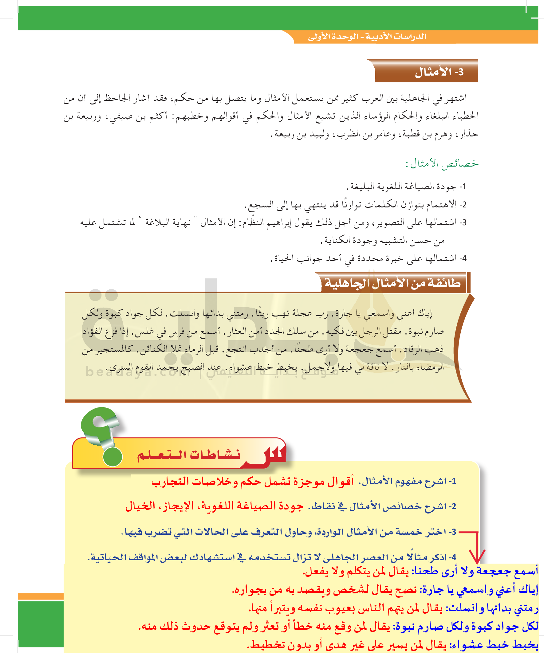 الموضوع الأول: الأدب في العصر الجاهلي: