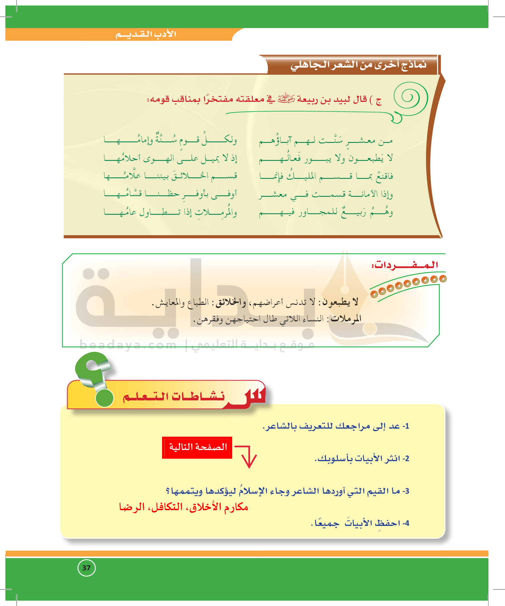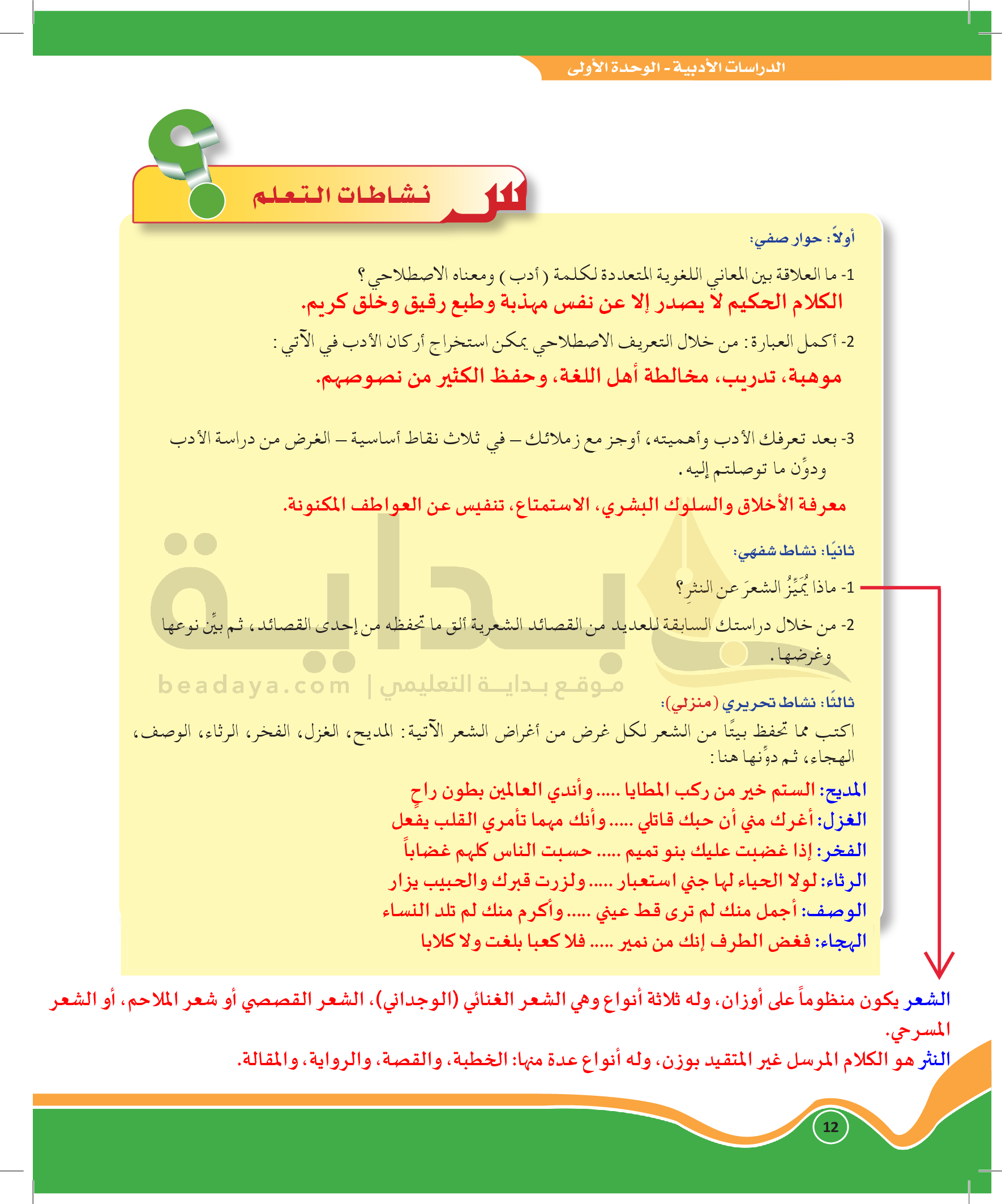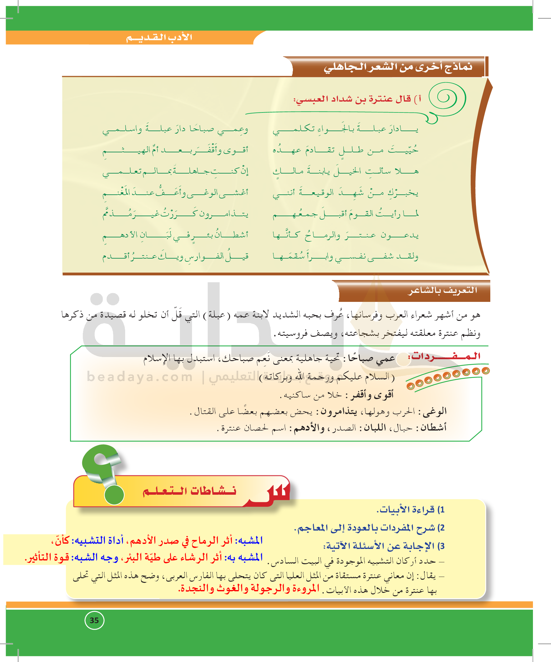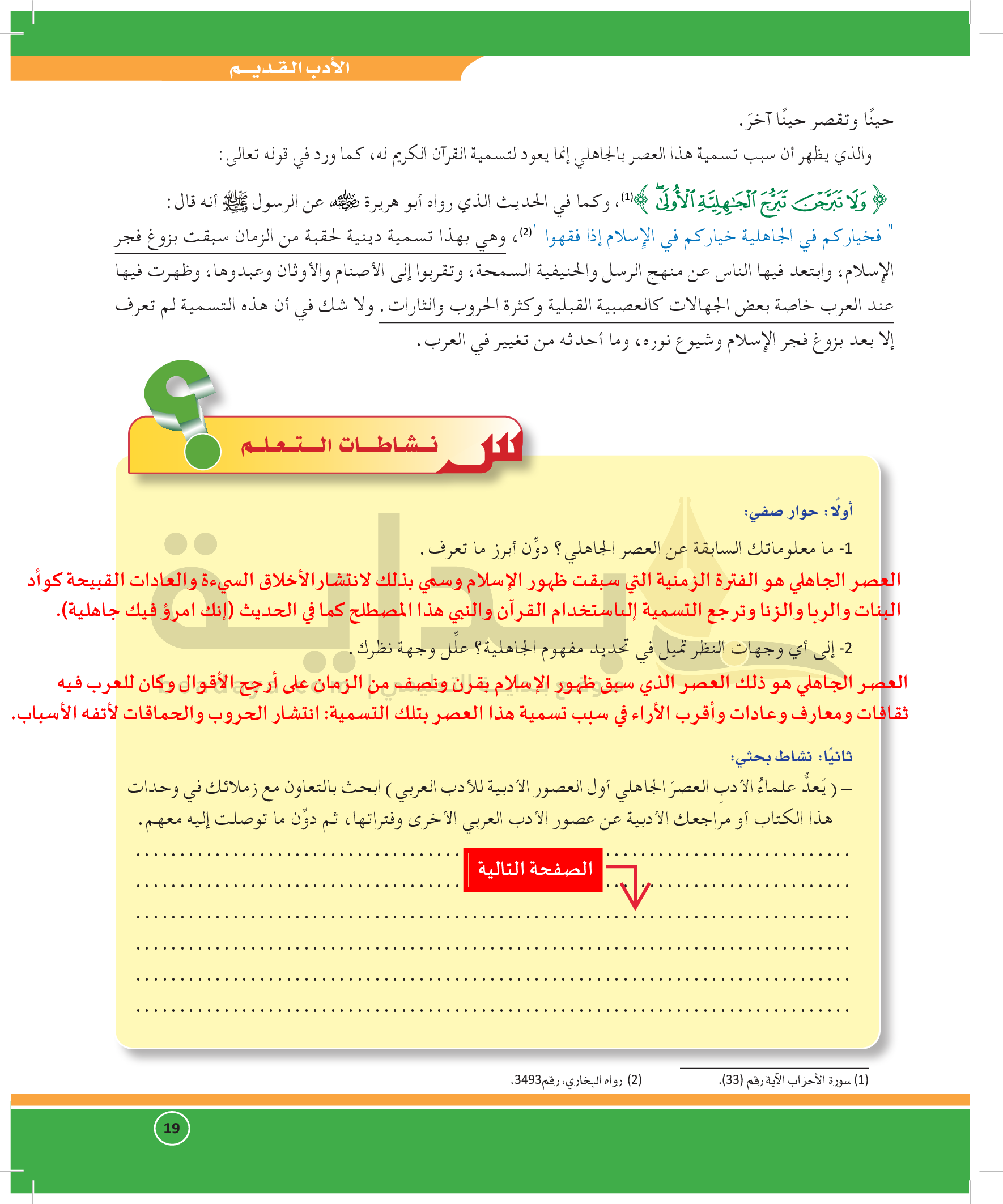 الموضوع الأول: الأدب في العصر الجاهلي: