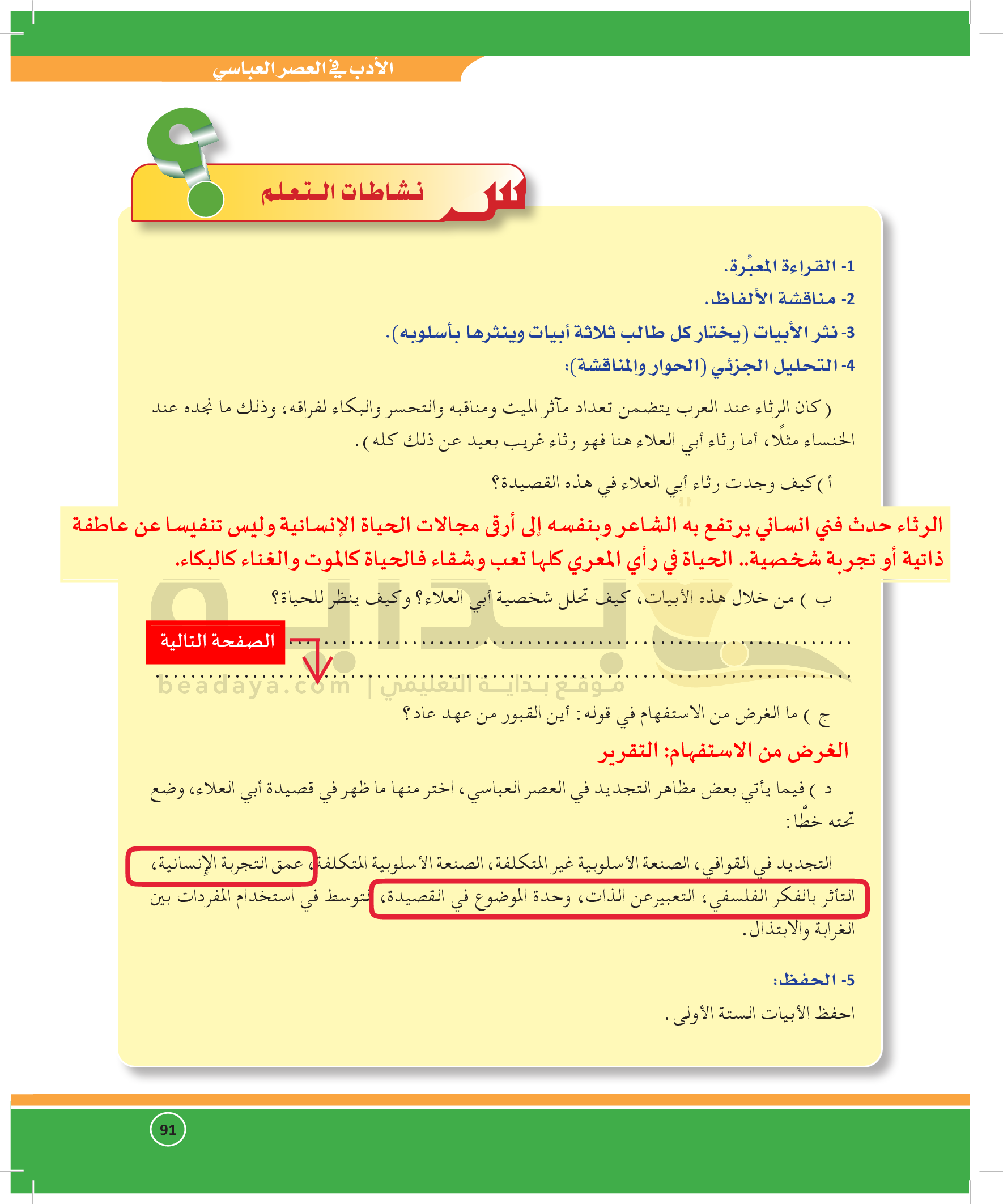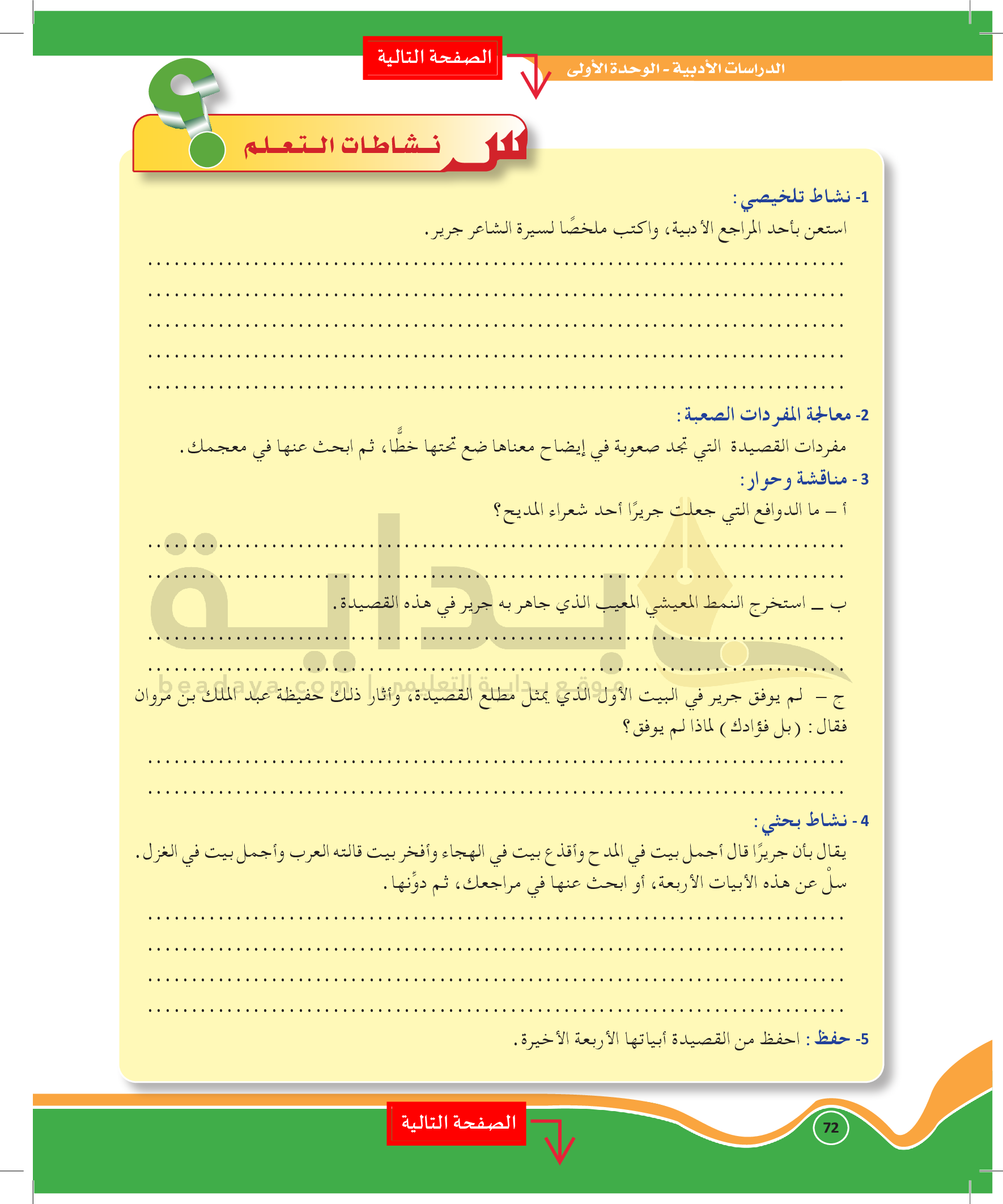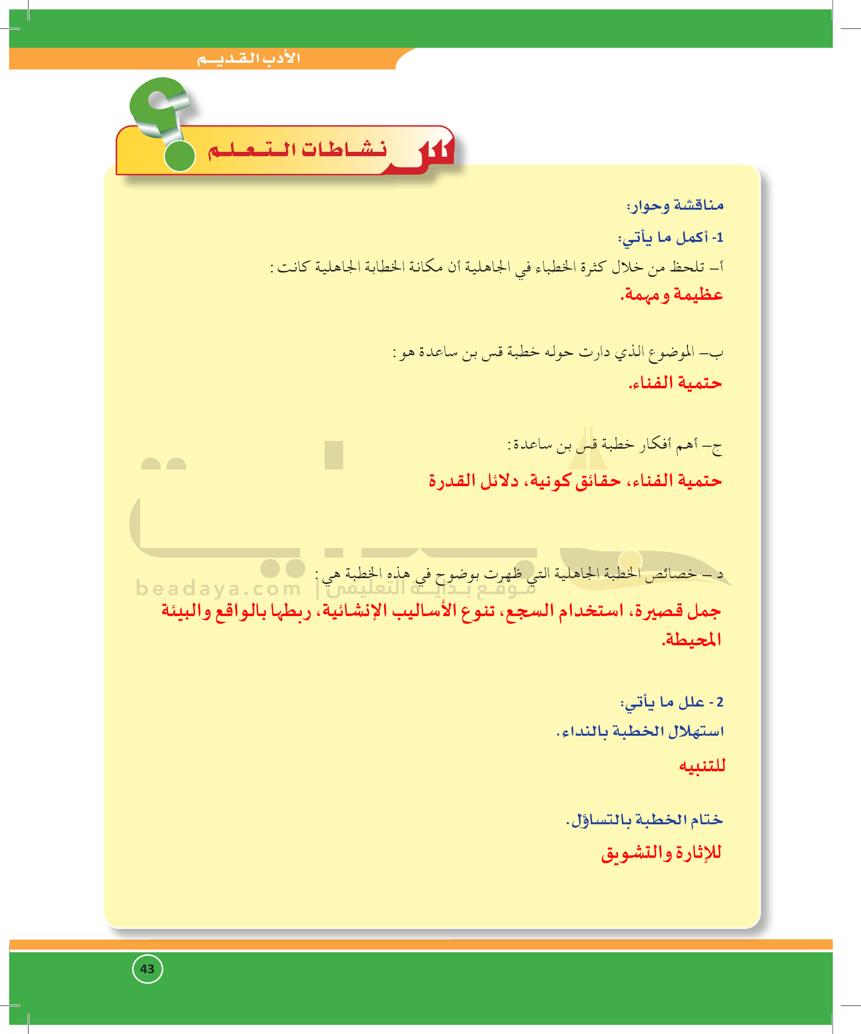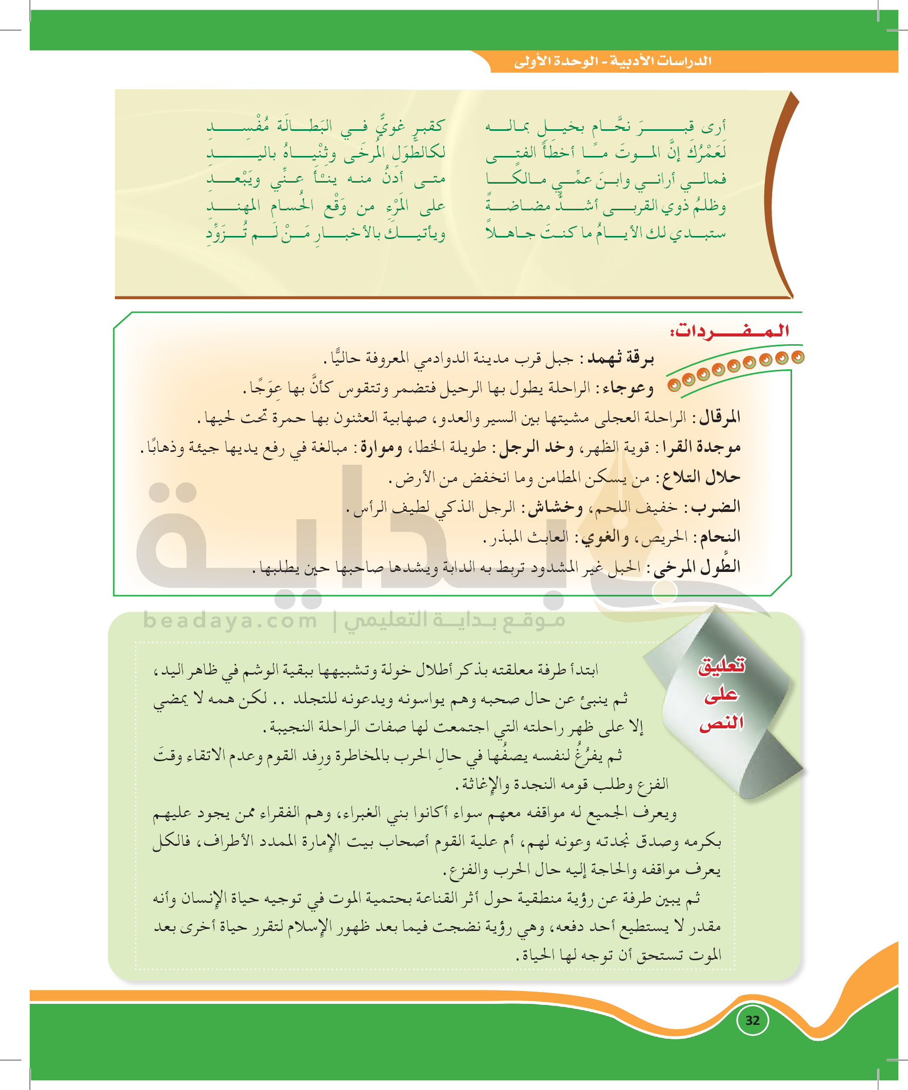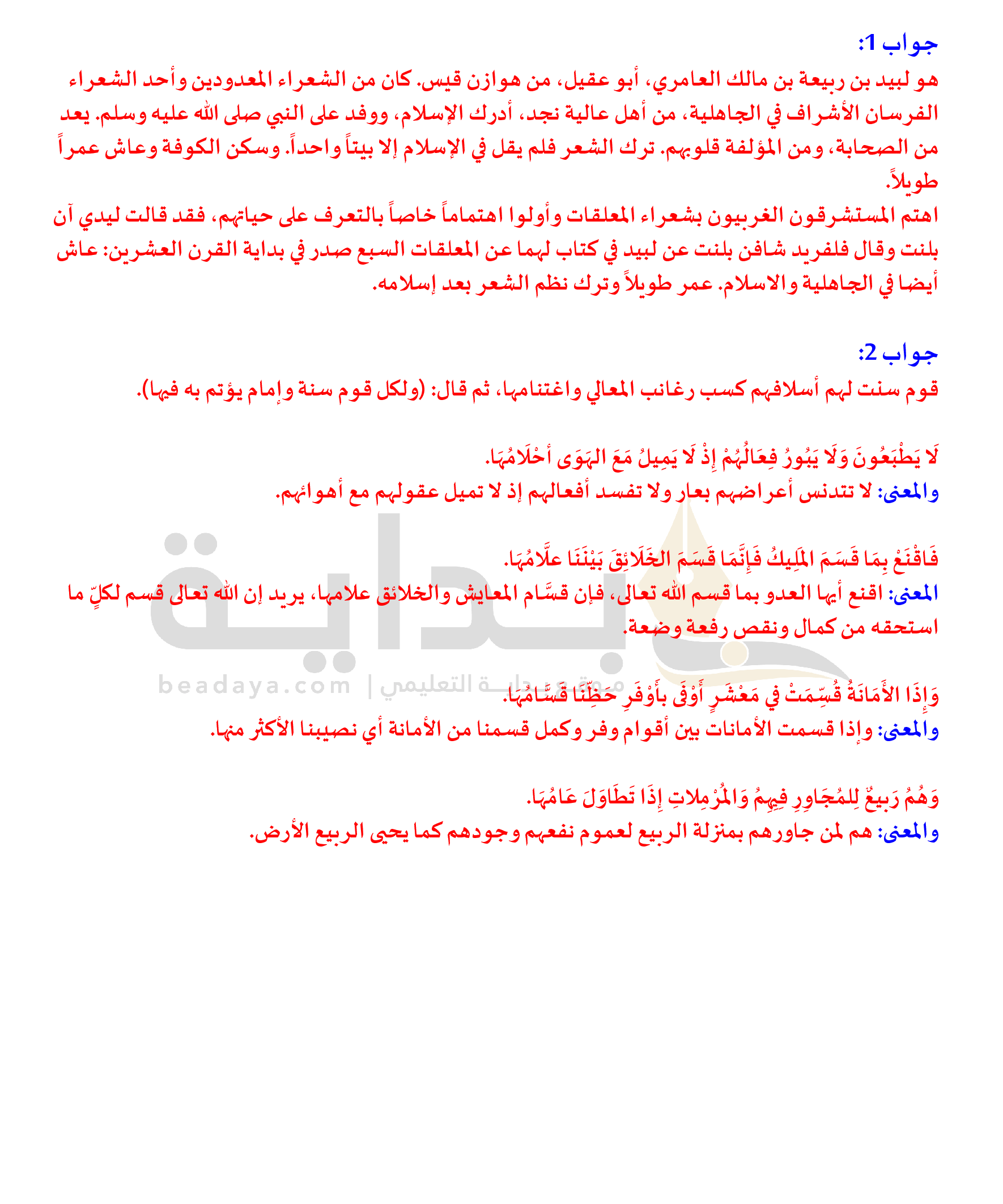 الموضوع الأول: الأدب في العصر الجاهلي: